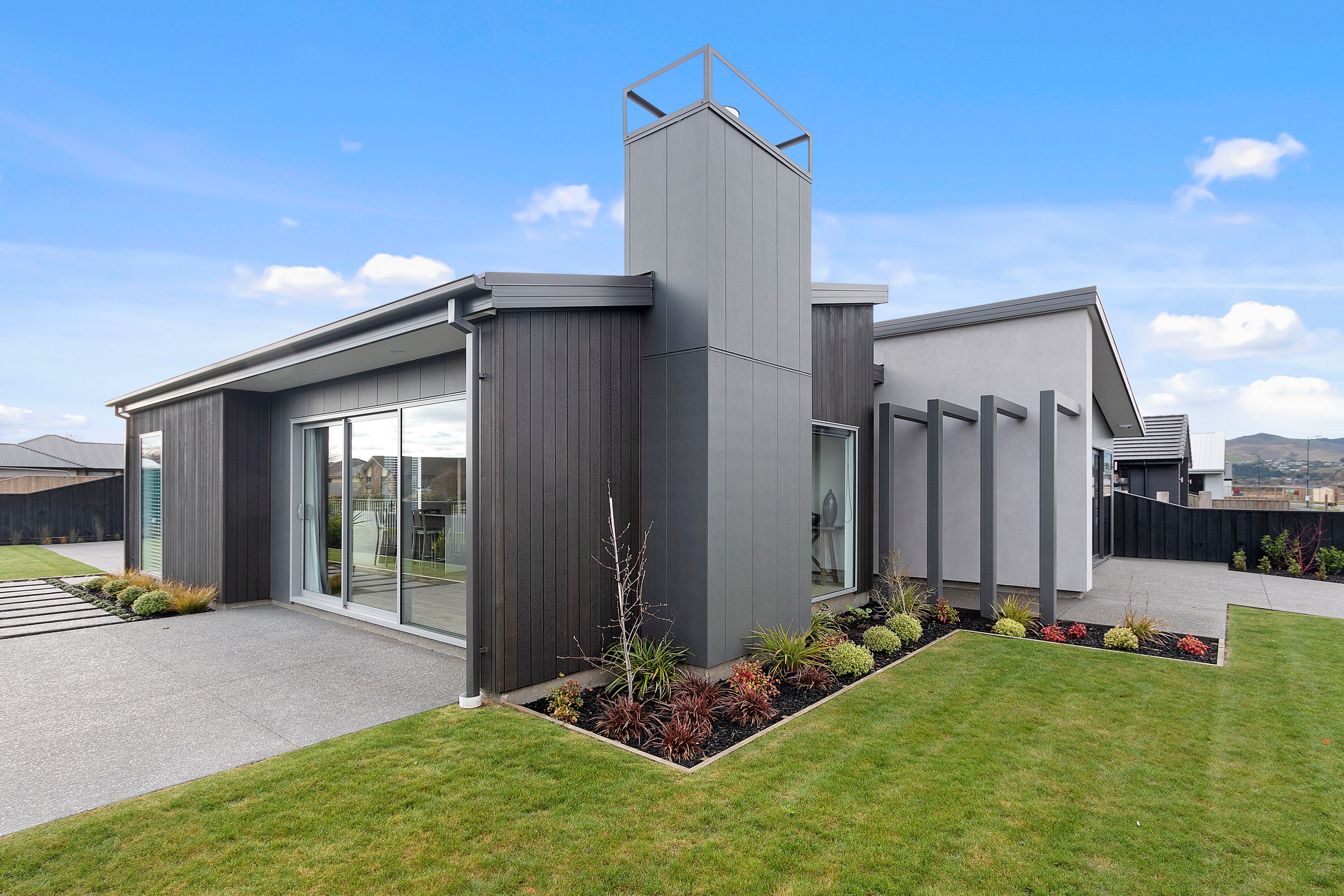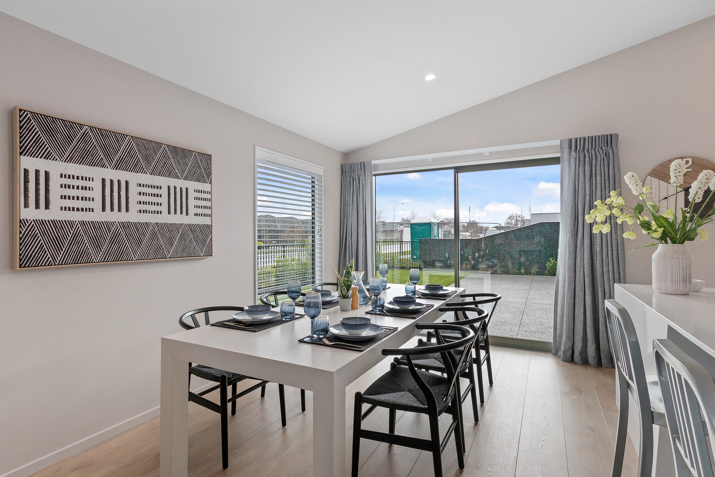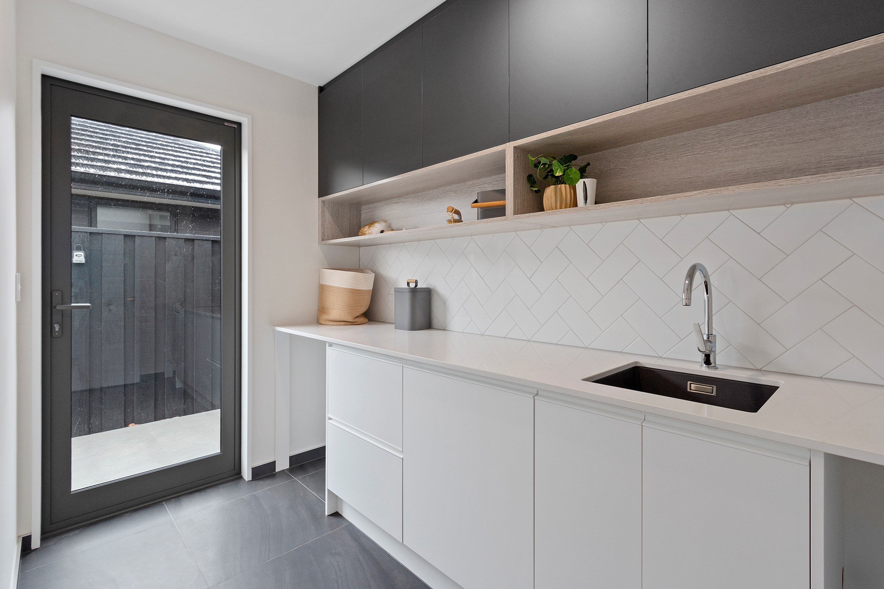 This modern three-bedroom home is both low maintenance and sophisticated, ideal for a growing family. Its distinctive design features are revealed on entry, with cedar batten partition walls within the open-plan kitchen/dining/living area giving the impression of separation, without compromising flow.