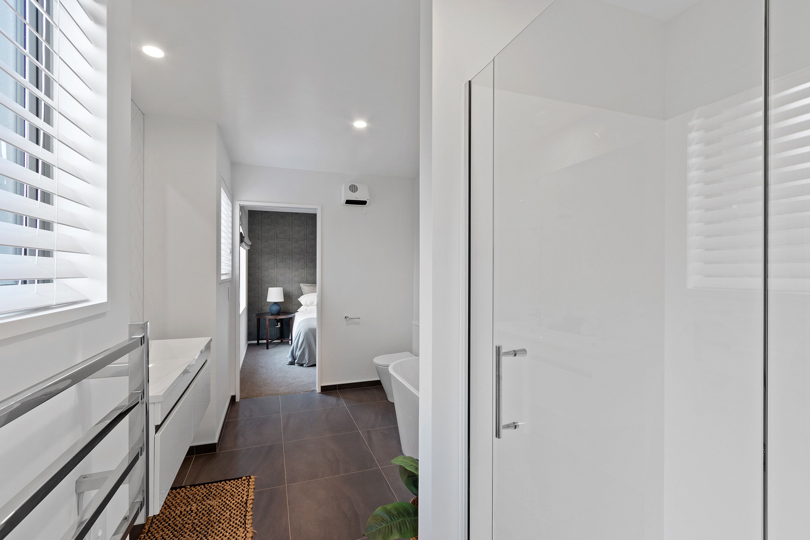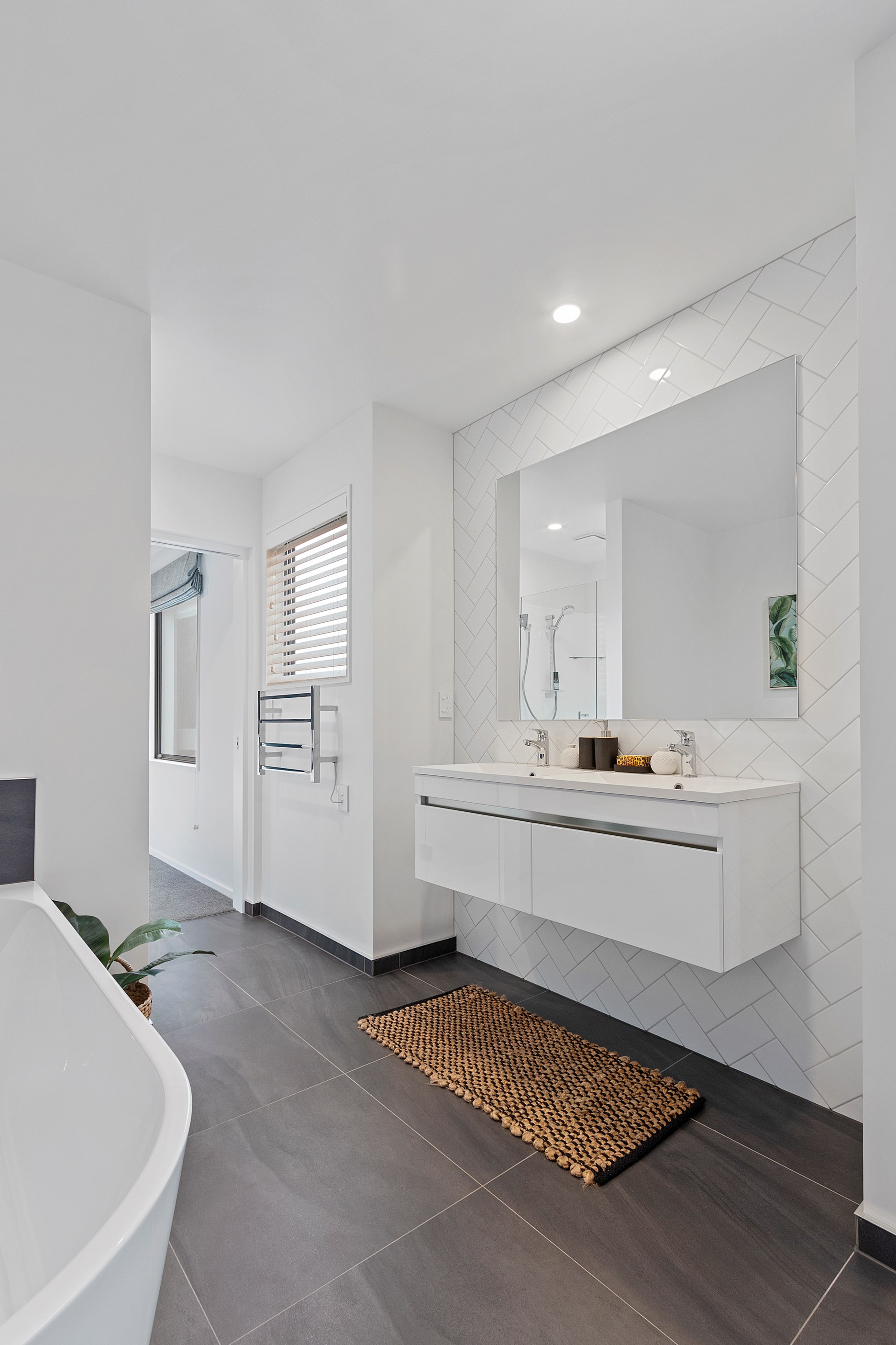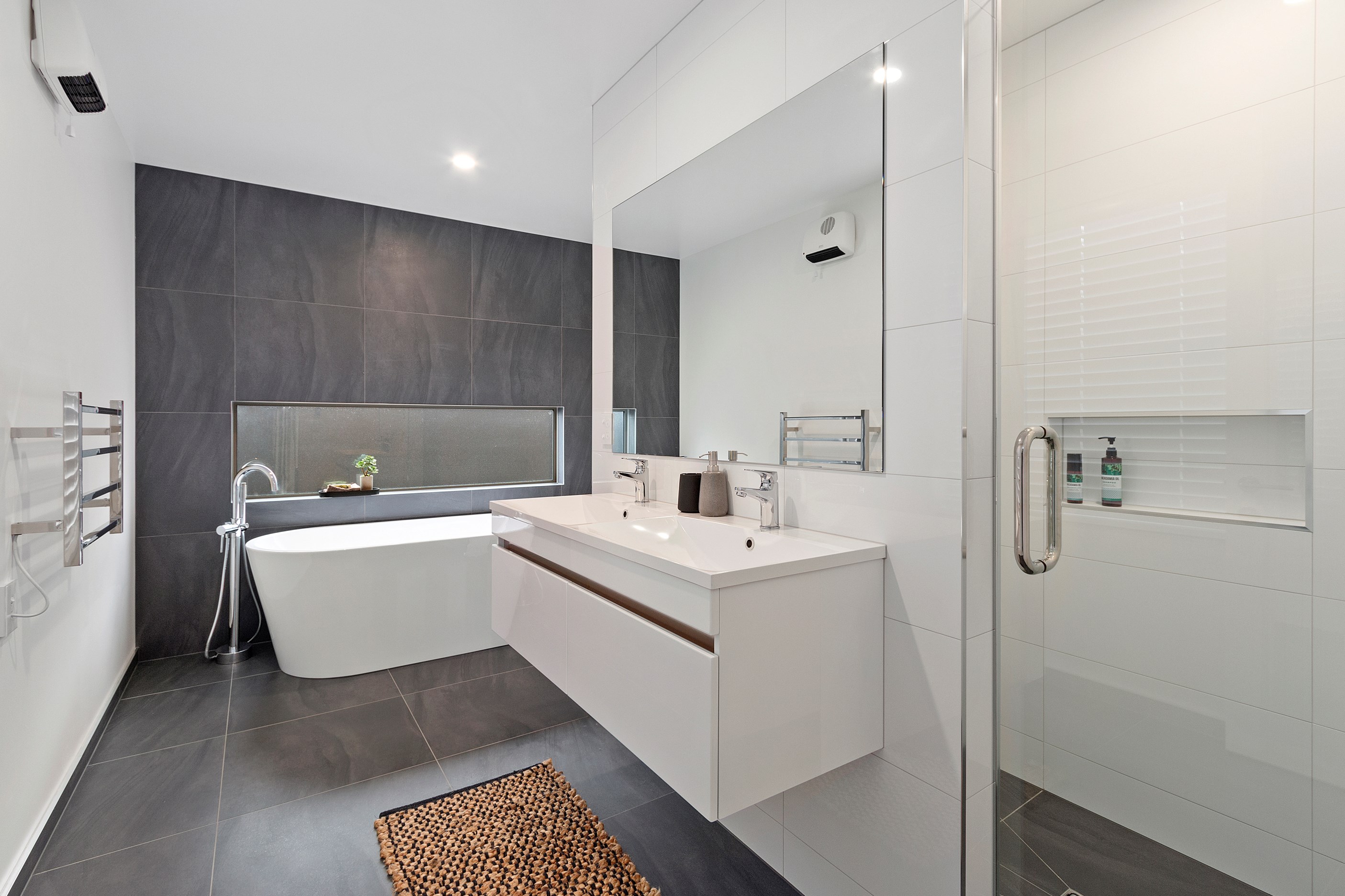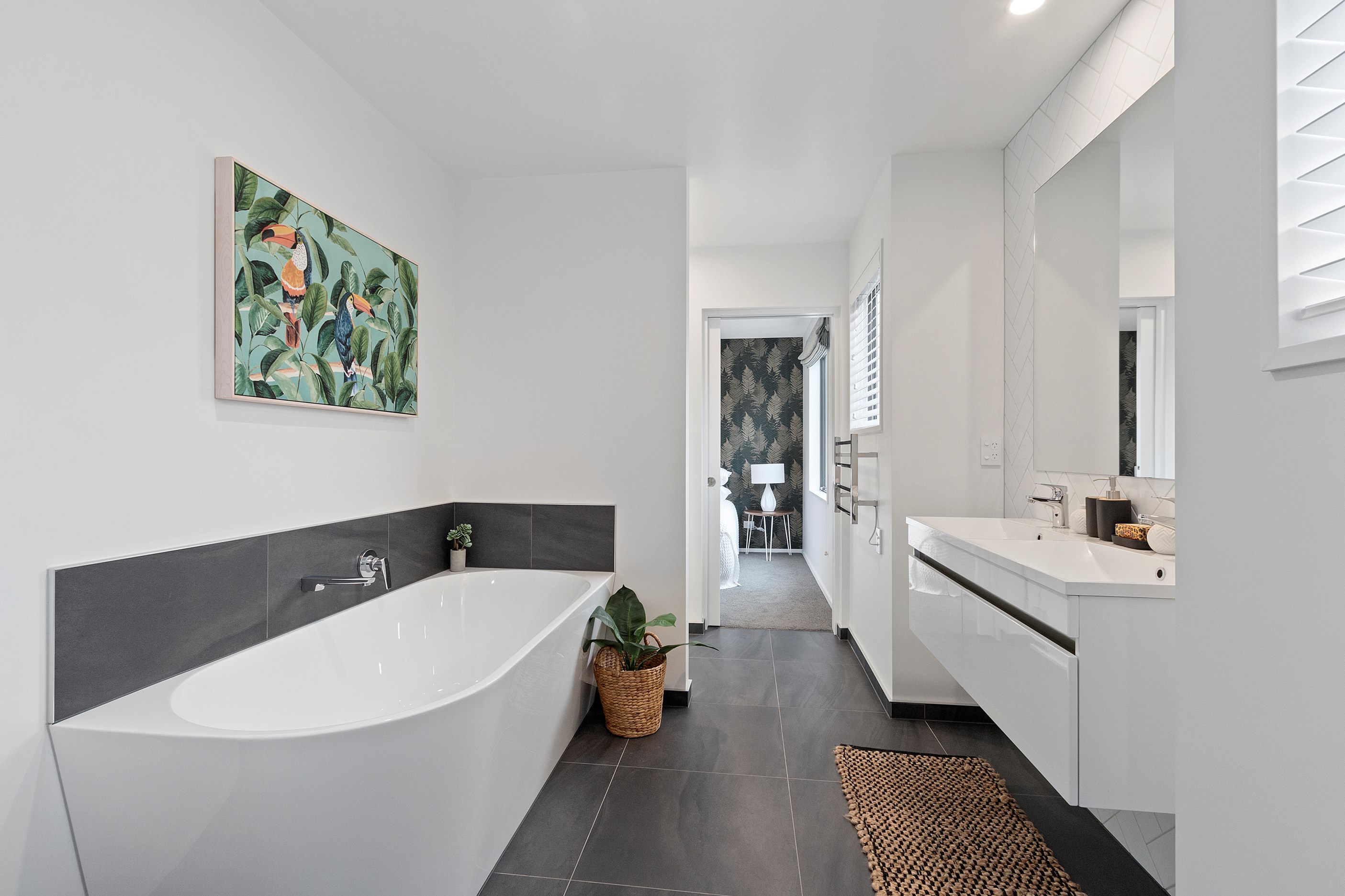 The main bedroom suite is grand in size and thoughtfully designed. A large walk-through-wardrobe leads into the luxurious ensuite with double vanity and freestanding bathtub. The other two double bedrooms feature built-in wardrobes and share the Jack and Jill main bathroom that has a double floating vanity, toilet, shower and bathtub.