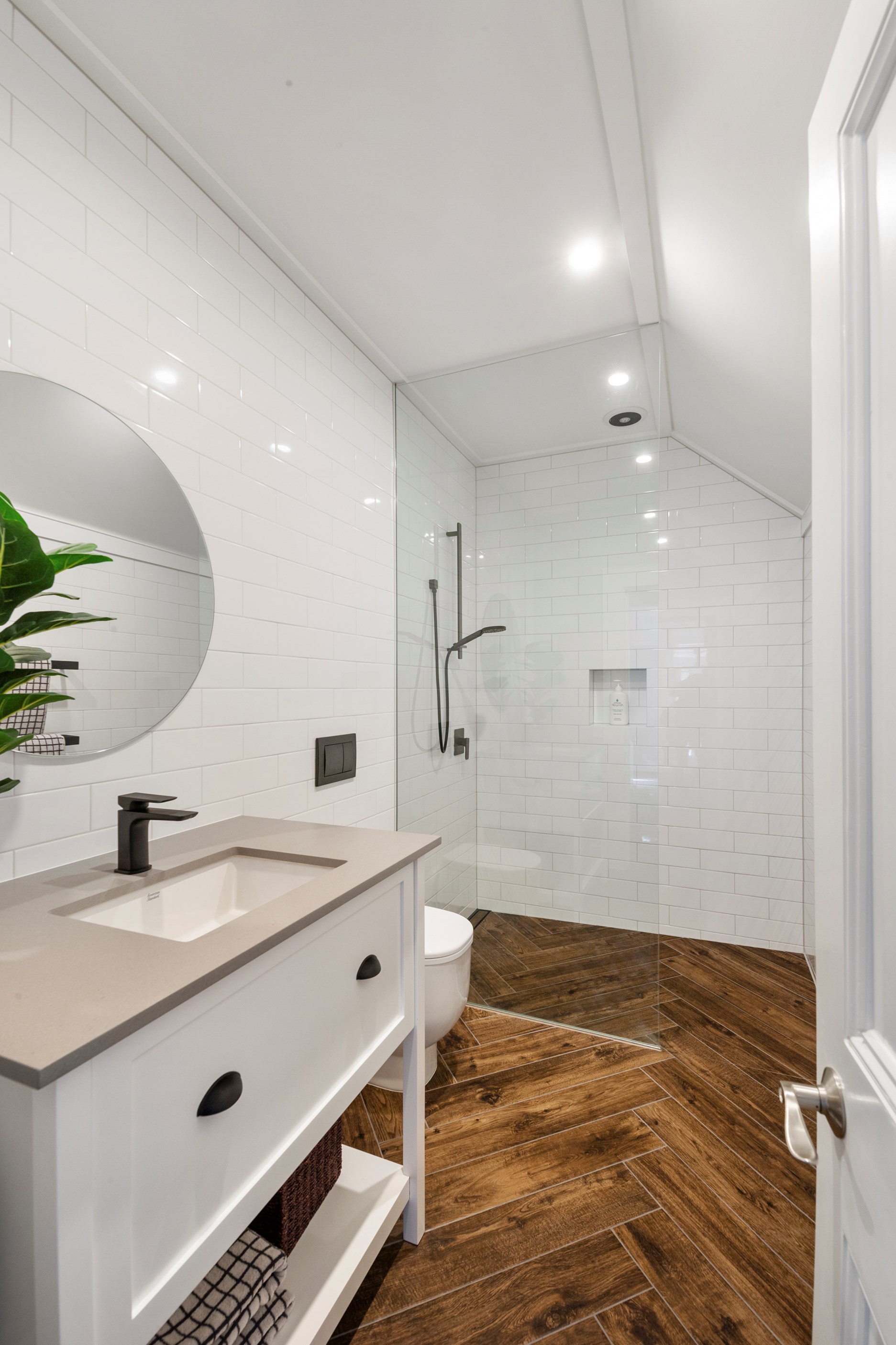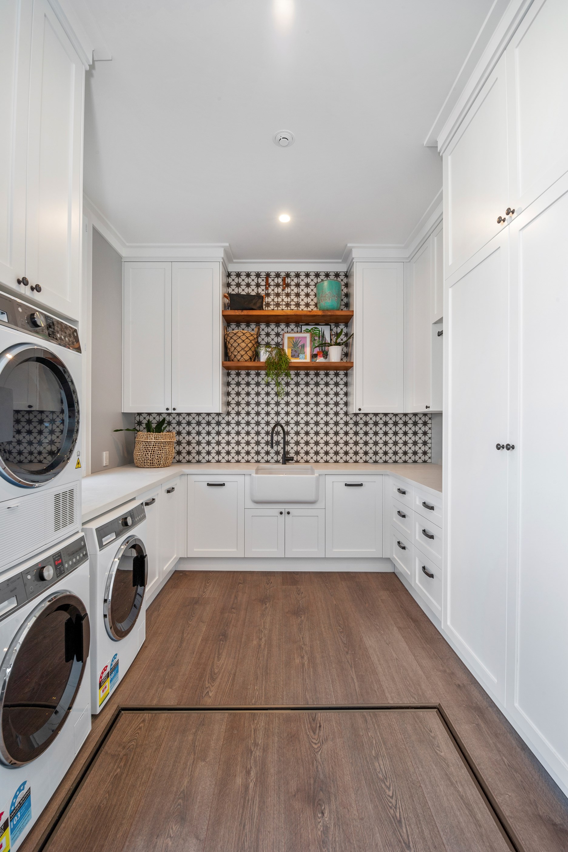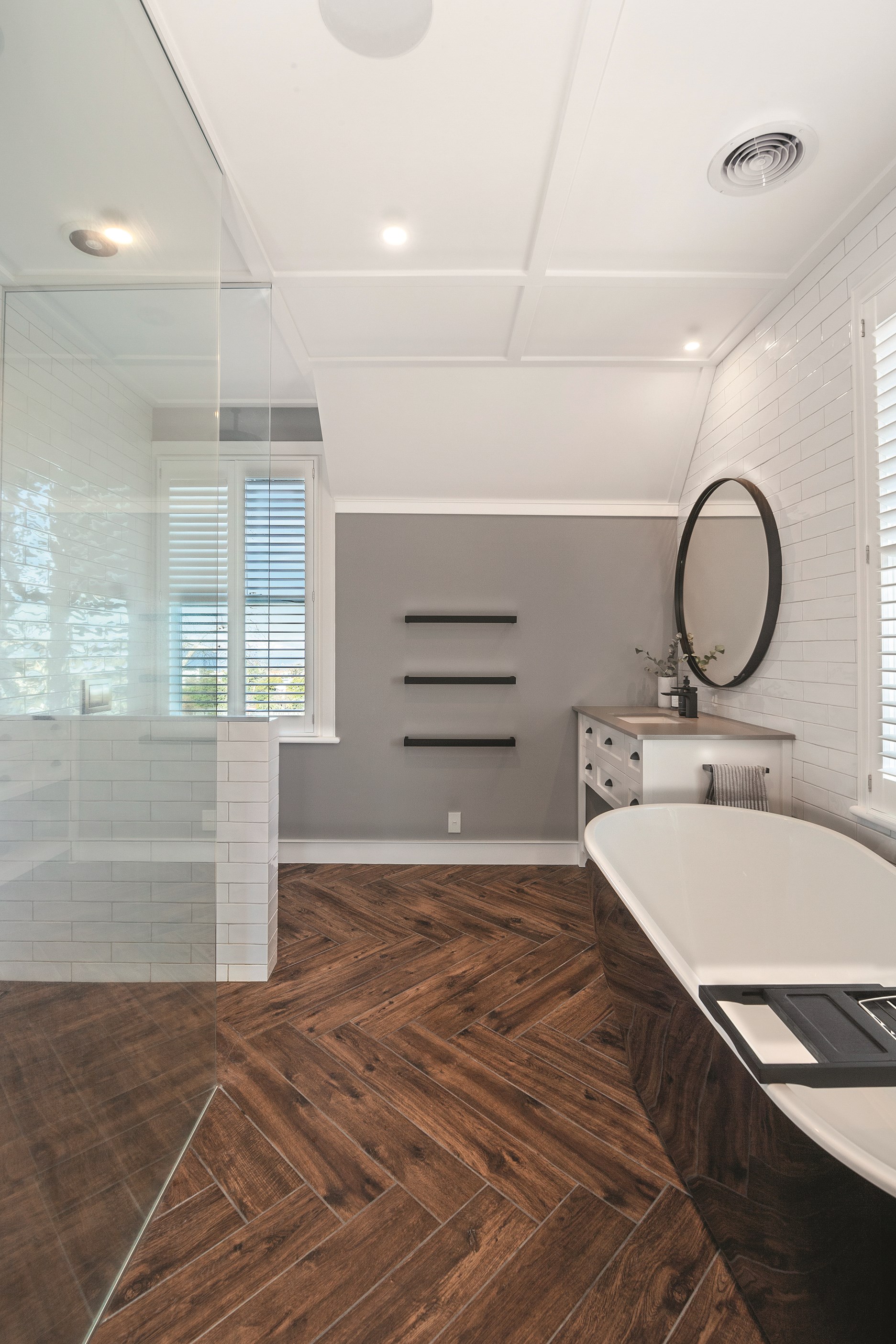 The meticulous kitchen is the perfect combination of old-world charm and modern-day panache. There’s a scullery, butler’s sink and plenty of storage. Dark parquet flooring, bronze hardware, Caesarstone benchtops and glass match the Victorian era of the home. This project was not without its challenges, however. When work started it soon became clear there was more to remedy than originally thought – the result of different building standards over almost 160 years.