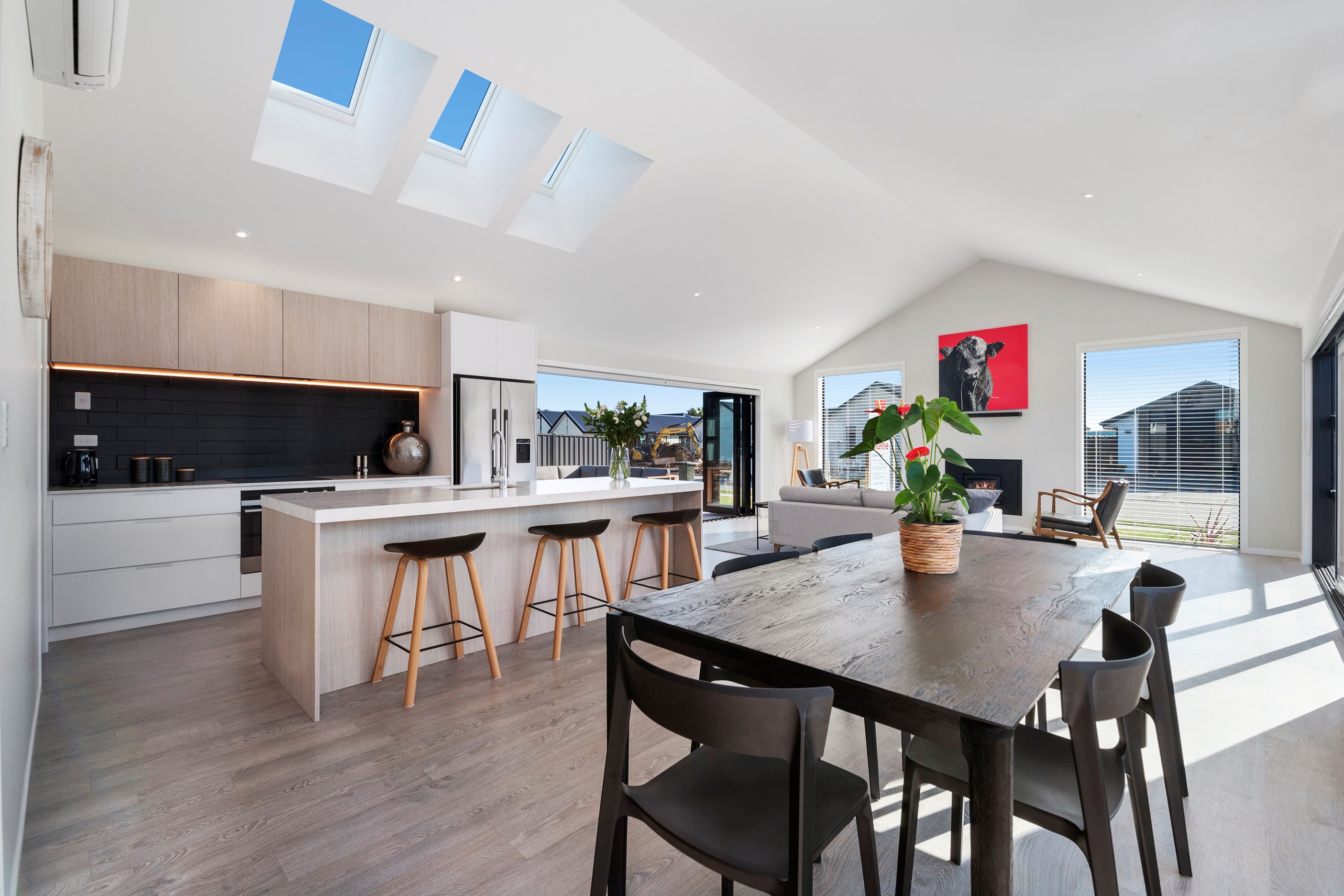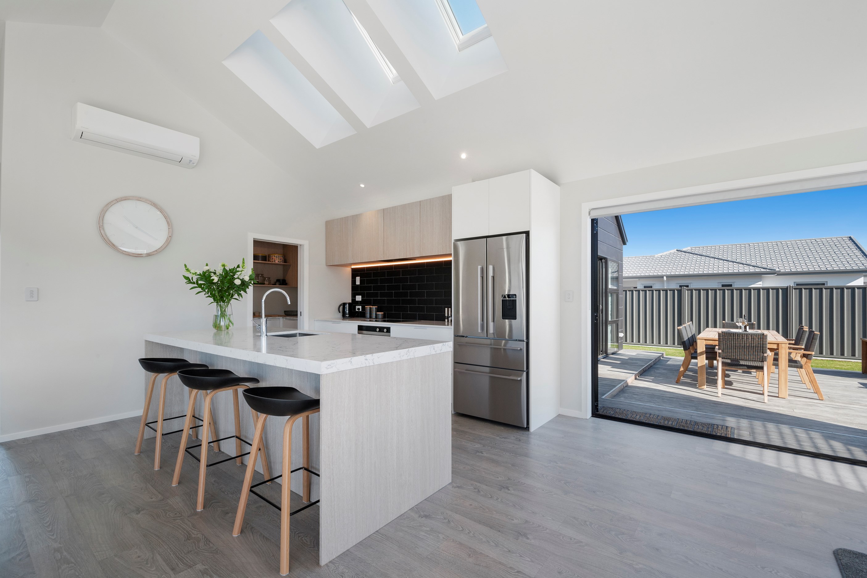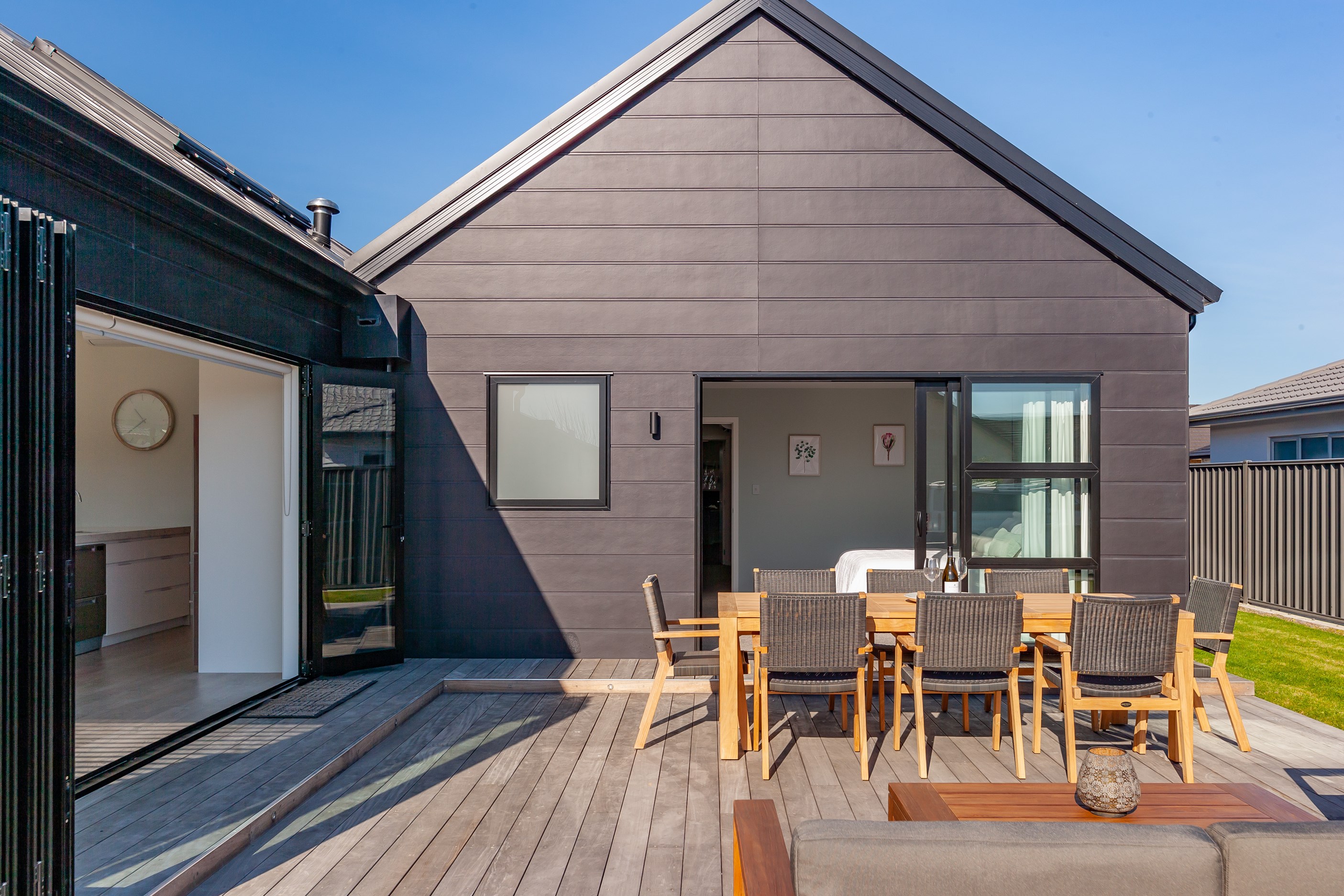 Versatile Hawke’s Bay’s Te Anau show home is built for entertaining. A portico leads into a breezy open-plan dining and living area that flows into a Scandinavian-style kitchen with LED lighting under the cupboards. It also has a spacious butler’s pantry. From the open-plan space, open the stacking doors and walk straight onto a large deck, positioned for all-day sun. The main bedroom also opens onto this deck, making it a perfect spot for a morning coffee. There’s plenty of space for entertaining and a barbecue.