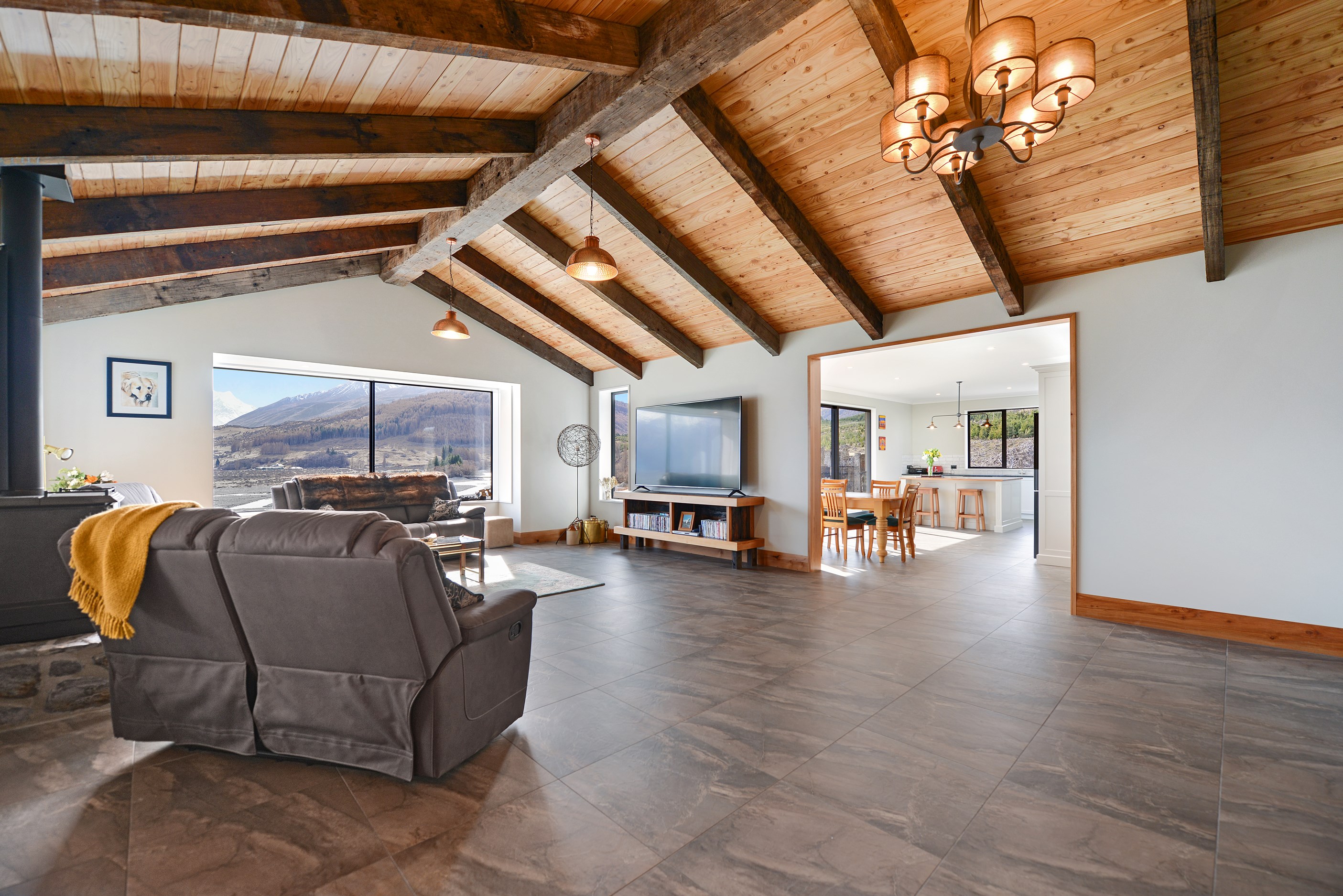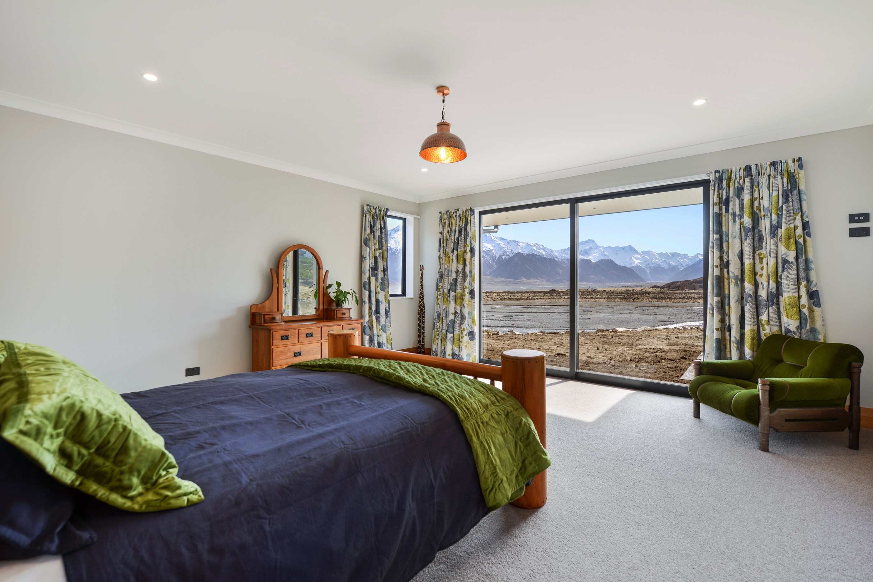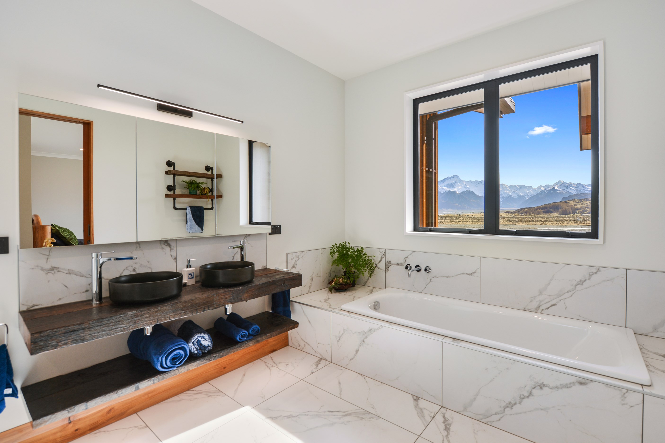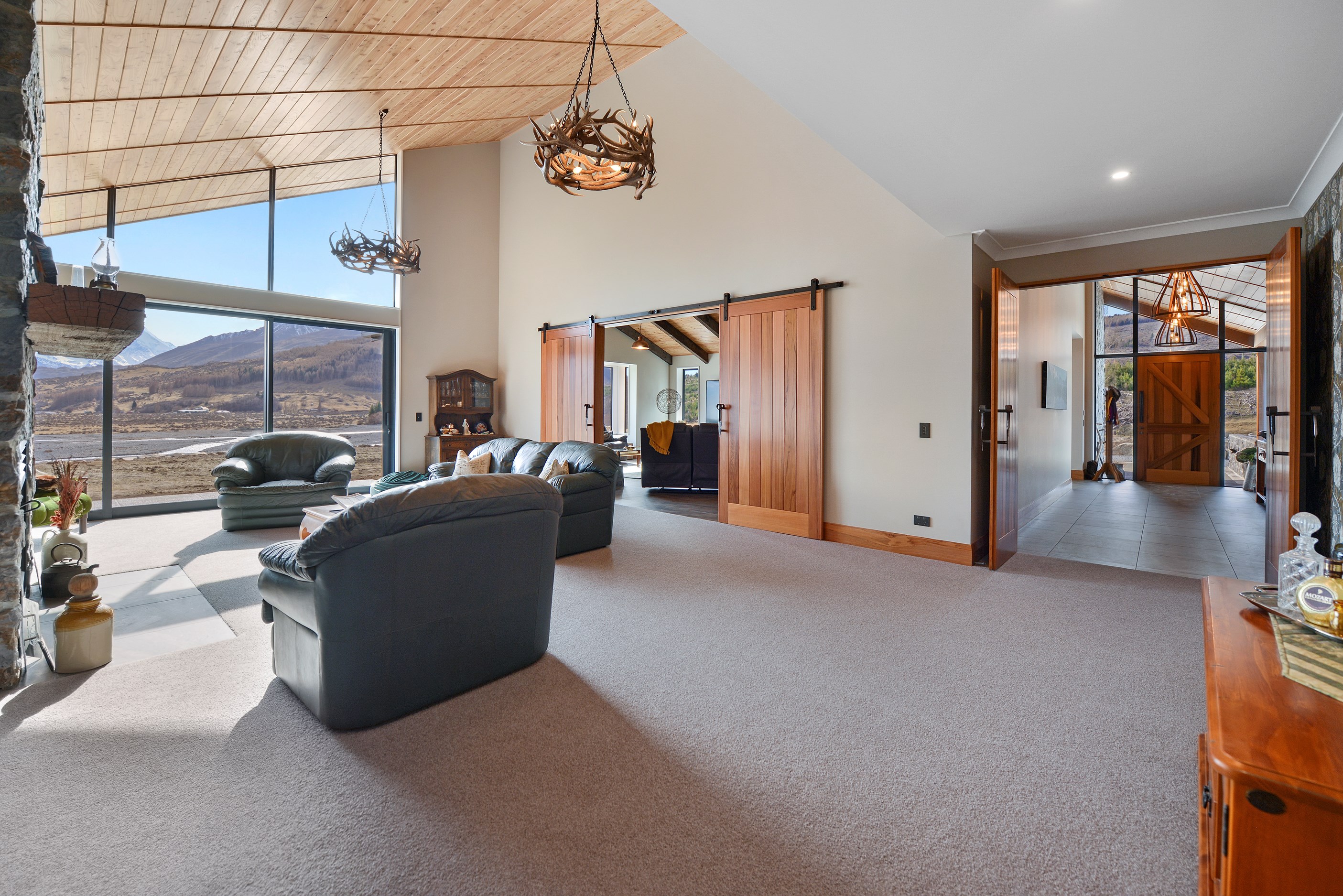 With breathtaking views of Aoraki, this high-country masterpiece utilises materials that resonate with its scenic environment. The exterior features stonework and cedar board-and-batten, mimicking the alpine terrain. Inside is just as exquisite. With five bedrooms and four bathrooms, the focal point of the home is the grand living area, complete with fireplace and striking stone mantelpiece.Here, floor-to-ceiling windows allow you to take in the glorious panorama while warming by the fire as sunlight streams in.