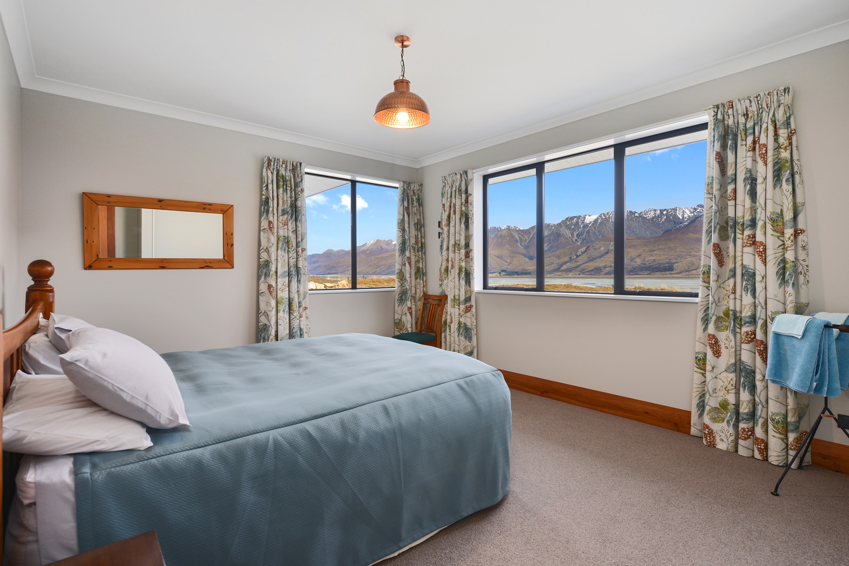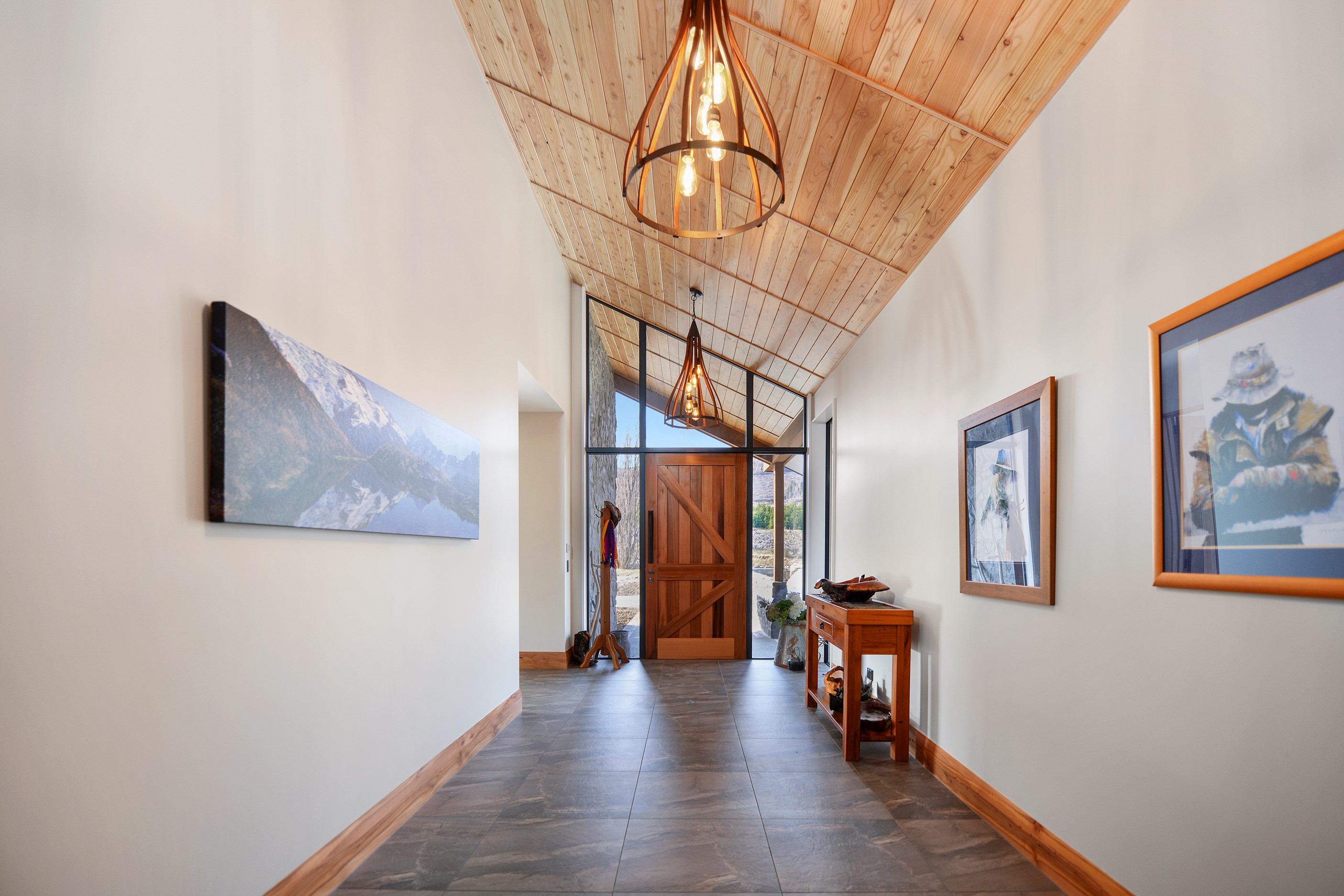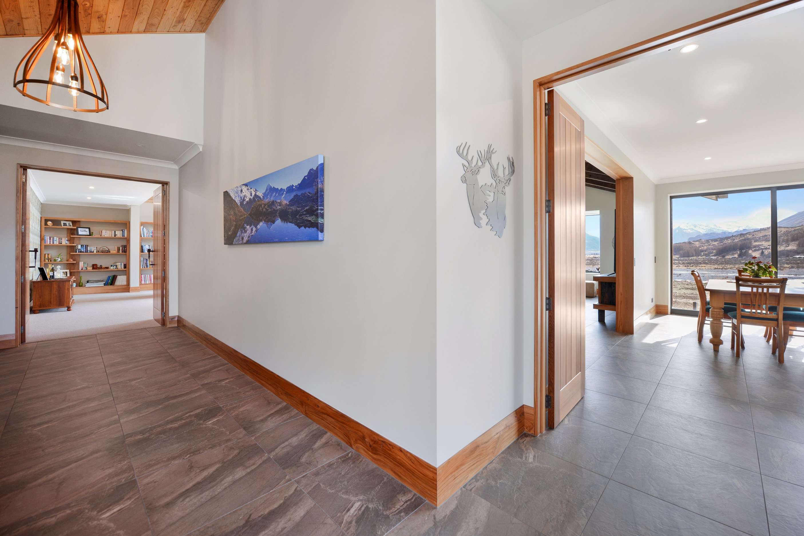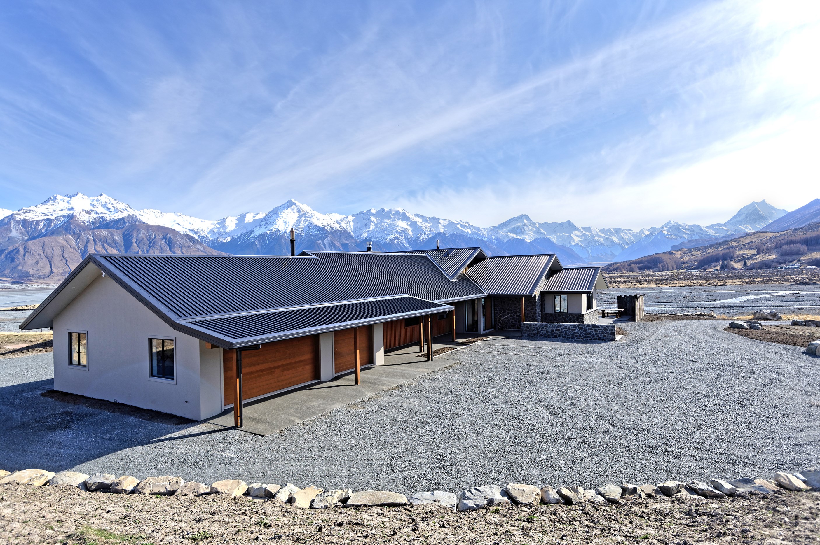 With breathtaking views of Aoraki, this high-country masterpiece utilises materials that resonate with its scenic environment. The exterior features stonework and cedar board-and-batten, mimicking the alpine terrain. Inside is just as exquisite. With five bedrooms and four bathrooms, the focal point of the home is the grand living area, complete with fireplace and striking stone mantelpiece.Here, floor-to-ceiling windows allow you to take in the glorious panorama while warming by the fire as sunlight streams in.
