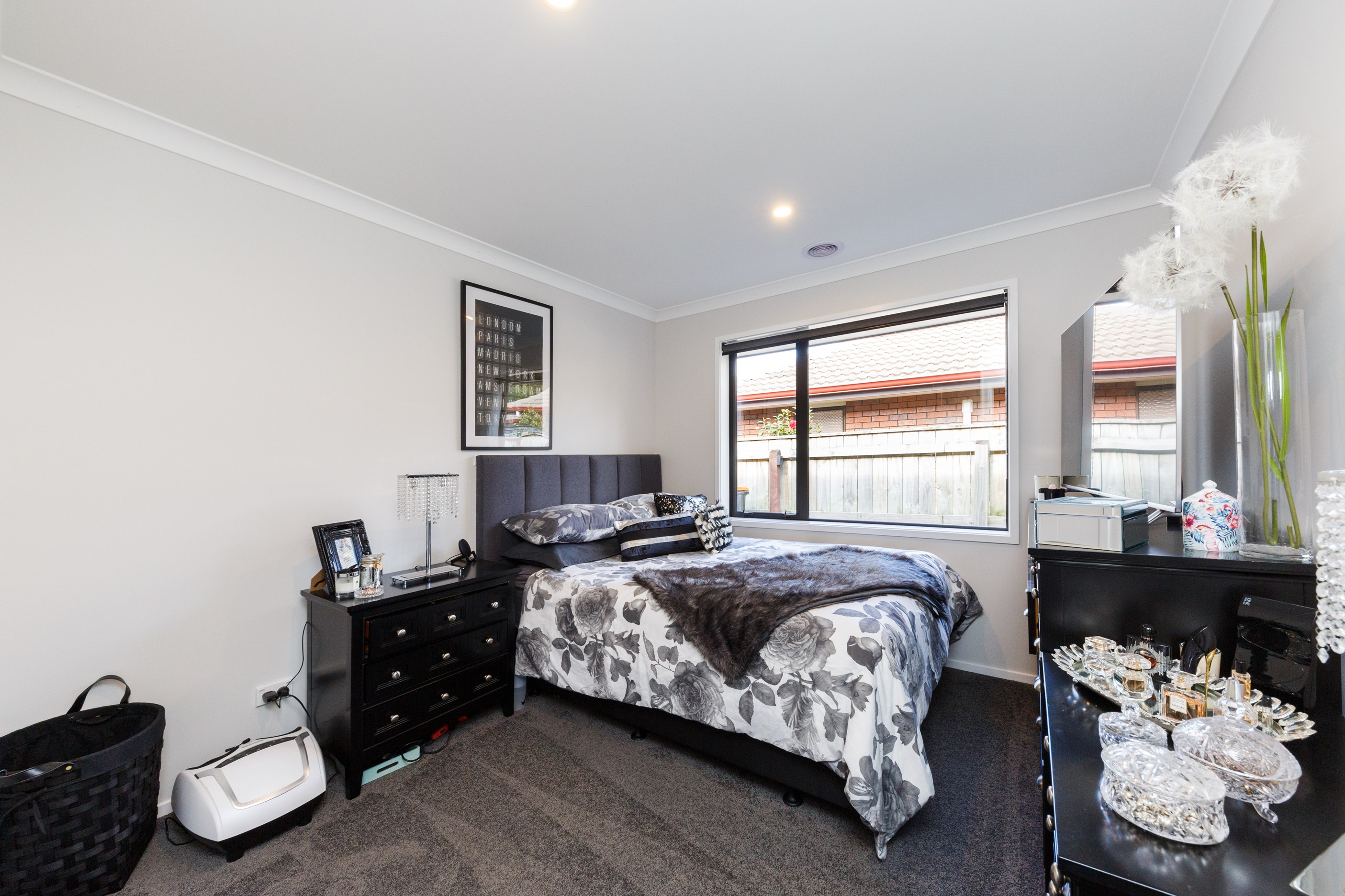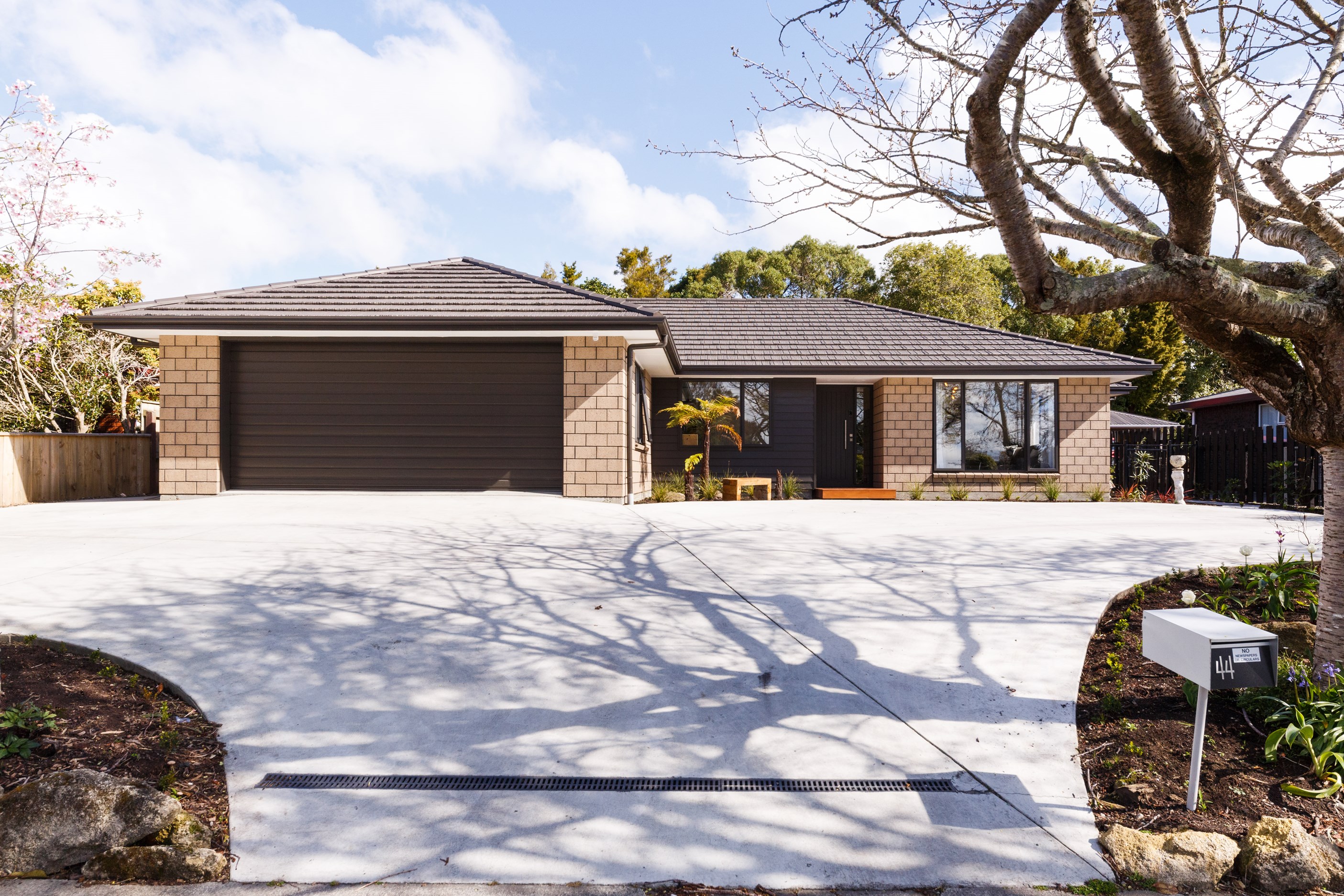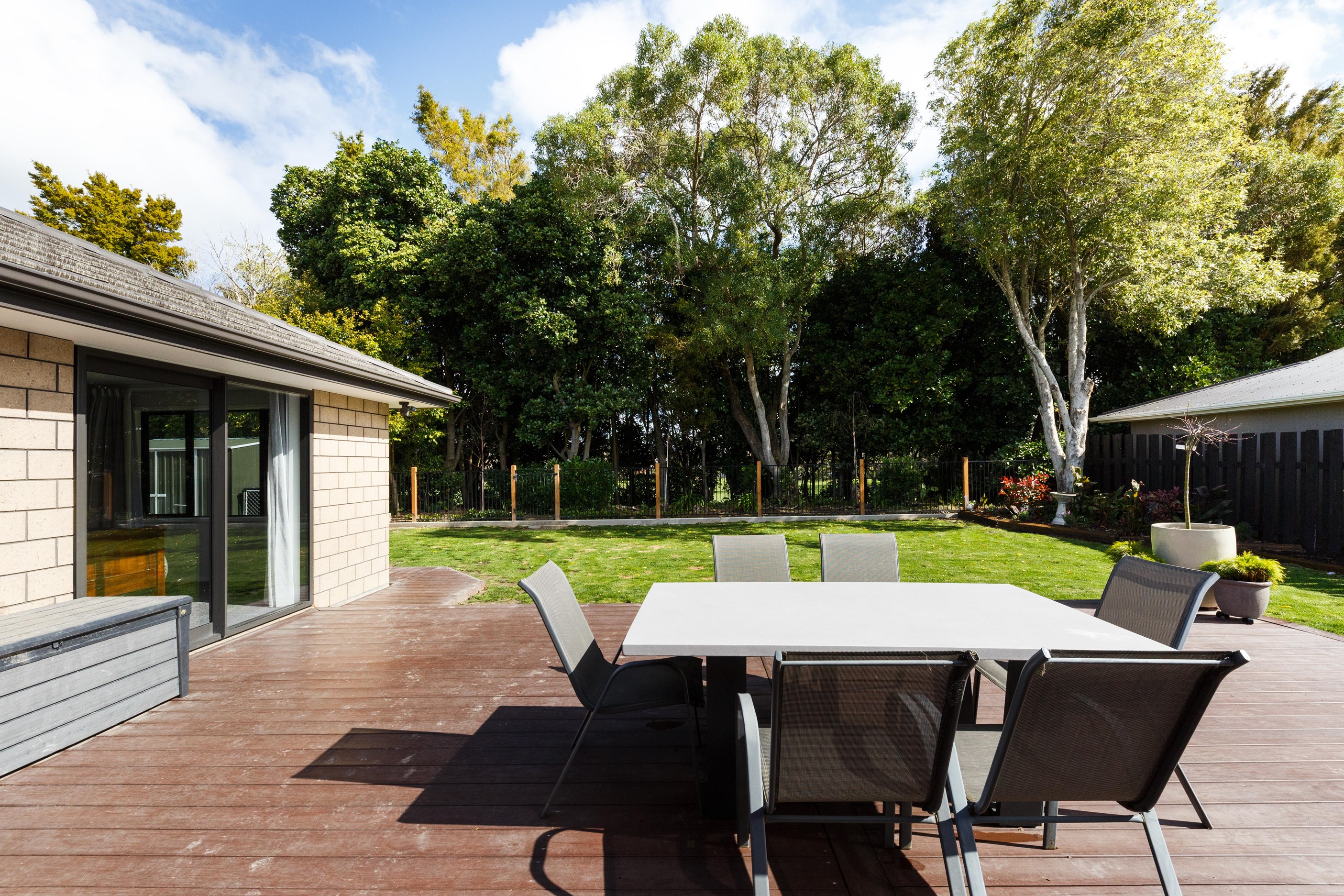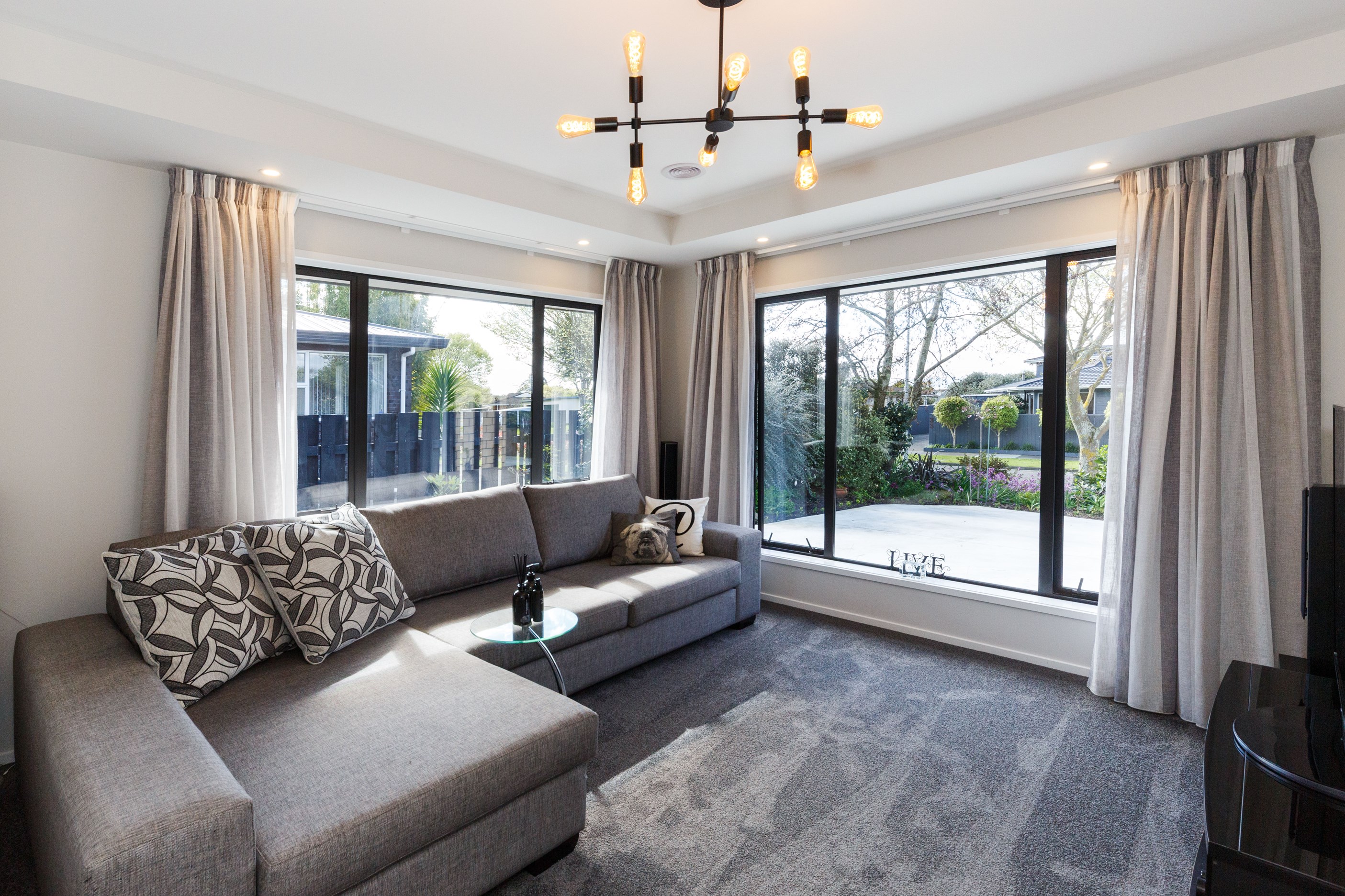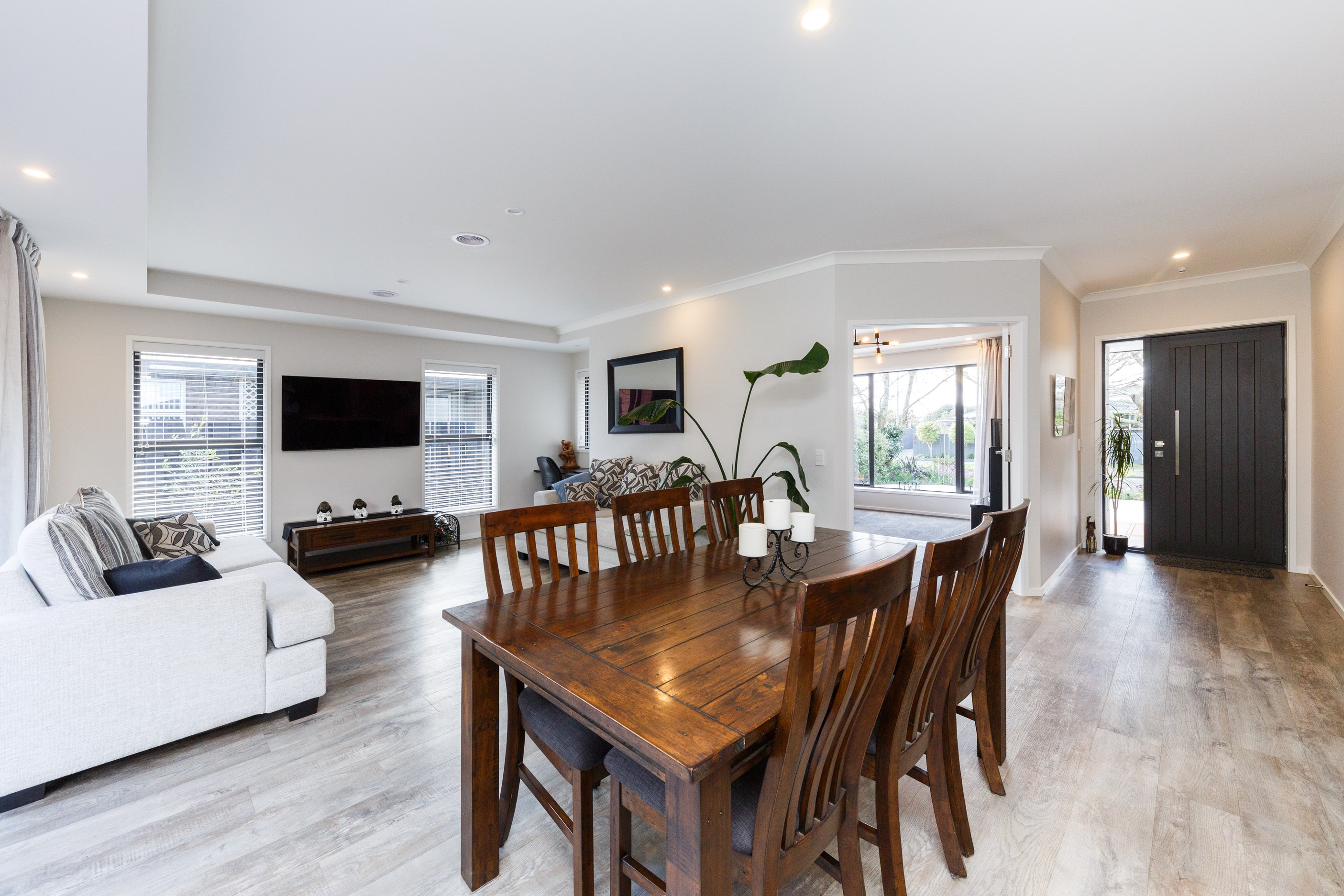 The open-plan living area has a vaulted ceiling to add a sense of space and allow for a steady flow of natural light. A designer kitchen features modern, sleek lines and statement black tapware, and has a walk-in pantry. A second lounge ensures everyone has plenty of space in which to entertain and relax, while an offi ce means that studying or working from home is never a problem.