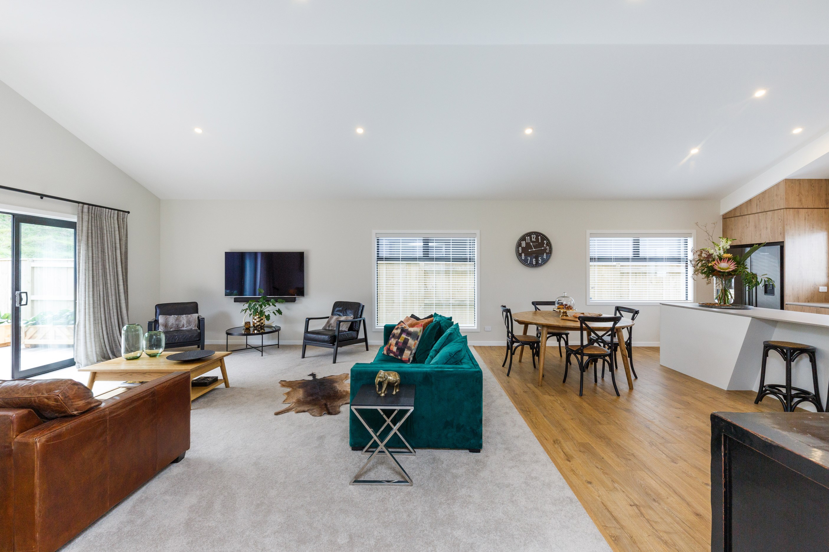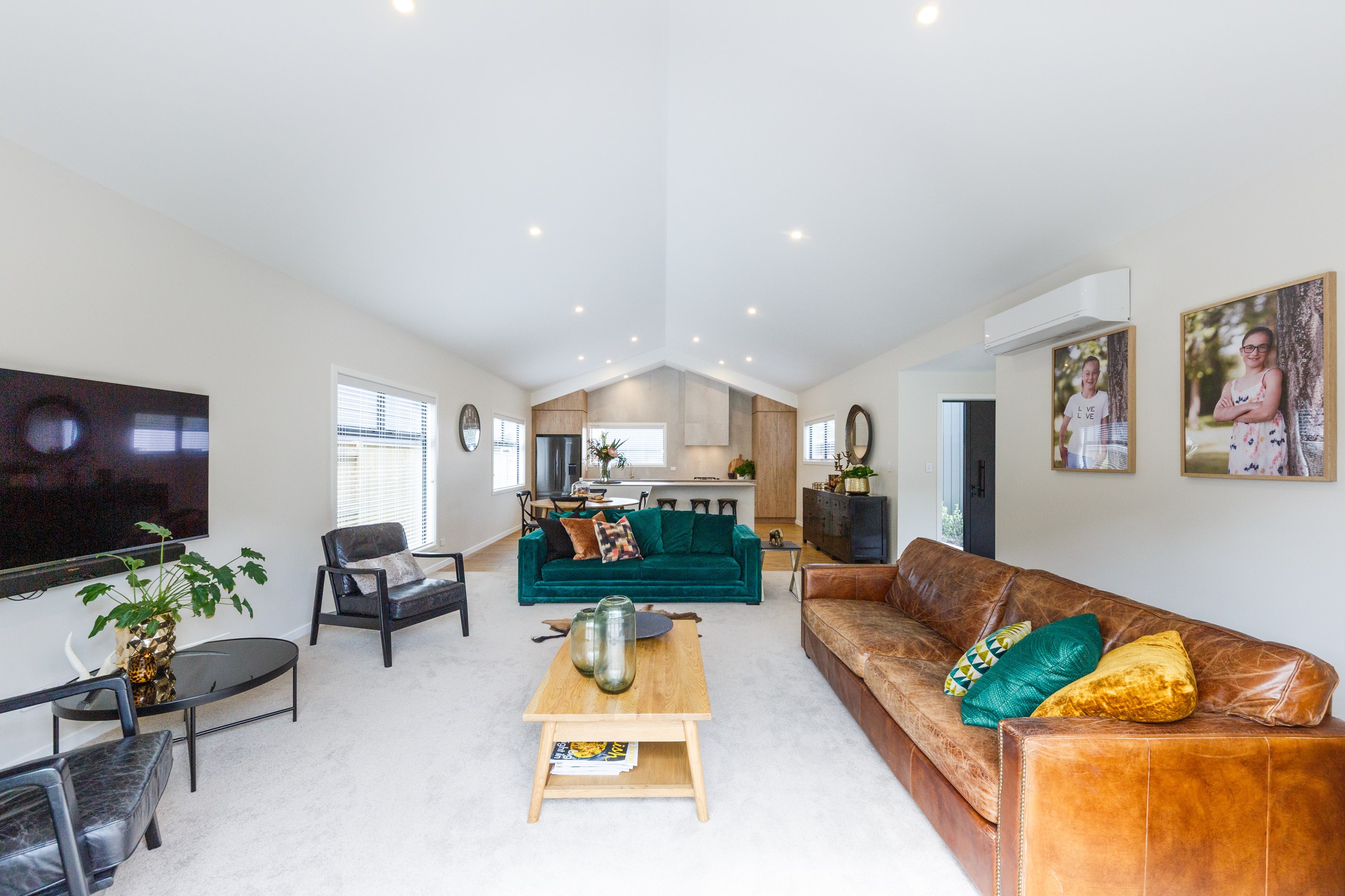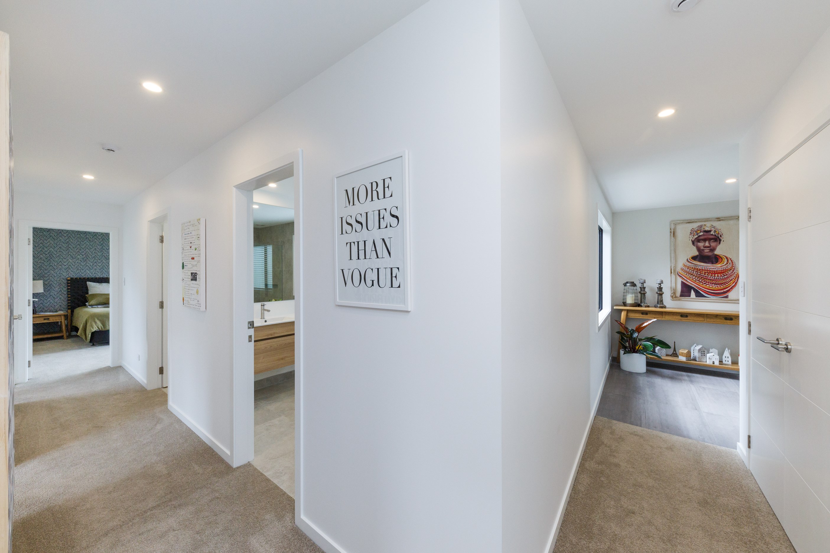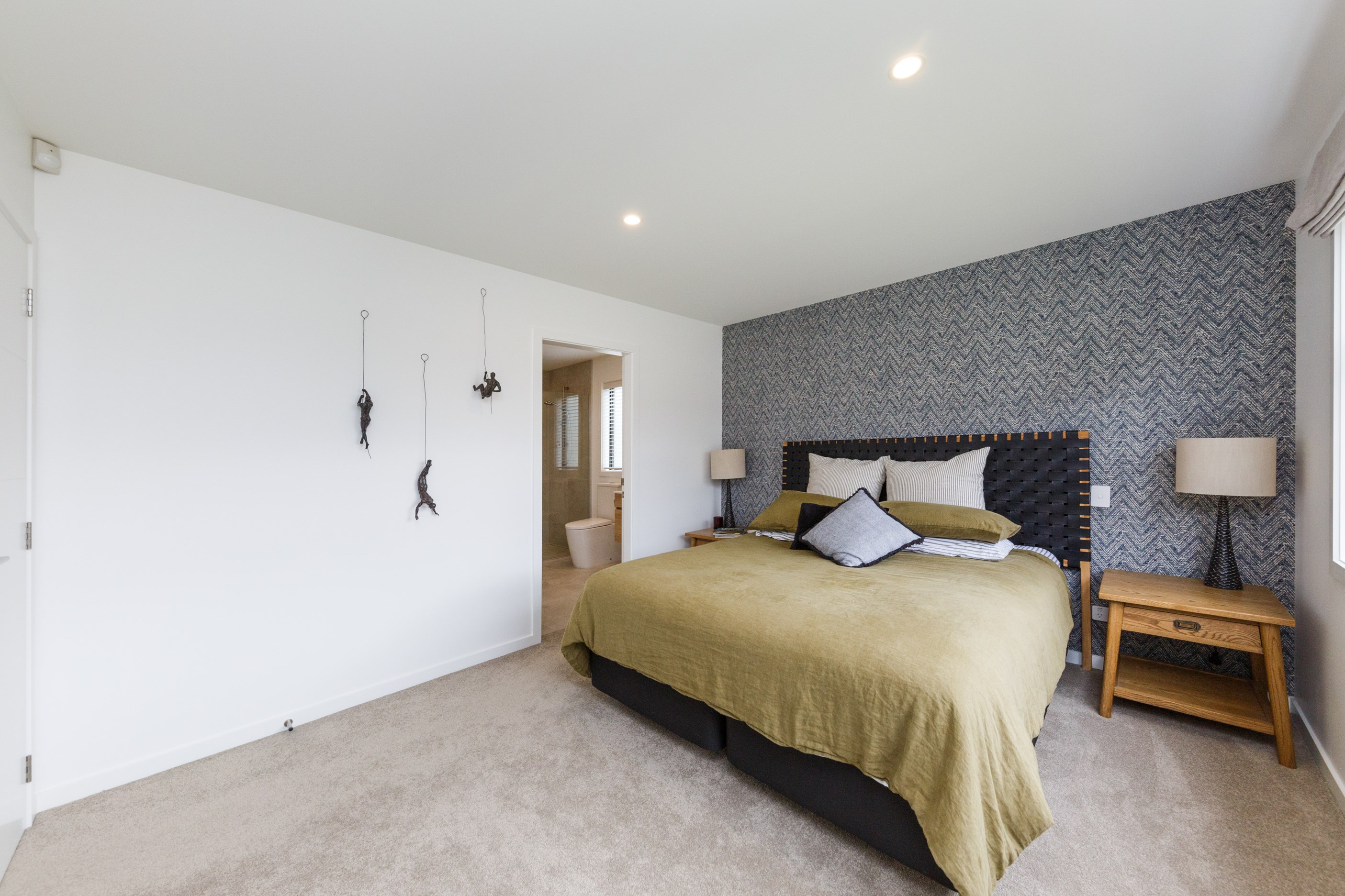 Indoor-outdoor flow is easy. Step outside from the lounge and you’re on a private sun-drenched kwila deck. In the other wing you’ll find three spacious bedrooms and two bathrooms. The main bedroom has an ensuite and a walk-in wardrobe; bathroom fittings include New Zealand-made Methven tapware. The 196sqm H-shaped house also has a study and internal-access double garage. The link between the two wings forms the entrance and provides the structure for the attractive partially covered corridor to the front door.