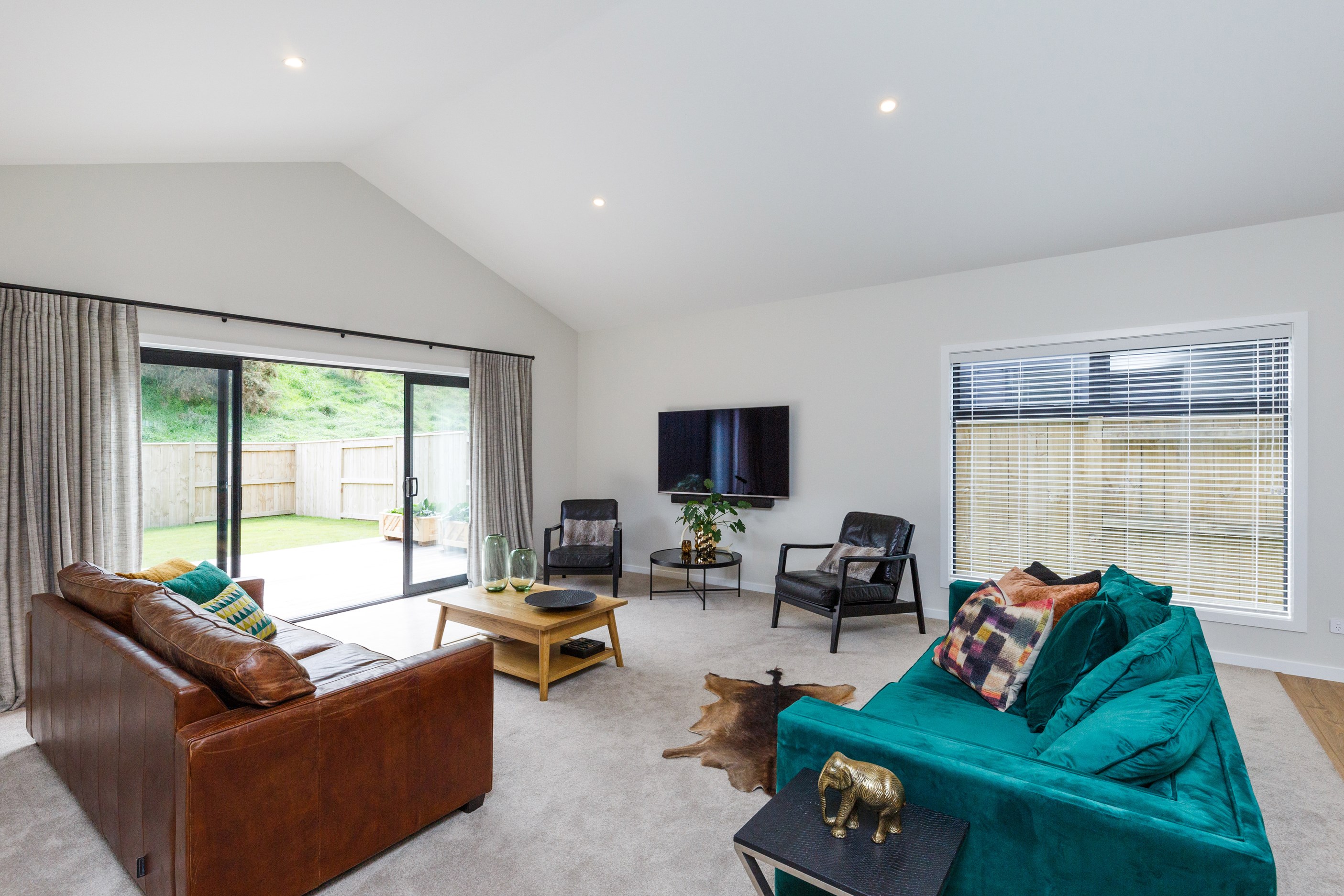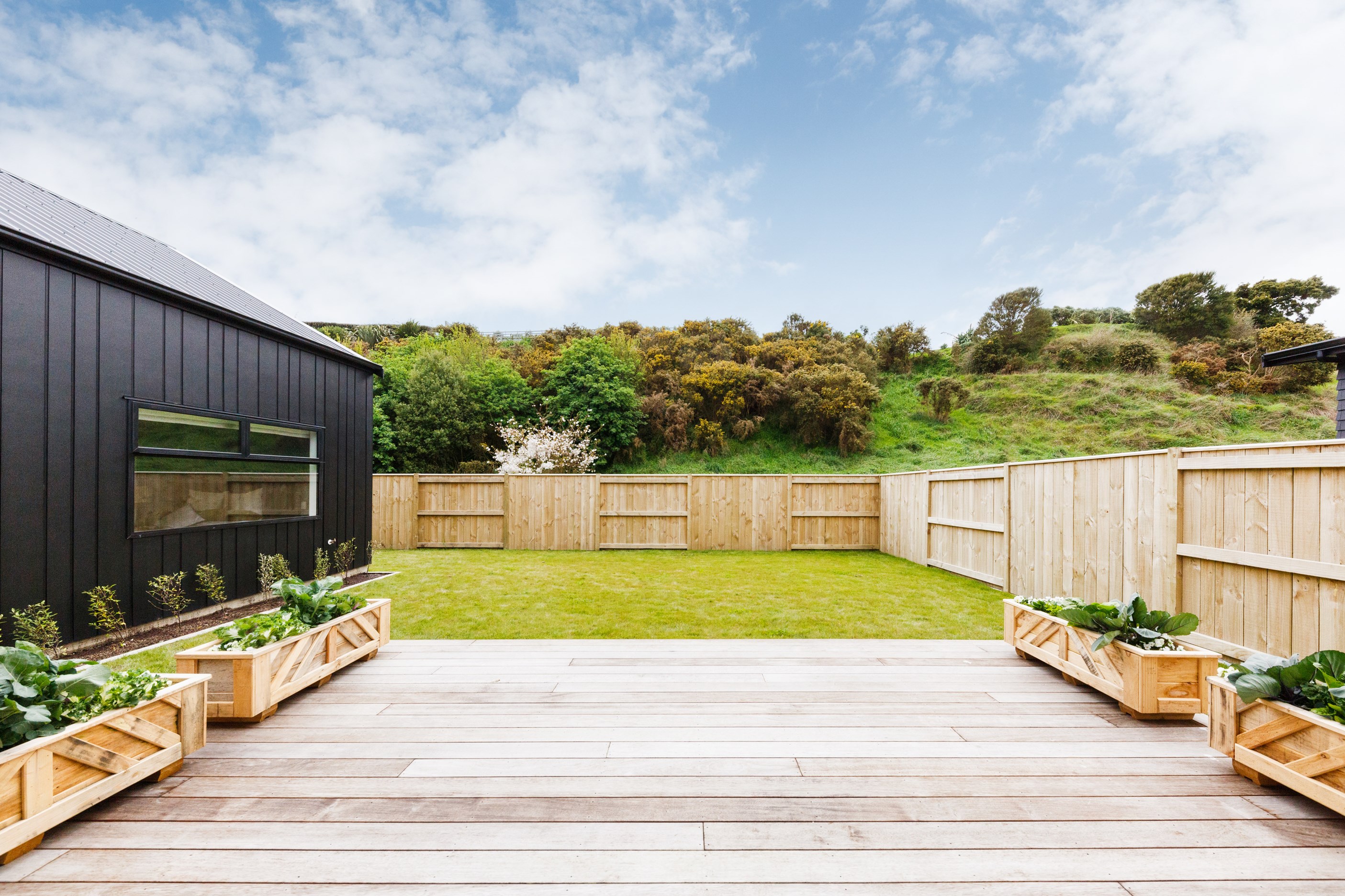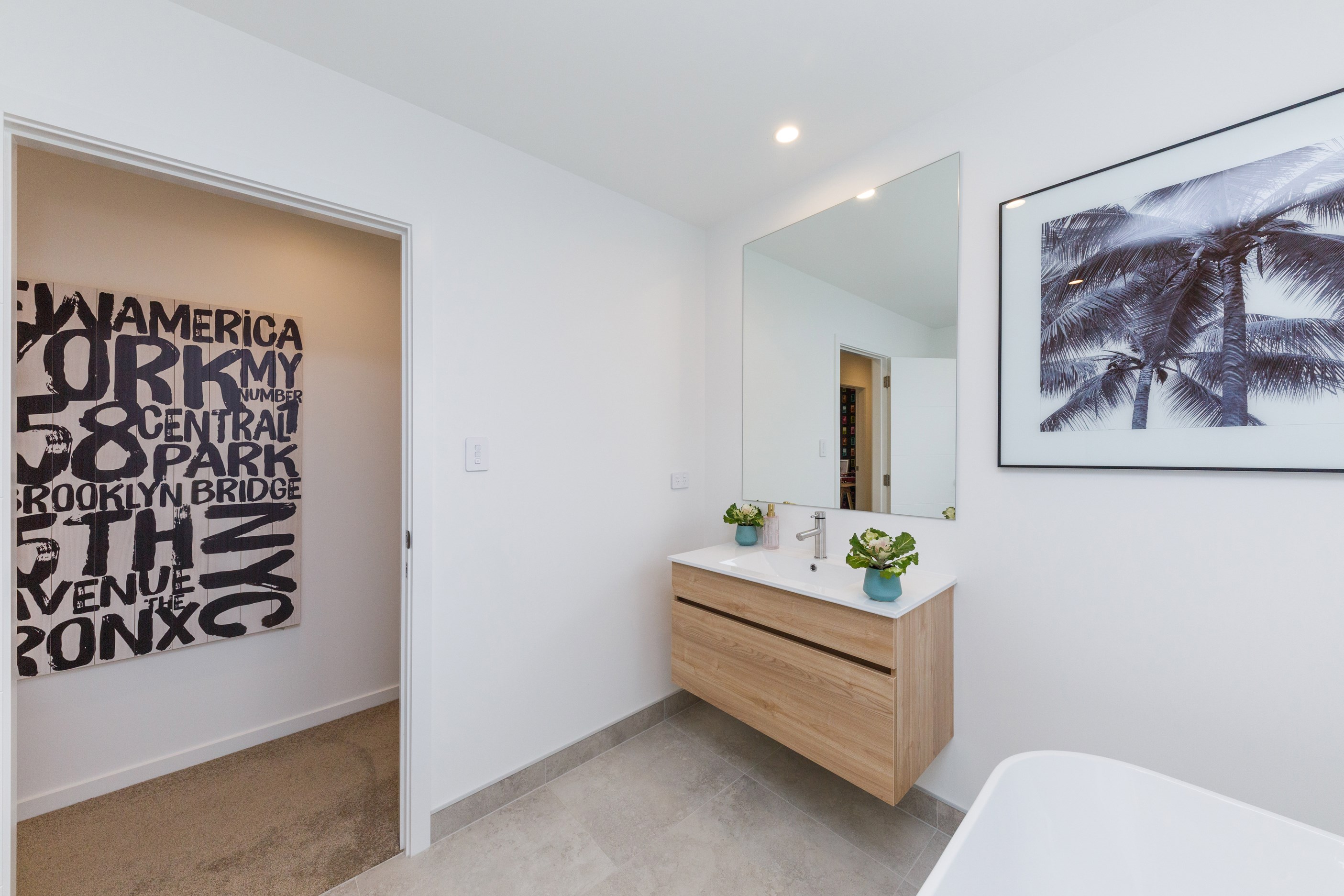 Indoor-outdoor flow is easy. Step outside from the lounge and you’re on a private sun-drenched kwila deck. In the other wing you’ll find three spacious bedrooms and two bathrooms. The main bedroom has an ensuite and a walk-in wardrobe; bathroom fittings include New Zealand-made Methven tapware. The 196sqm H-shaped house also has a study and internal-access double garage. The link between the two wings forms the entrance and provides the structure for the attractive partially covered corridor to the front door.