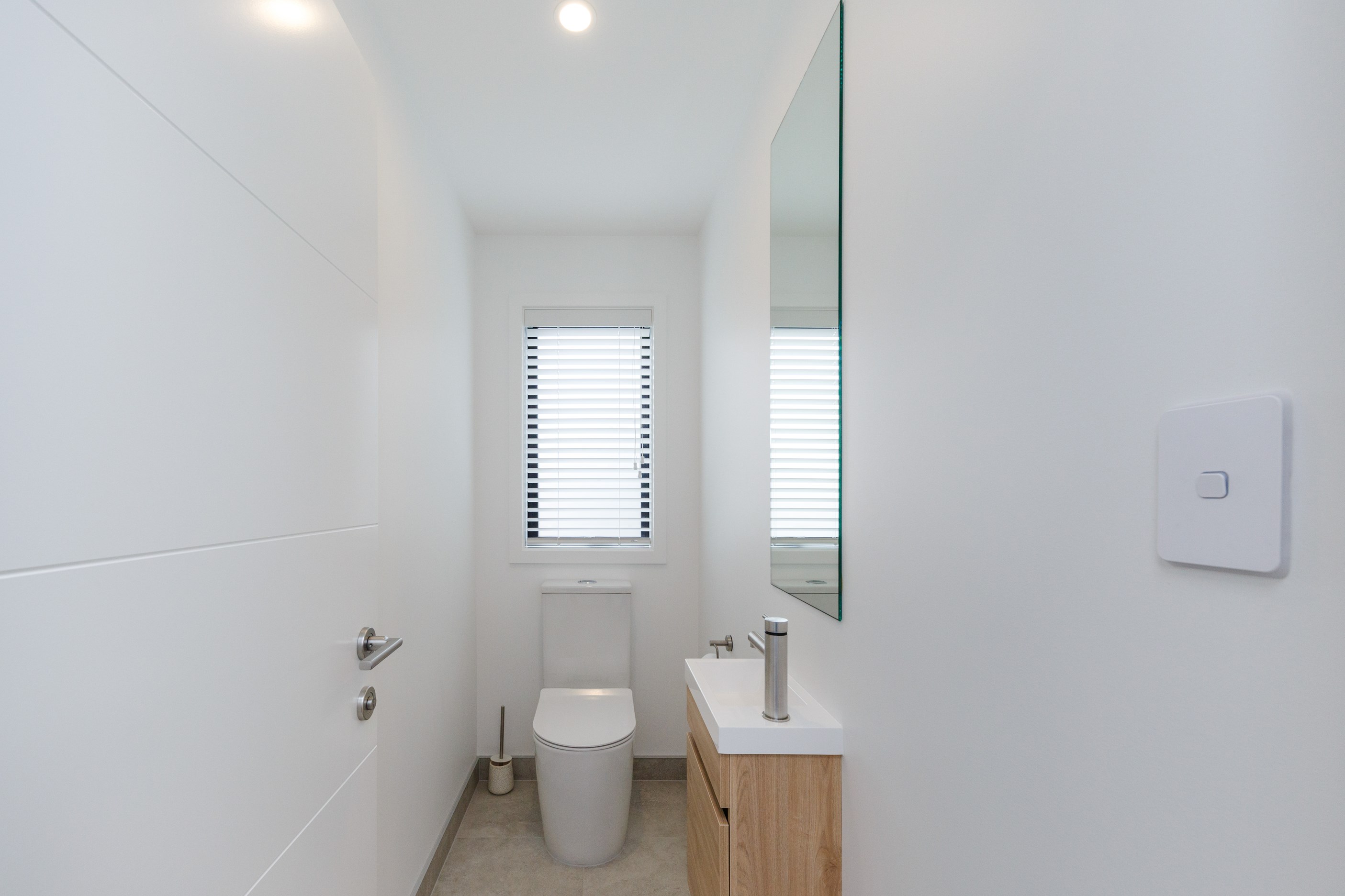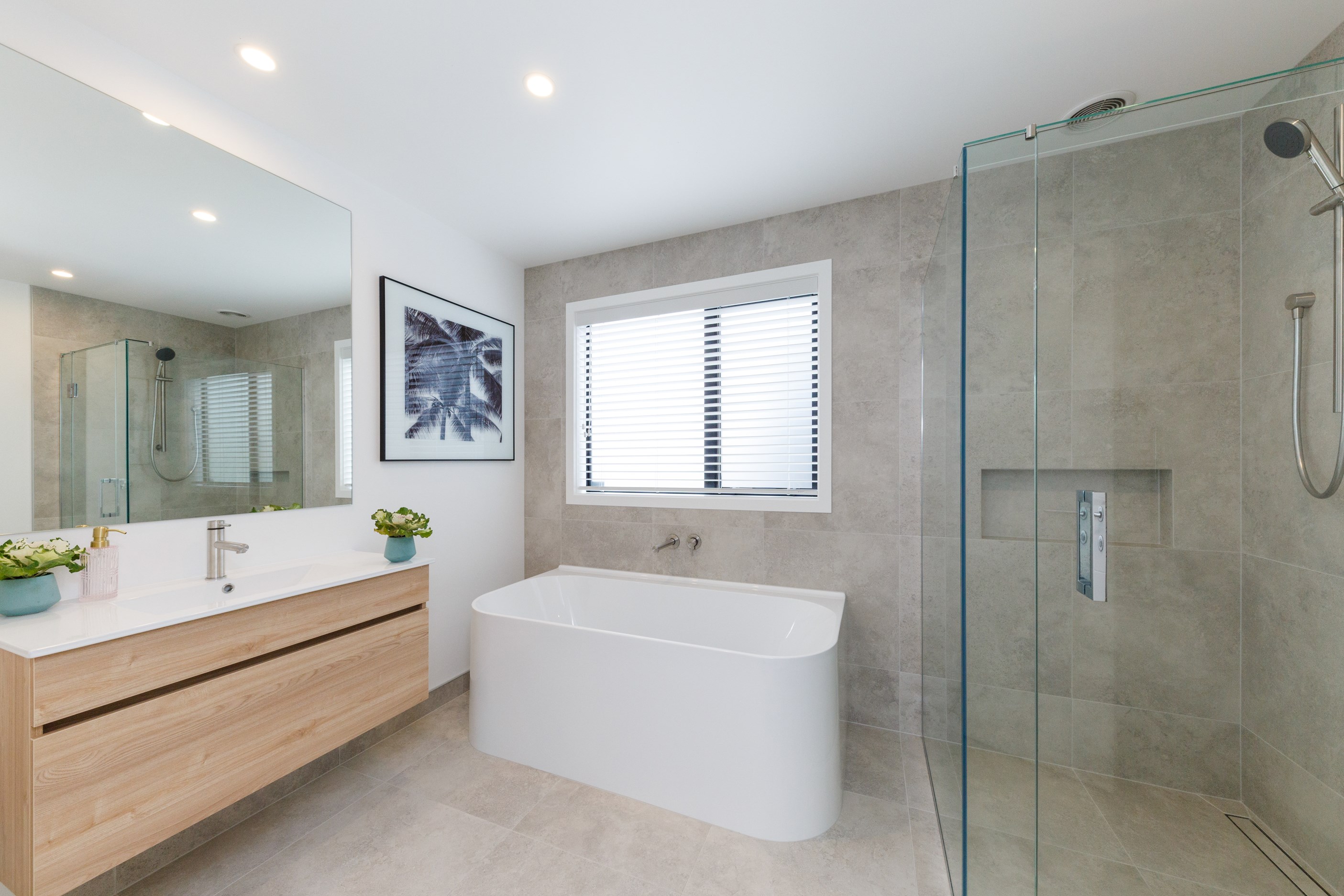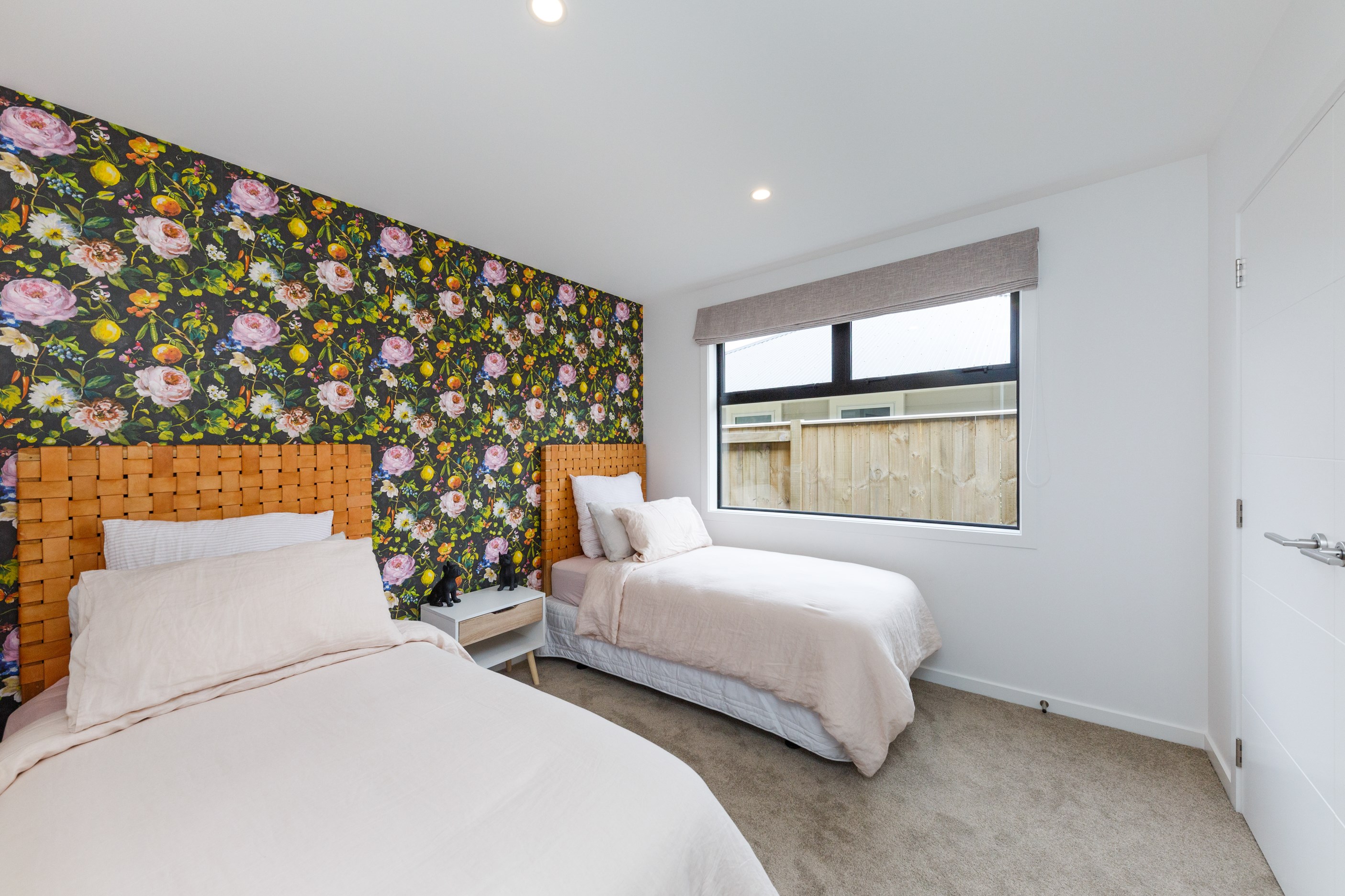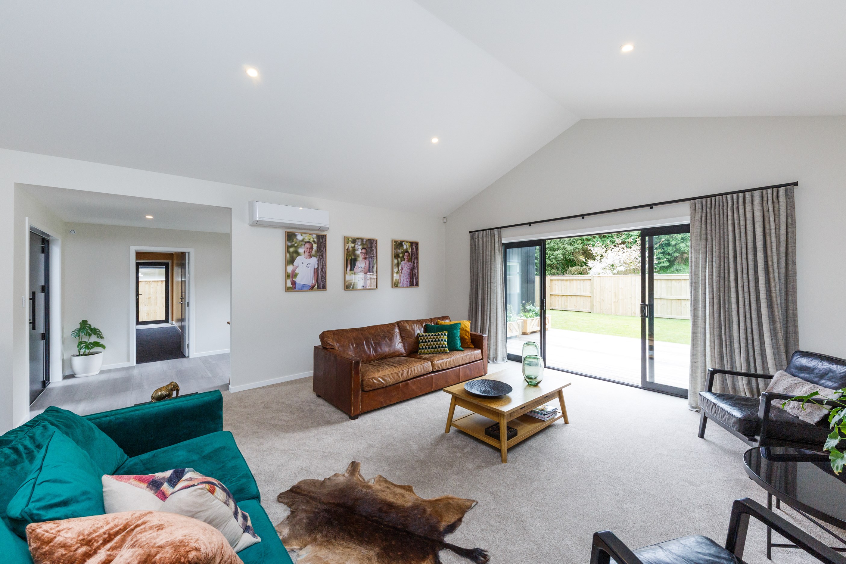 Indoor-outdoor flow is easy. Step outside from the lounge and you’re on a private sun-drenched kwila deck. In the other wing you’ll find three spacious bedrooms and two bathrooms. The main bedroom has an ensuite and a walk-in wardrobe; bathroom fittings include New Zealand-made Methven tapware. The 196sqm H-shaped house also has a study and internal-access double garage. The link between the two wings forms the entrance and provides the structure for the attractive partially covered corridor to the front door.