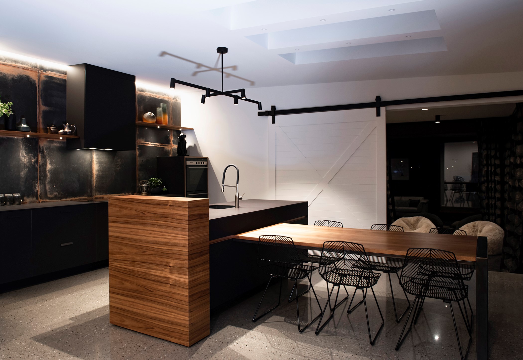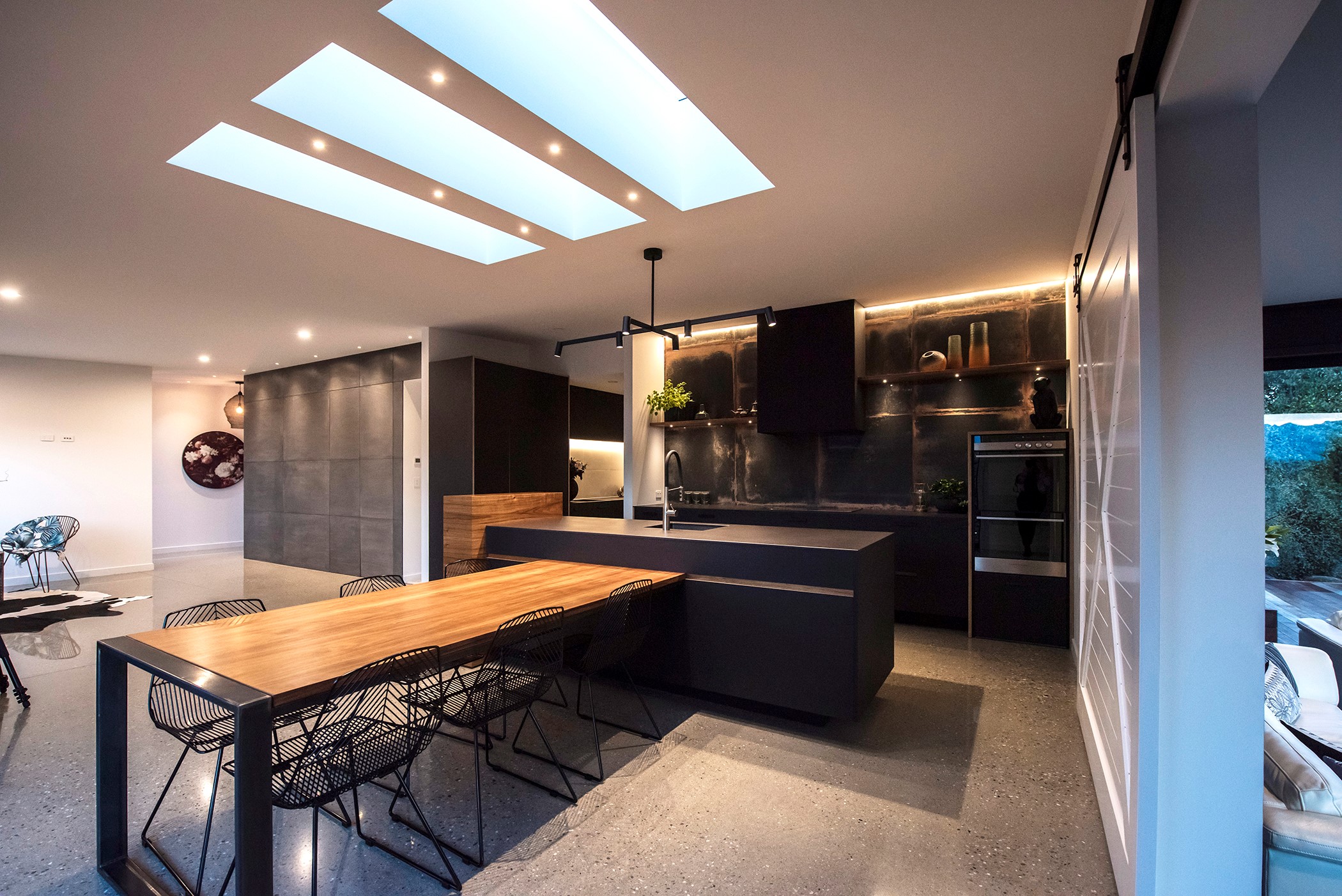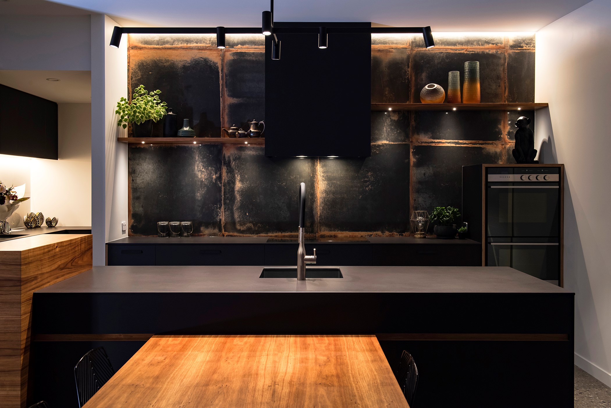 Contemporary considerations, such as underfloor heating, are boosted by polished floors for solar gain, while fixed and opening skylights create light and space. Even the garage is perfection, with insulation, underfloor heating and skylights – so well planned, it’s ideal as a fourth bedroom when there are guests to accommodate. There are extras such as electric-opening kitchen drawers and a heat pump, and the solar-power system keeps the home’s running costs low. A pleasure to live and play in, this home is a stunning example of what can be achieved with smart planning, great design and top-notch craftsmanship.