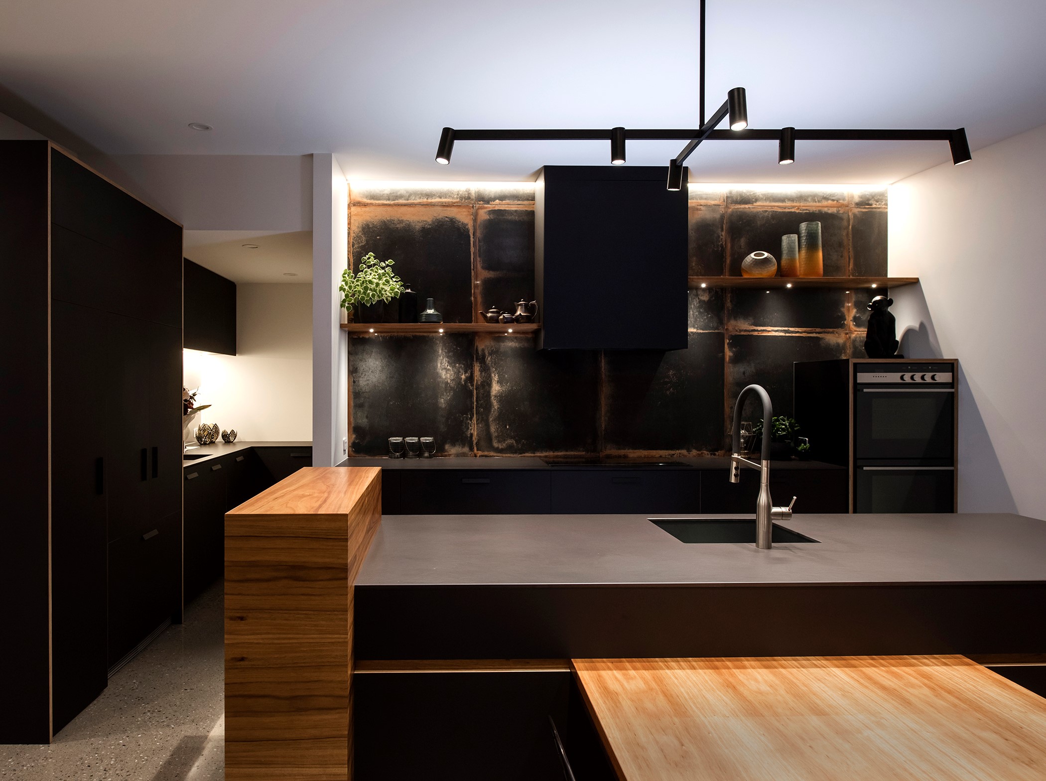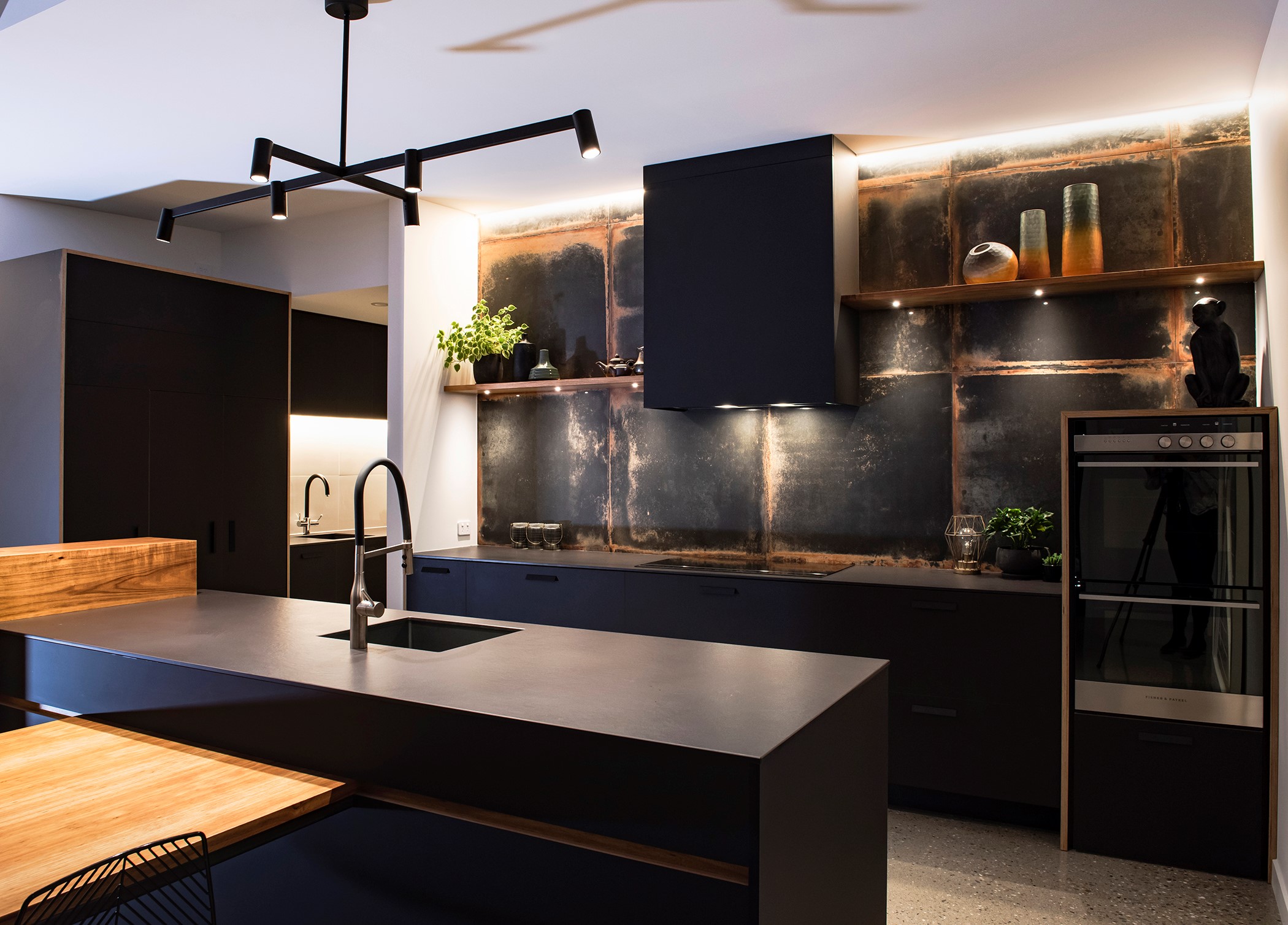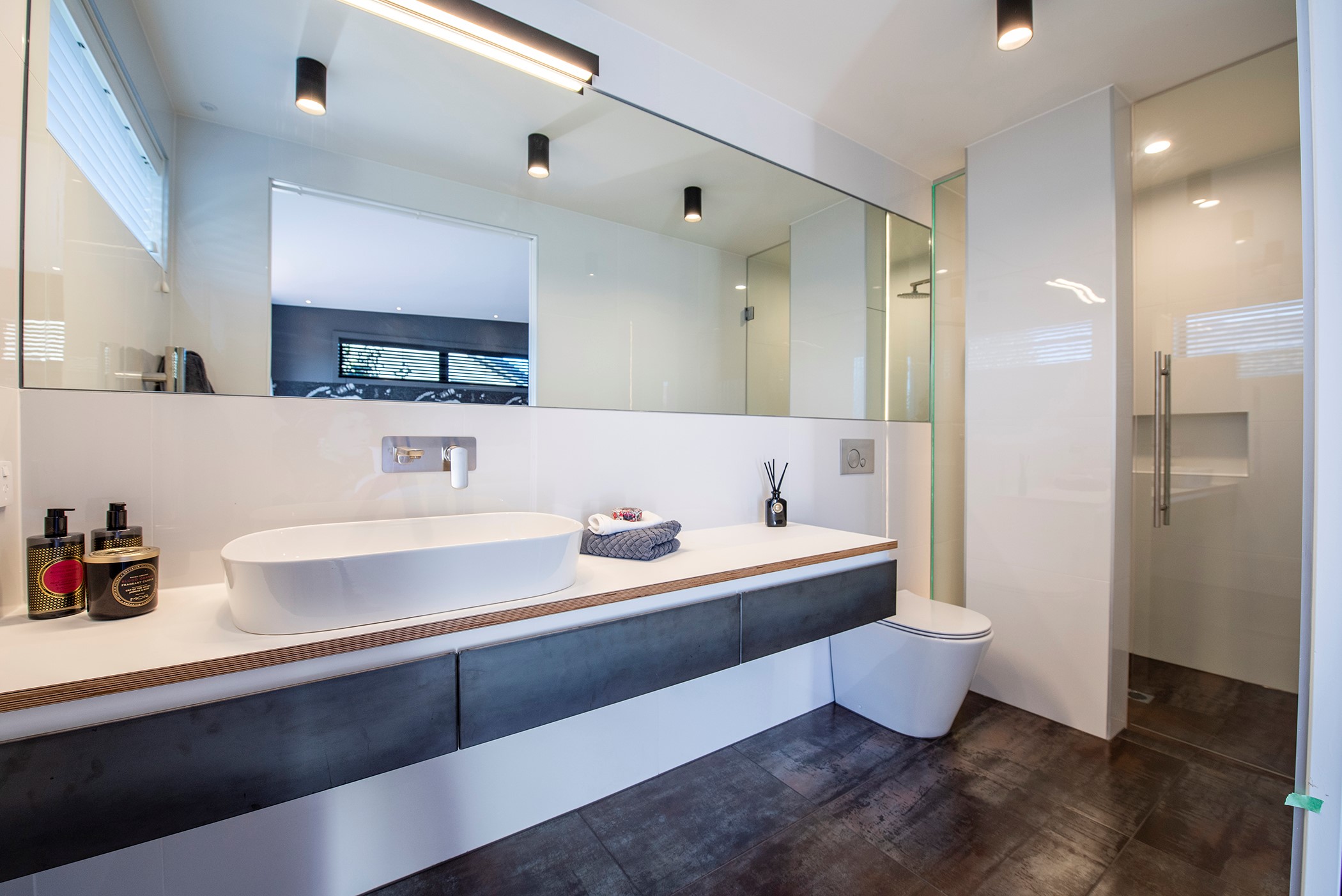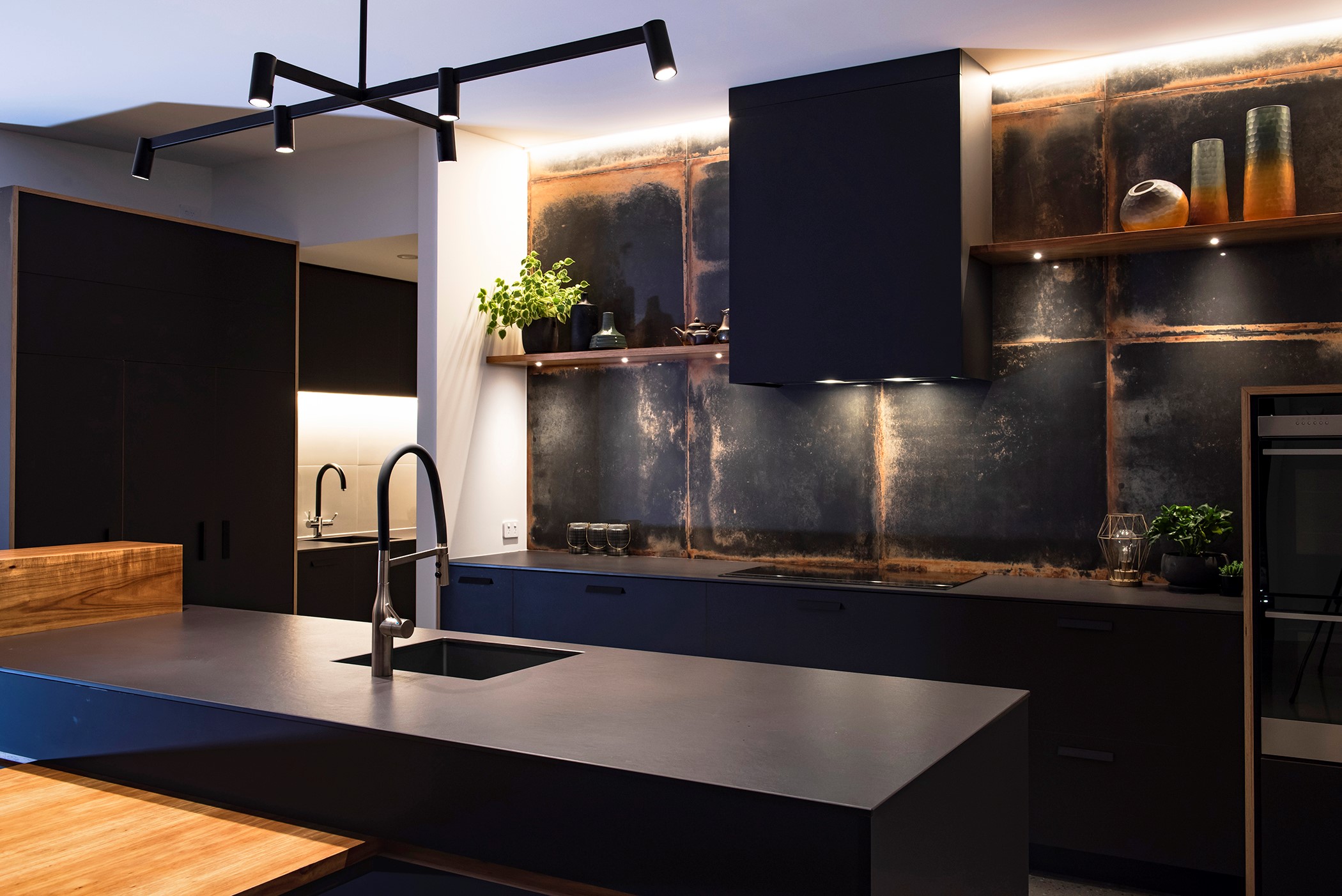 Contemporary considerations, such as underfloor heating, are boosted by polished floors for solar gain, while fixed and opening skylights create light and space. Even the garage is perfection, with insulation, underfloor heating and skylights – so well planned, it’s ideal as a fourth bedroom when there are guests to accommodate. There are extras such as electric-opening kitchen drawers and a heat pump, and the solar-power system keeps the home’s running costs low. A pleasure to live and play in, this home is a stunning example of what can be achieved with smart planning, great design and top-notch craftsmanship.
