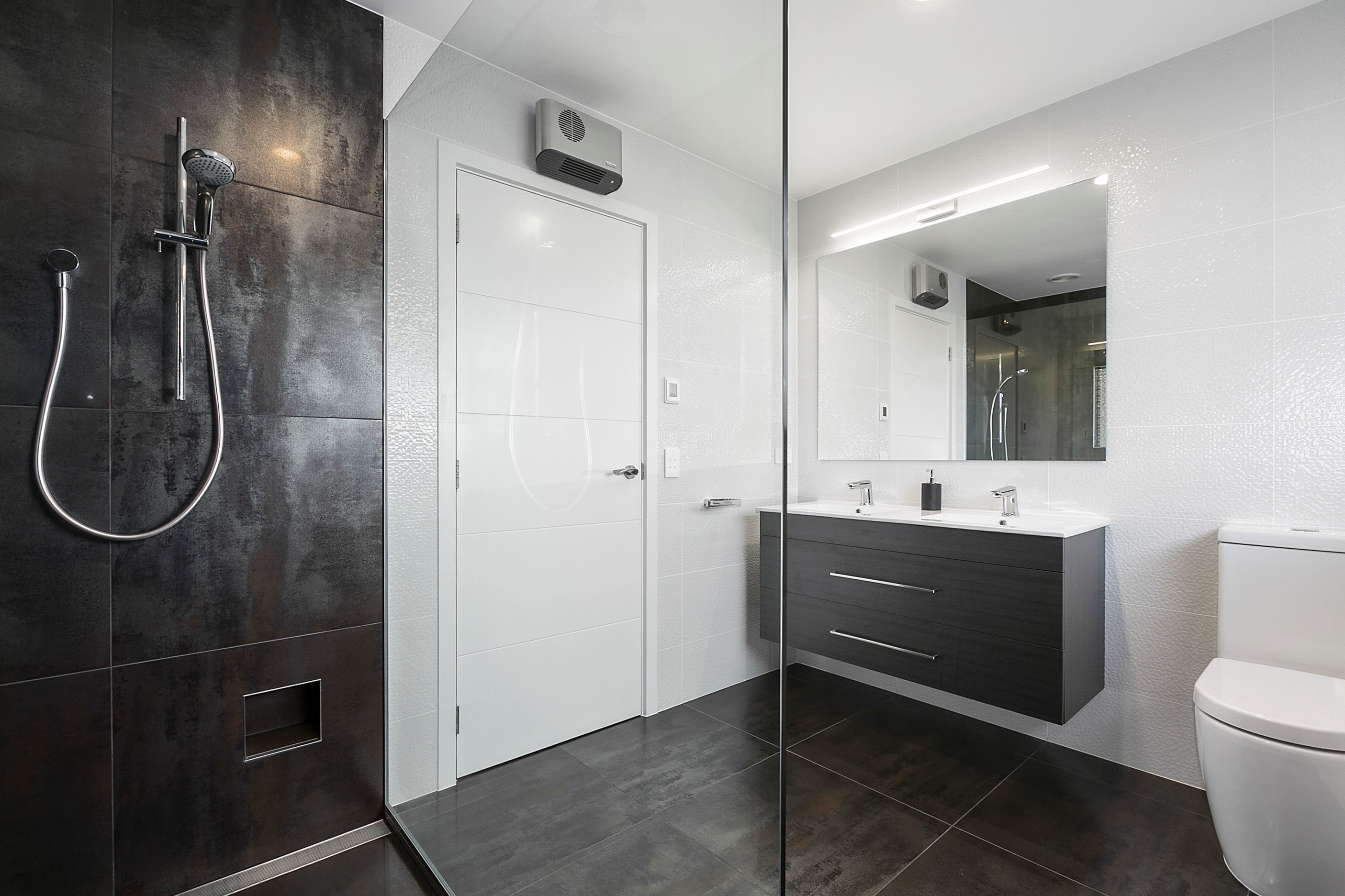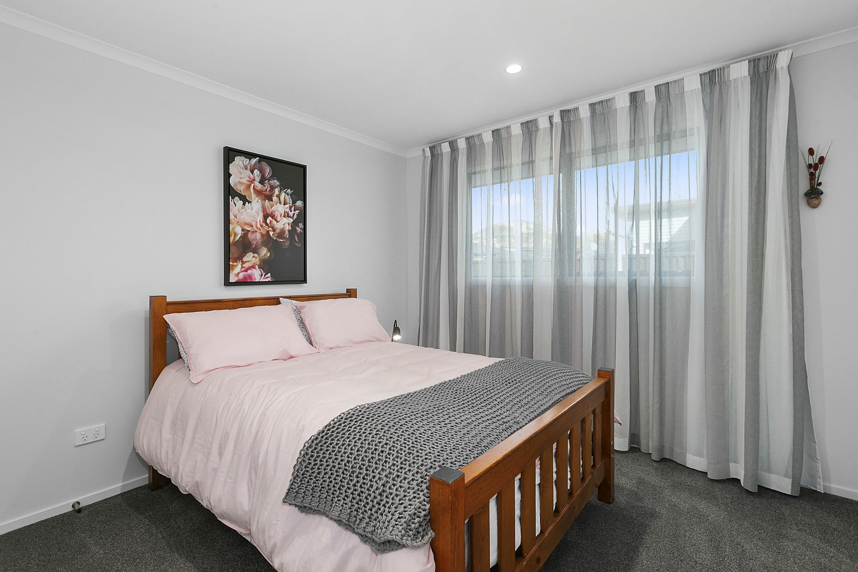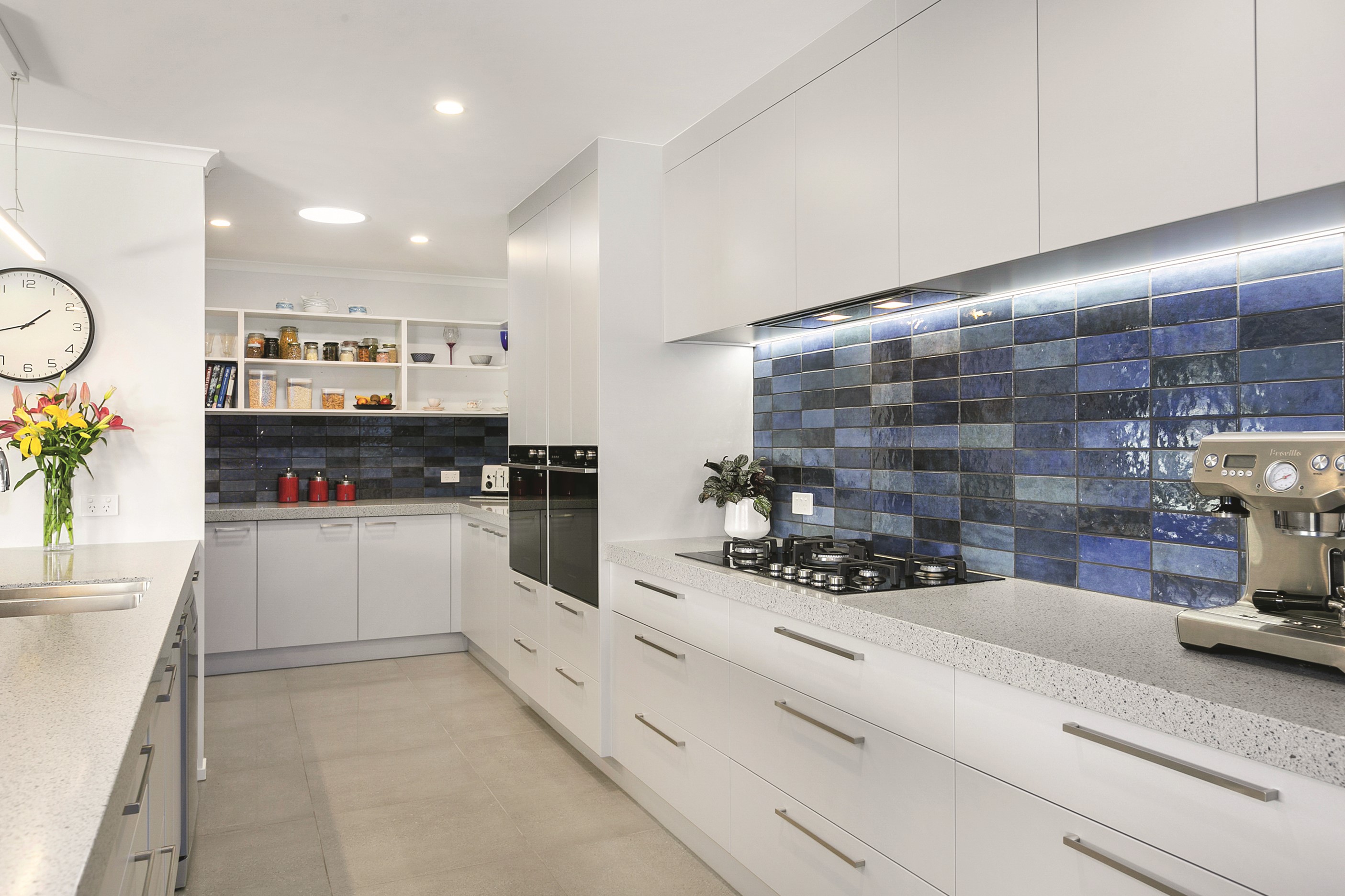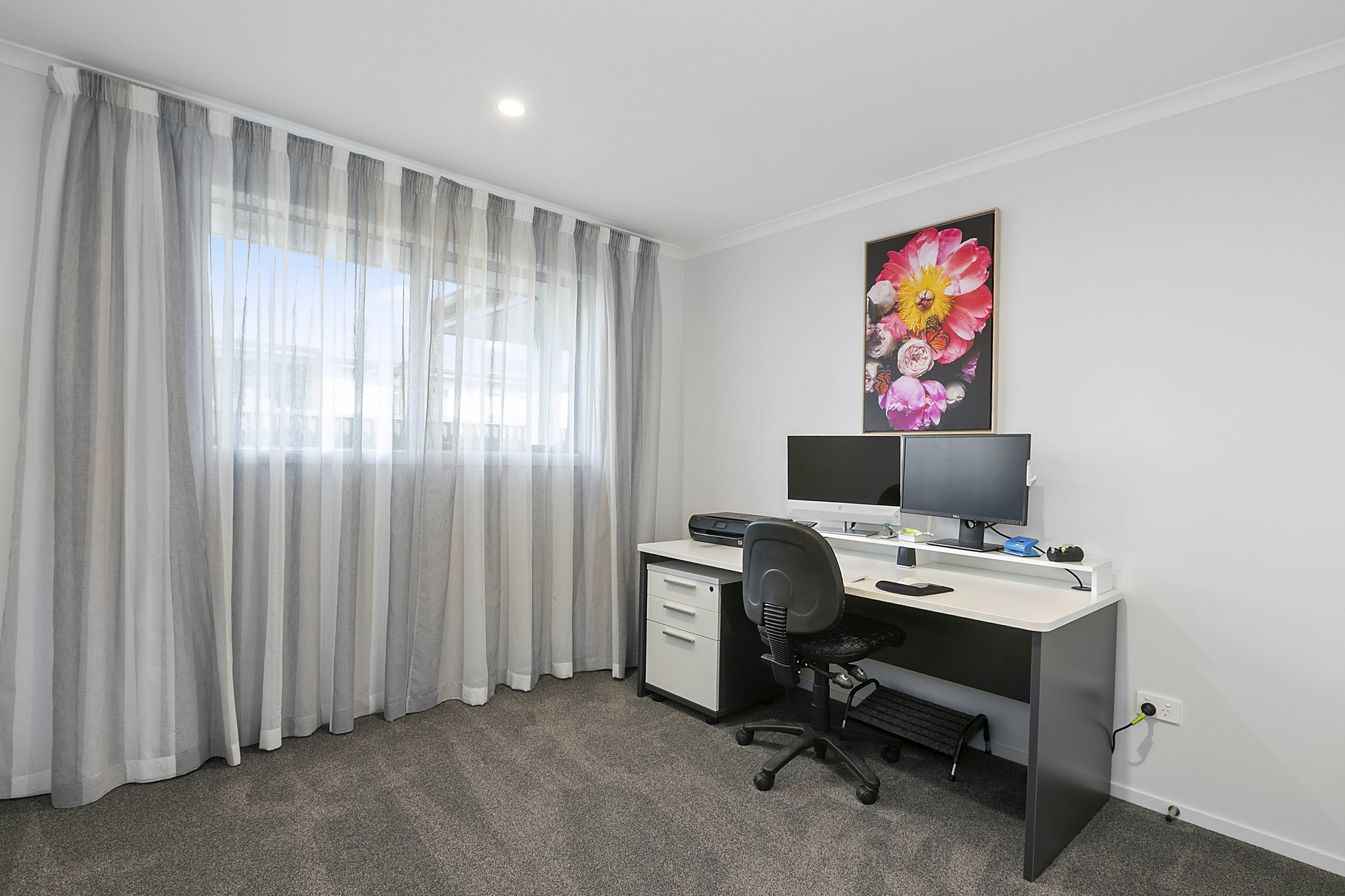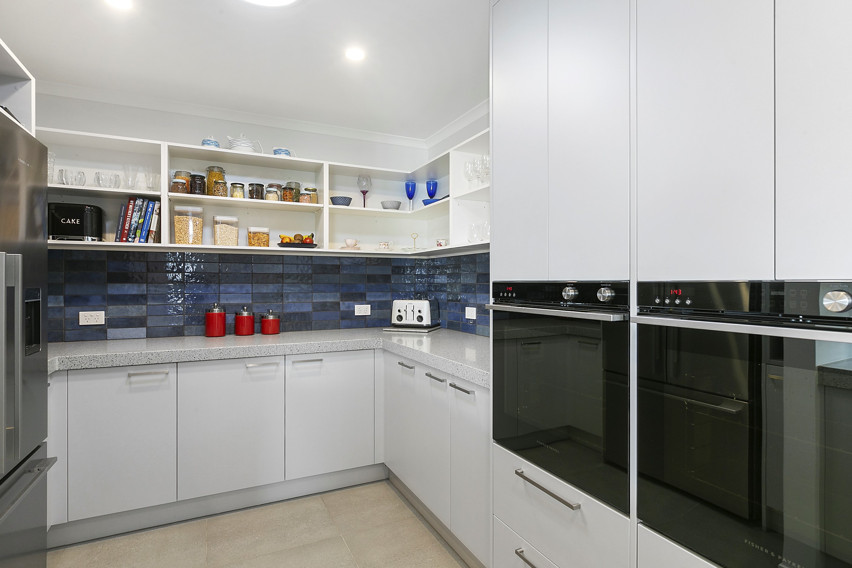 At the heart of this family home is a wonderful open-plan kitchen and scullery featuring TriStone bench tops and a tiled splashback, the lack of dividing walls creating flow. This looks out to the dining and living rooms, where ranch slider doors lead to a covered alfresco area. A separate lounge leads from the open-plan design through a feature timber barn door, providing flexible use of the living spaces. A matching feature door separates the entry from the living room, providing the handy option of being able to close off the entry as required.
