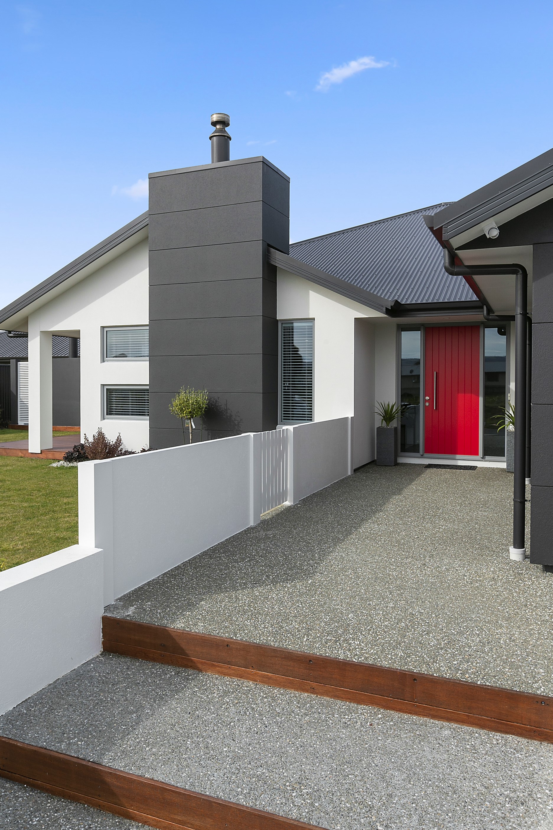 This sunny Mosgiel home has been cleverly designed for maximum family enjoyment. The Resene Construction Systems 60mm Graphex exterior cladding includes an appealing negative detail feature. Low-E Max double-glazed windows and Dimond corrugate roofing complete the exterior. An internal wall in the entry features a clay plaster with pāua shell finish.