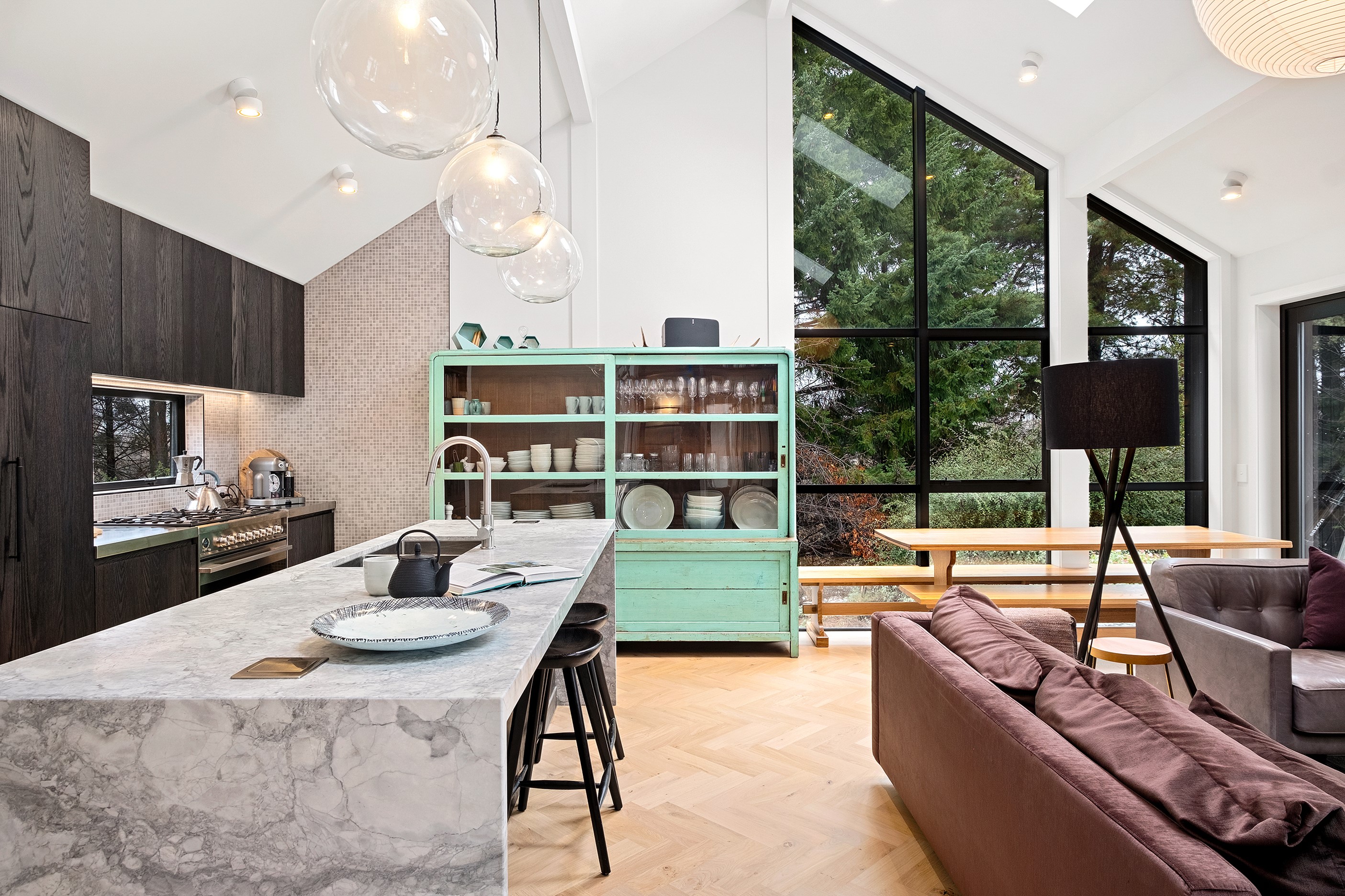 A complete renovation of a tired 70s Lockwood house has resulted in a stunning contemporary retreat that sits comfortably within its semi-rural, alpine setting. The transformation involved stripping the 160sqm house back to its shell and reworking the interior using insulated plasterboard. It was thermally glazed to maximise heat retention in winter and keep it cool in summer.