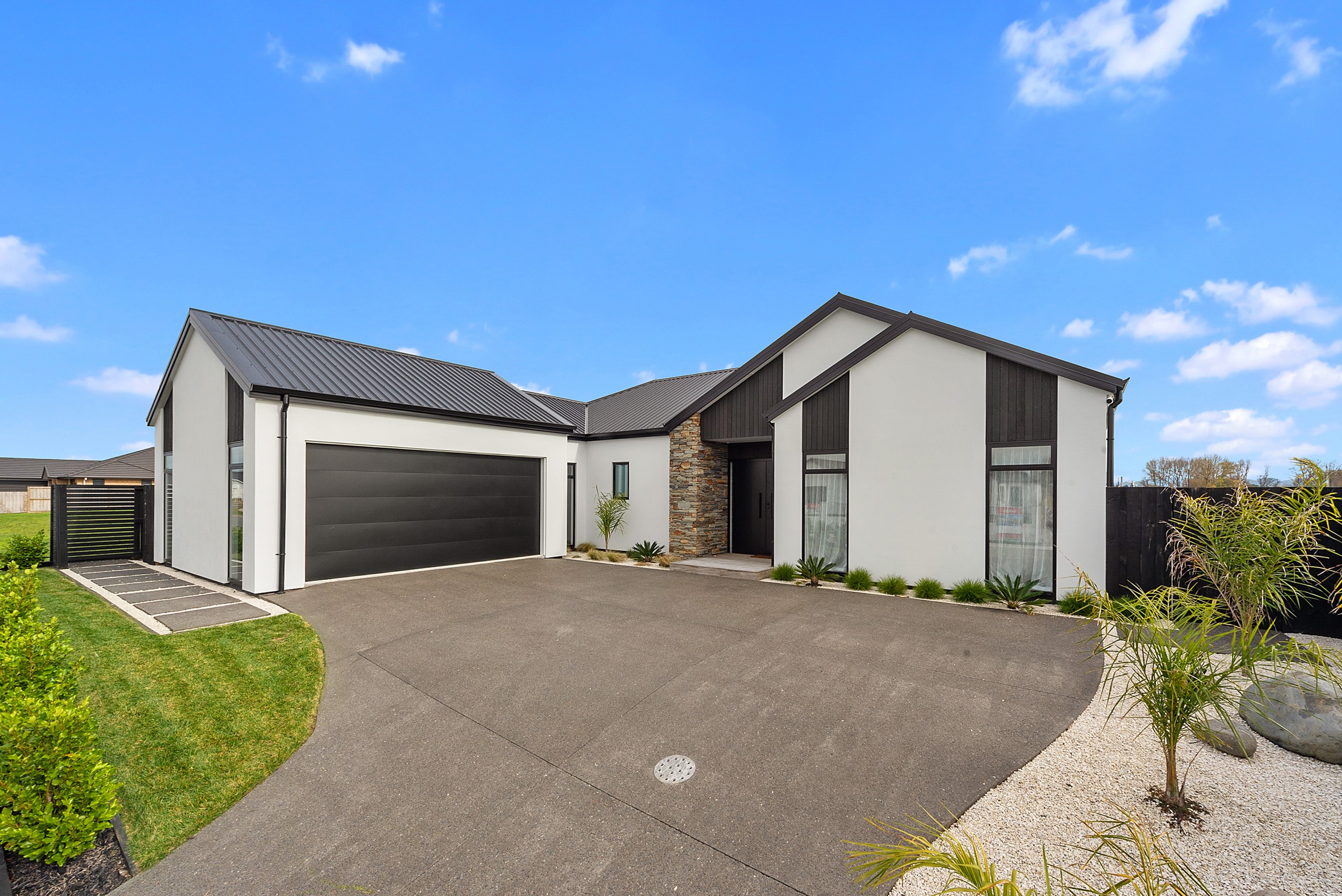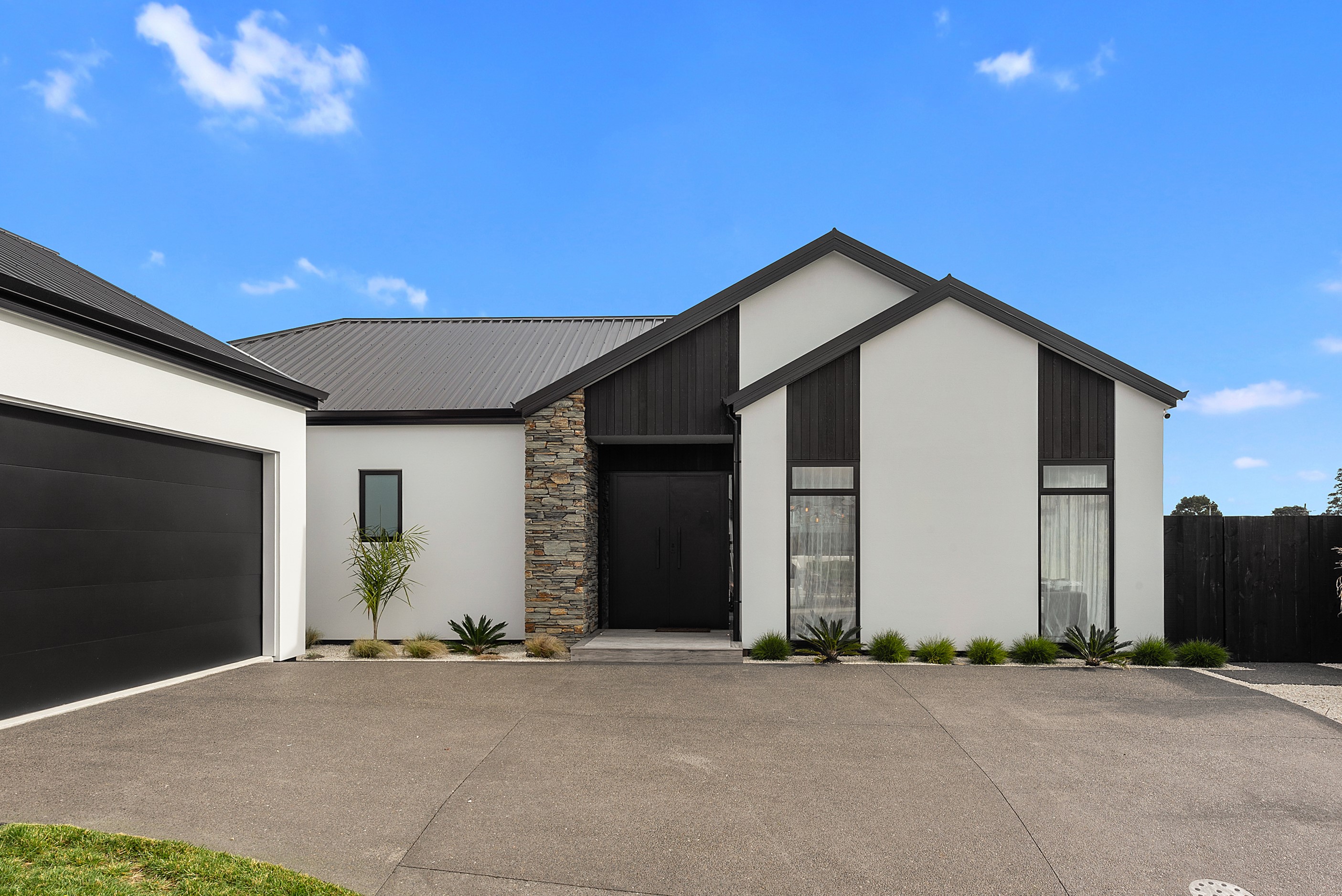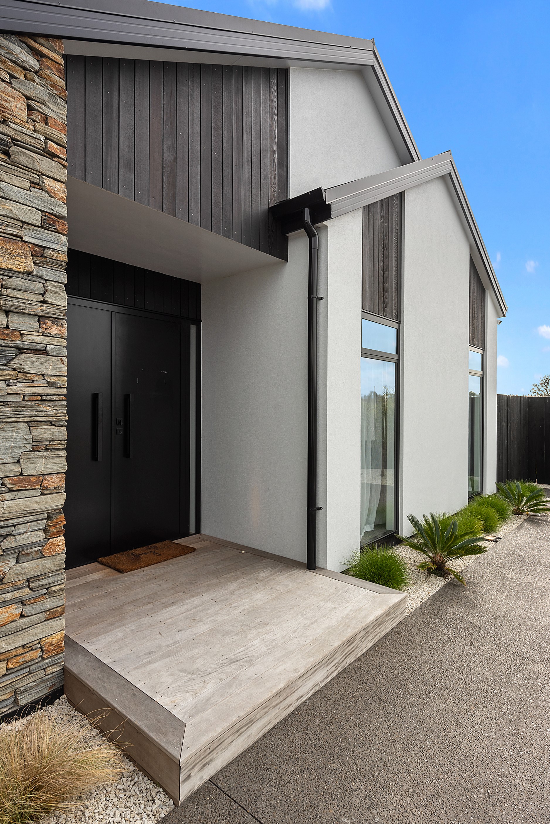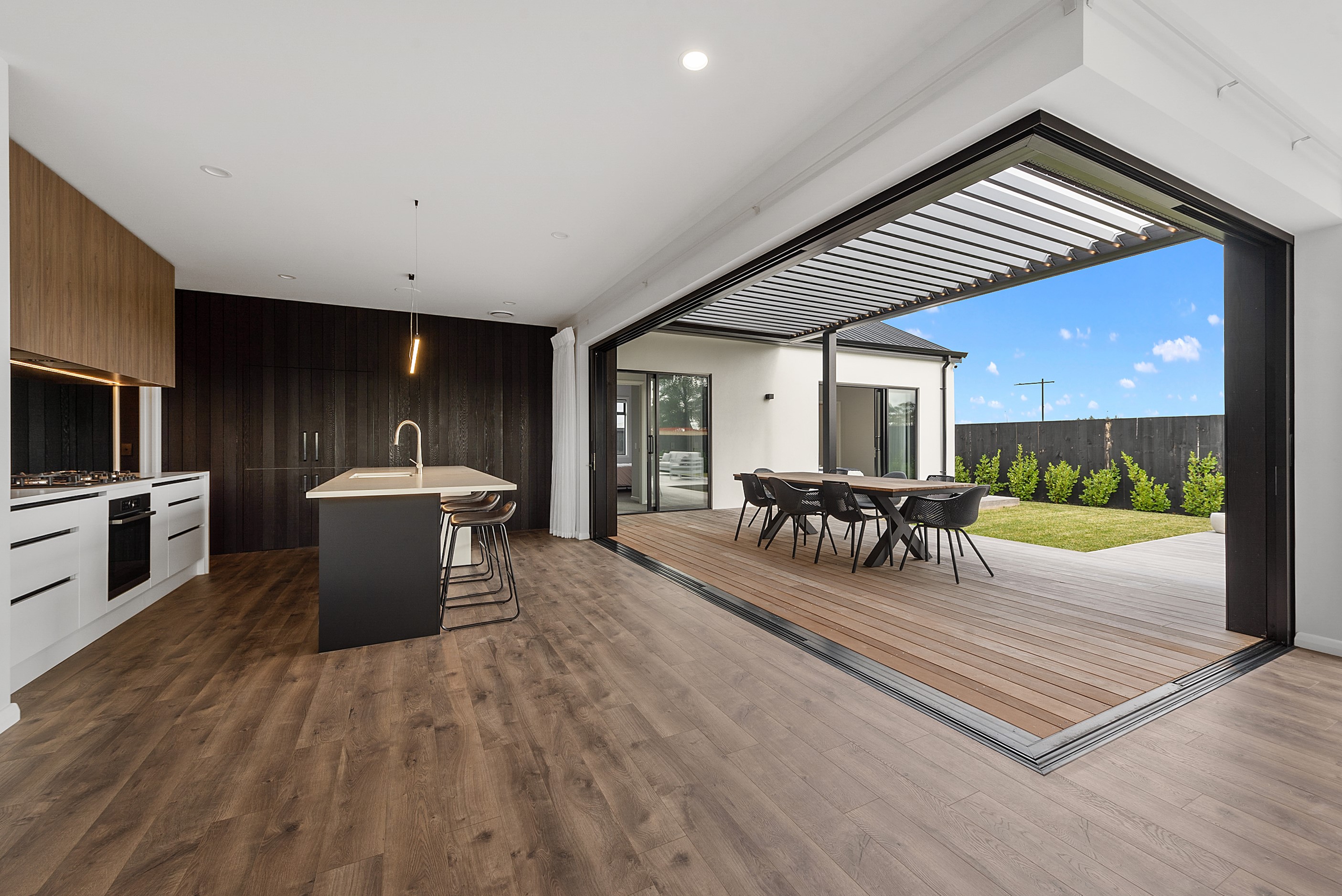 This modern four-bedroom, two-bathroom home was designed as an entertainer’s dream. A fresh take on the classic pavilion-style layout, visitors are greeted by an Otago stone schist wall and large double door that connects to an open-plan living area. Start the morning with a coffee at the breakfast bar, or out on the deck with louvres that can be closed to make it an all-weather space. This west-facing spot is also a relaxing place to enjoy sunny afternoons.