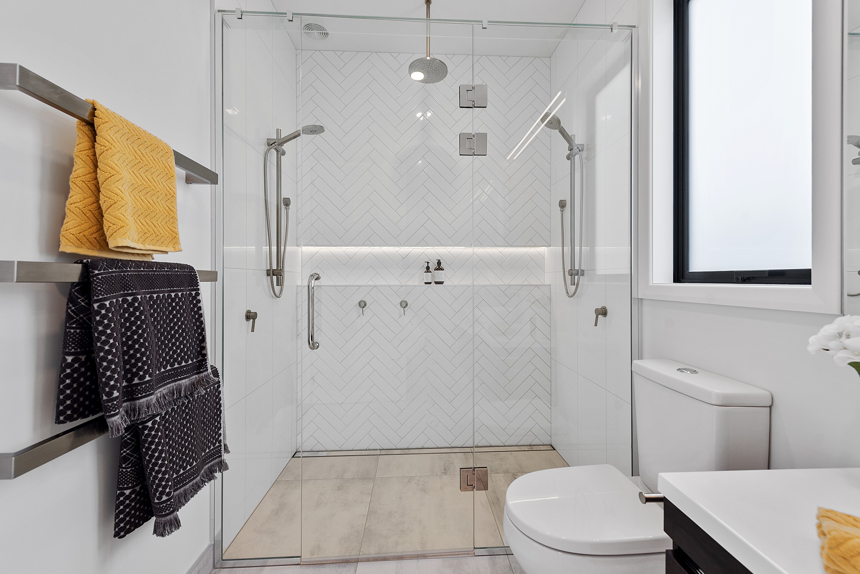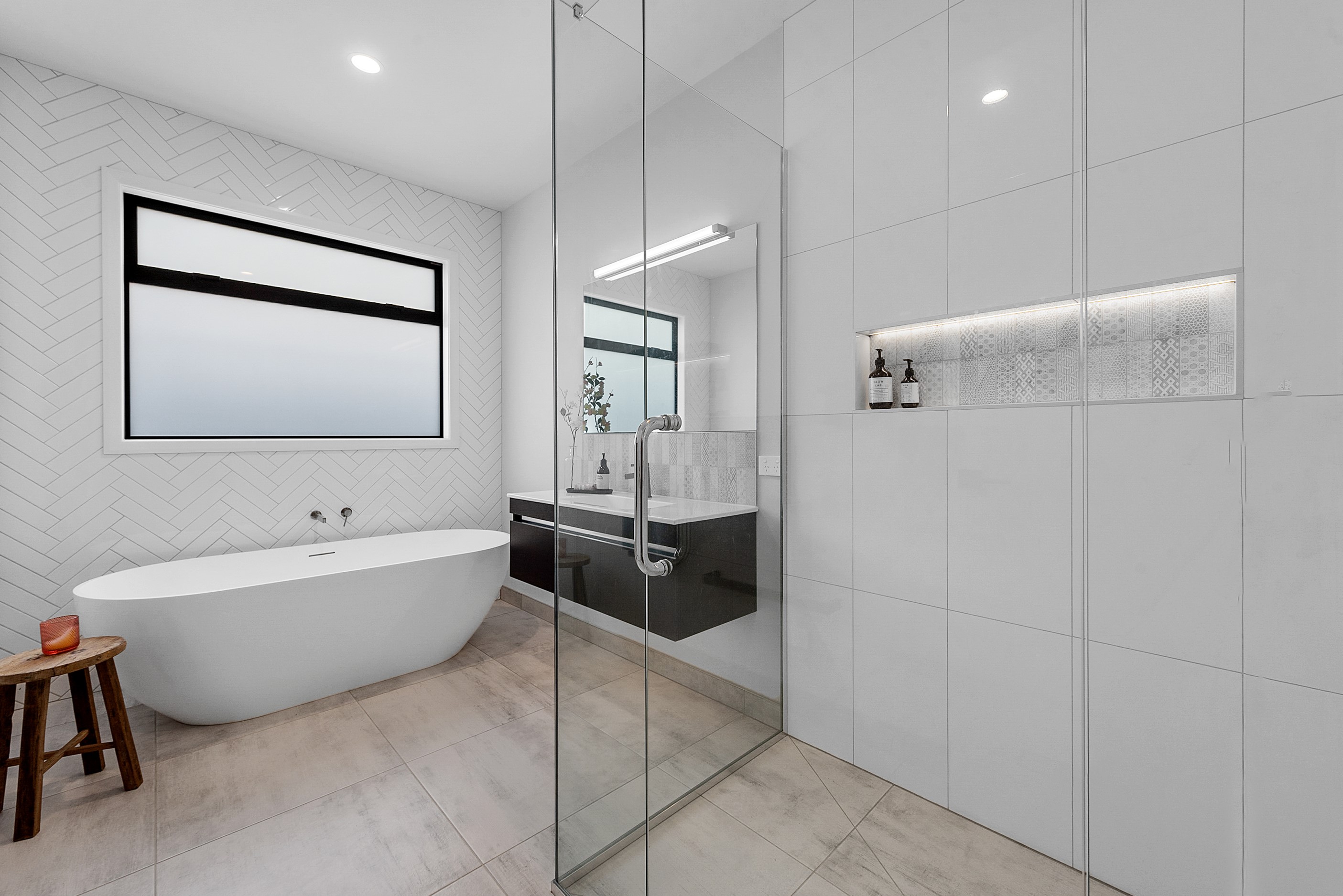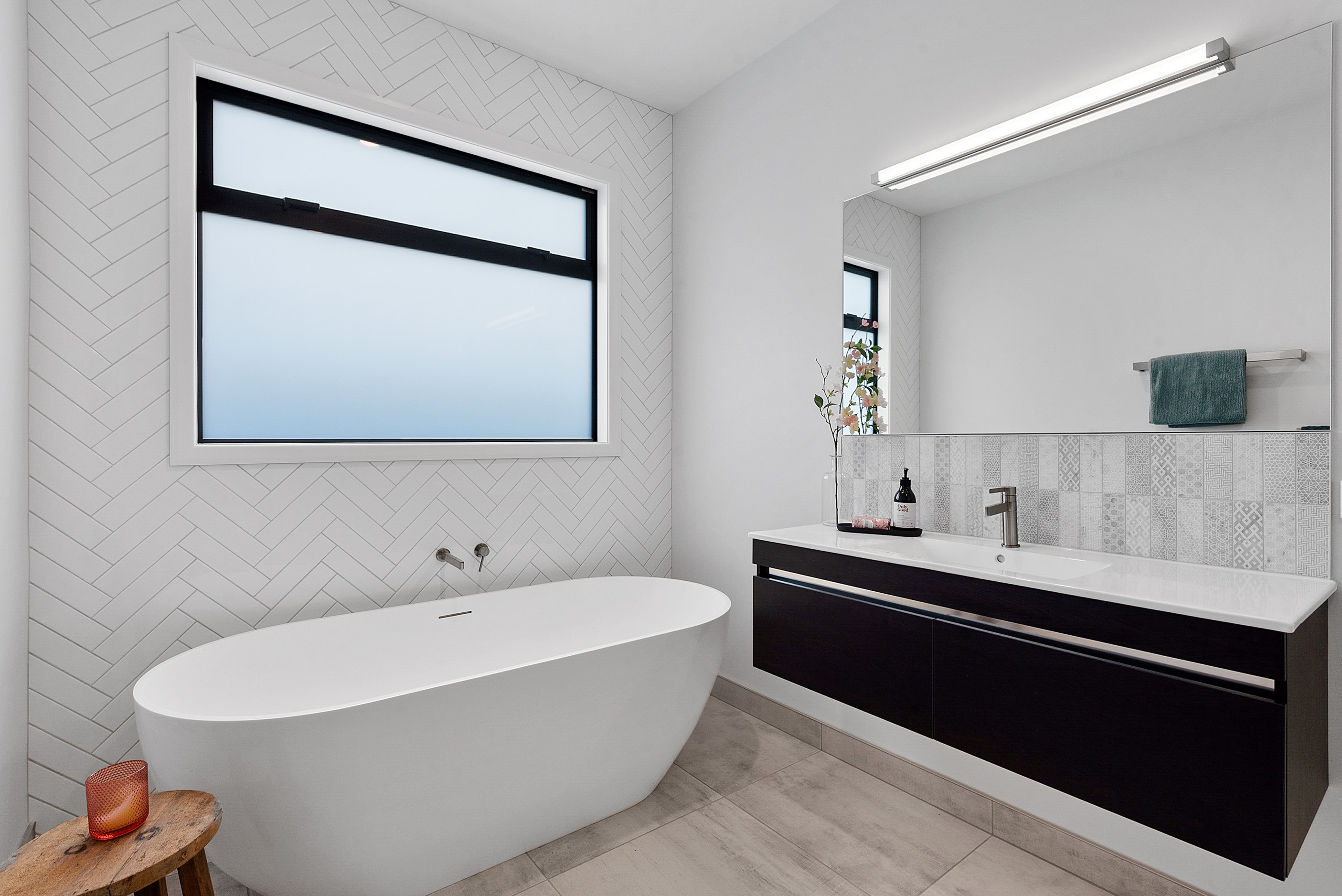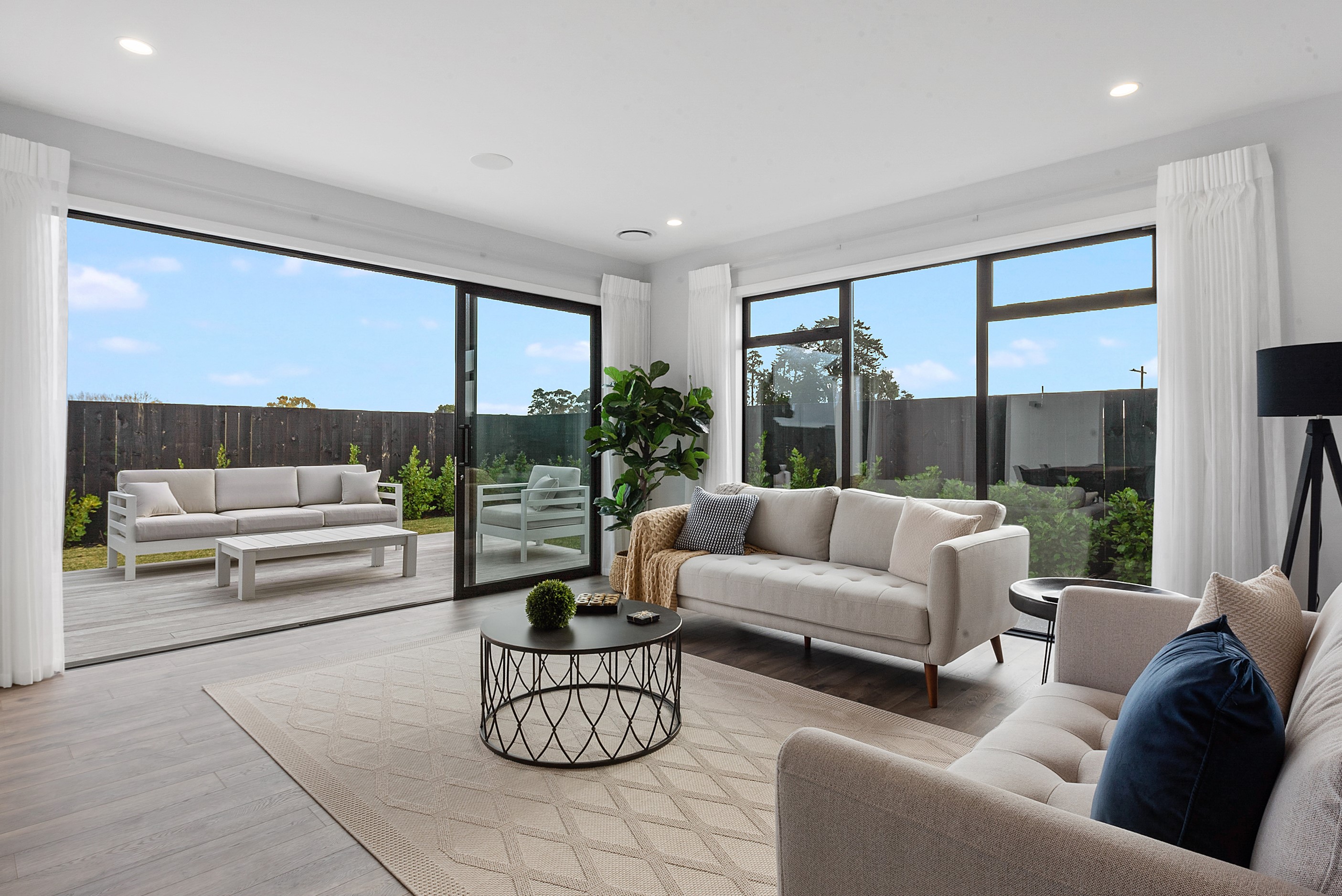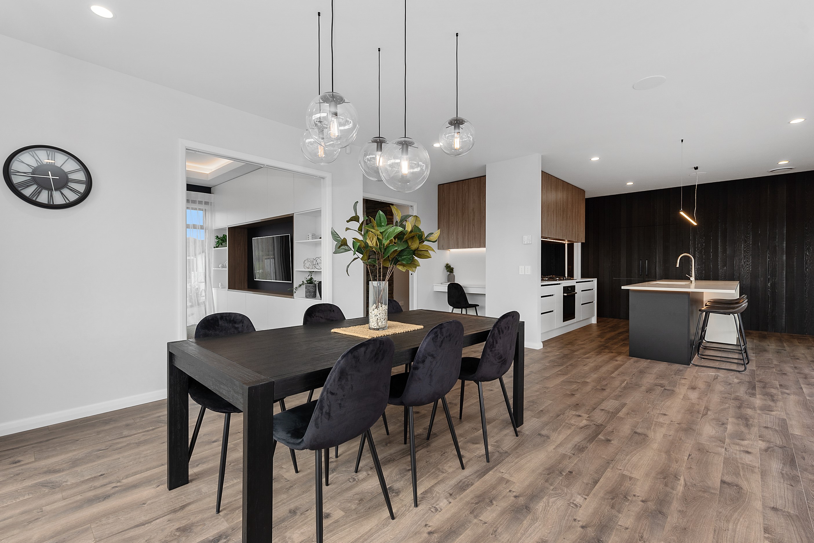 This modern four-bedroom, two-bathroom home was designed as an entertainer’s dream. A fresh take on the classic pavilion-style layout, visitors are greeted by an Otago stone schist wall and large double door that connects to an open-plan living area. Start the morning with a coffee at the breakfast bar, or out on the deck with louvres that can be closed to make it an all-weather space. This west-facing spot is also a relaxing place to enjoy sunny afternoons.