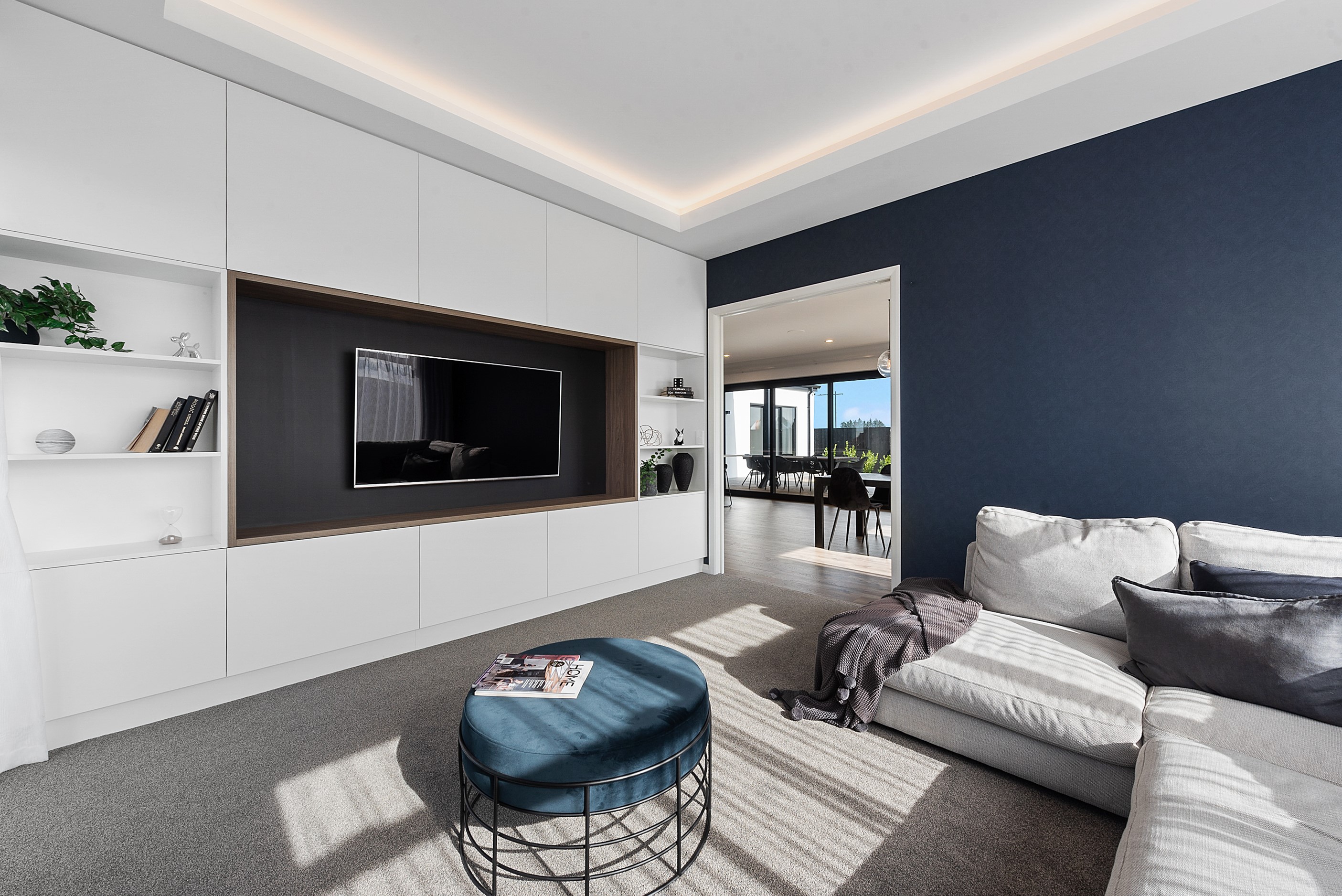 The kitchen features a mirrored glass splashback to reflect the natural light that flows through the large sliding doors, and a walk-in pantry to keep the clutter hidden. With plenty of glazing and glass sliders, the lounge area maximises indoor-outdoor living. The second lounge area with tray ceiling and feature lighting can be closed off from the rest of the house, making it ideal for family movie nights. The bedrooms are found in the other wing of the home. A walk-in-wardrobe and separate ensuite gives the master ultimate privacy, not to mention its own access to the deck. A true stunner.