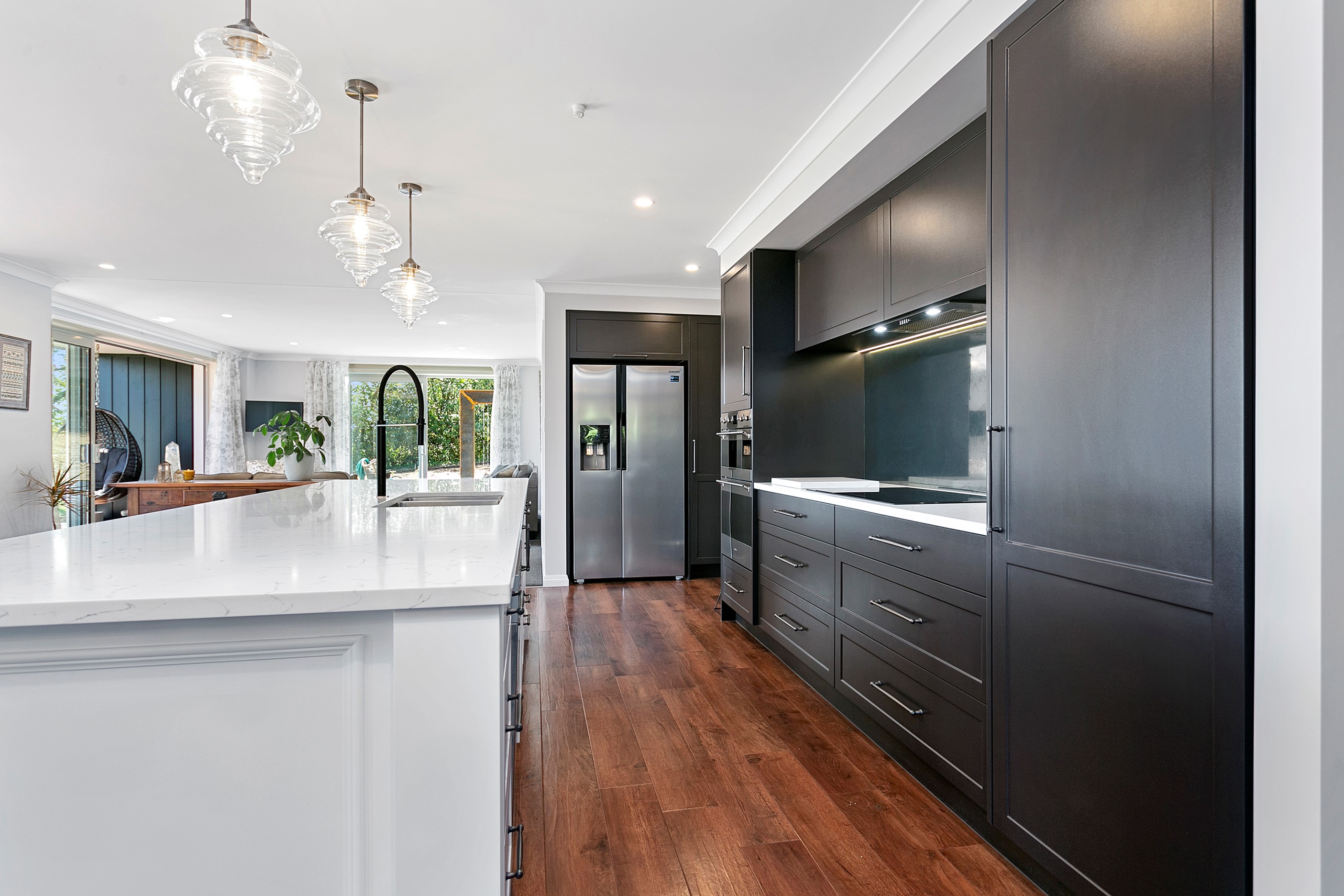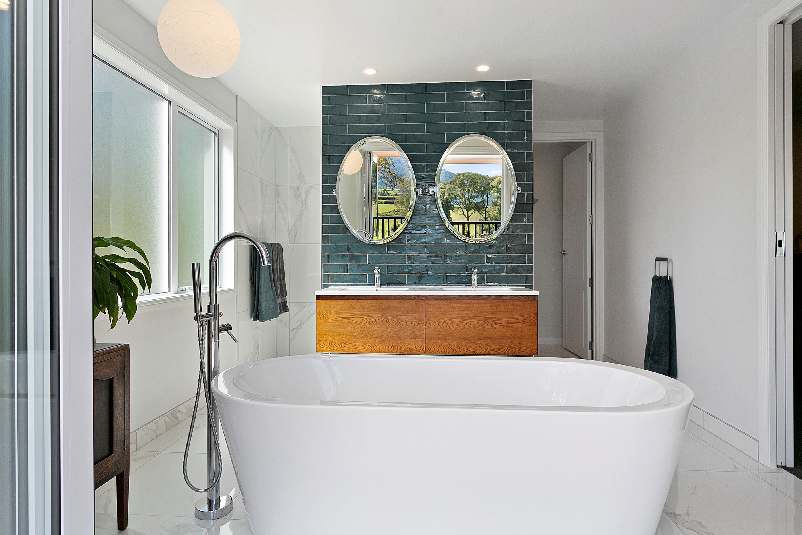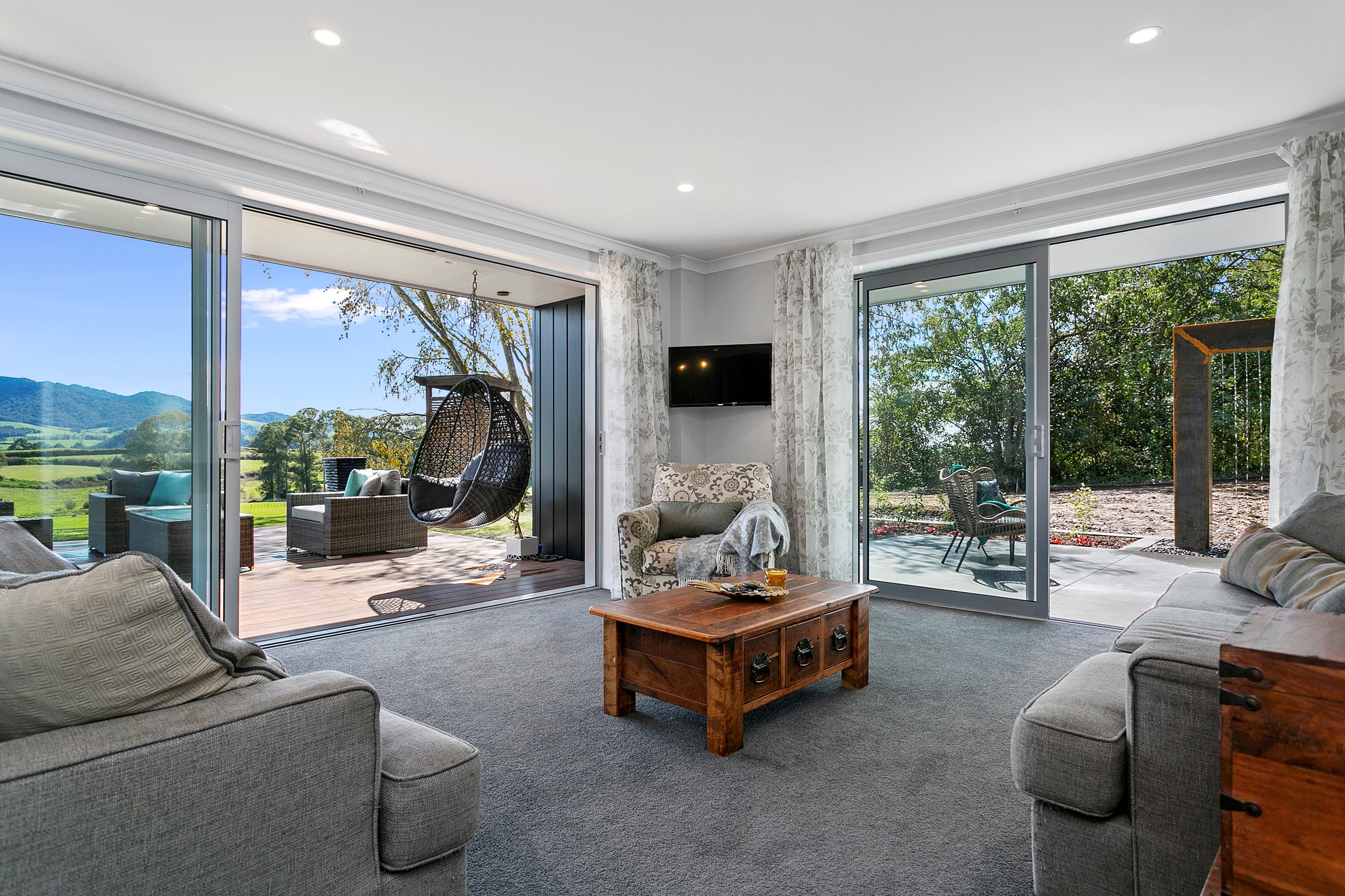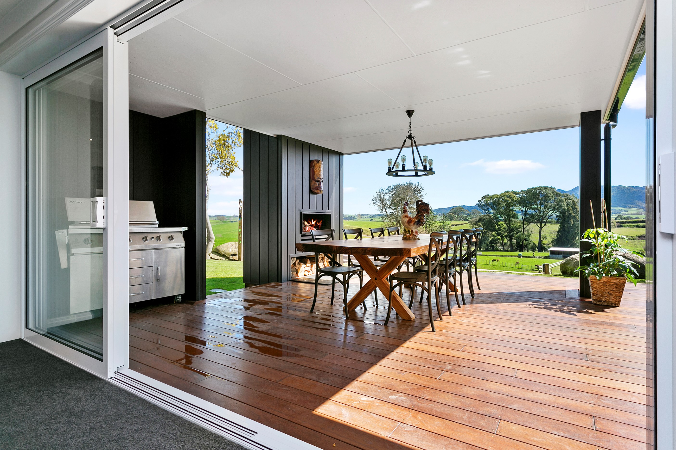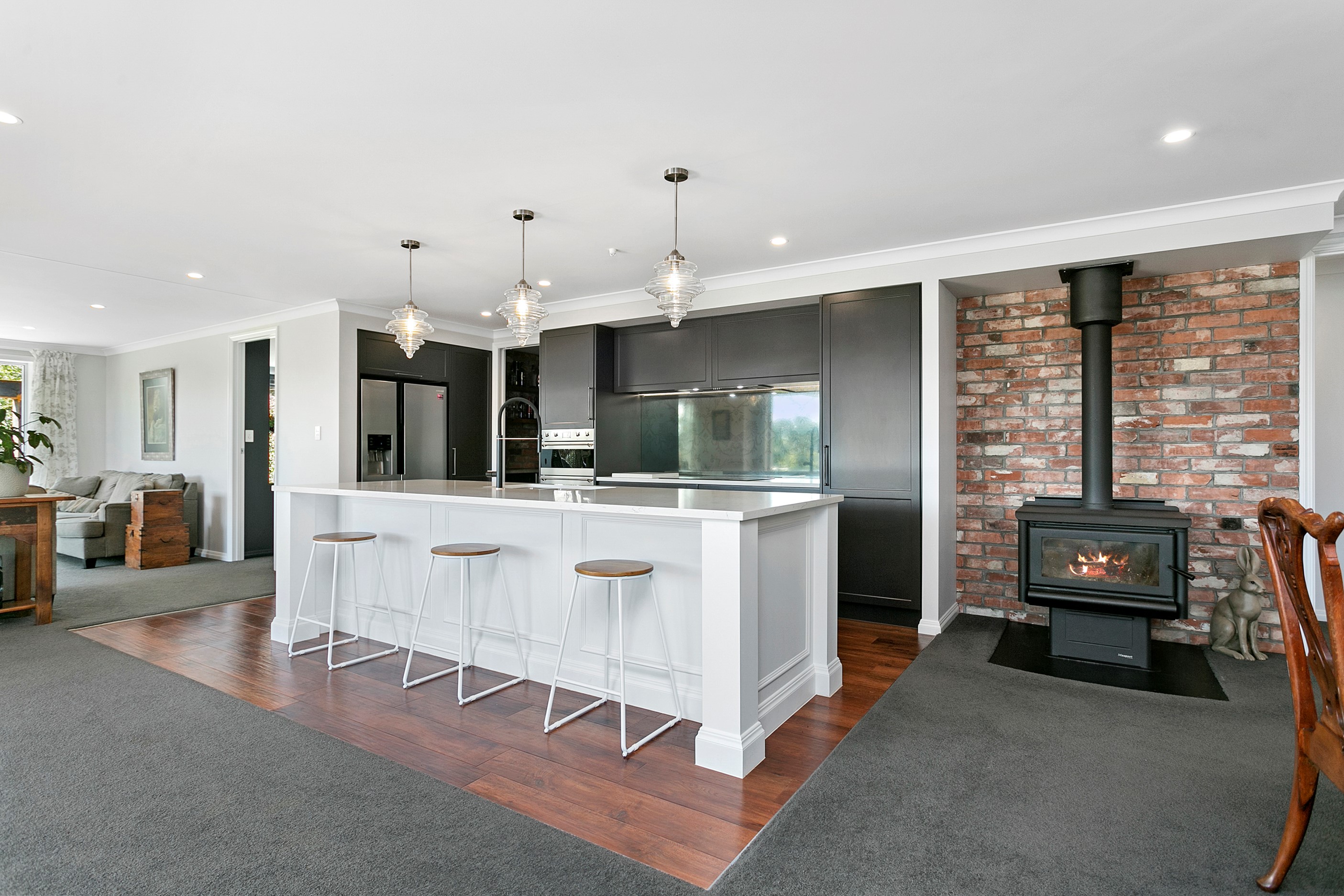 The clients also wanted to be able to check on their animals from indoors as well as out – the large sliding doors that lead to kwila decks help them achieve this. The outdoor fireplace uses the farm’s supply of wood for warmth, ambience and toasting marshmallows with grandkids. Sustainably minded – there are energy-saving features, double-glazing and recycled materials – and comfortably luxe, this three-bedroom, two-bathroom home with premium finishes measures up beautifully.