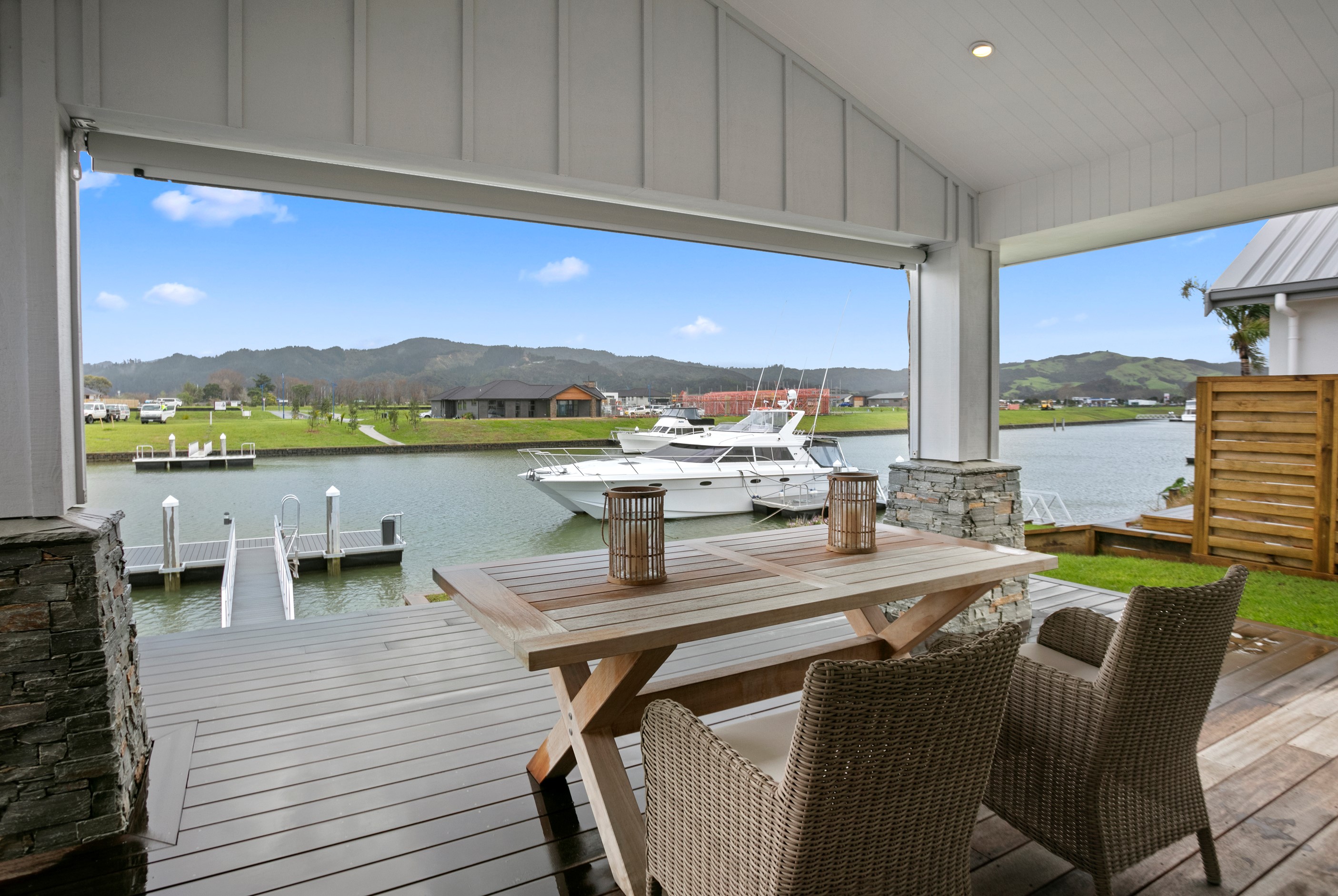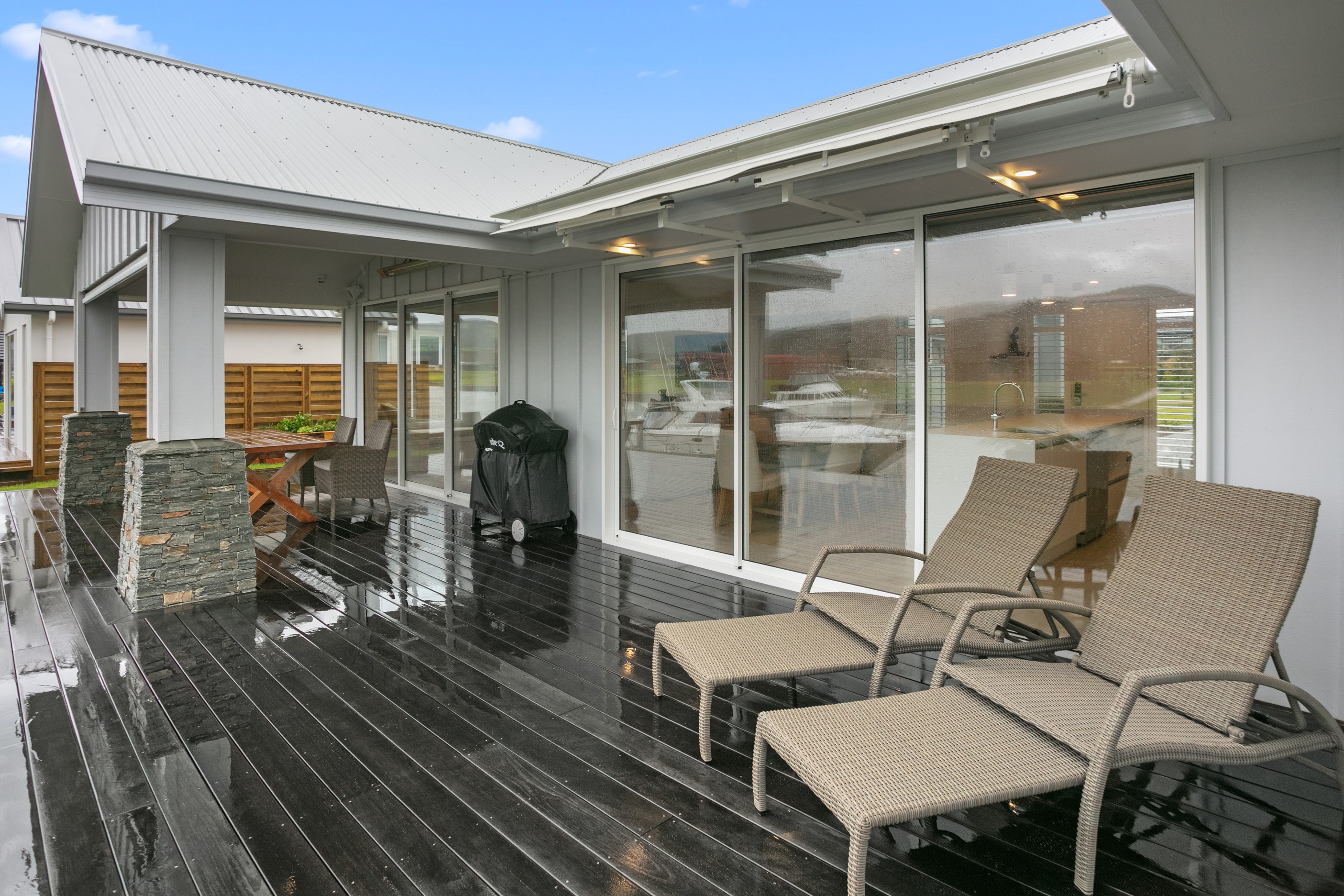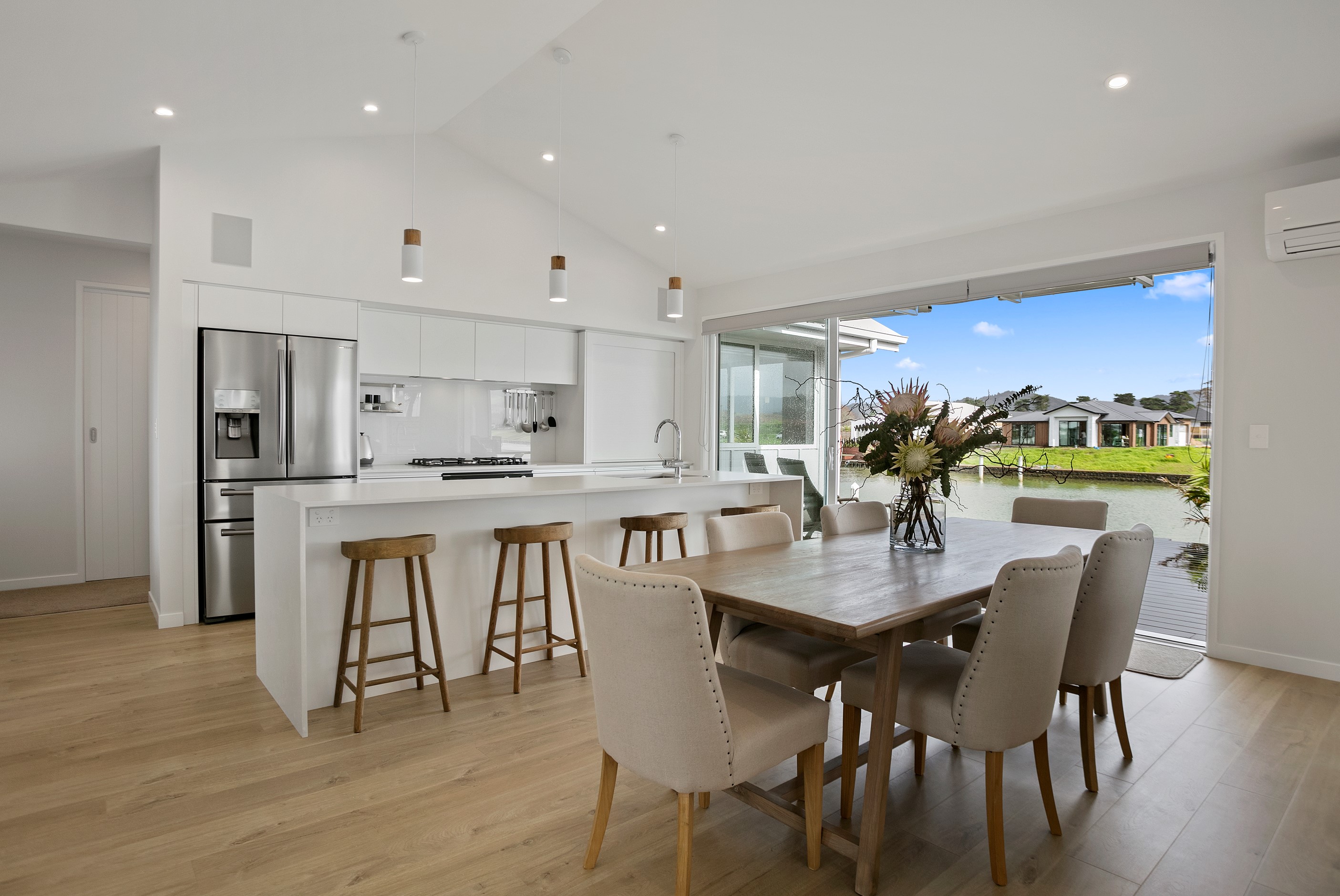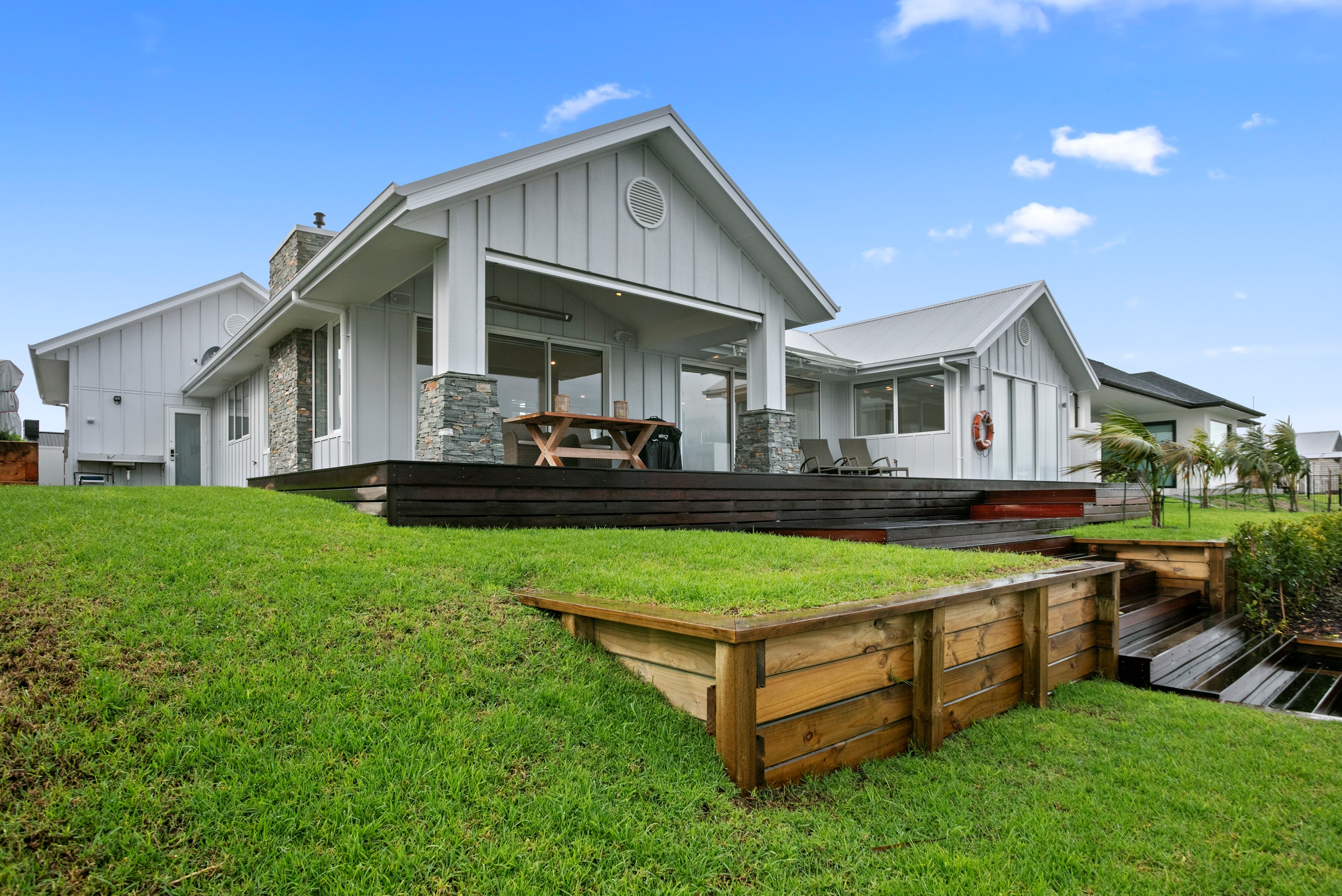 As far as holiday homes go, this Whitianga house ticks all the boxes – relaxed, right on the waterfront and a brilliant entertainer. The board-and-batten house adopts the ideal nautical look for such a prime spot on the canal. Set onto a 257sqm floor-plan, it has four bedrooms, three bathrooms and two living areas, meaning there’s plenty of room for guests to come and stay a while. The large, open-plan kitchen/dining/living pavilion forms the hub of the house.