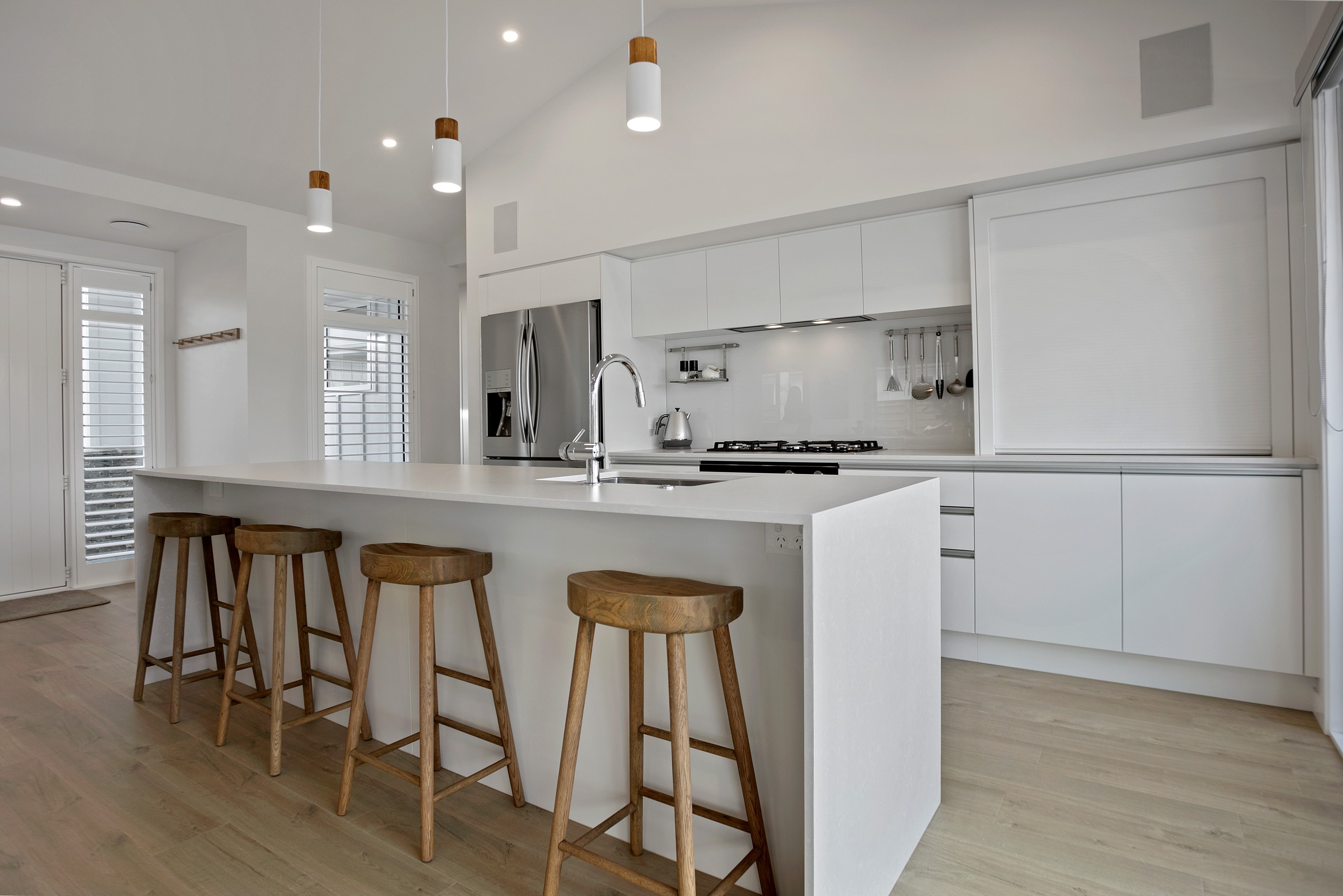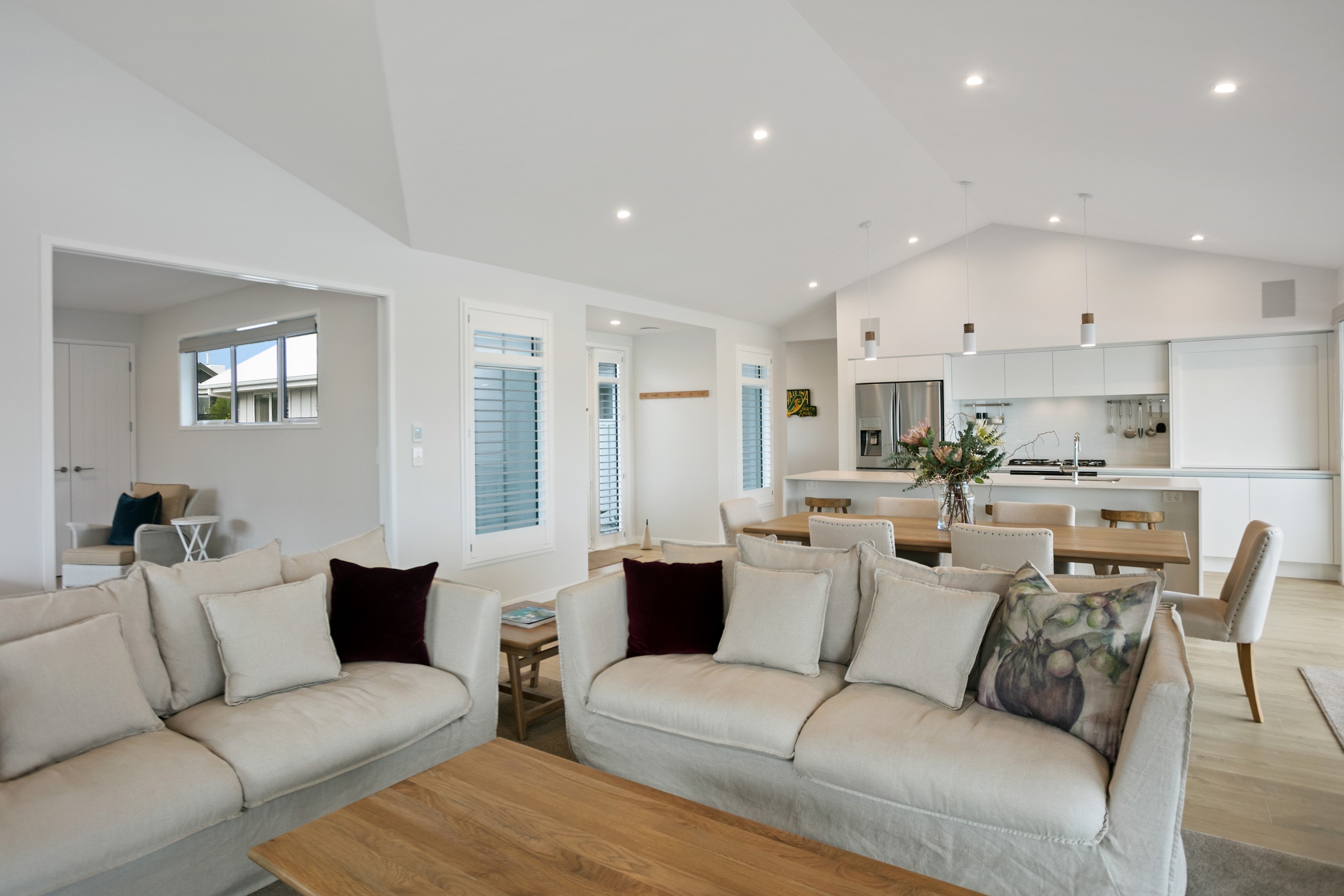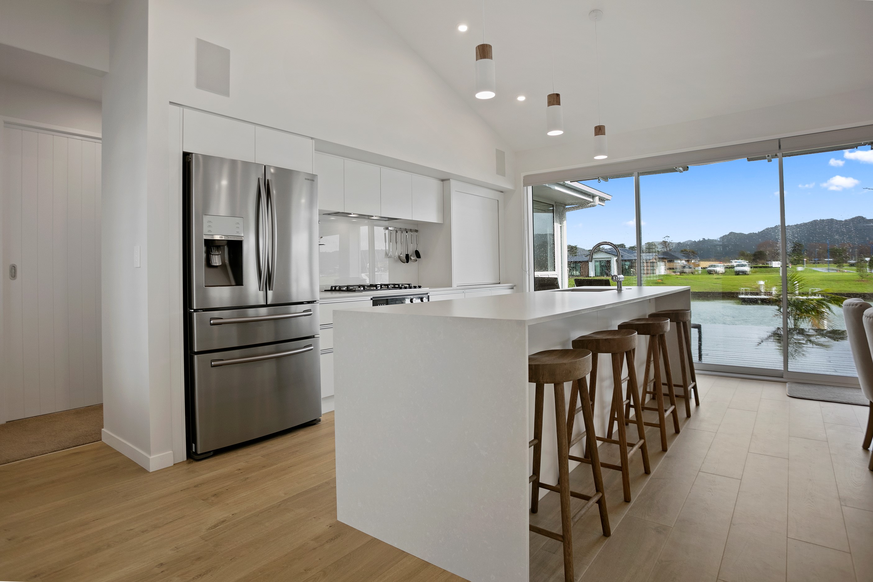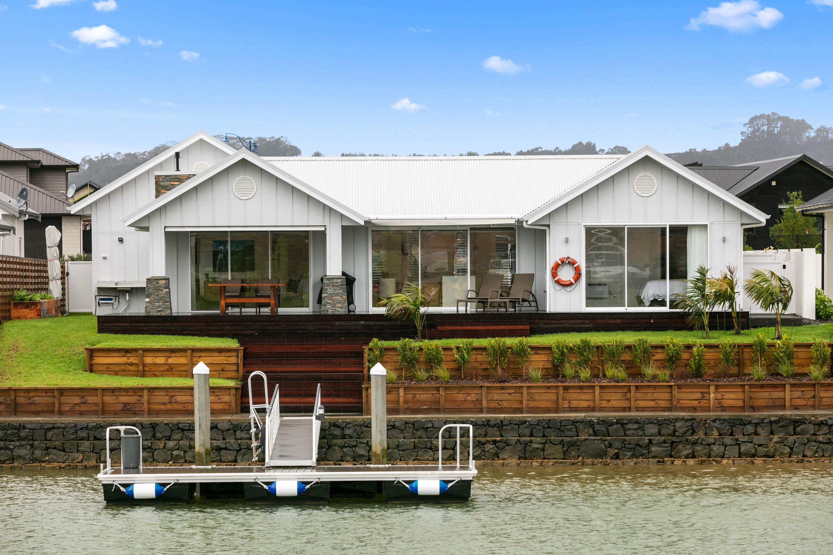 As far as holiday homes go, this Whitianga house ticks all the boxes – relaxed, right on the waterfront and a brilliant entertainer. The board-and-batten house adopts the ideal nautical look for such a prime spot on the canal. Set onto a 257sqm floor-plan, it has four bedrooms, three bathrooms and two living areas, meaning there’s plenty of room for guests to come and stay a while. The large, open-plan kitchen/dining/living pavilion forms the hub of the house.