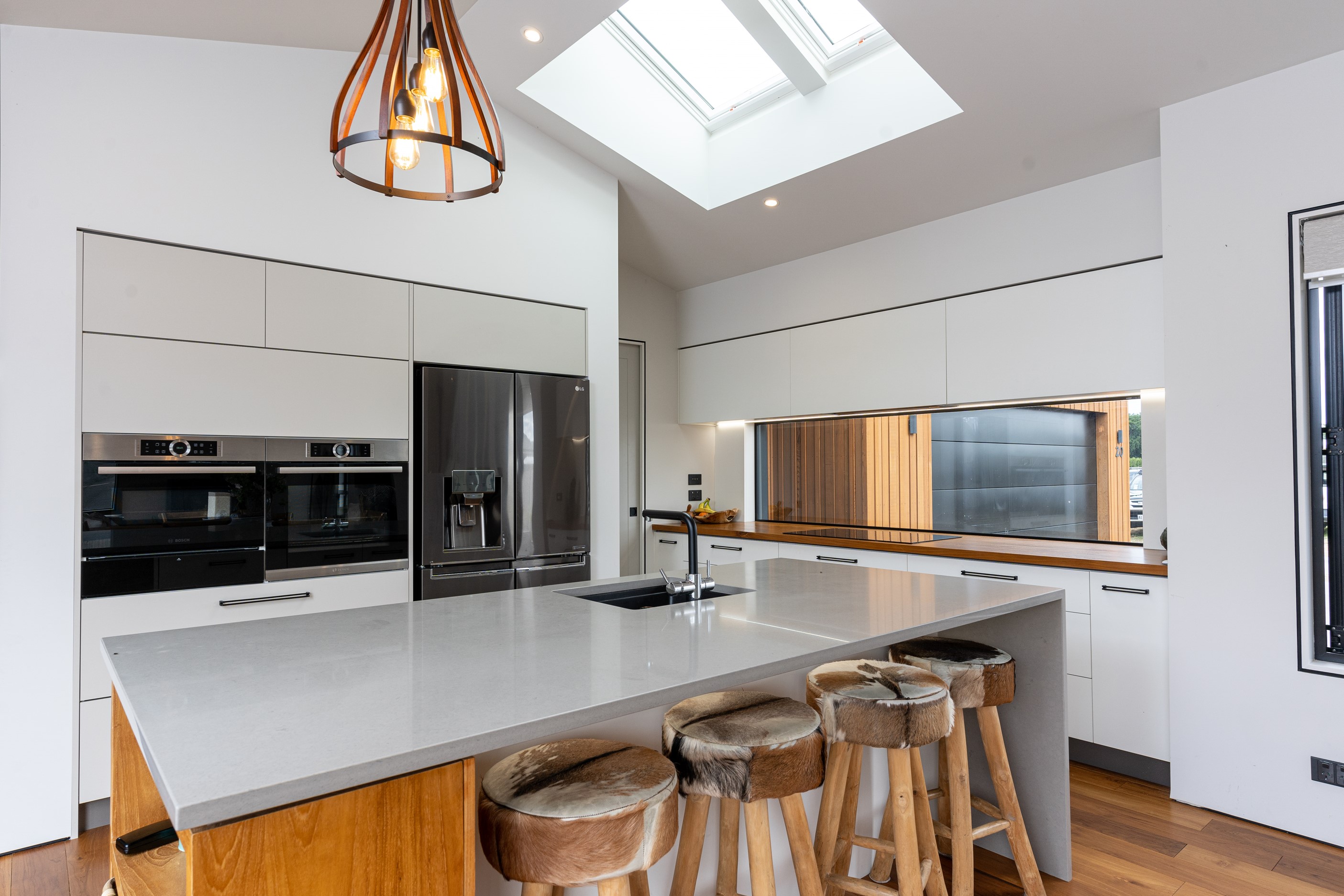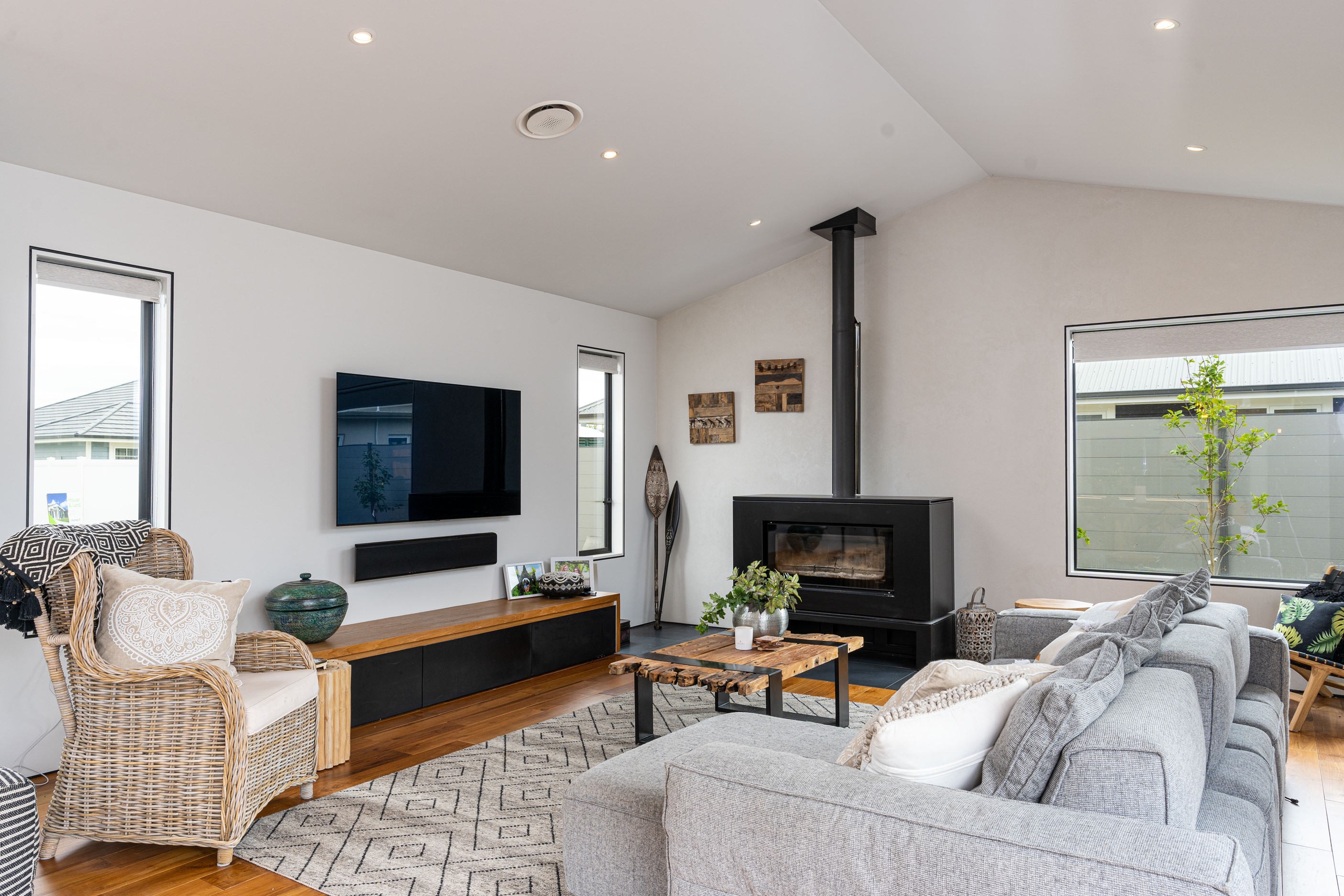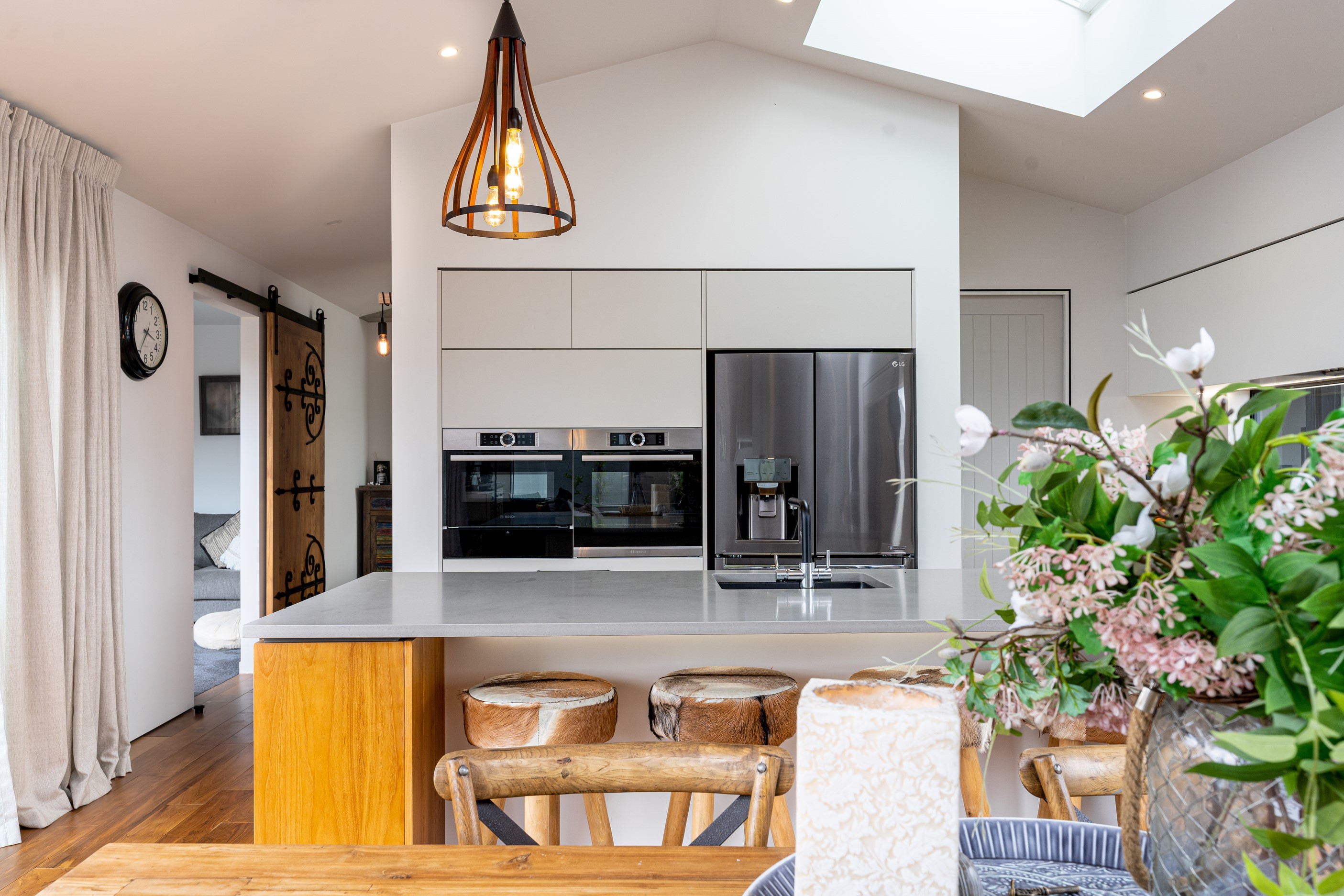 Built with total comfort in mind, the insulated foundations, high-performance wall and ceiling insulation, ducted heating system, Stovax woodburner and energy efficient thermally broken window joinery cover all bases.