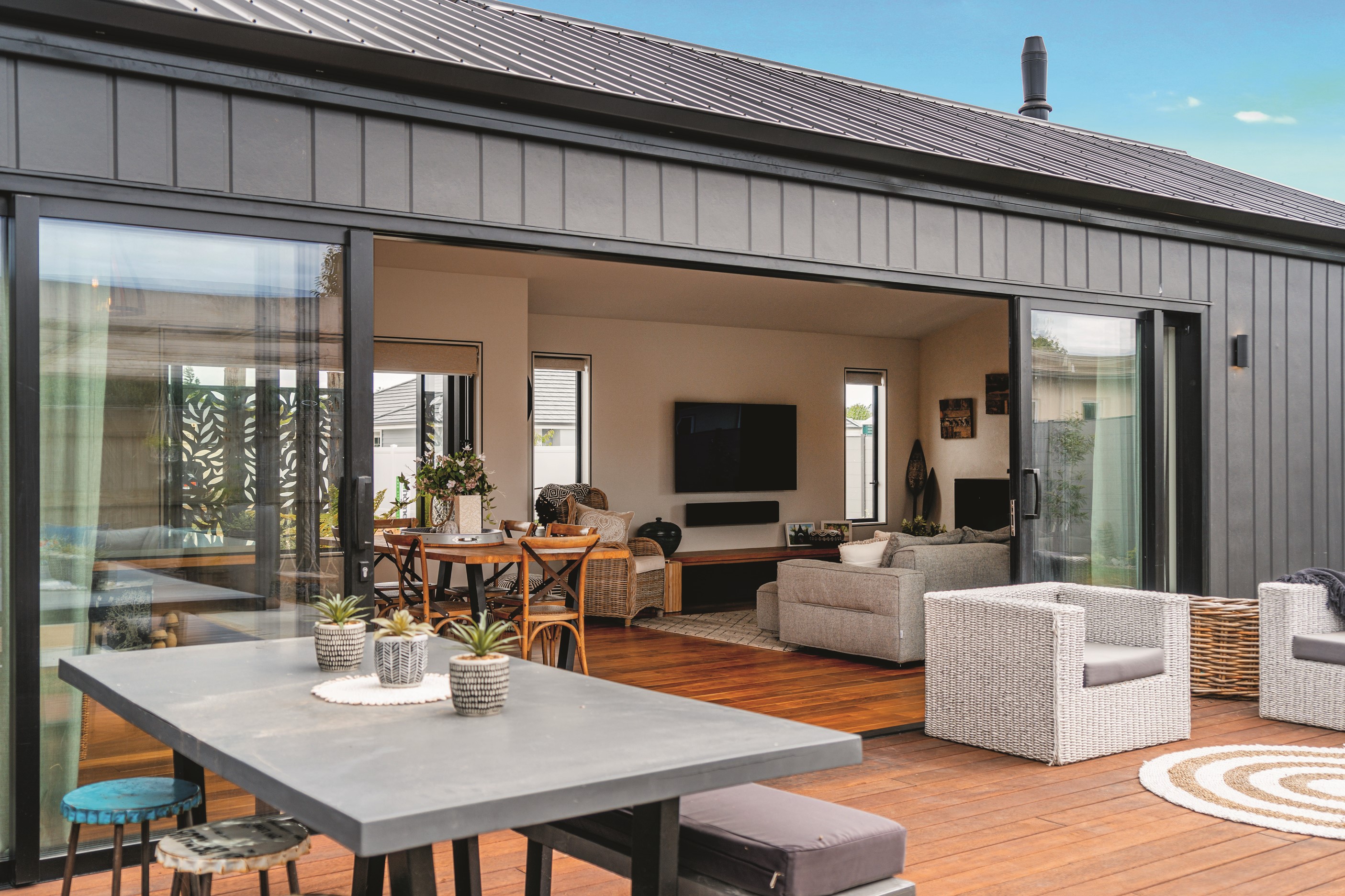 The exterior of this architecturally designed 230sqm Greytown home is an impressive marriage of weatherboard, cedar and panel cladding. And what’s on the inside is just as impressive. This Wairarapa haven comprises three bedrooms, two bathrooms, two living spaces, a separate toilet, kitchen with scullery, storeroom and double internal access garage.