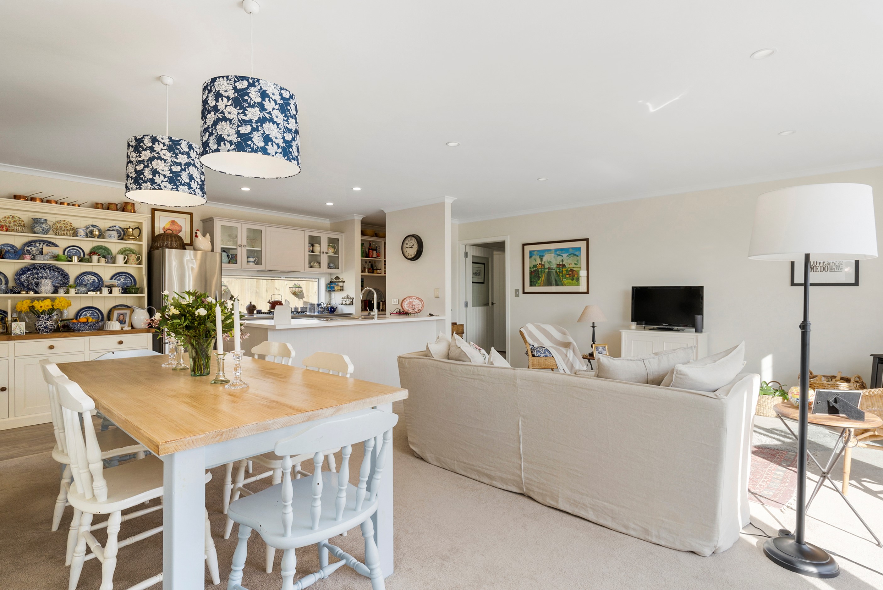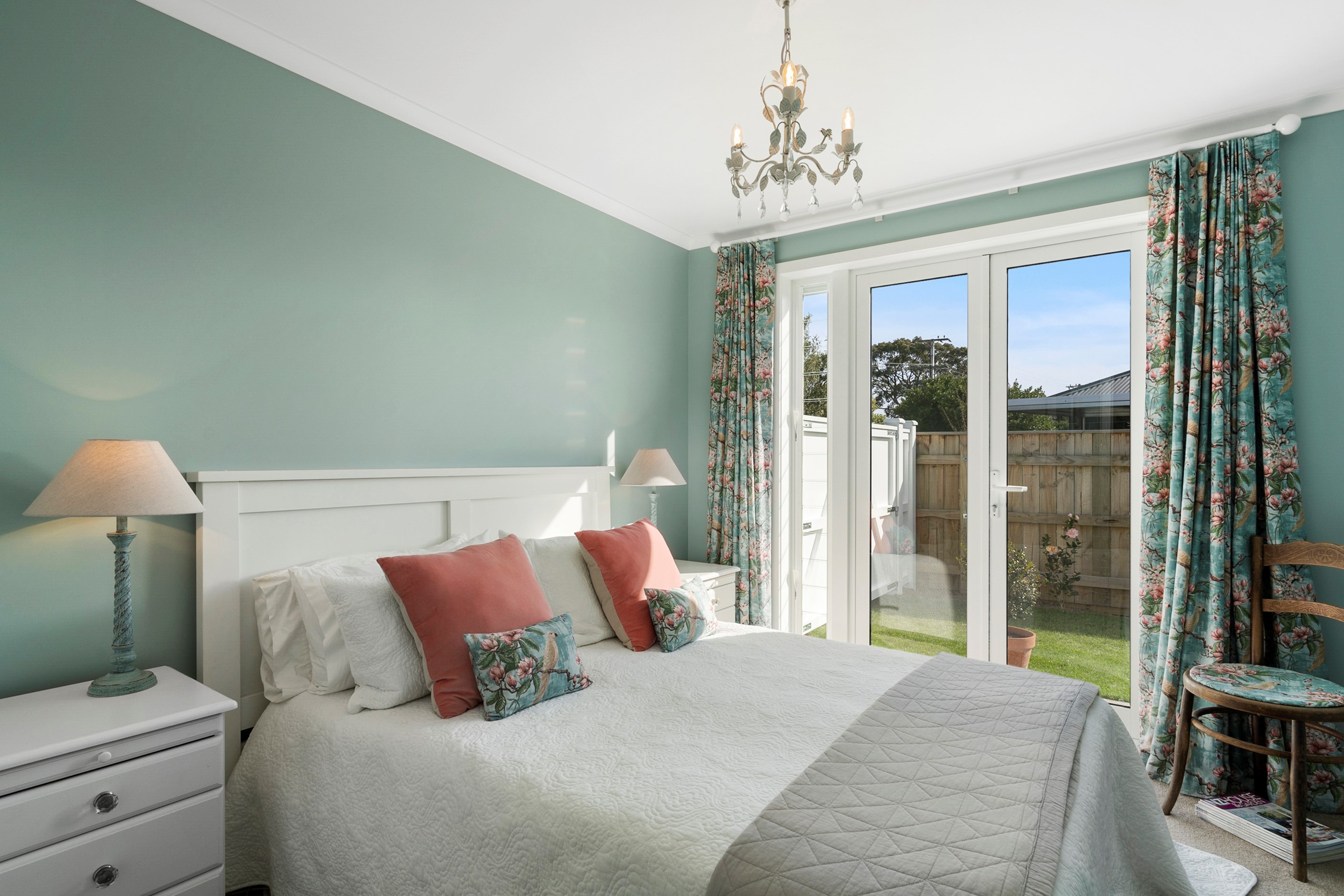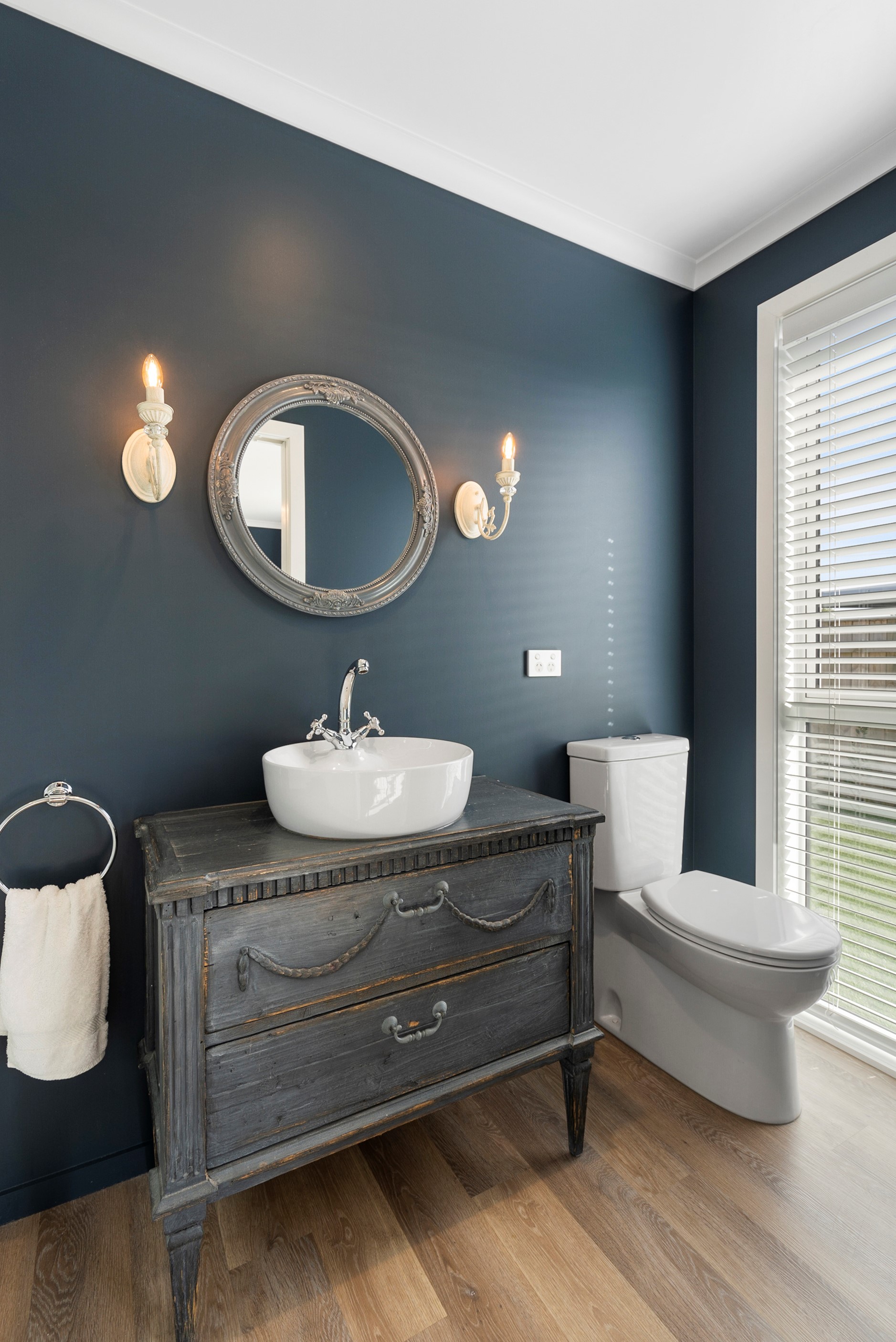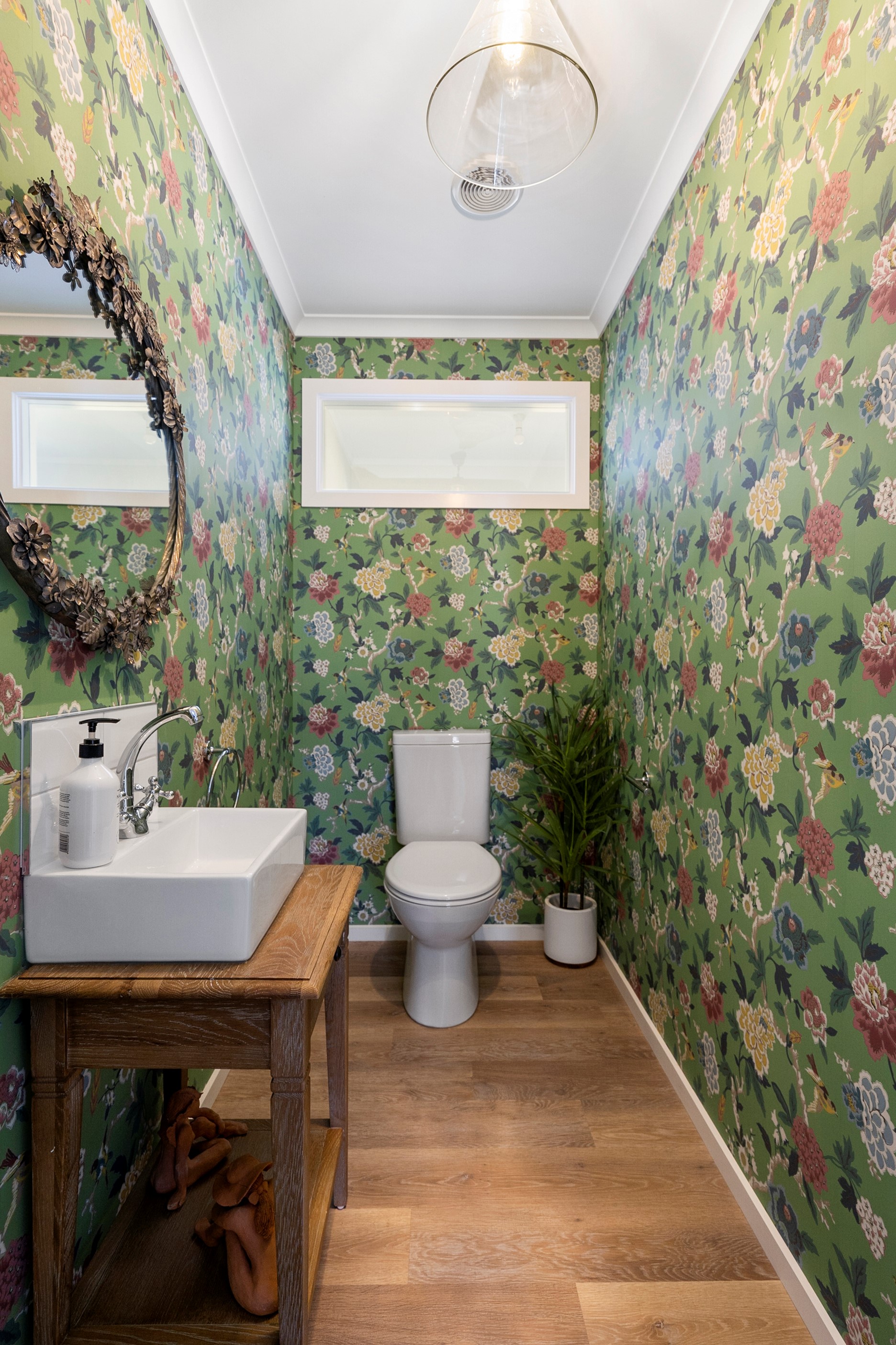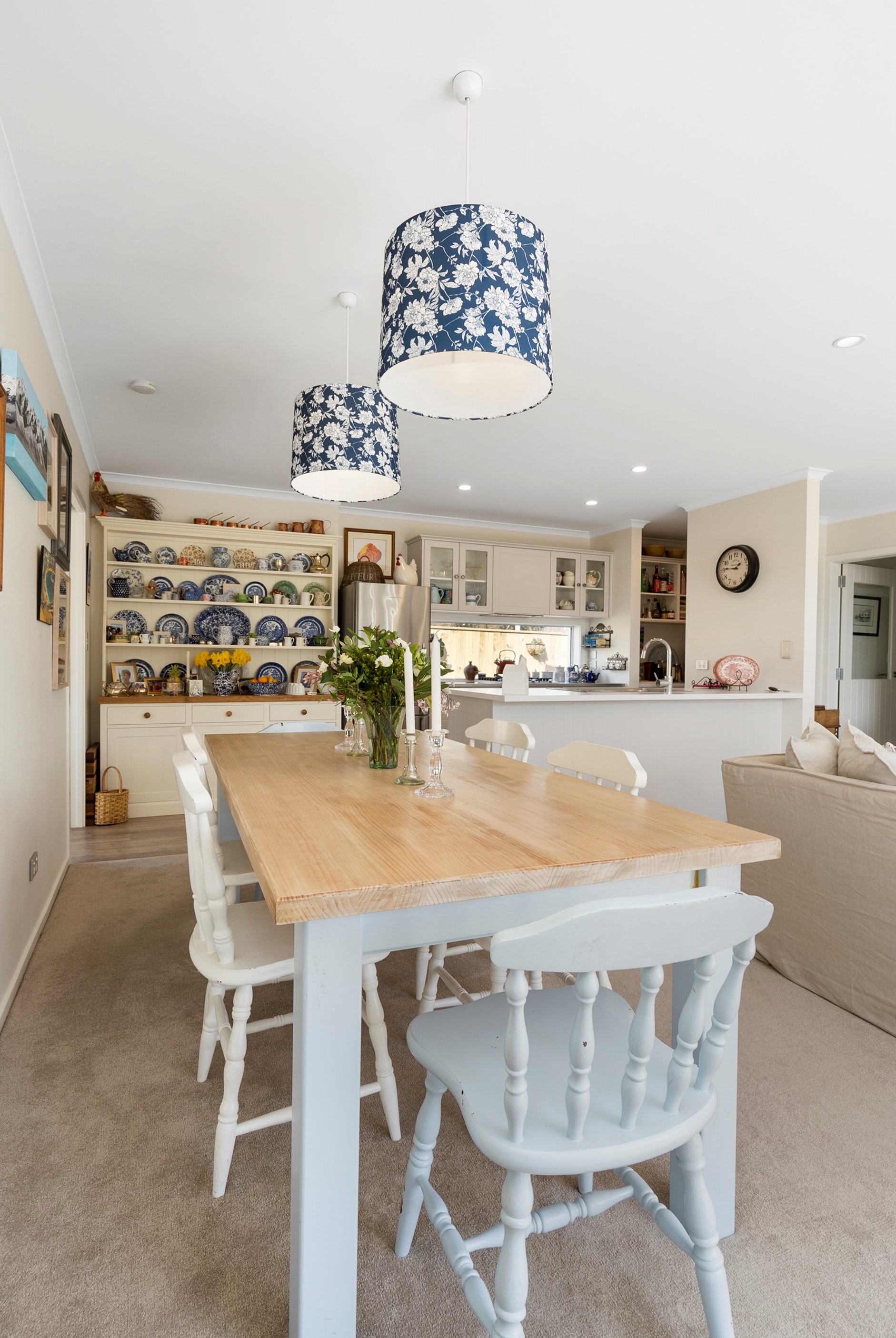 Beyond the living area, the ‘whisky lounge’ and office-come-art studio are fun creative spaces. French doors open from the bedrooms onto concrete pads – perfect for enjoying a coffee in the sunshine. Tongue-and-groove wall panelling and window blinds bring charm to the main bathroom. The Athena Cassini bath, tiled shower, unique vanity, ornate mirror and light fittings, and colonial-style tapware also make this space shine. Soothing, country-inspired wall colours allow the interior to feel homely. With its soft palette and modern fittings, this dwelling brings a traditional style into the present day.