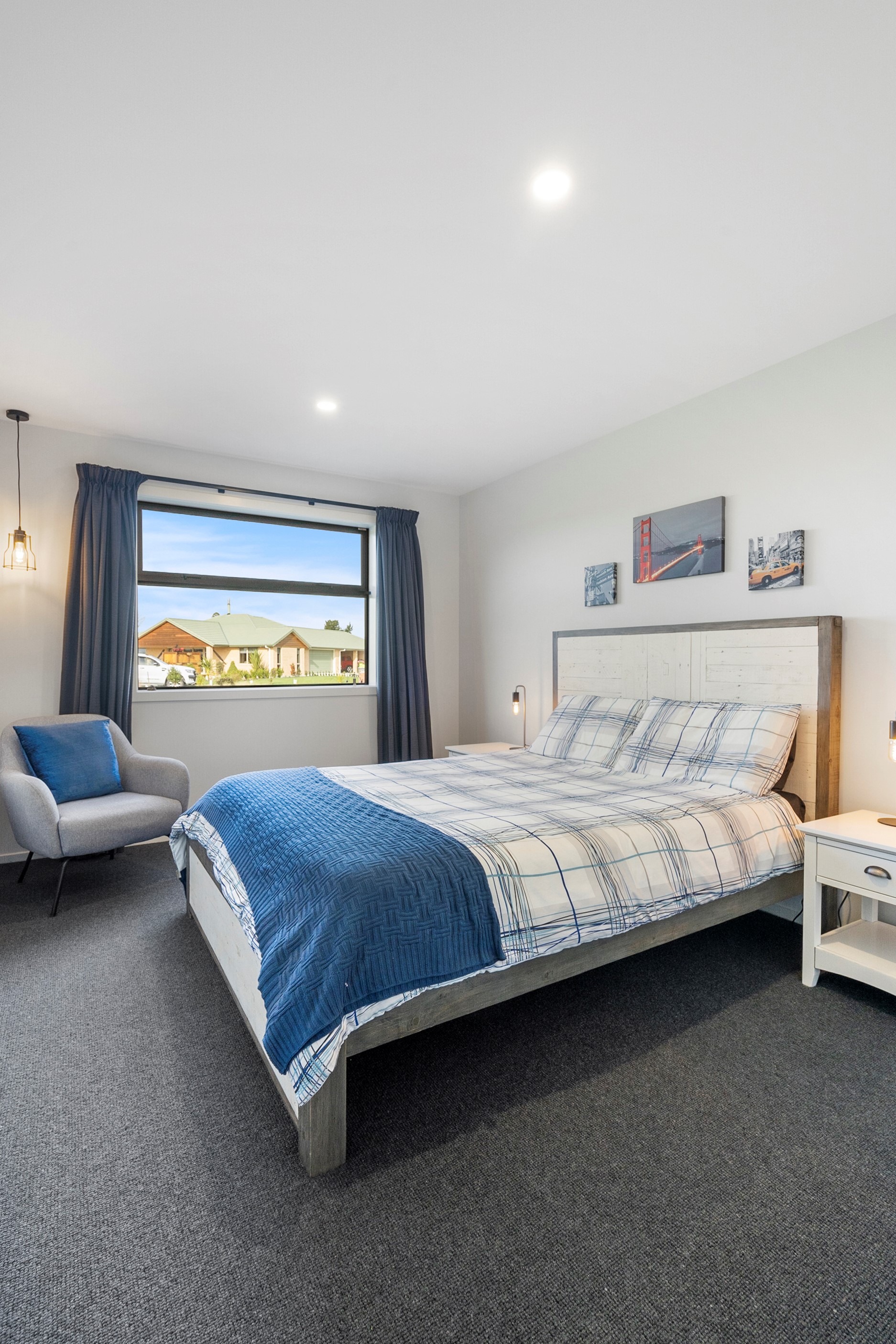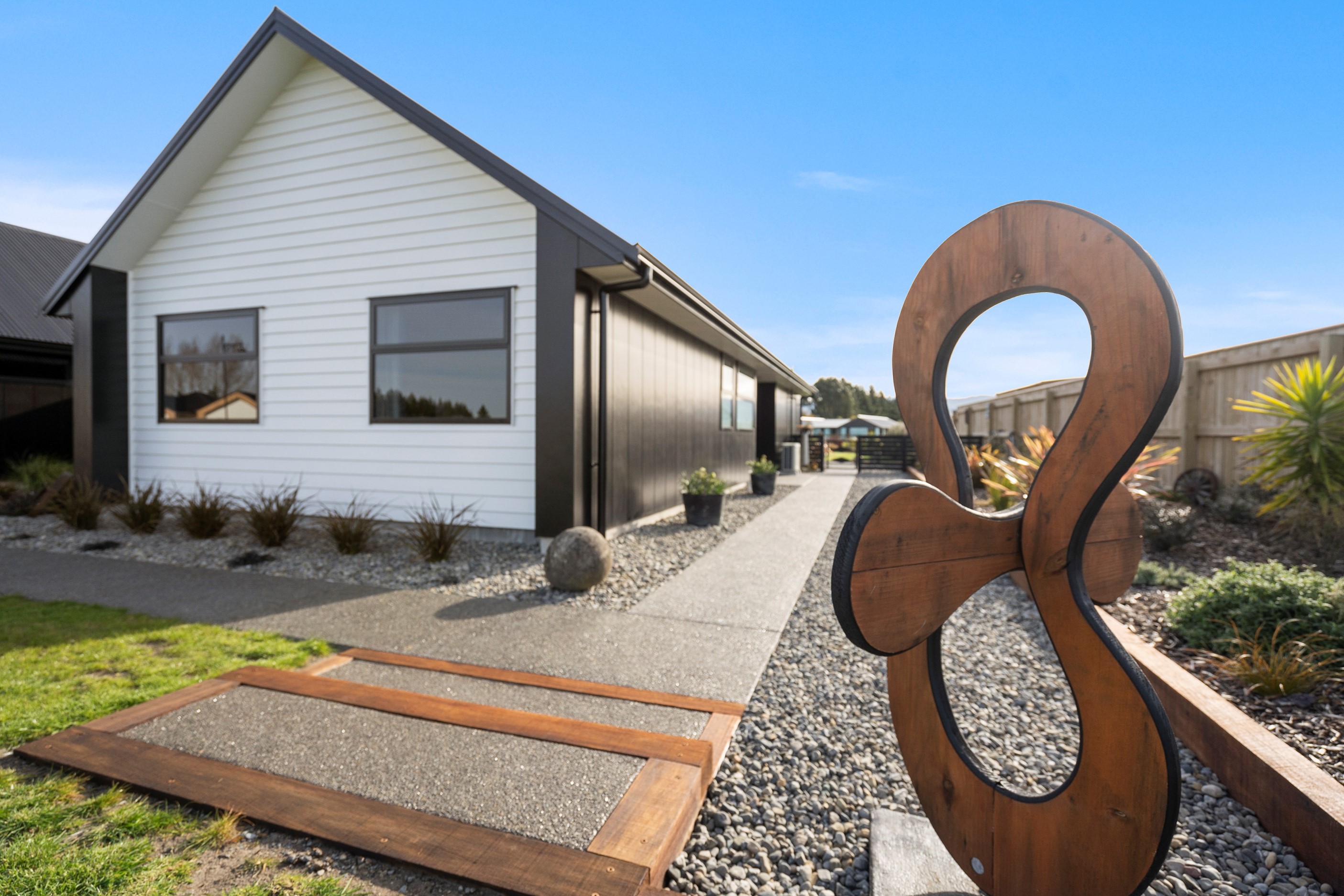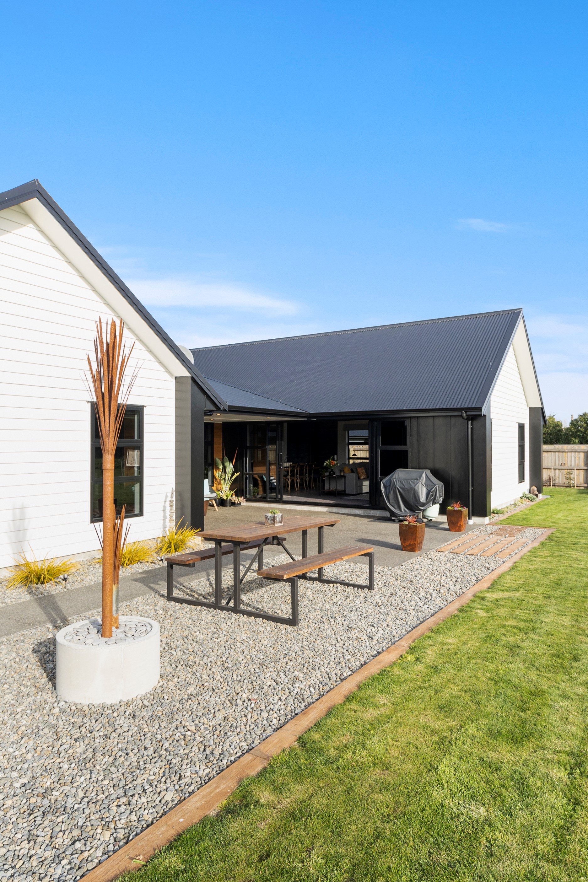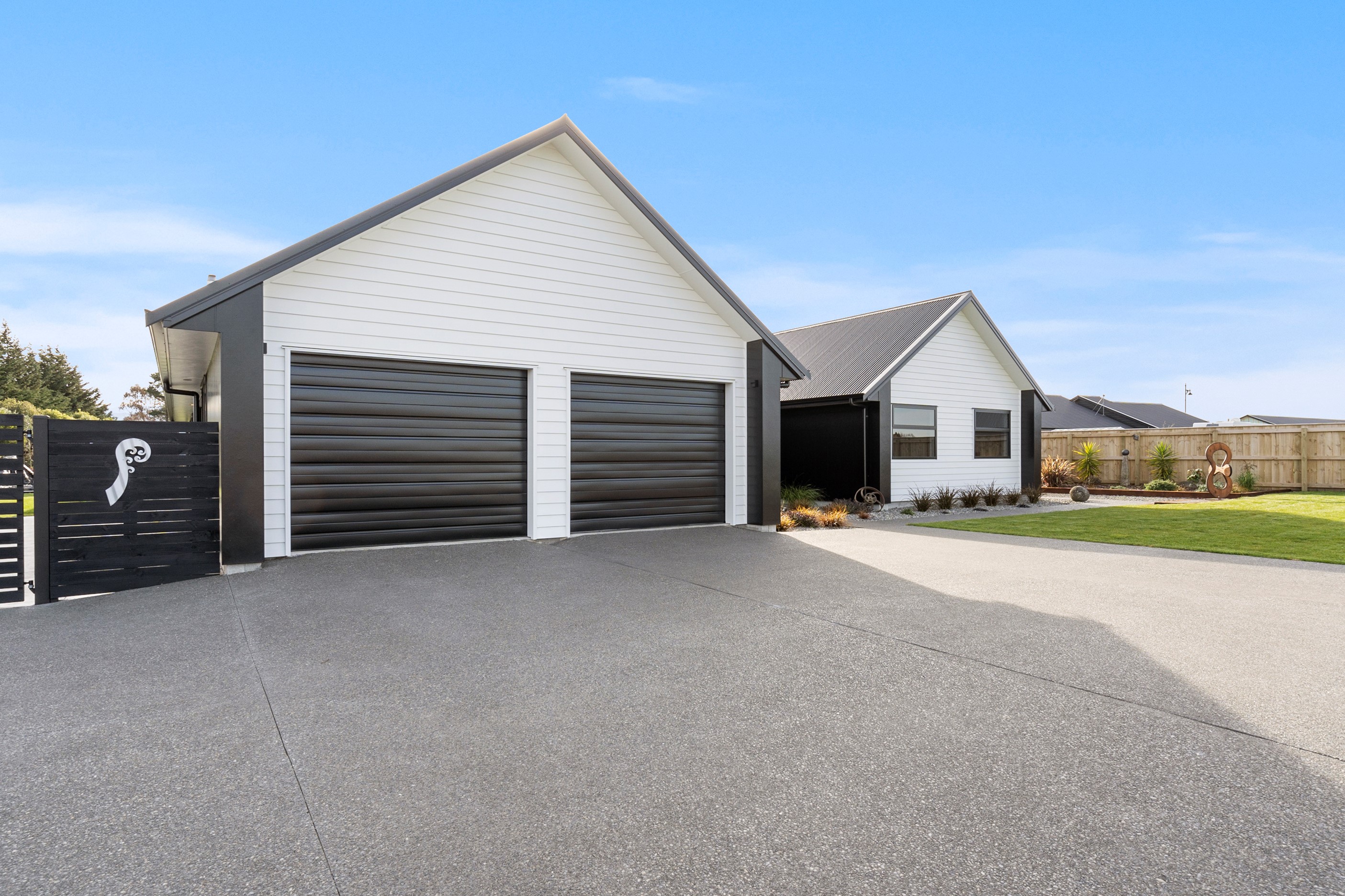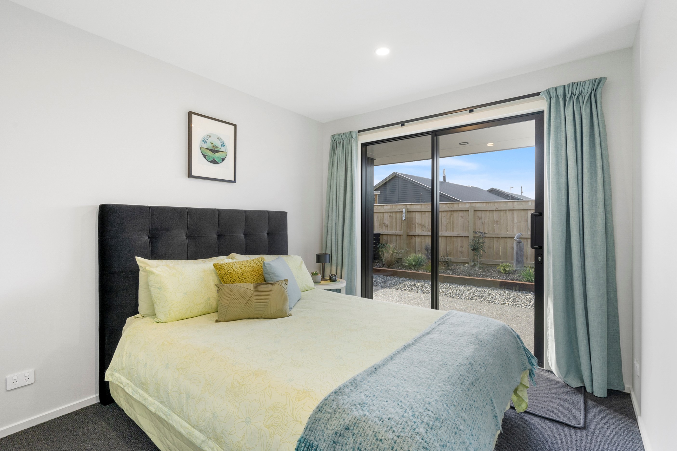 In the kitchen you’ll find an engineered stone benchtop, mirrored glass splashback and glossy cabinetry with high-tech hardware. A cathedral ceiling in the main living room and large sliding doors to the outdoor living area give a sense of grandeur and space. Once you’re outside, the feeling is just as good. There’s a seamless indoor-outdoor flow from the living area and views of the Tararua Range.