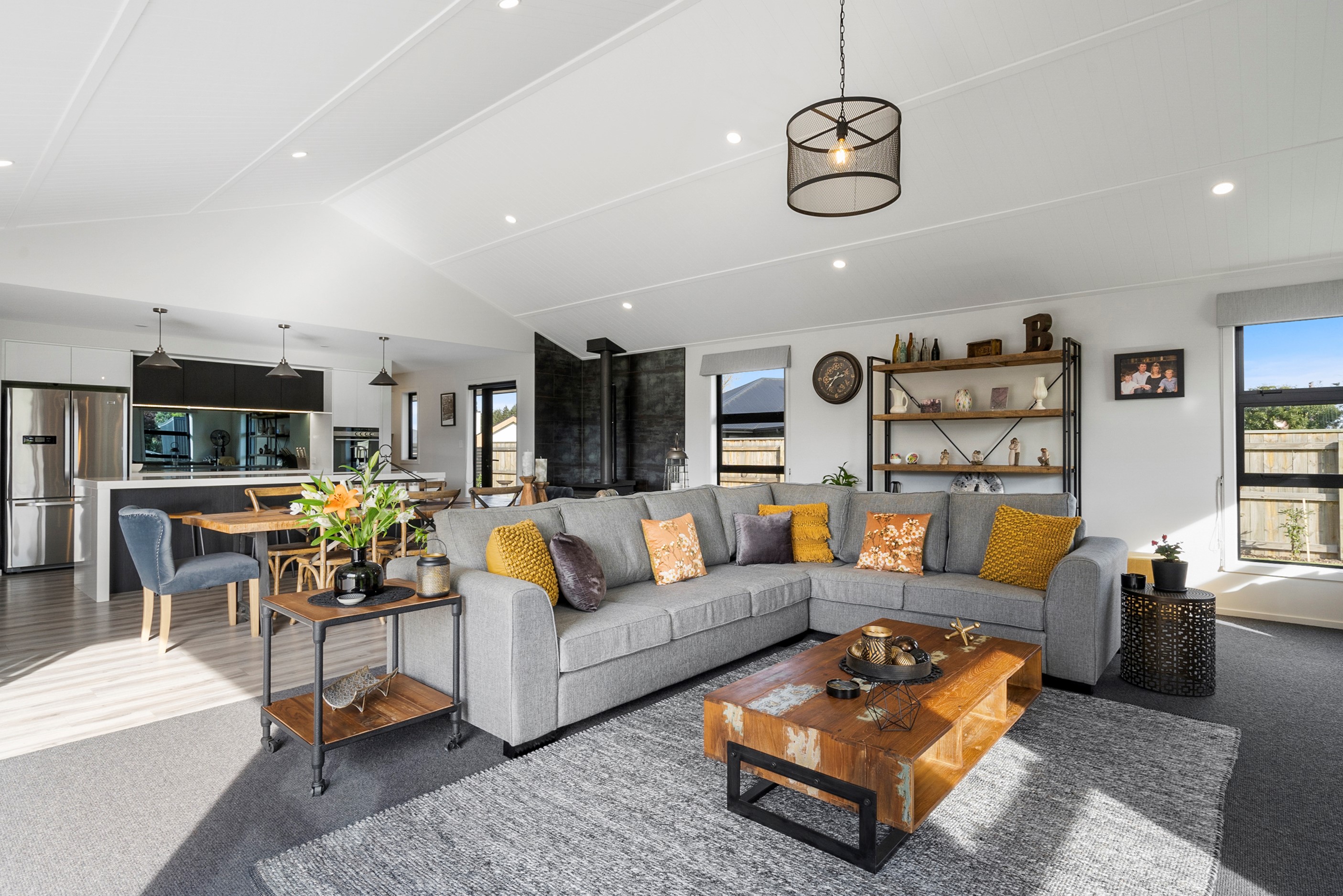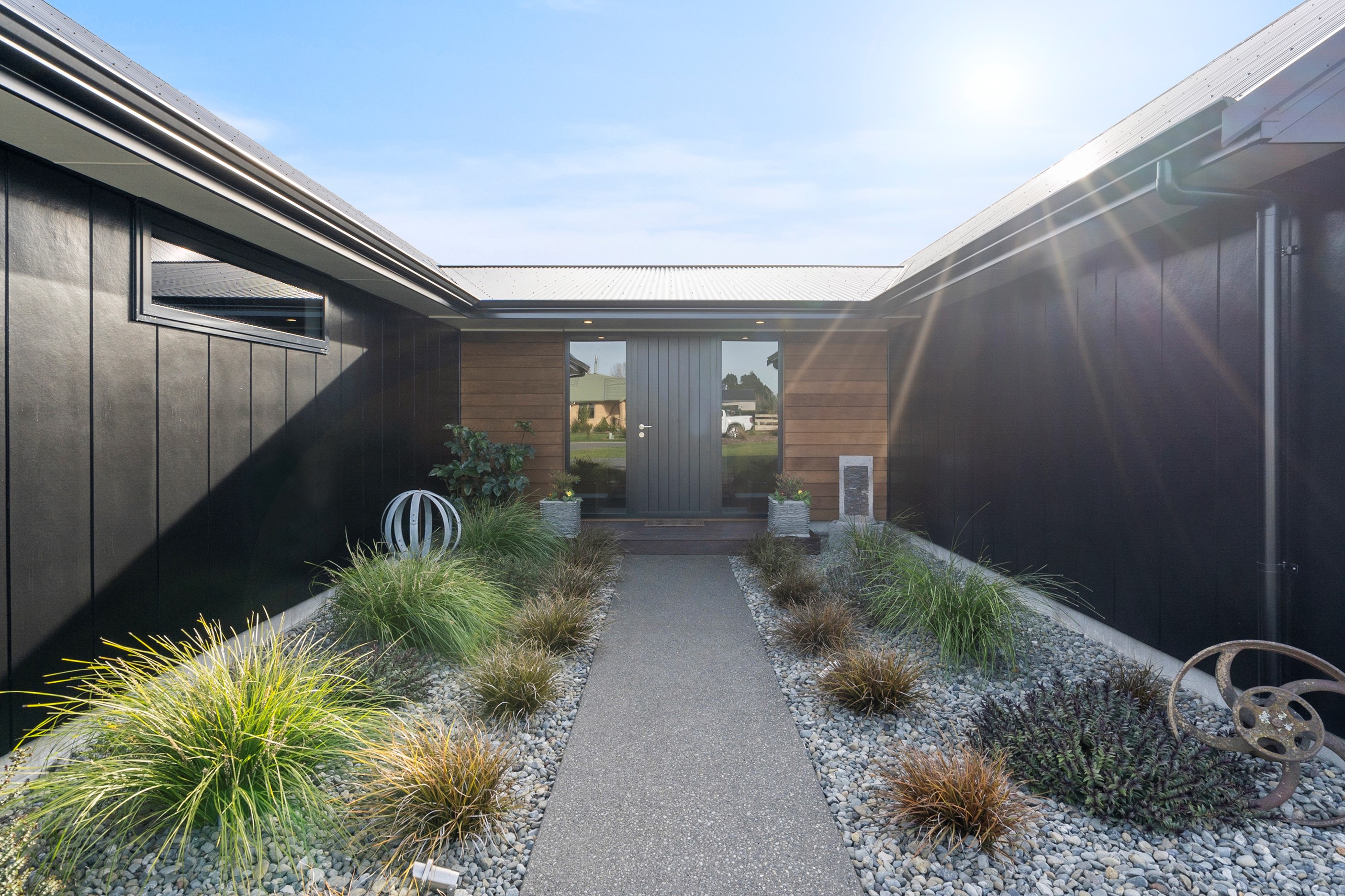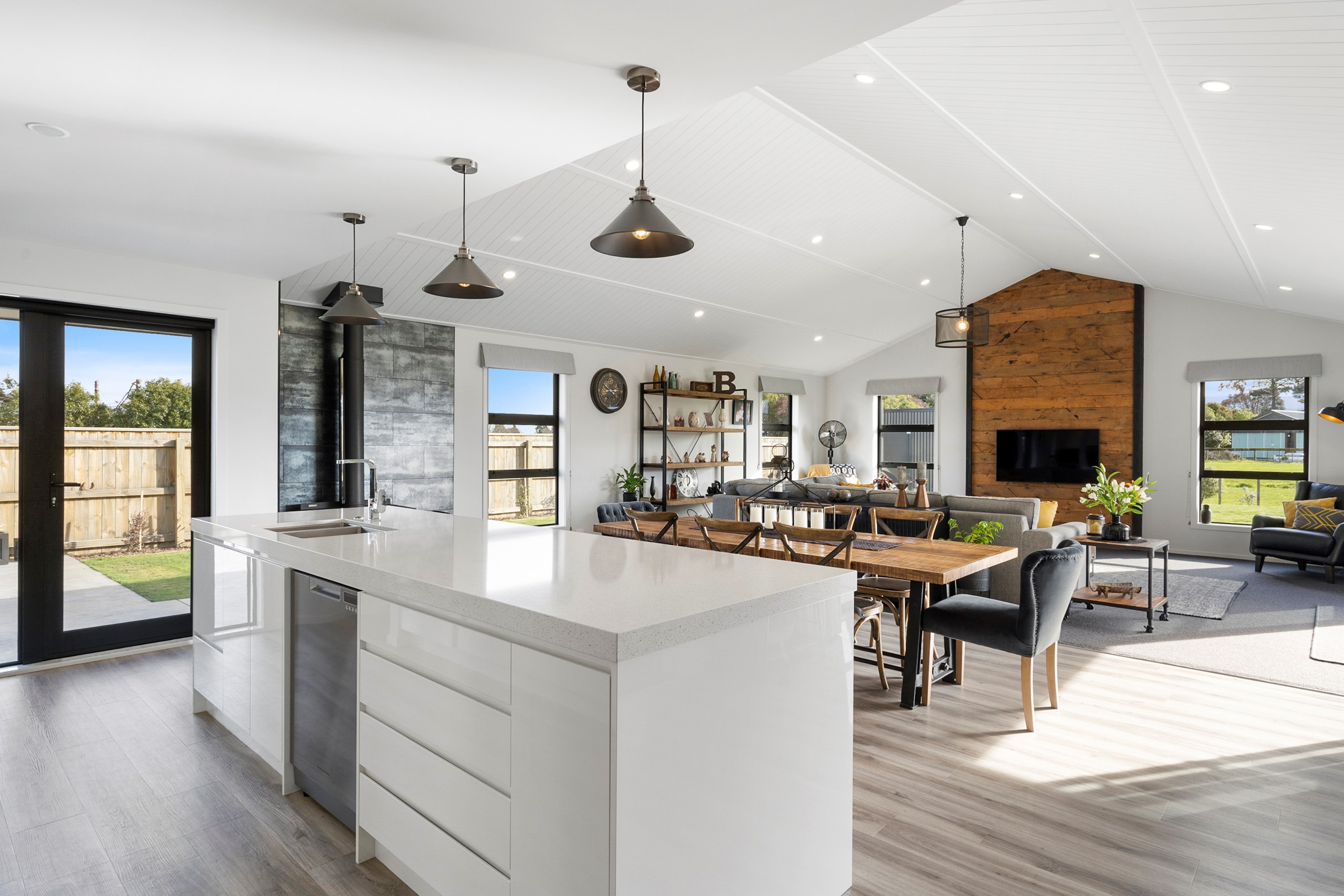 Modern living meets industrial style in this Wairarapa home. Add a measure of rustic flair, and you end up with this outstanding property. Cedar cladding on the interior makes a statement as you enter the 264sqm house. The rough-sawn timber is repeated in a feature wall in the living area and in the barn-style door of the media room.