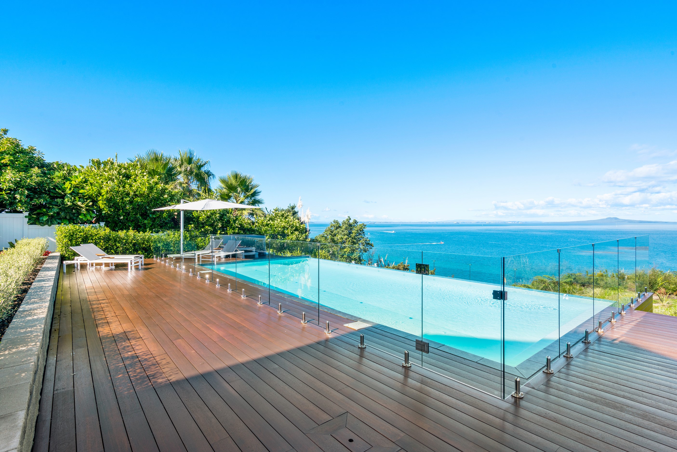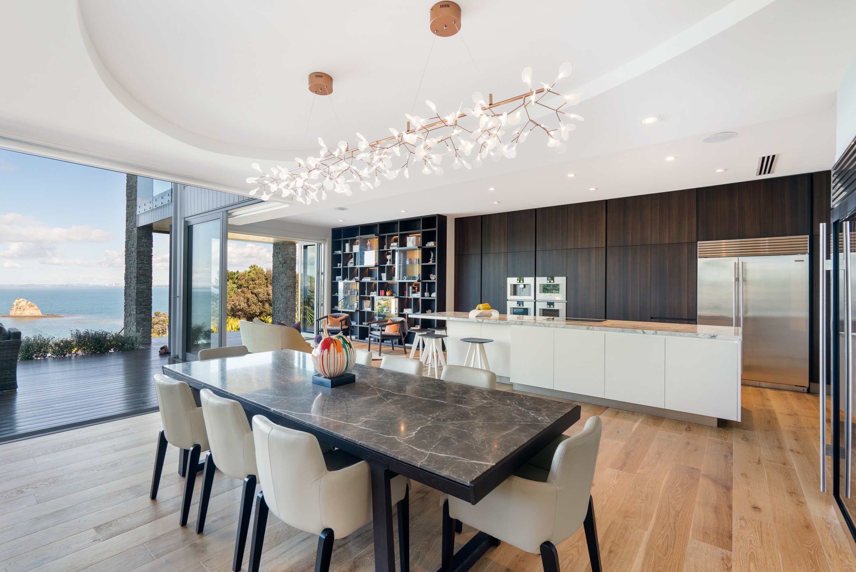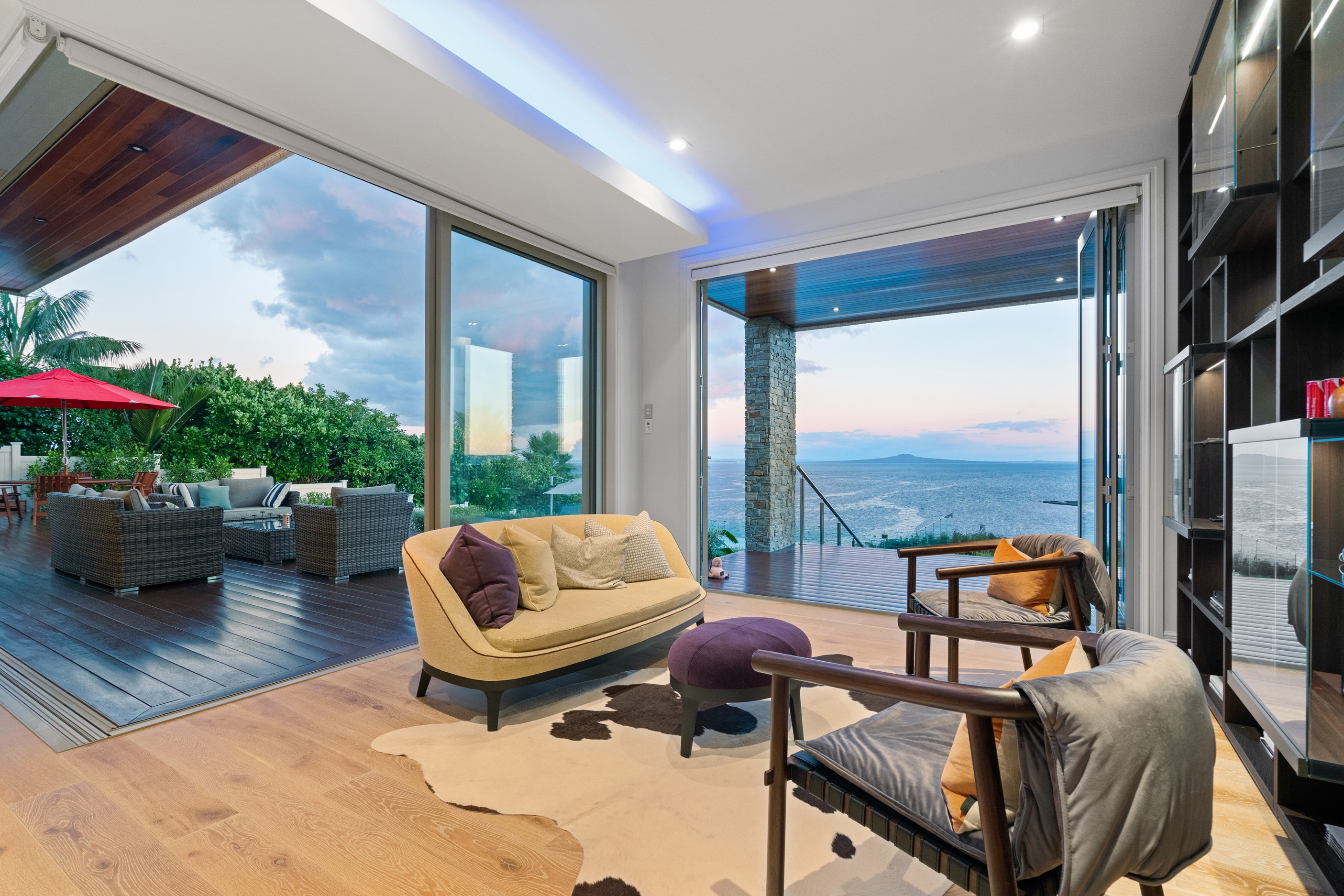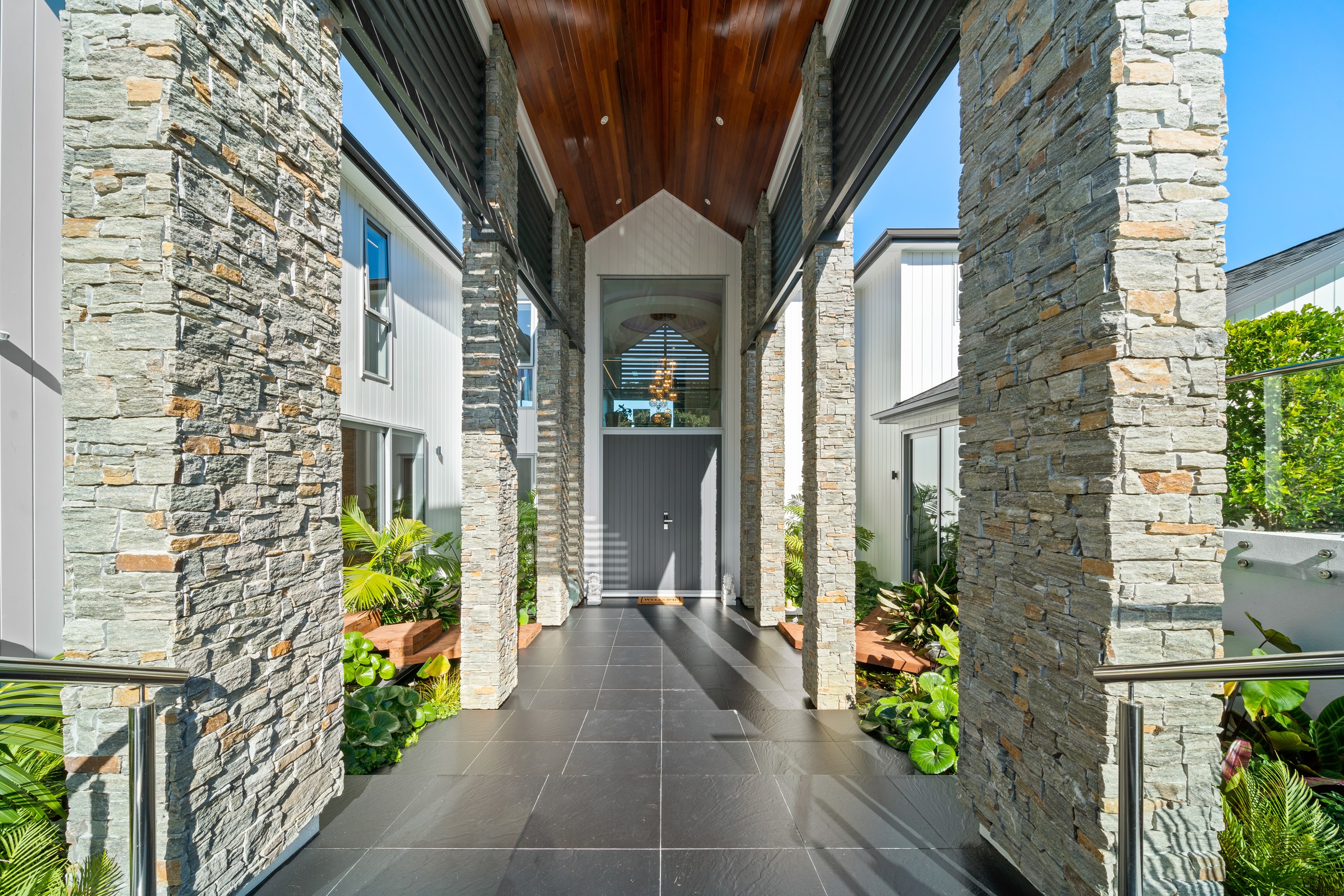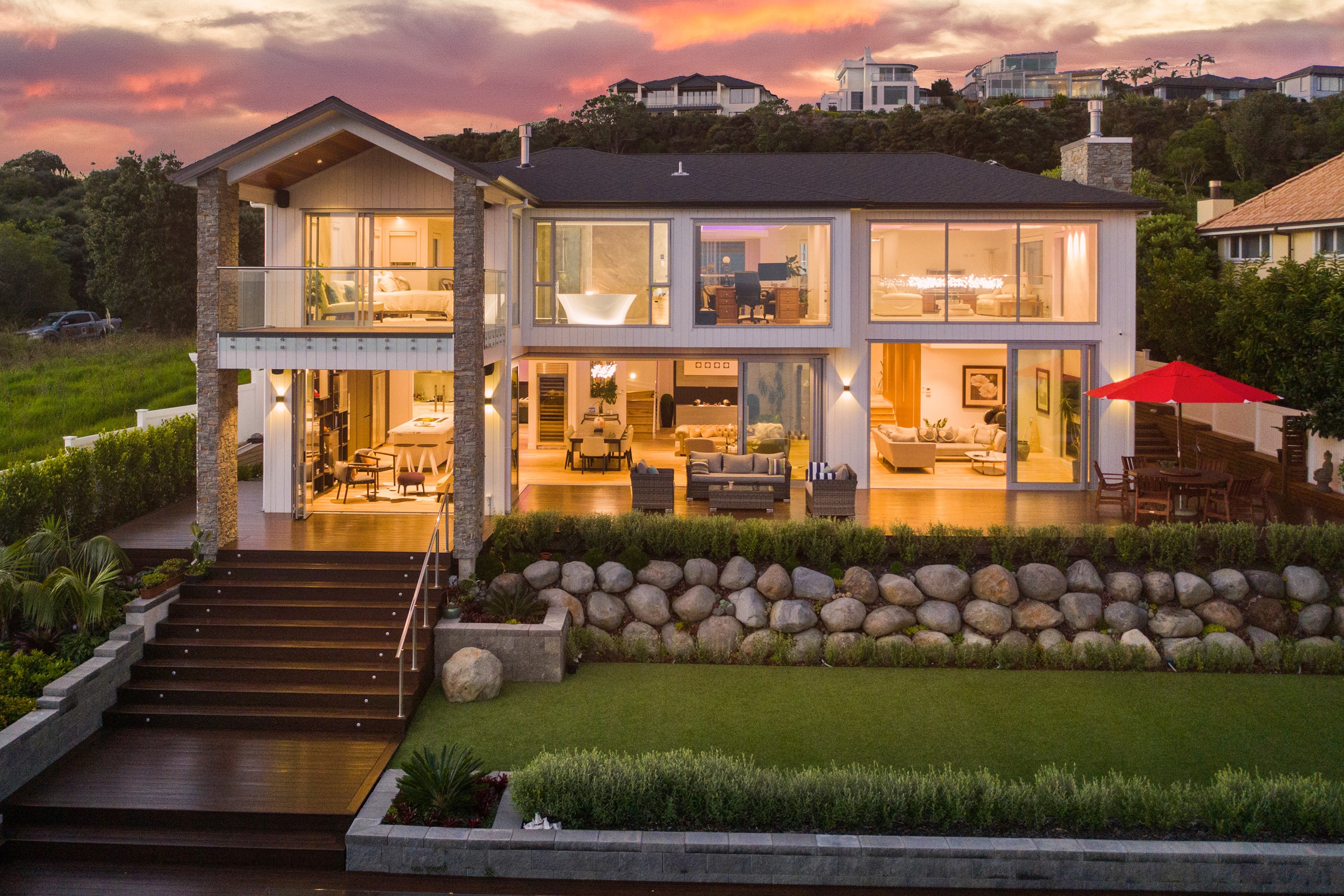 Here’s a builder’s home that’s a big deal. The 574sqm house sits on a 1749sqm Whangaparāoa Peninsula site that takes in sweeping views of the Hauraki Gulf. They’re not the only aspects of the property that are next-level. Luxury, opulence and top-notch craftsmanship are evident everywhere in this coastal estate. The sense of grandeur starts at the gate and carries on through the house with its four bedrooms, four-and-a-half bathrooms and five lounges. It continues out to spacious decks and an infinity pool with those vistas. The covered walkway to the entrance has a shiplap cedar ceiling and schist-clad columns. It’s a combination that’s repeated around the property and provides cohesion. Inside, special touches abound: designer lighting, a home cinema, marble-tile bathrooms, a soaring atrium with mezzanine and a walk-in wardrobe you could lose yourself in. Not to forget the mini-putting course between the house and pool. The undisputed stars, however, are the views – and this house has been cleverly designed to frame them from as many rooms as possible. You could say the builders have achieved a grand slam.