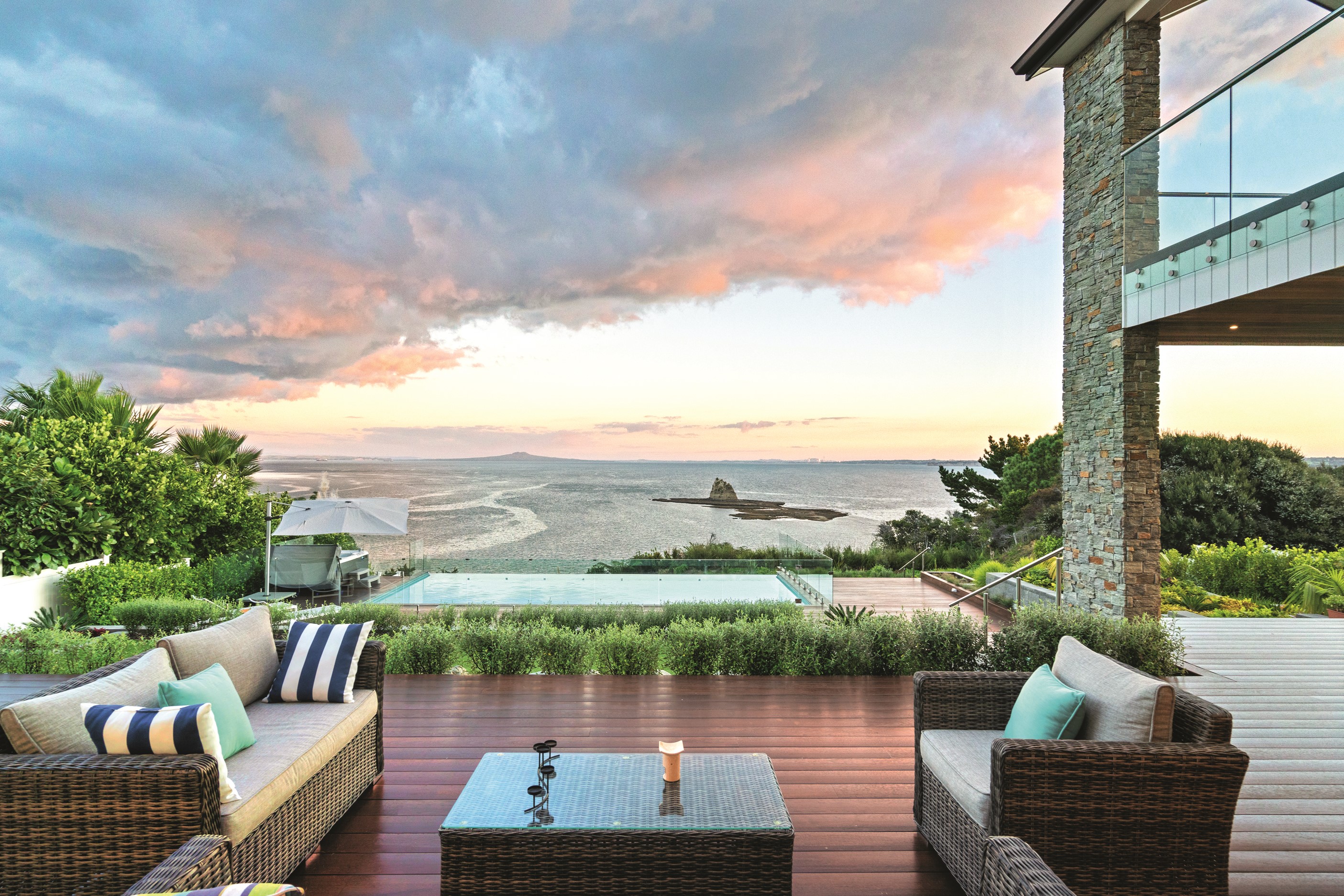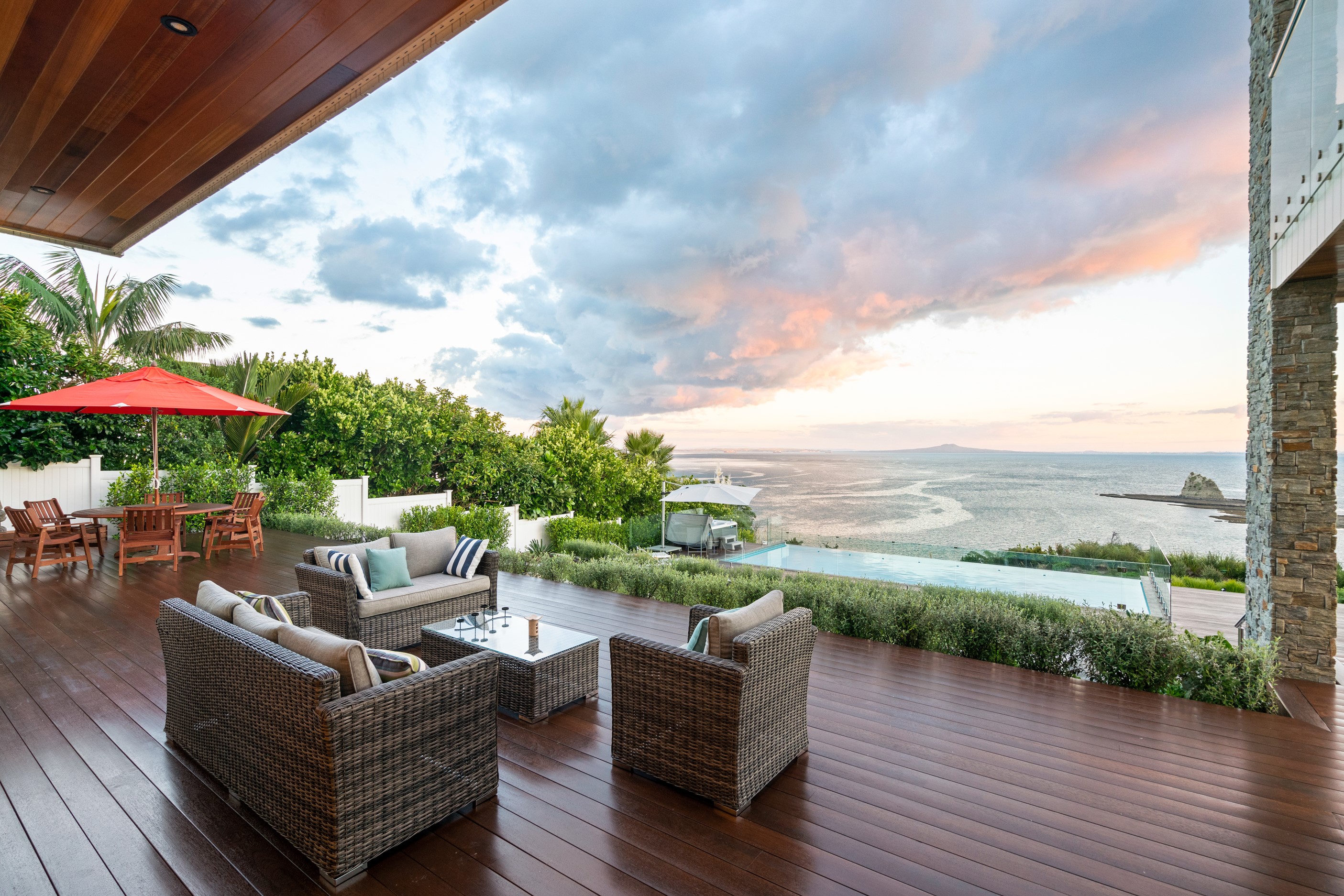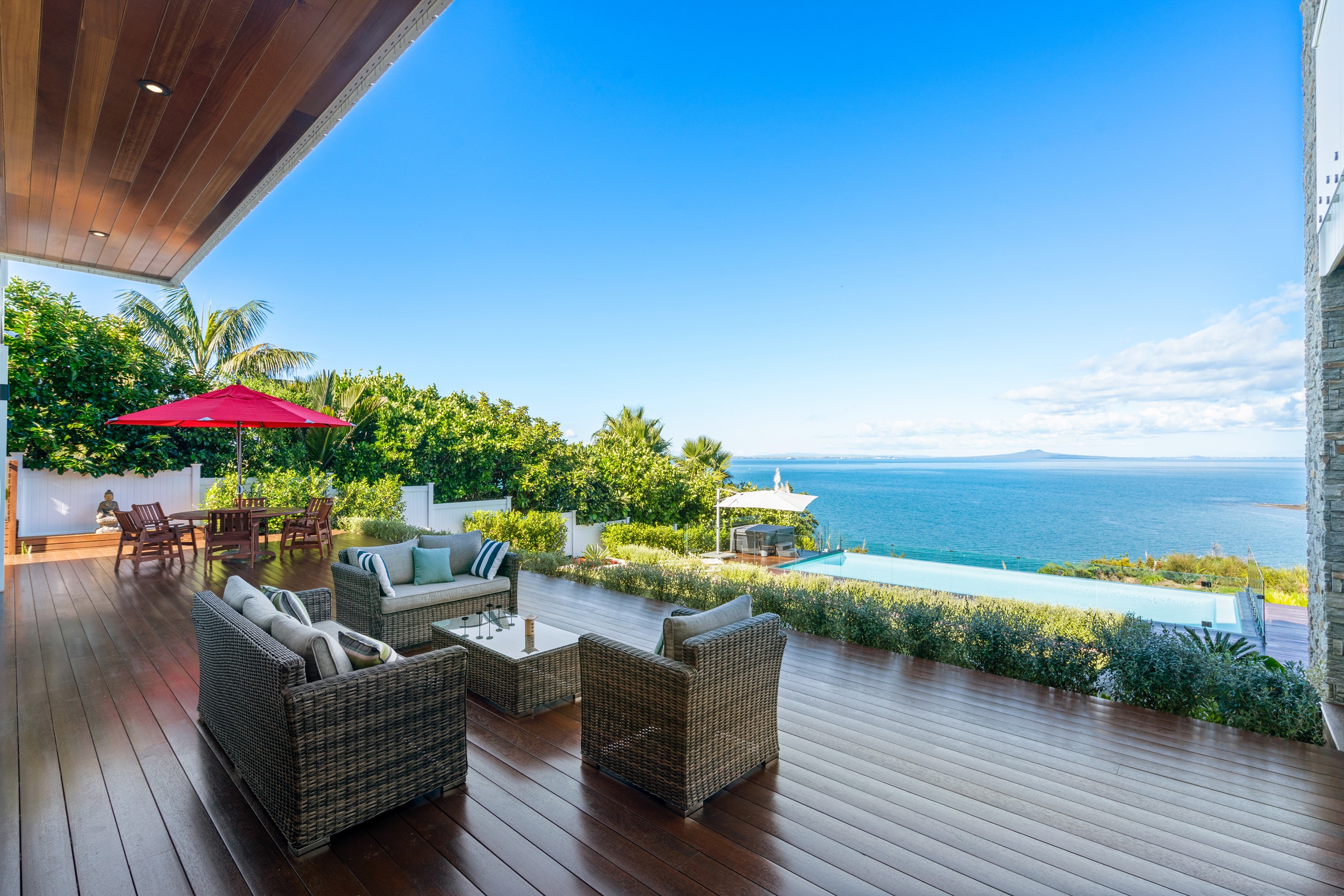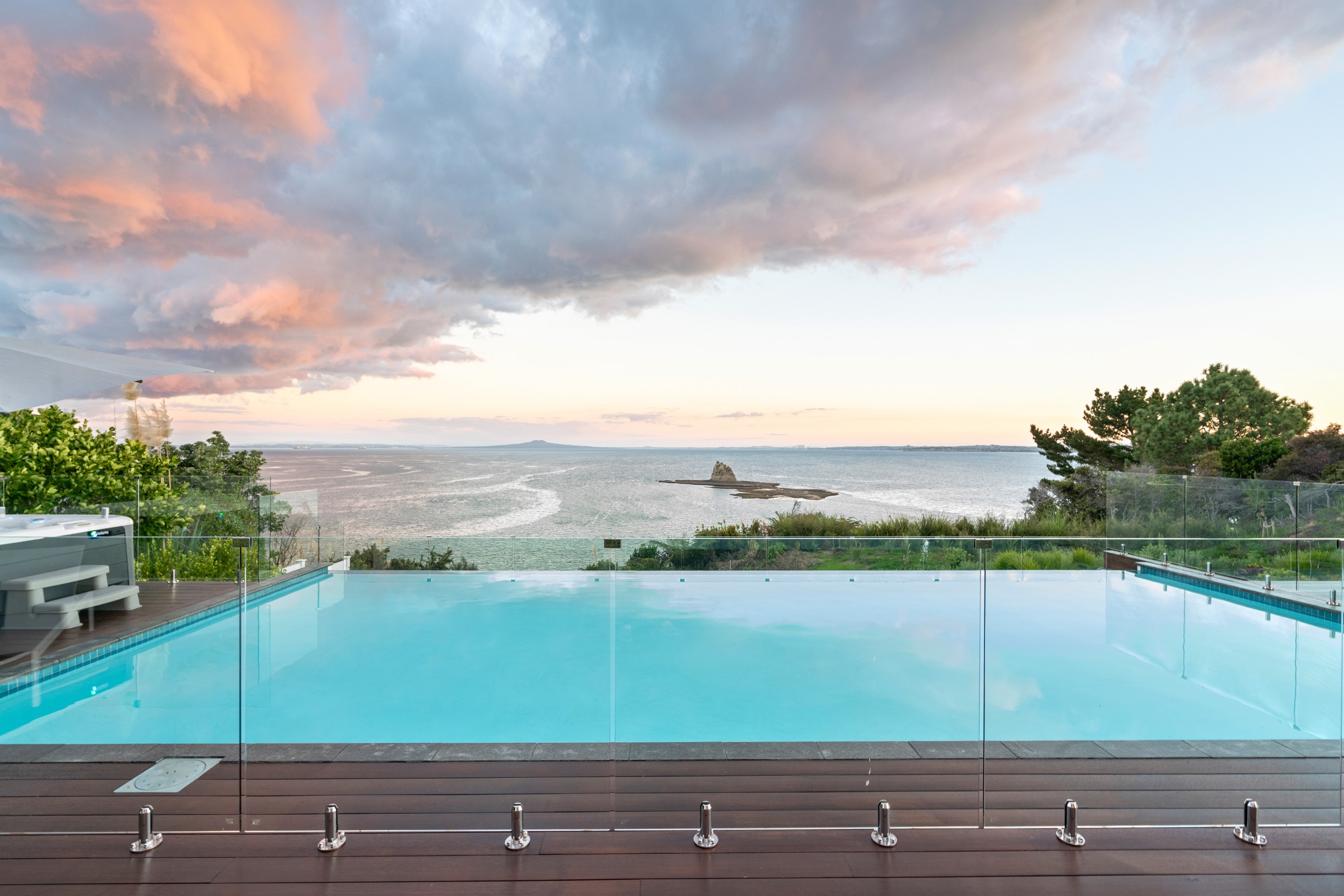Here’s a builder’s home that’s a big deal. The 574sqm house sits on a 1749sqm Whangaparāoa Peninsula site that takes in sweeping views of the Hauraki Gulf. They’re not the only aspects of the property that are next-level. Luxury, opulence and top-notch craftsmanship are evident everywhere in this coastal estate. The sense of grandeur starts at the gate and carries on through the house with its four bedrooms, four-and-a-half bathrooms and five lounges. It continues out to spacious decks and an infinity pool with those vistas. The covered walkway to the entrance has a shiplap cedar ceiling and schist-clad columns. It’s a combination that’s repeated around the property and provides cohesion. Inside, special touches abound: designer lighting, a home cinema, marble-tile bathrooms, a soaring atrium with mezzanine and a walk-in wardrobe you could lose yourself in. Not to forget the mini-putting course between the house and pool. The undisputed stars, however, are the views – and this house has been cleverly designed to frame them from as many rooms as possible. You could say the builders have achieved a grand slam.