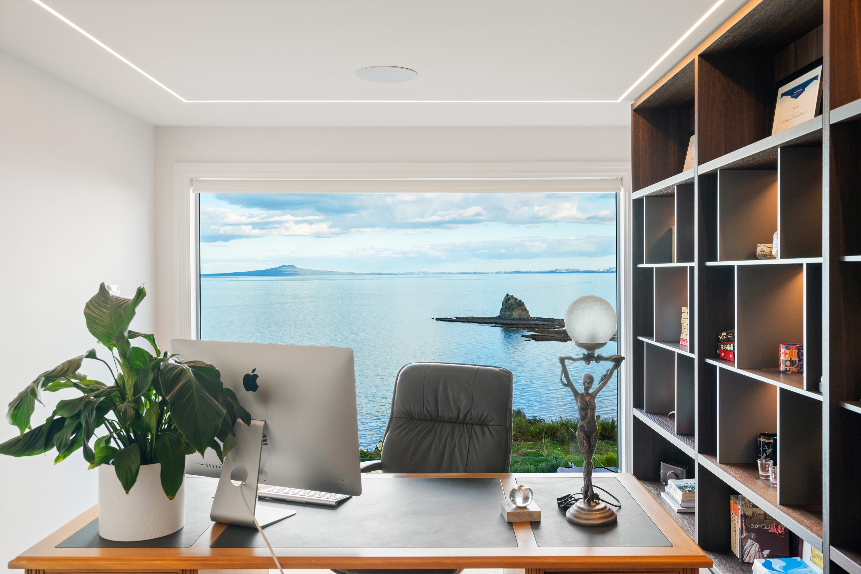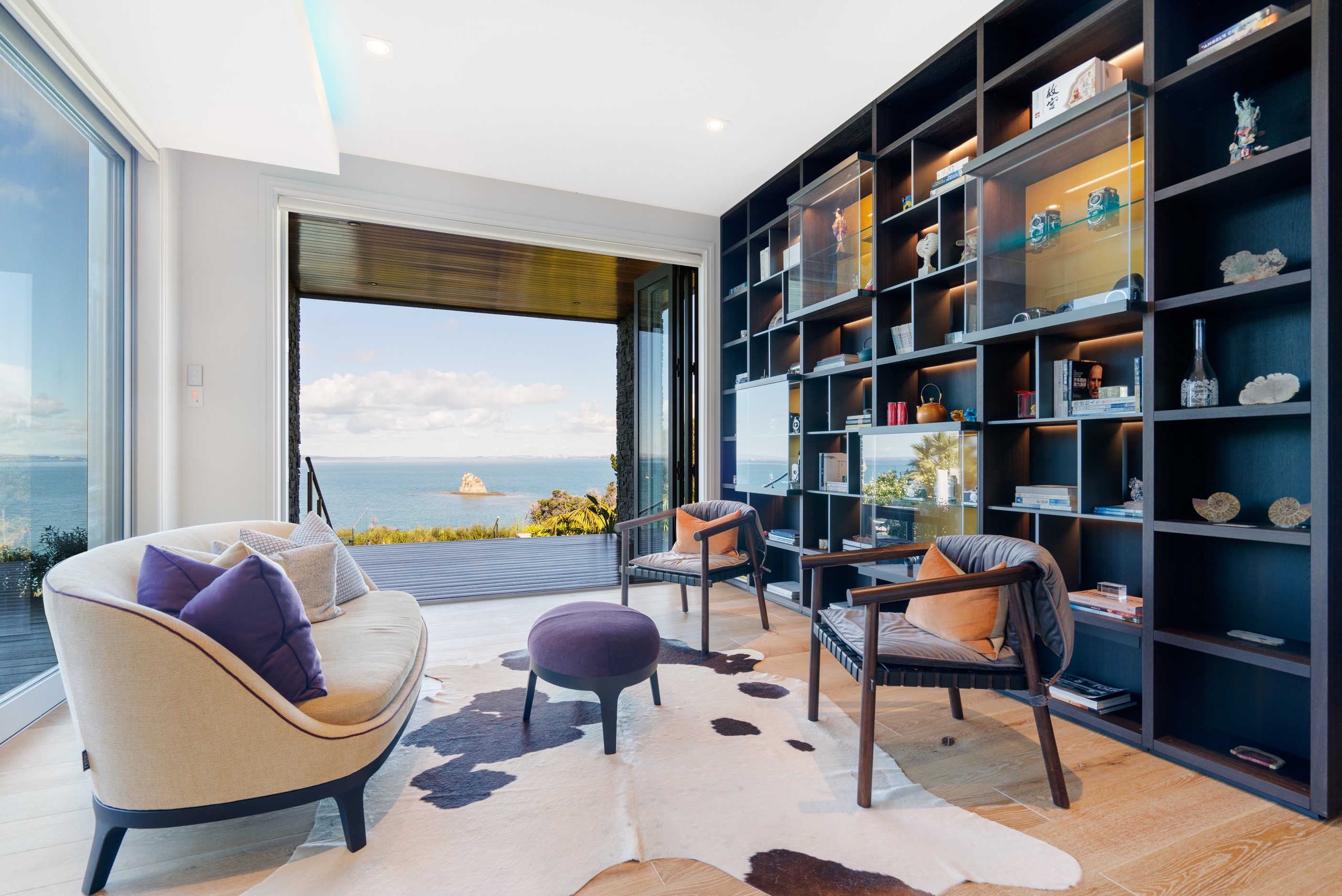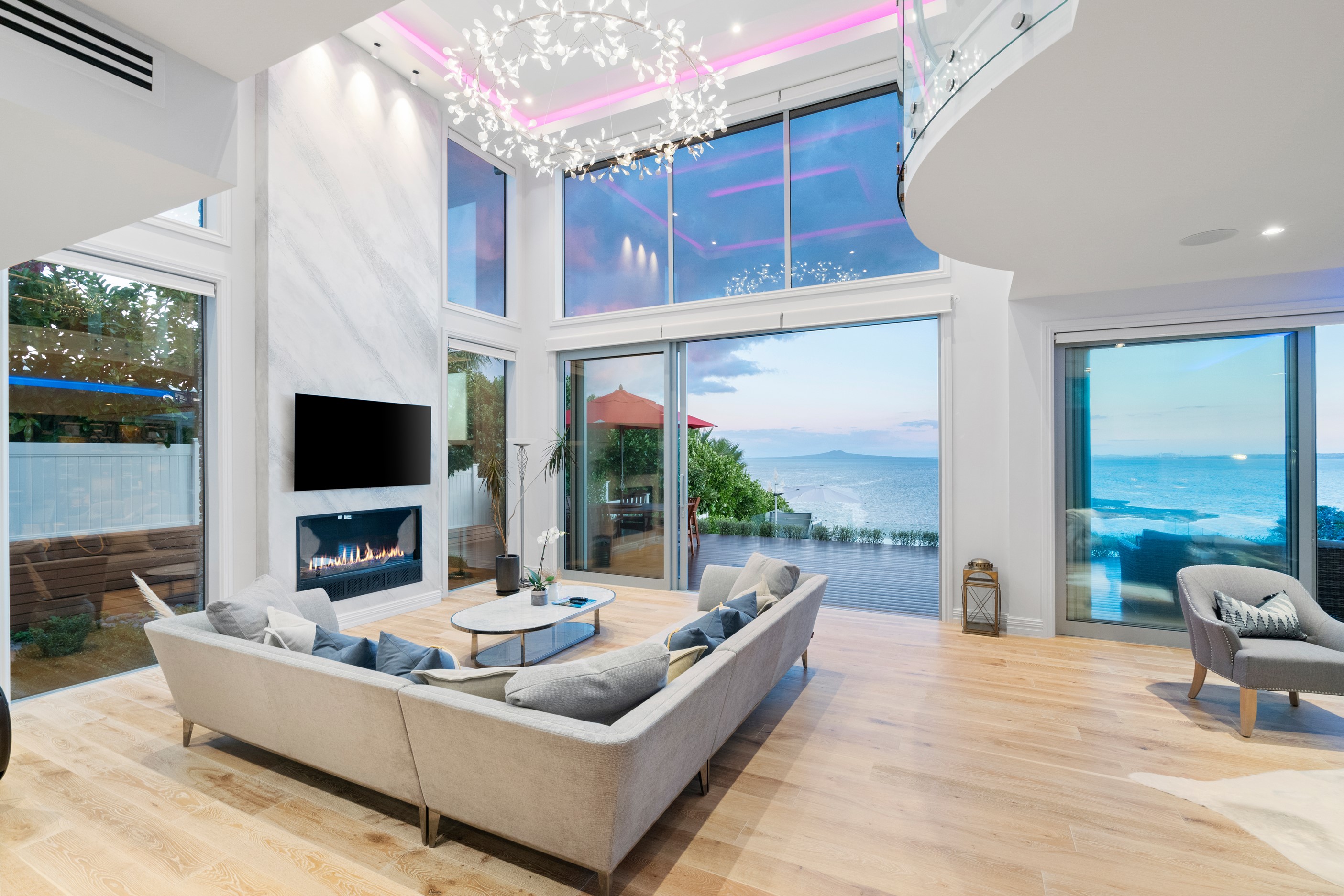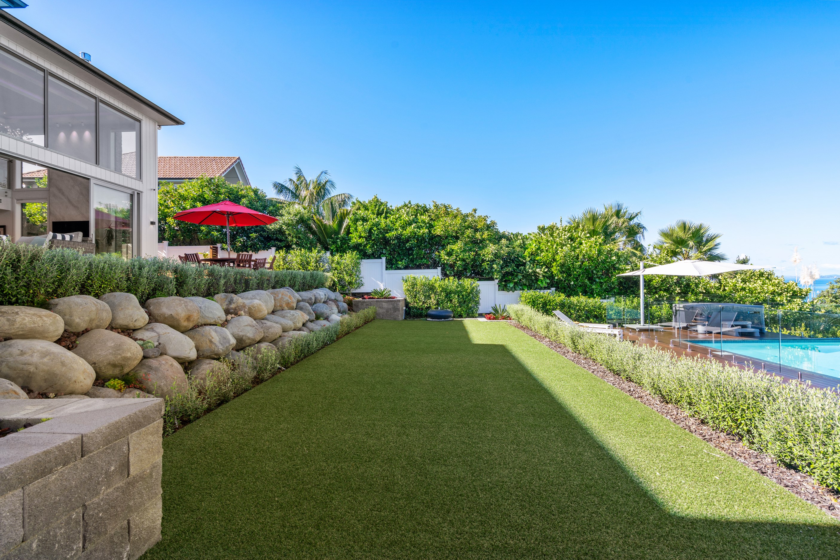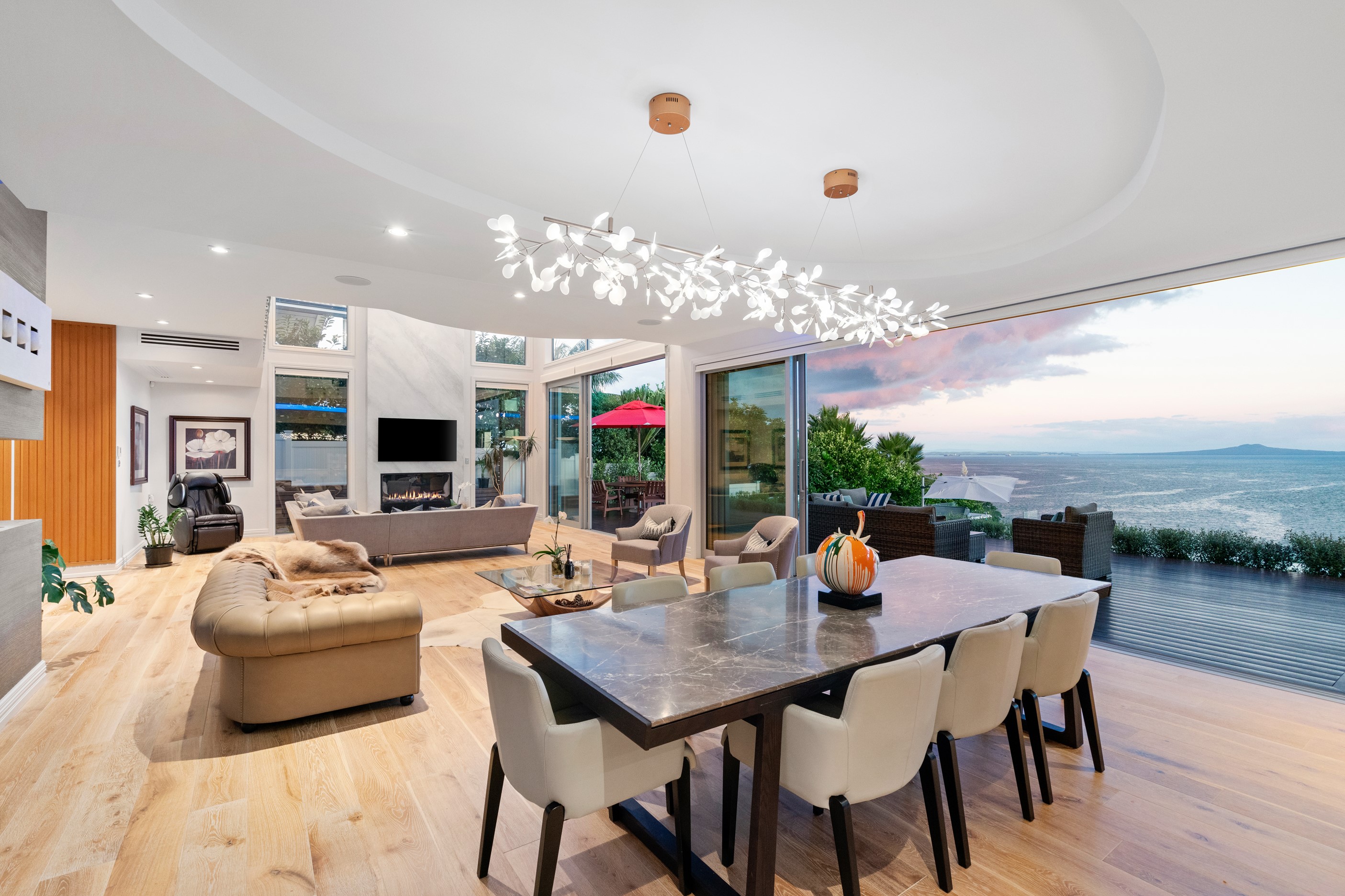 Here’s a builder’s home that’s a big deal. The 574sqm house sits on a 1749sqm Whangaparāoa Peninsula site that takes in sweeping views of the Hauraki Gulf. They’re not the only aspects of the property that are next-level. Luxury, opulence and top-notch craftsmanship are evident everywhere in this coastal estate. The sense of grandeur starts at the gate and carries on through the house with its four bedrooms, four-and-a-half bathrooms and five lounges. It continues out to spacious decks and an infinity pool with those vistas. The covered walkway to the entrance has a shiplap cedar ceiling and schist-clad columns. It’s a combination that’s repeated around the property and provides cohesion. Inside, special touches abound: designer lighting, a home cinema, marble-tile bathrooms, a soaring atrium with mezzanine and a walk-in wardrobe you could lose yourself in. Not to forget the mini-putting course between the house and pool. The undisputed stars, however, are the views – and this house has been cleverly designed to frame them from as many rooms as possible. You could say the builders have achieved a grand slam.