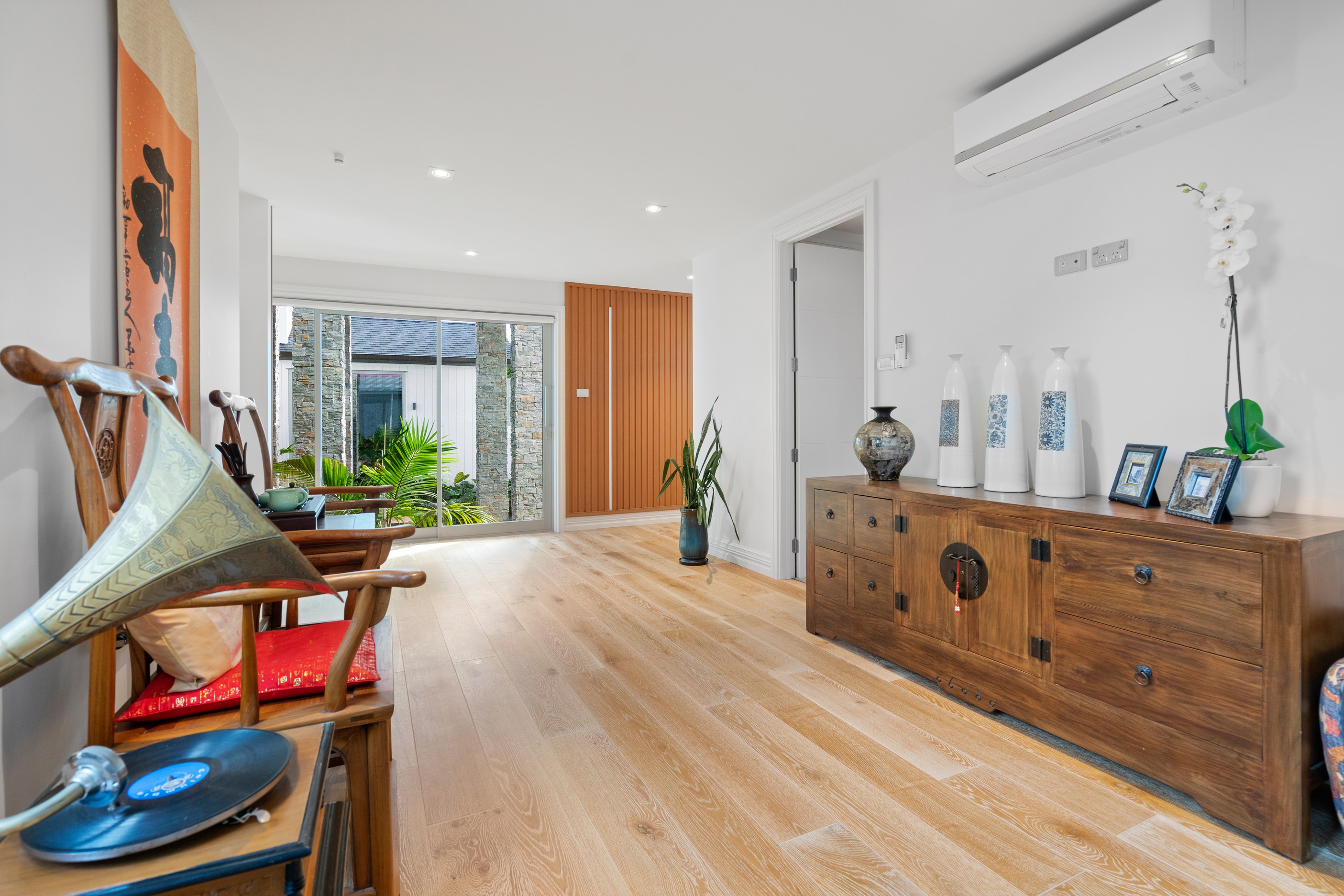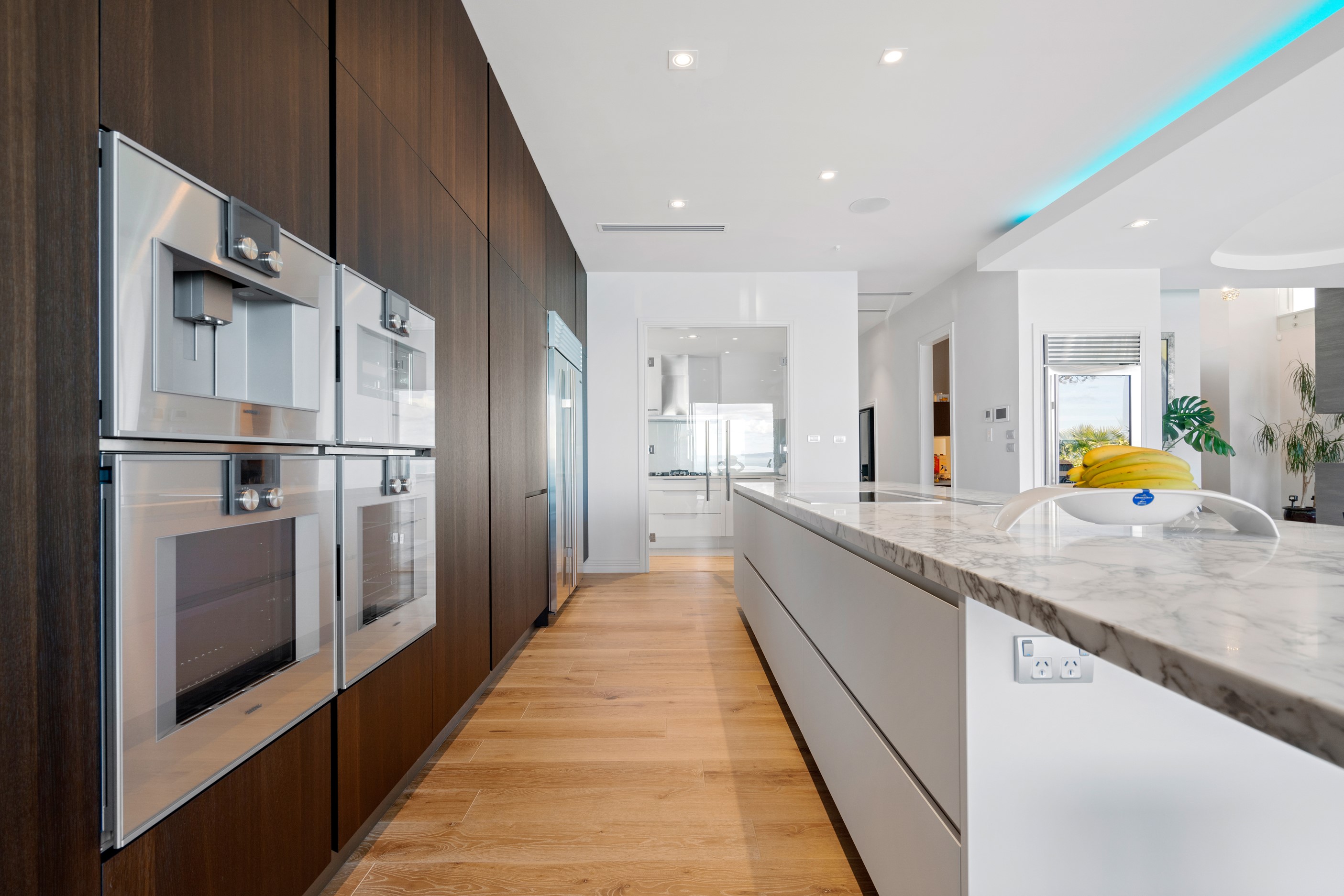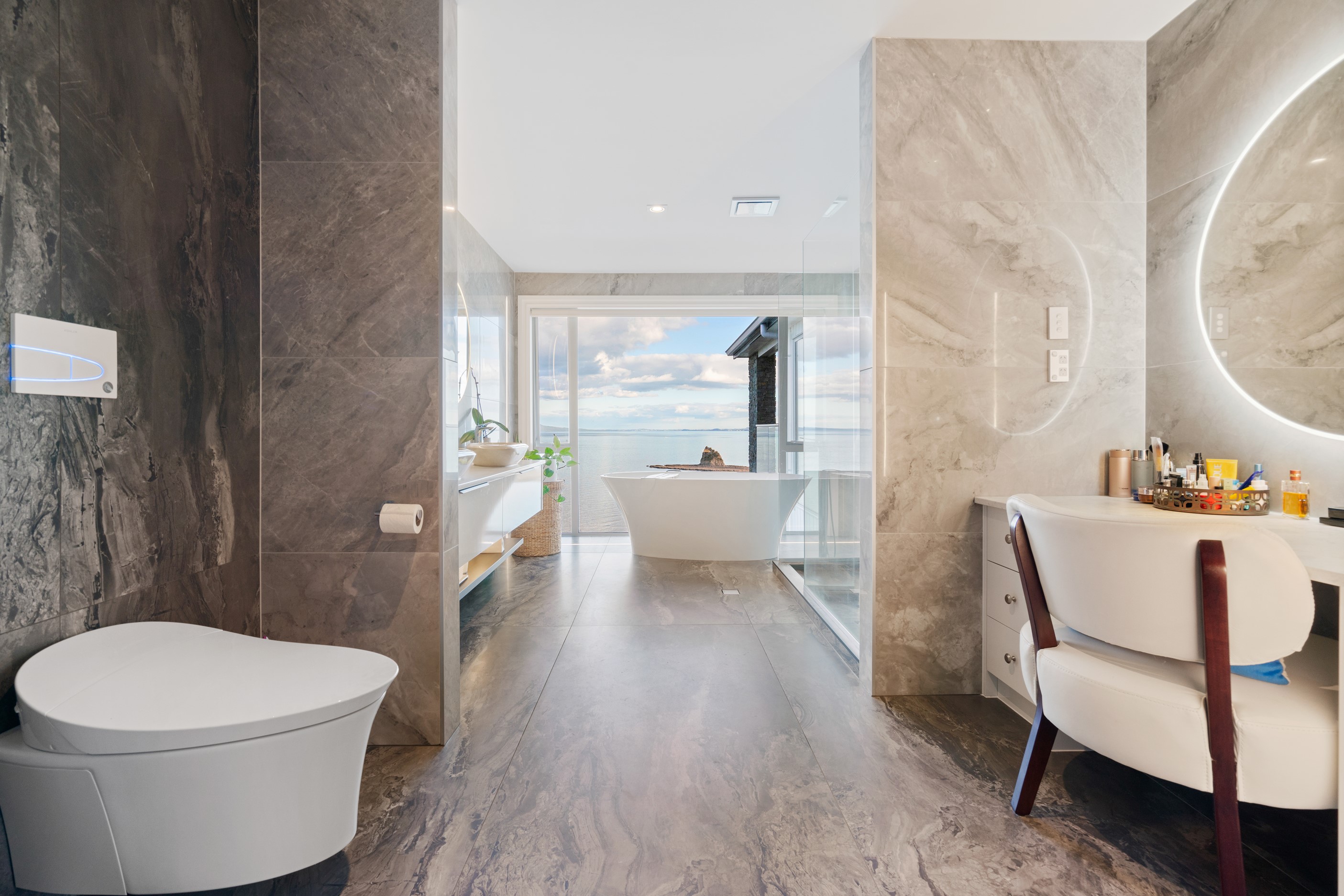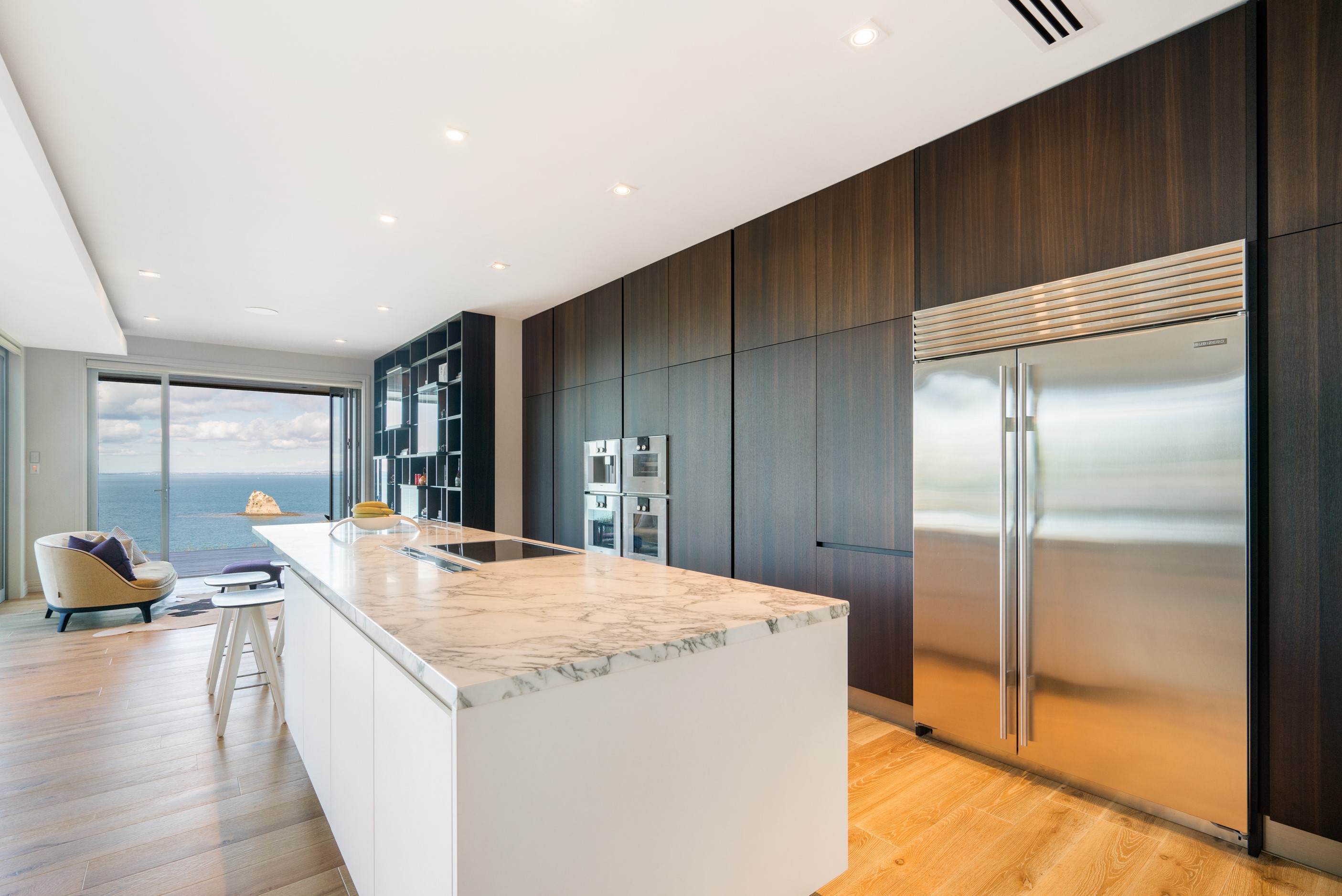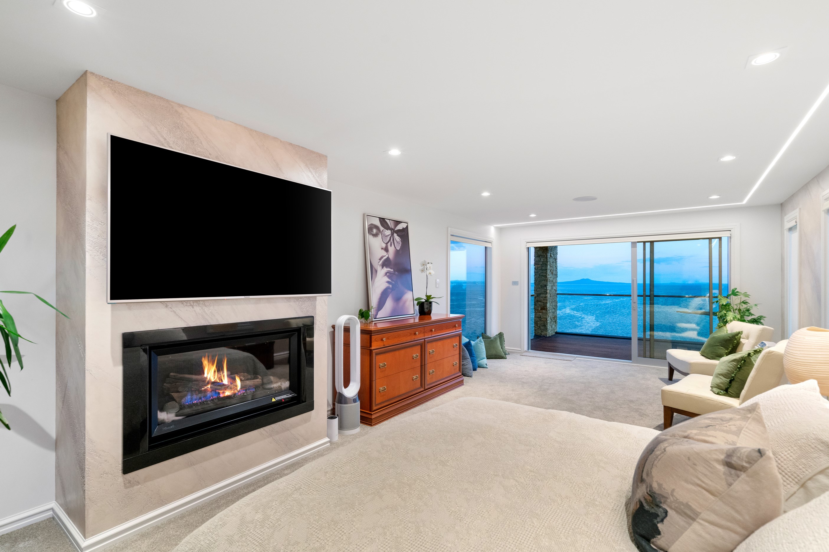 Here’s a builder’s home that’s a big deal. The 574sqm house sits on a 1749sqm Whangaparāoa Peninsula site that takes in sweeping views of the Hauraki Gulf. They’re not the only aspects of the property that are next-level. Luxury, opulence and top-notch craftsmanship are evident everywhere in this coastal estate. The sense of grandeur starts at the gate and carries on through the house with its four bedrooms, four-and-a-half bathrooms and five lounges. It continues out to spacious decks and an infinity pool with those vistas. The covered walkway to the entrance has a shiplap cedar ceiling and schist-clad columns. It’s a combination that’s repeated around the property and provides cohesion. Inside, special touches abound: designer lighting, a home cinema, marble-tile bathrooms, a soaring atrium with mezzanine and a walk-in wardrobe you could lose yourself in. Not to forget the mini-putting course between the house and pool. The undisputed stars, however, are the views – and this house has been cleverly designed to frame them from as many rooms as possible. You could say the builders have achieved a grand slam.