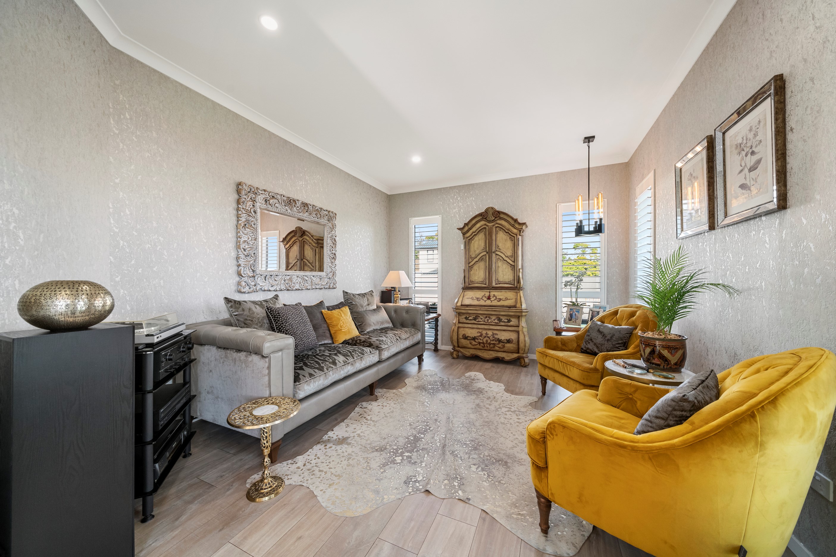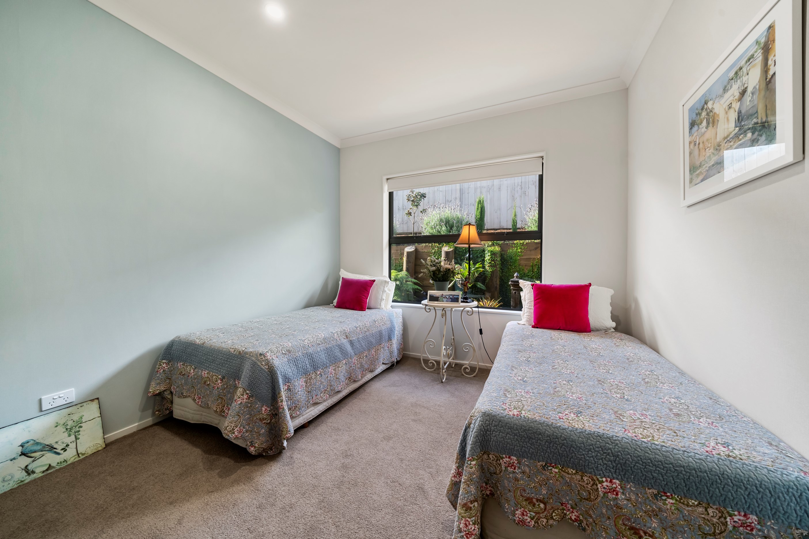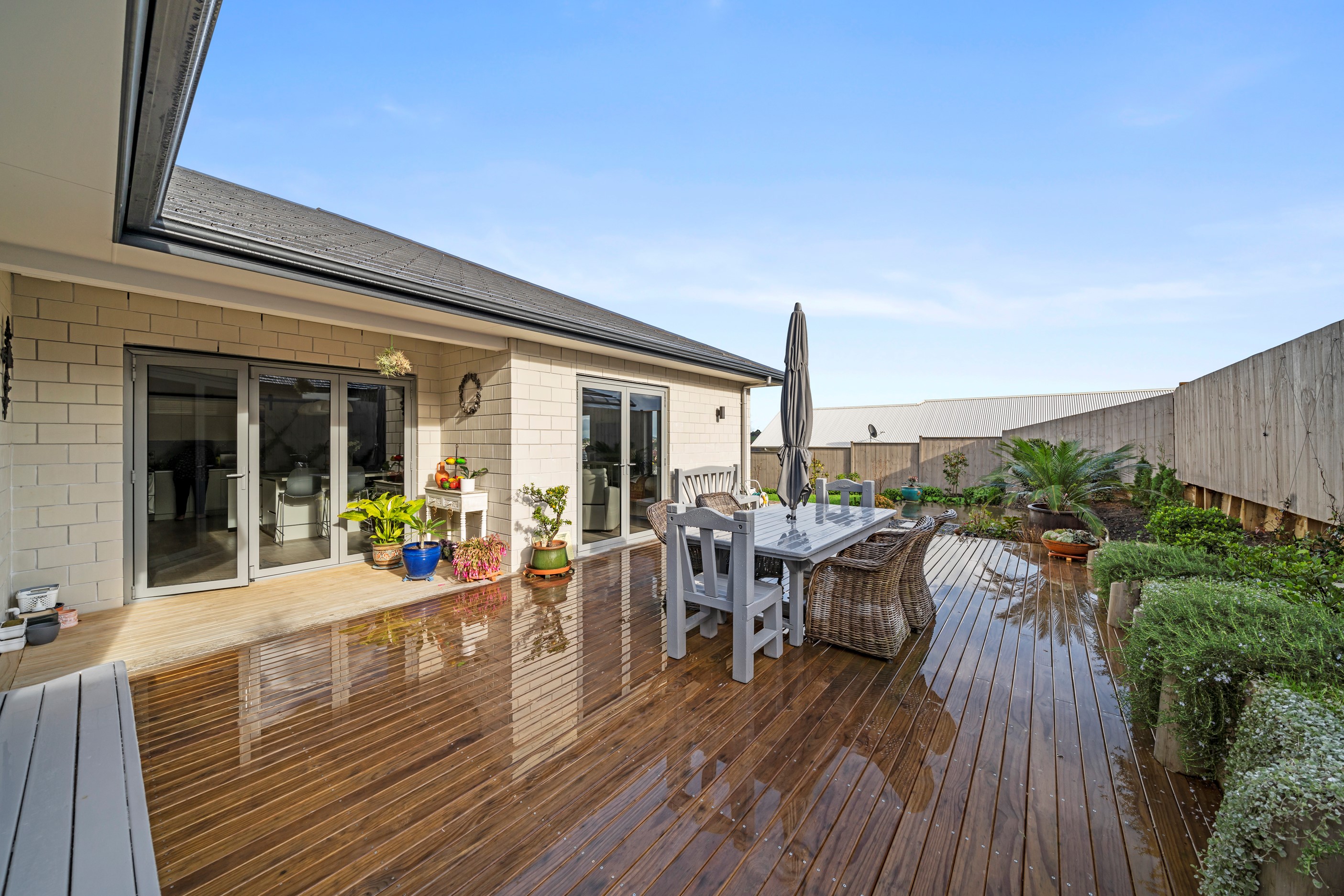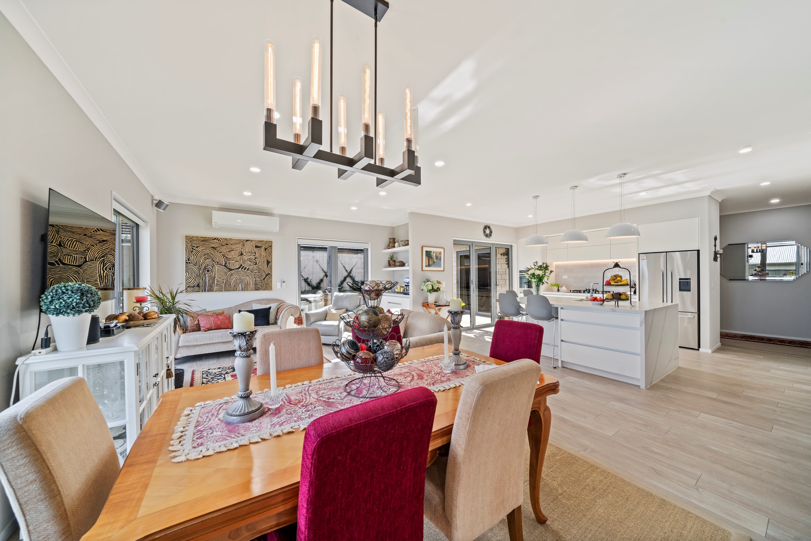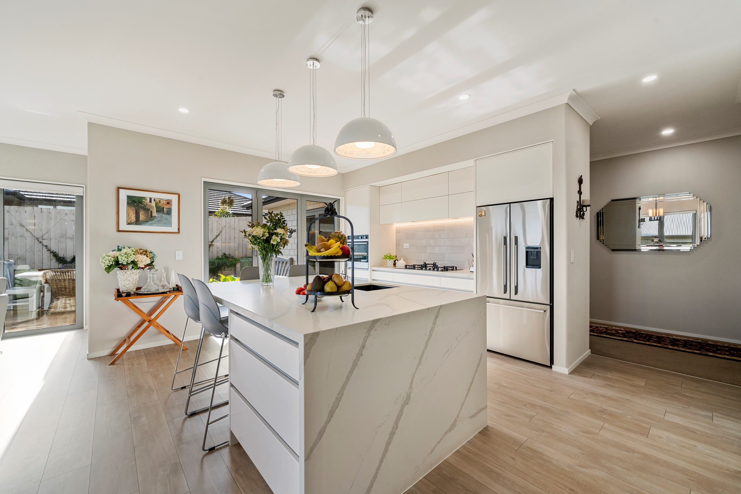 This delightful single-level family home is light, bright and oh-so inviting. Eye-catching wallpaper in the entry hall creates a striking first impression for guests. Further inside, the spacious kitchen is the heart of this warm and welcoming home. Featuring ample storage – including a large scullery with a wine cabinet – and an engineered-stone island benchtop, it’s the perfect hub for family life and entertaining. With a generous living and dining area, media room, study and double garage, there is plenty of space and storage for everyone. The design and fit-out of the bathrooms are a cut above, featuring large-format floor and wall tiles and textured white walls. A stand-alone bath adds a touch of luxe to the ensuite off the generously proportioned main bedroom. The north-facing lounge opens onto a deck and overlooks a compact, low-maintenance garden. Clad in tasteful cream brick veneer, and designed with an efficient use of space across the 215sqm footprint, this three-bedroom, two-bathroom home represents relaxed family living at its finest.