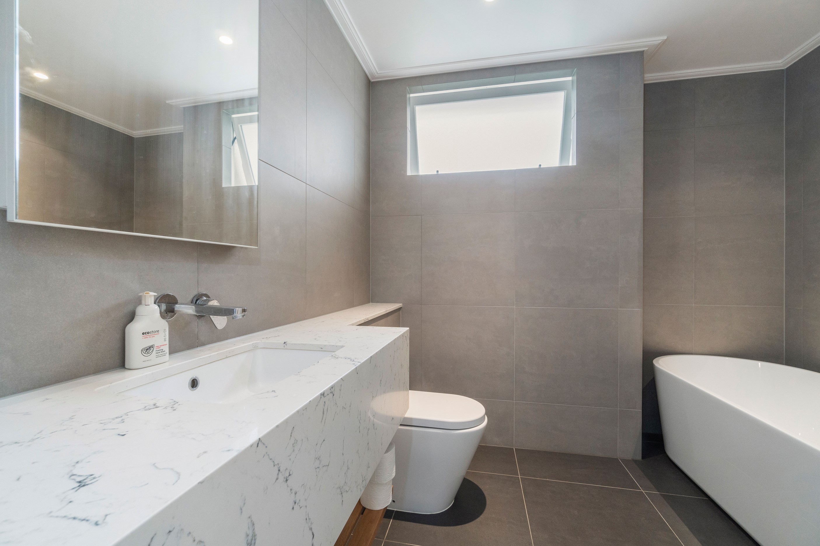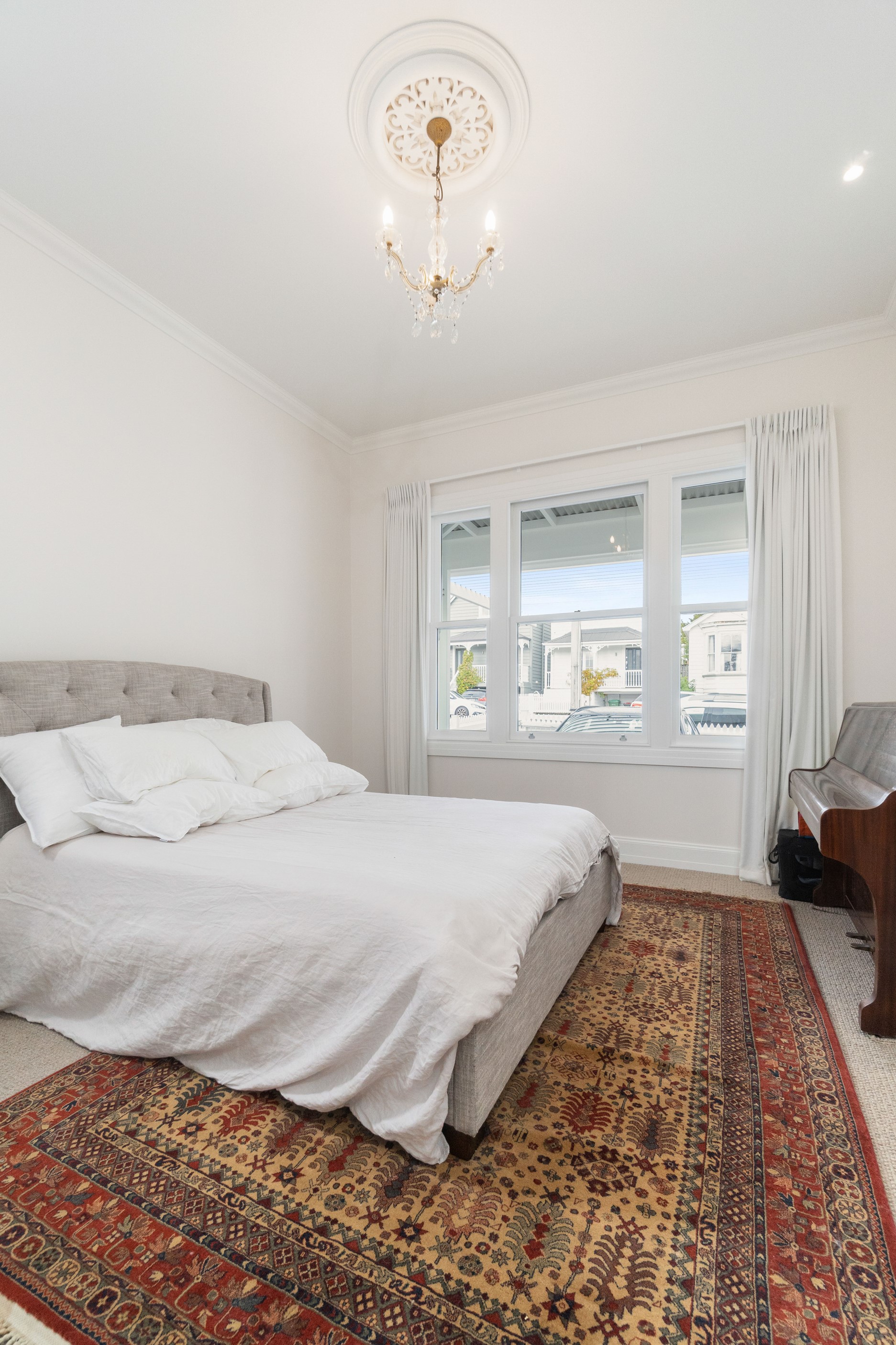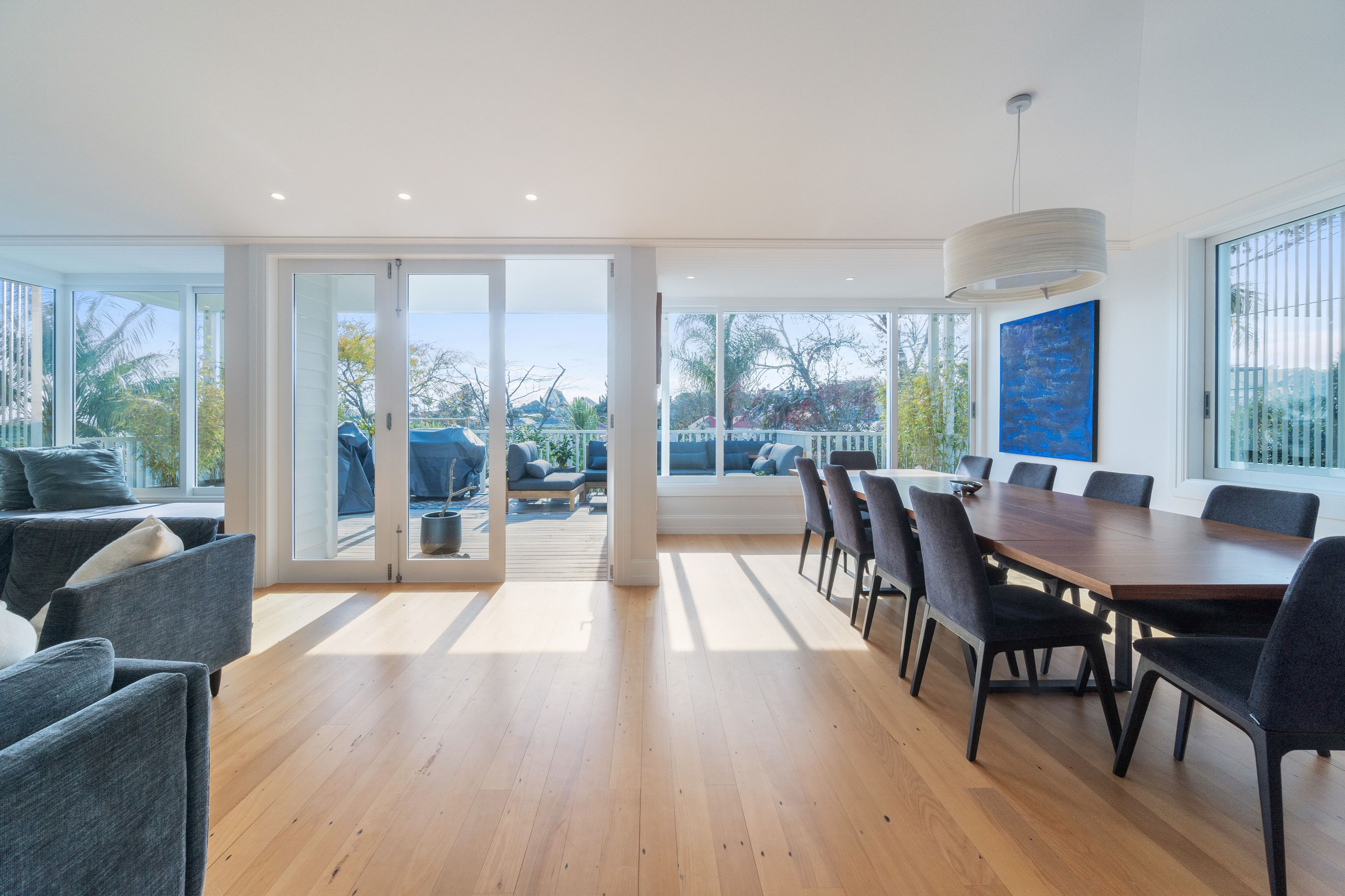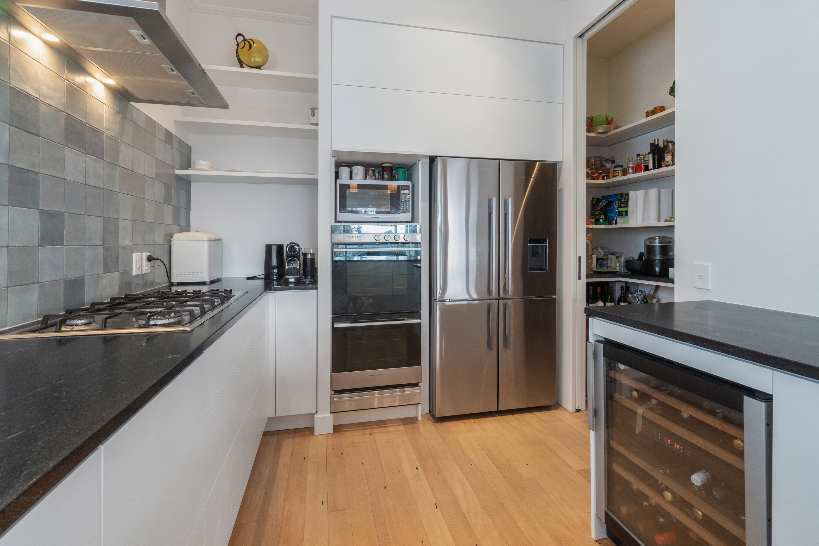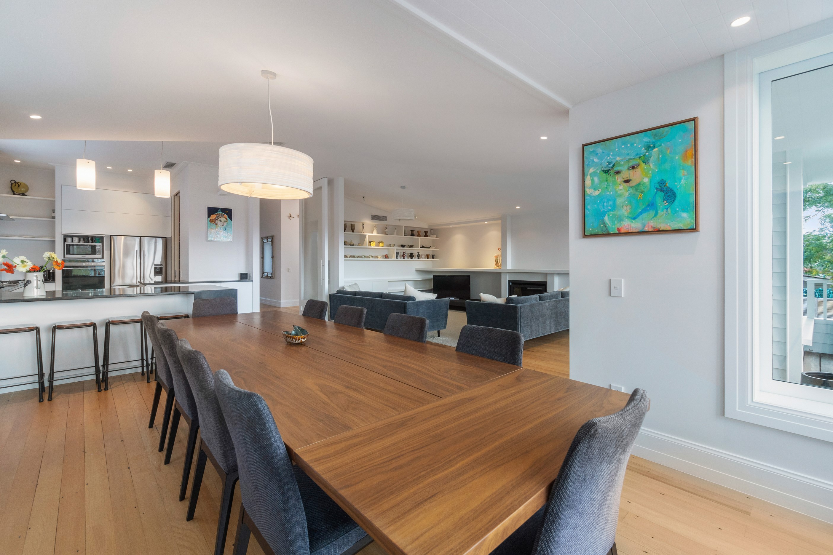 When renovating an existing home, it is common practice to add extra living space. But the owners of this tired inner-suburban villa had a further request on their wish list, one that many take for granted – an off-street parking space for the family car. With a tight site and limited access, there were some big challenges to overcome. Yet the potential to create something special was even bigger. Precise planning and clever design allowed for covered, secure parking. Next on the list was maximising the spectacular views and privacy afforded by the elevation at the back of the site. The home was extended to add a second living space here. A full-width balcony on the upper level soaks up the sunshine and light, while providing shelter for the paved outdoor living space below. Although the house has essentially been rebuilt, it retains its original character – right down to replicating and repairing the pressed-metal ceilings and supporting and retaining a redundant, now decorative, original brick chimney. The result is a charming, yet modern home that seamlessly fits into its neighbourhood.