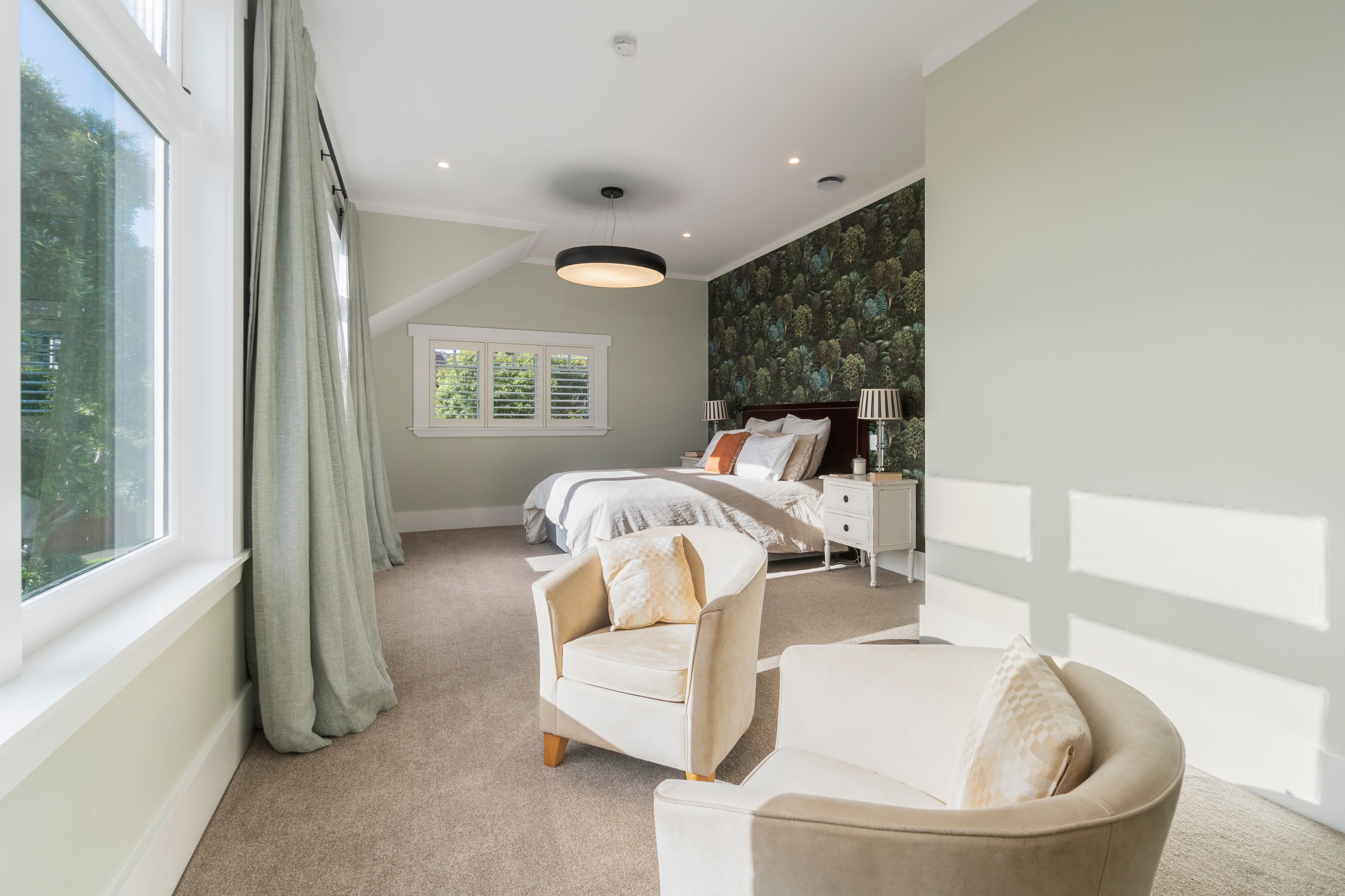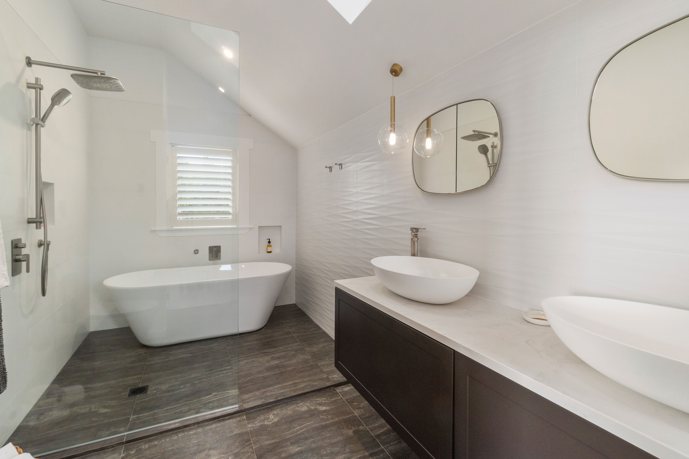 The owners wanted a revamp and some extra space in their character home in an established neighbourhood. It was a simple enough request, but the project involved reconfiguring bedrooms and bathrooms, altering the structure and roofline, demolishing an old garage and creating a brand-new entrance. Enter the building team. An early task was updating the bracing calculations for the altered roofline and structural beams, and they then got busy demolishing and excavating. The team constructed foundations to support the new garage and the room above it, which was destined to become the spacious main bedroom with a walk-in wardrobe and ensuite. Once these areas were framed, the stairwell was remodelled and the upper three bedrooms and bathrooms reconfigured, insulated and relined. A new driveway, entry fence and decks were added and the whole property was given a fresh coat of paint. The result: a complete and cohesive makeover that honours the character and integrity of the house while adding all the space and mod cons the clients wanted.