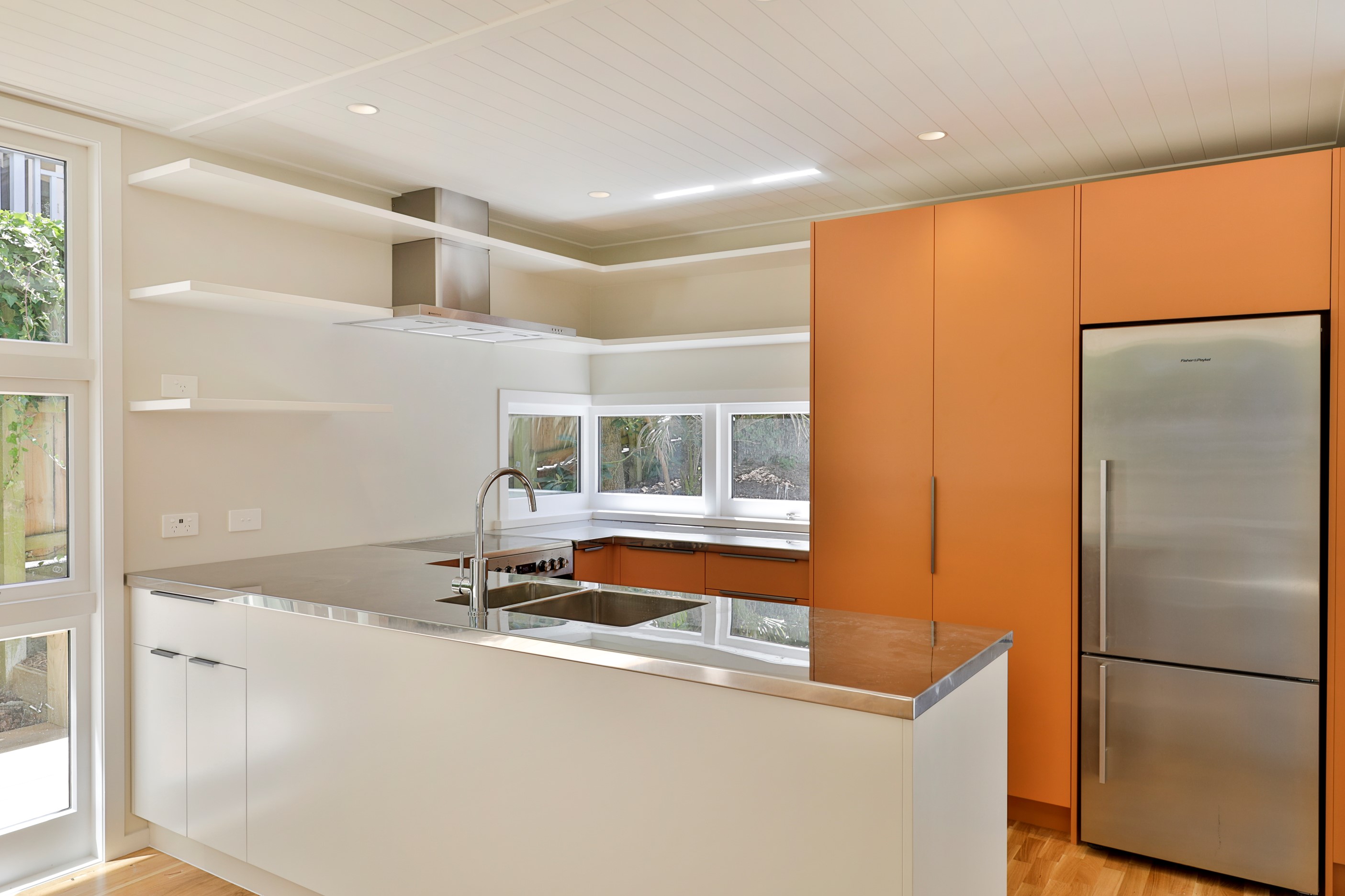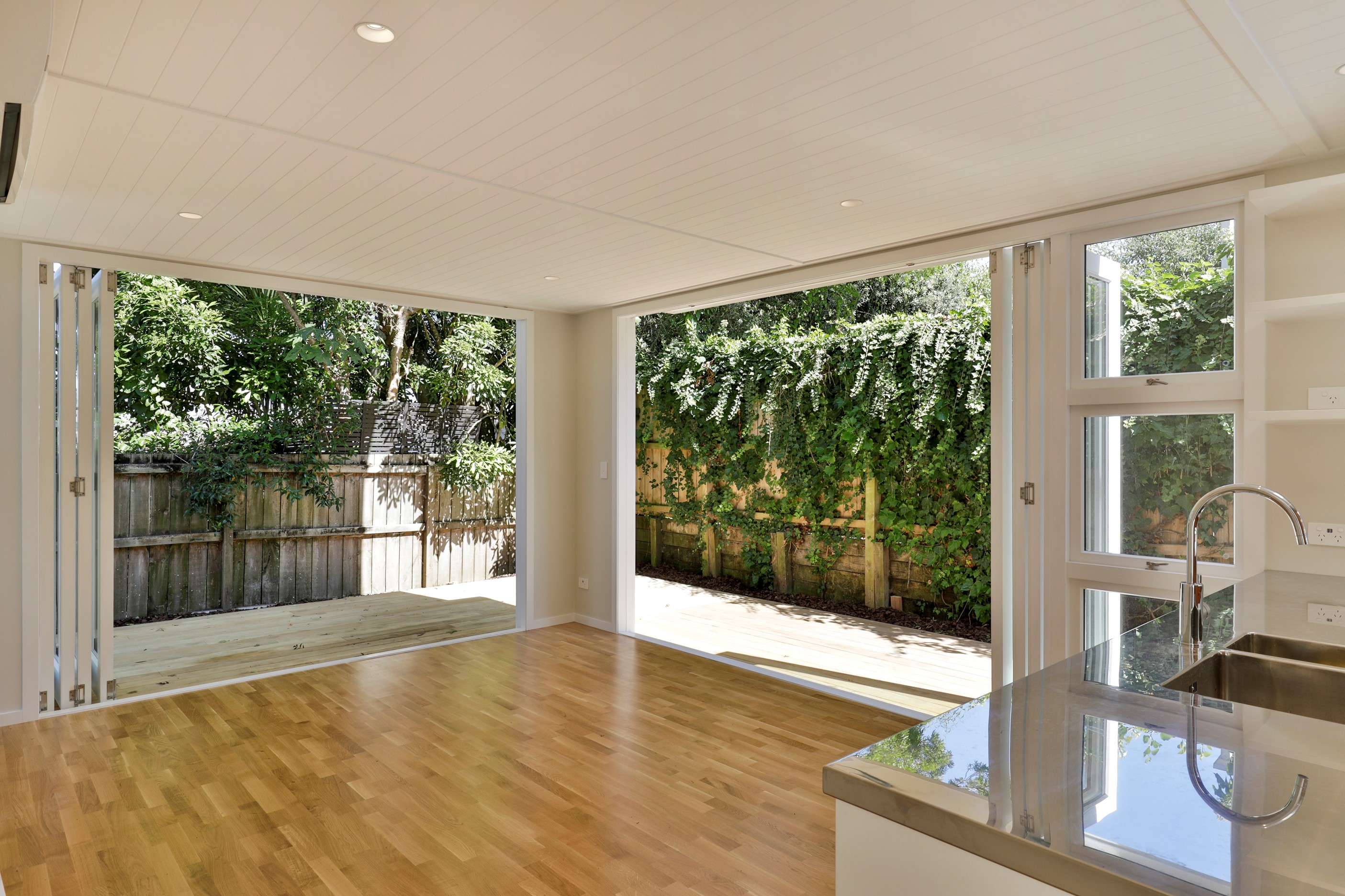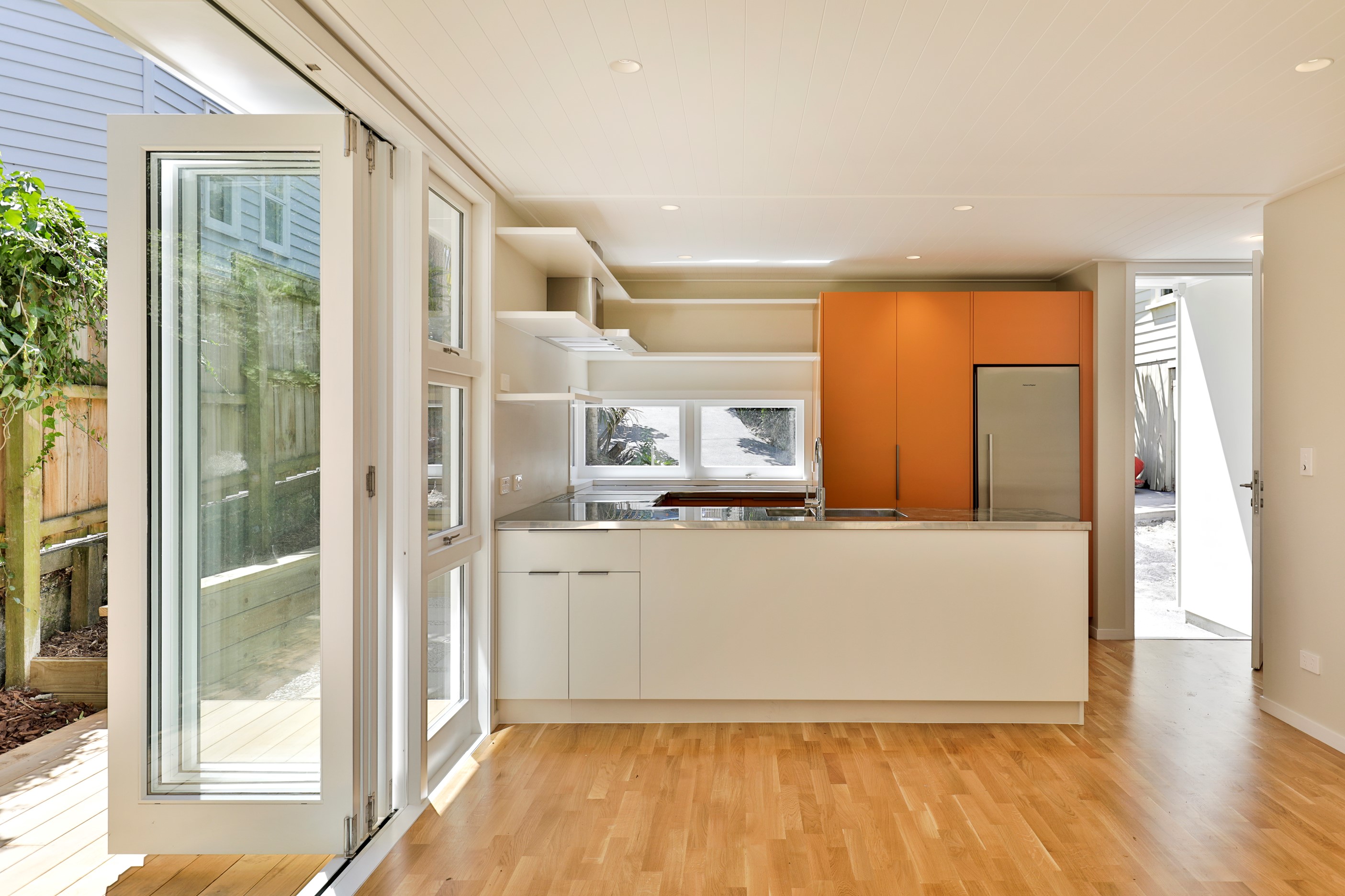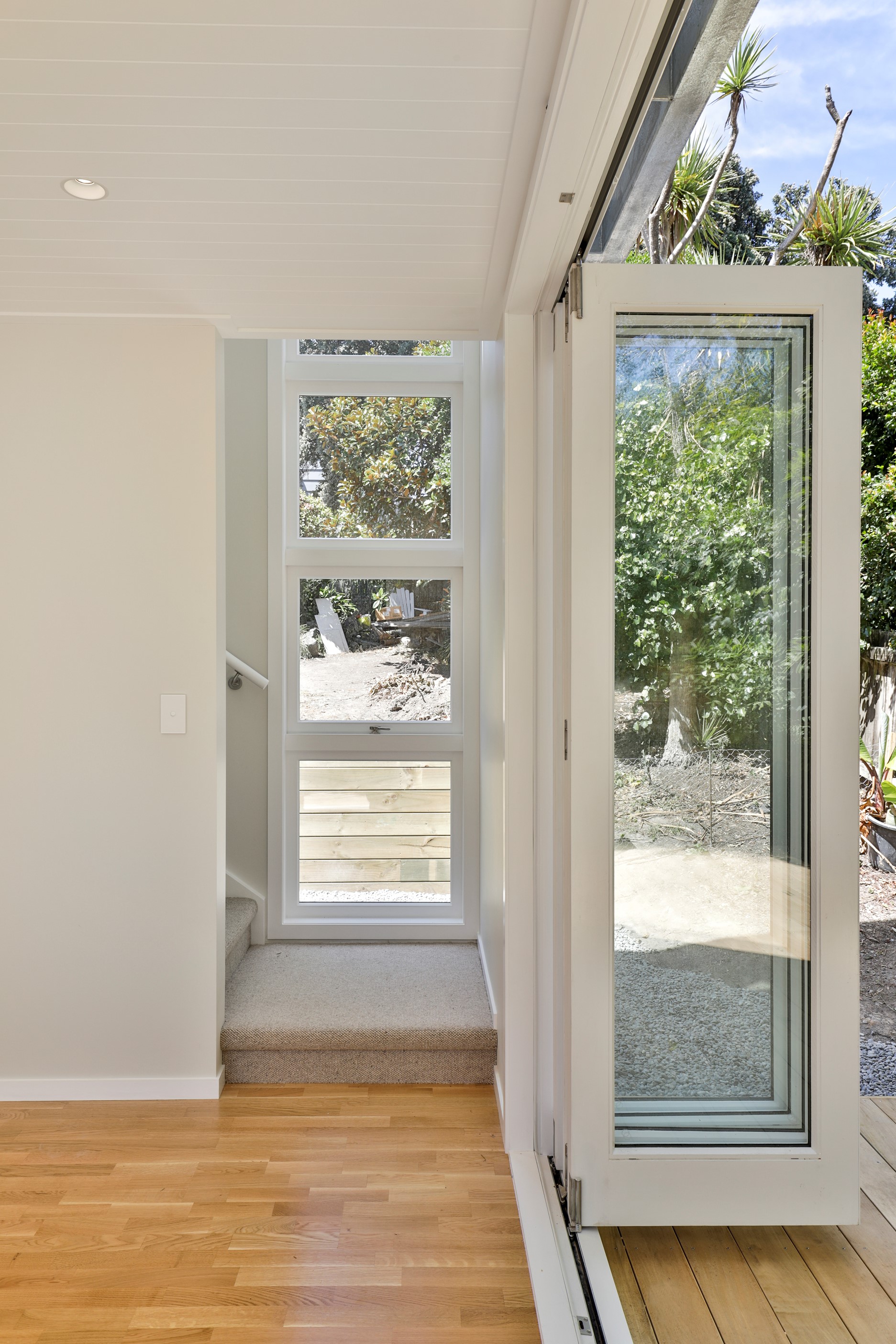 Who says minor dwellings need to be boxy and plain? This 65sqm architectural house in the central city is a great example of thinking outside the usual square or rectangle. The thoughtful design fits into its character neighbourhood, makes efficient use of its limited footprint, and the workmanship is top-drawer. The lower level has an open-plan kitchen/dining/lounge, plus a tucked-away laundry. The living space is bathed in natural light, thanks to bifold doors on two walls that open directly to decking and the trees that surround it. And small doesn’t mean that details need to be sacrificed for space. You’ll find V-groove ply ceilings, custom timber joinery throughout and stairs that feature windows from the ground floor right through to the ceiling of the top storey. Upstairs are two bedrooms – one with a balustrade and doors that open wide and look out onto trees. But perhaps the crowning glory of this wee house is the exterior, which is bold and adventurous, but references the gables and lines of the older homes that surround it. Small, but perfectly formed.