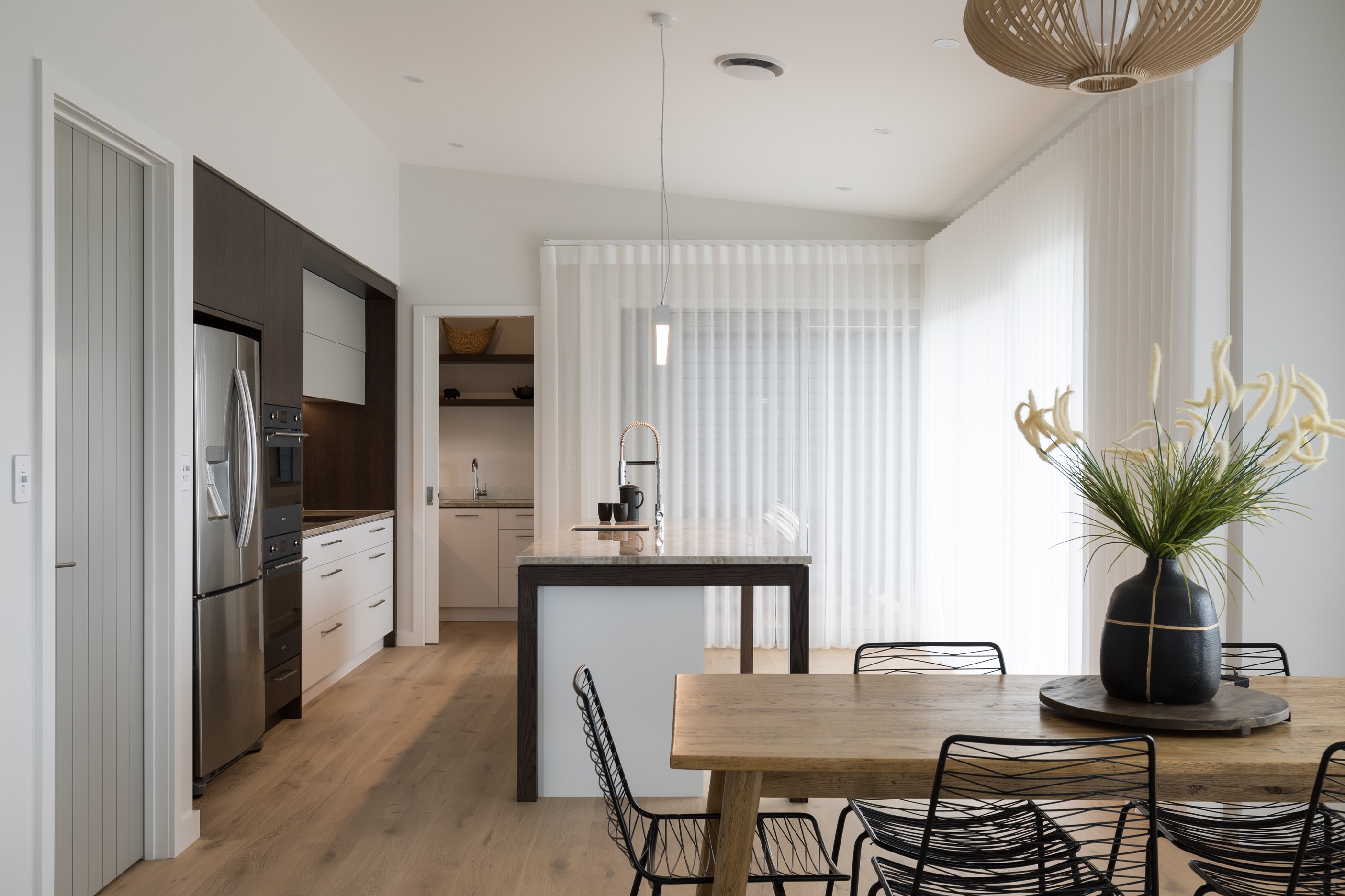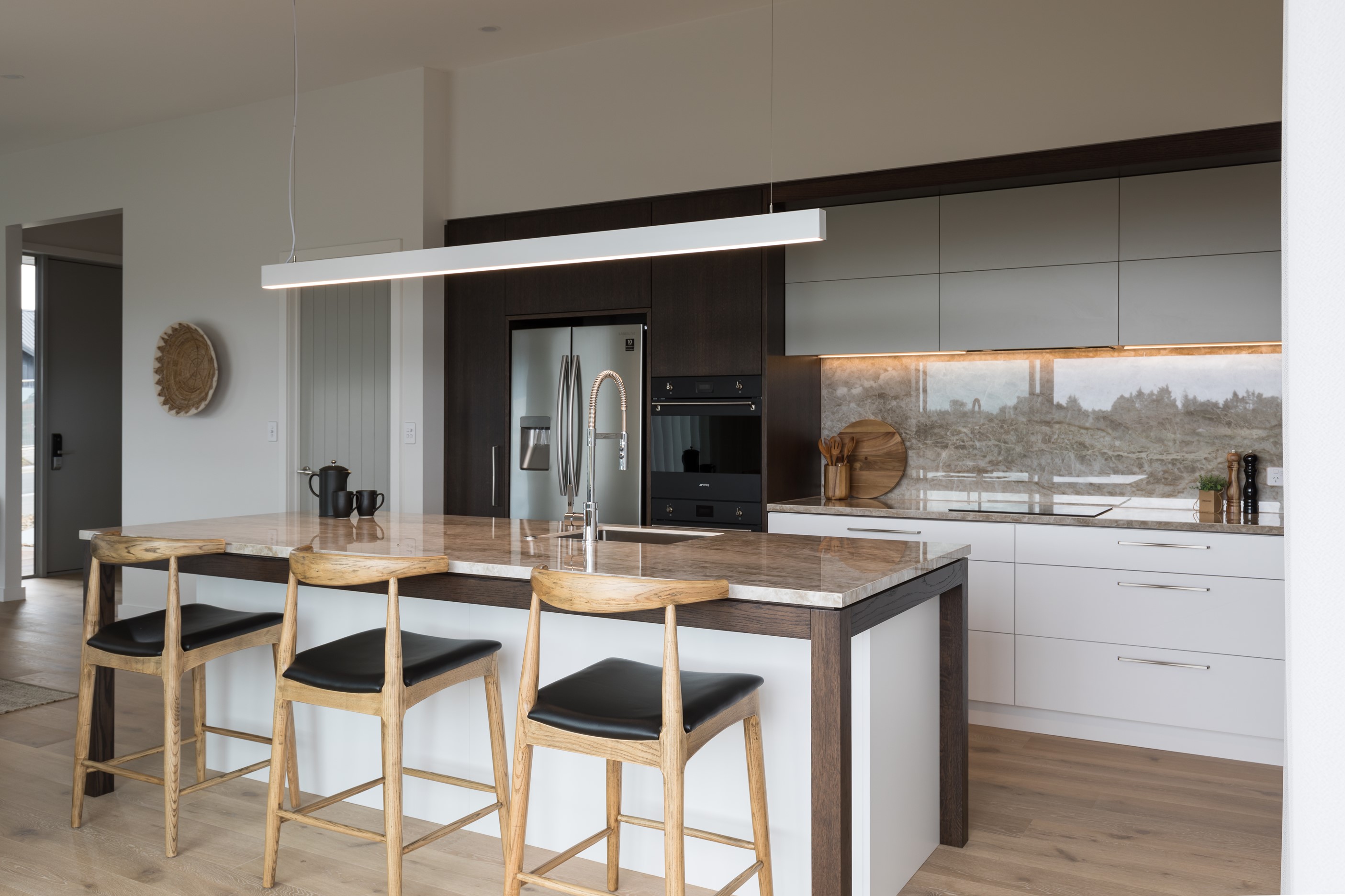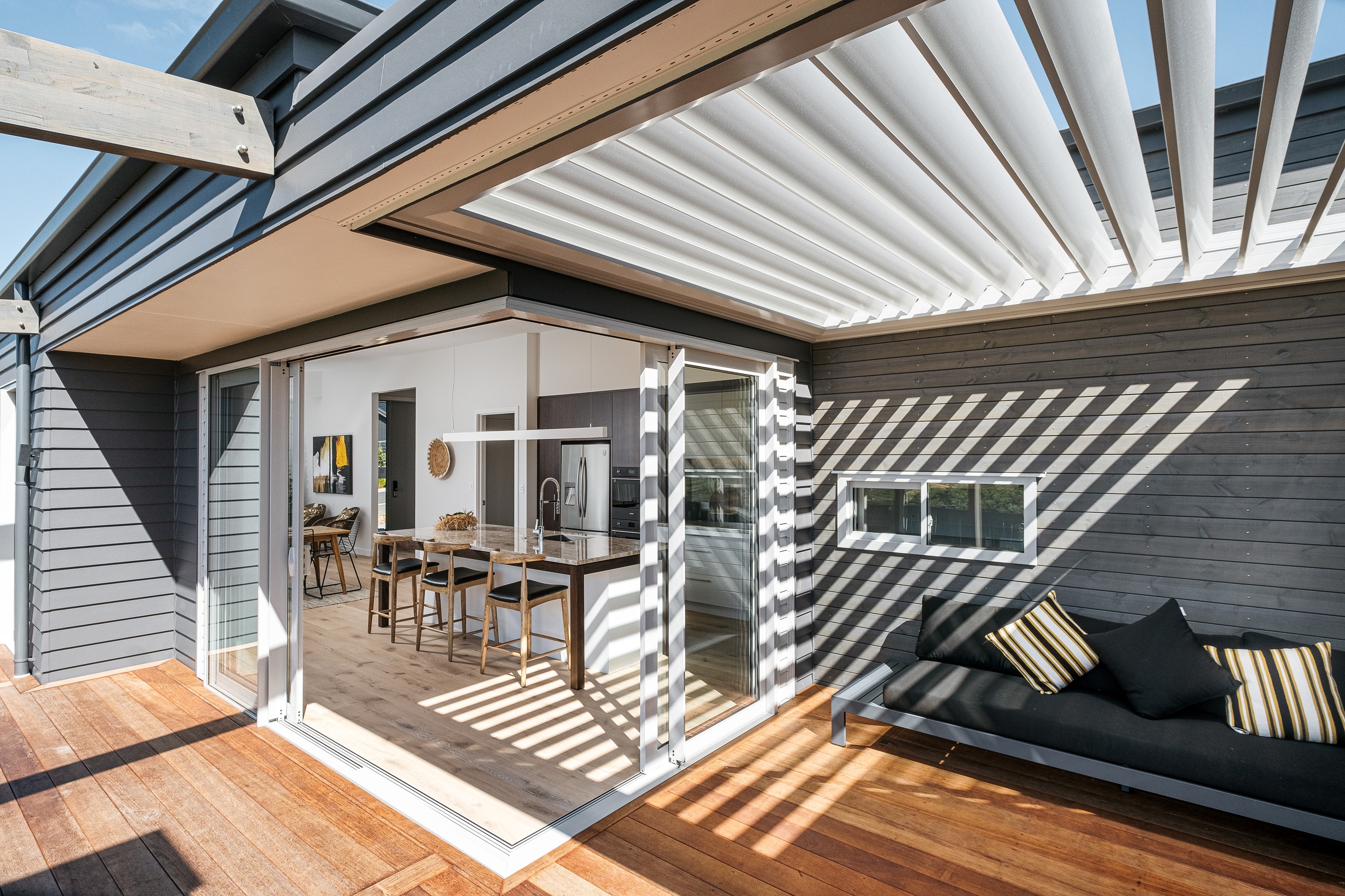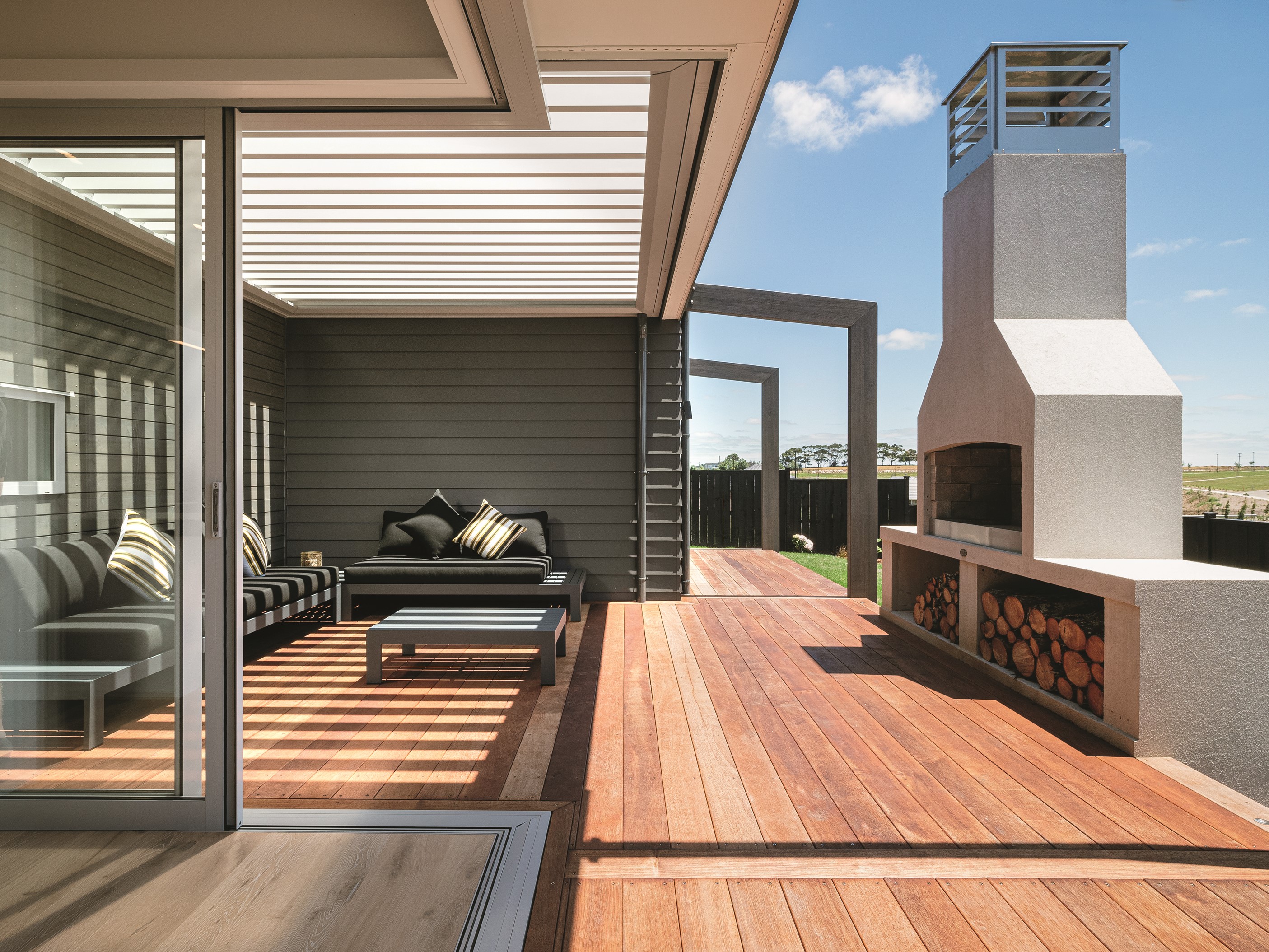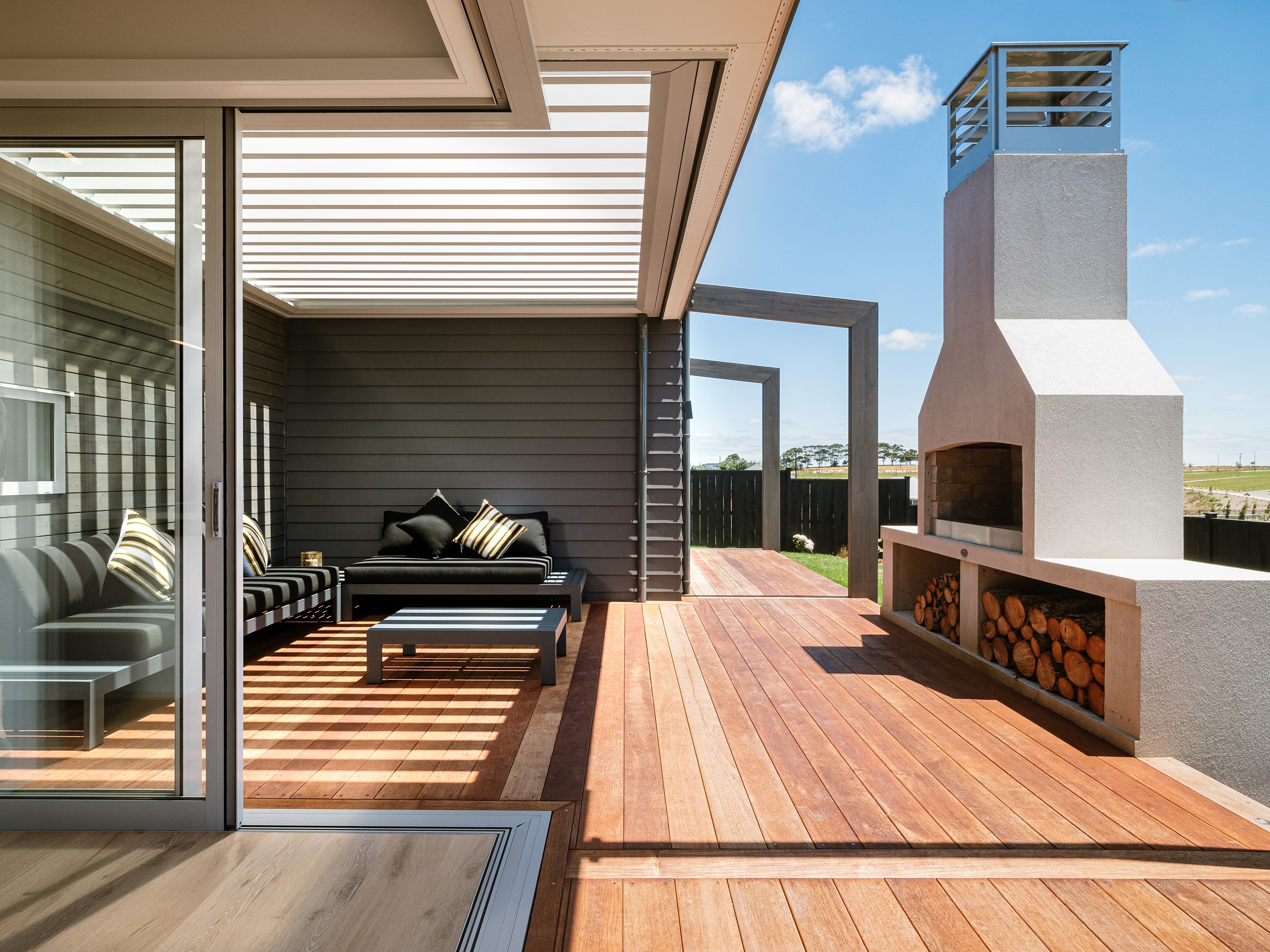 With sun-drenched private outdoor living, oodles of space inside and out, and design flair at every turn, this four-bedroom beauty is a Kiwi dream home. Encompassing a generous 203sqm floorplan, this home spells grandeur, with stunning raked ceilings throughout the living, dining, kitchen and entrance. The bedrooms are large and lovely, while the kitchen shares the same qualities. A design-driven space with a scullery, the kitchen is connected to the dining and living area. The laundry has all the must-haves and is close at hand, yet hidden behind folding doors. Ticking the box for the absolute Kiwi must-have – outdoor entertaining – the kitchen and dining space flows out to a covered deck with a fireplace and automated roof louvres. And with plenty of lawn and attractive landscaping, the big backyard might just tempt the kids to ditch their devices and kick a ball around. The double garage keeps the cars undercover, and there’s an additional garage door for access to the back of the property – so there’s also a secure spot for trailer or boat parking.