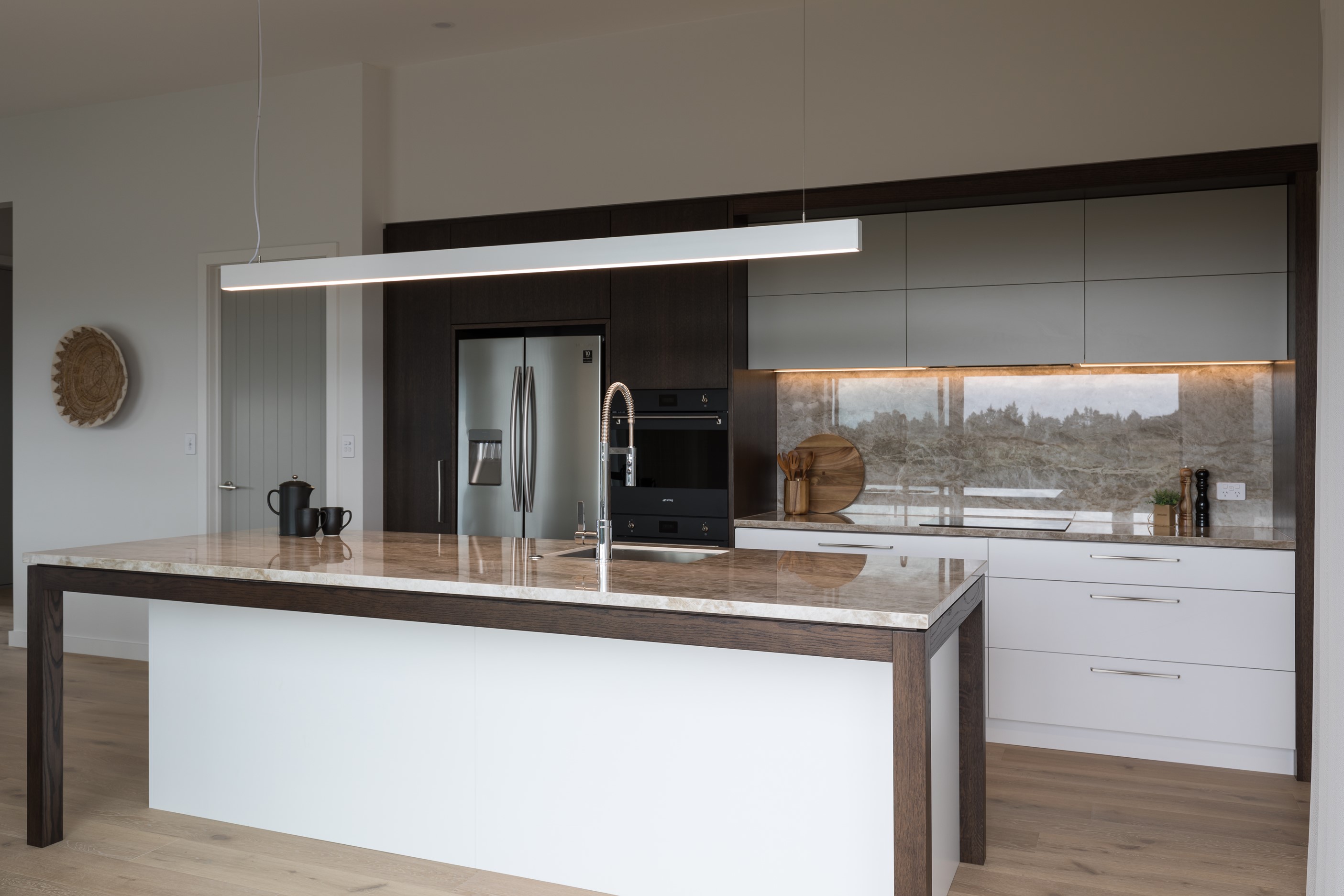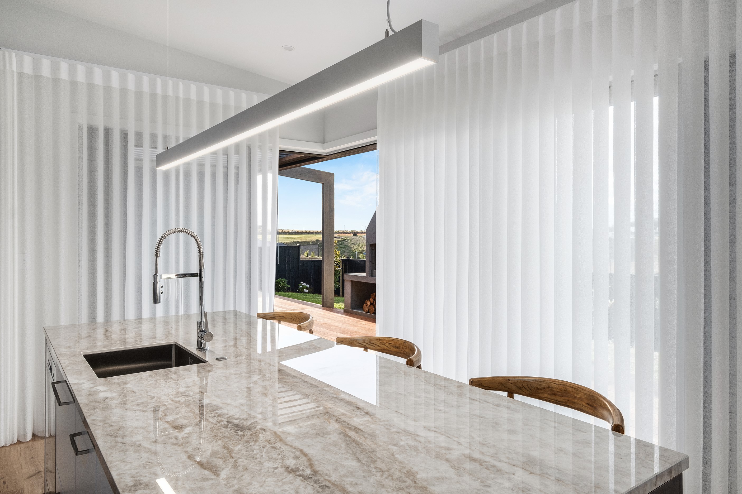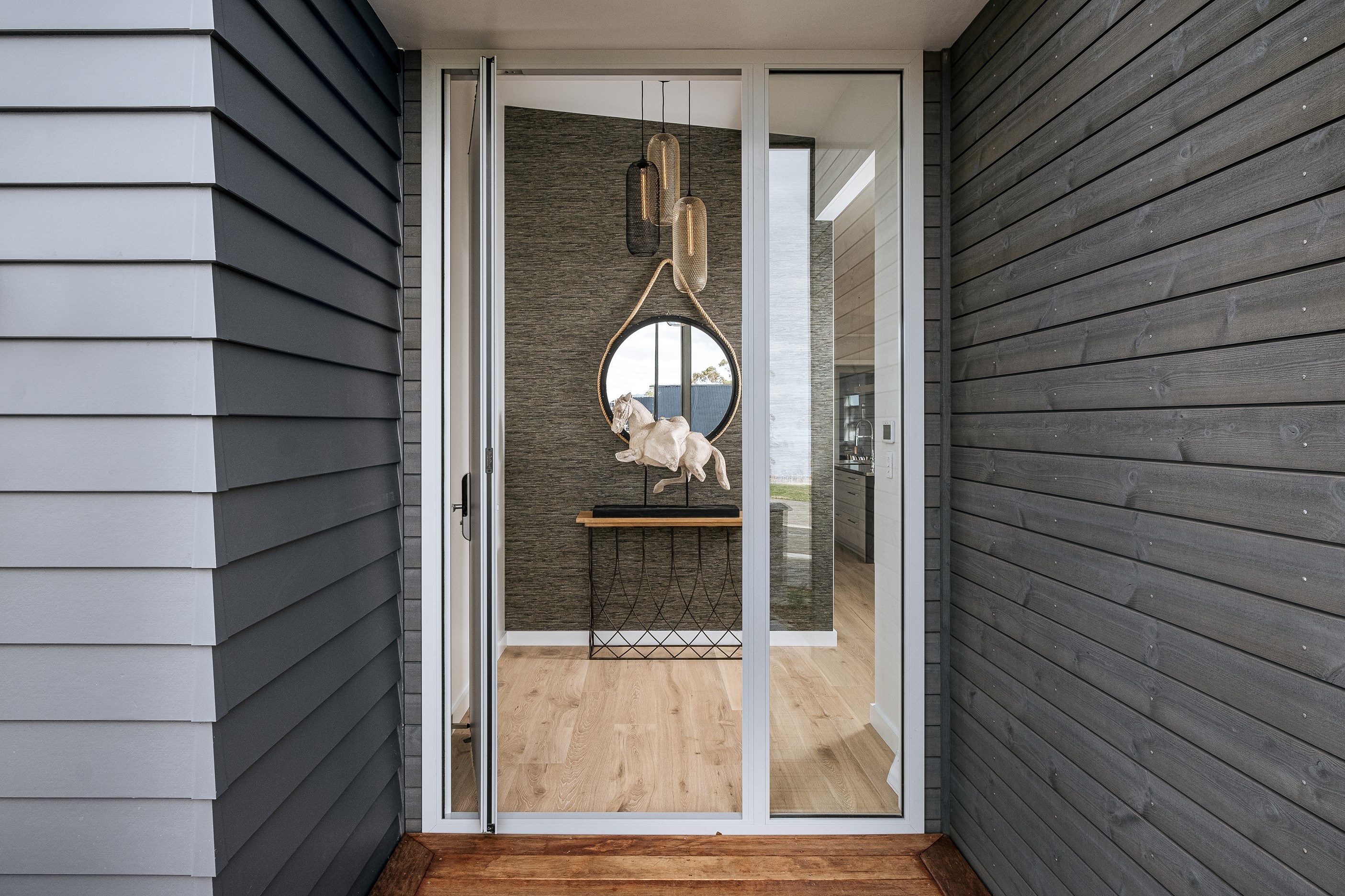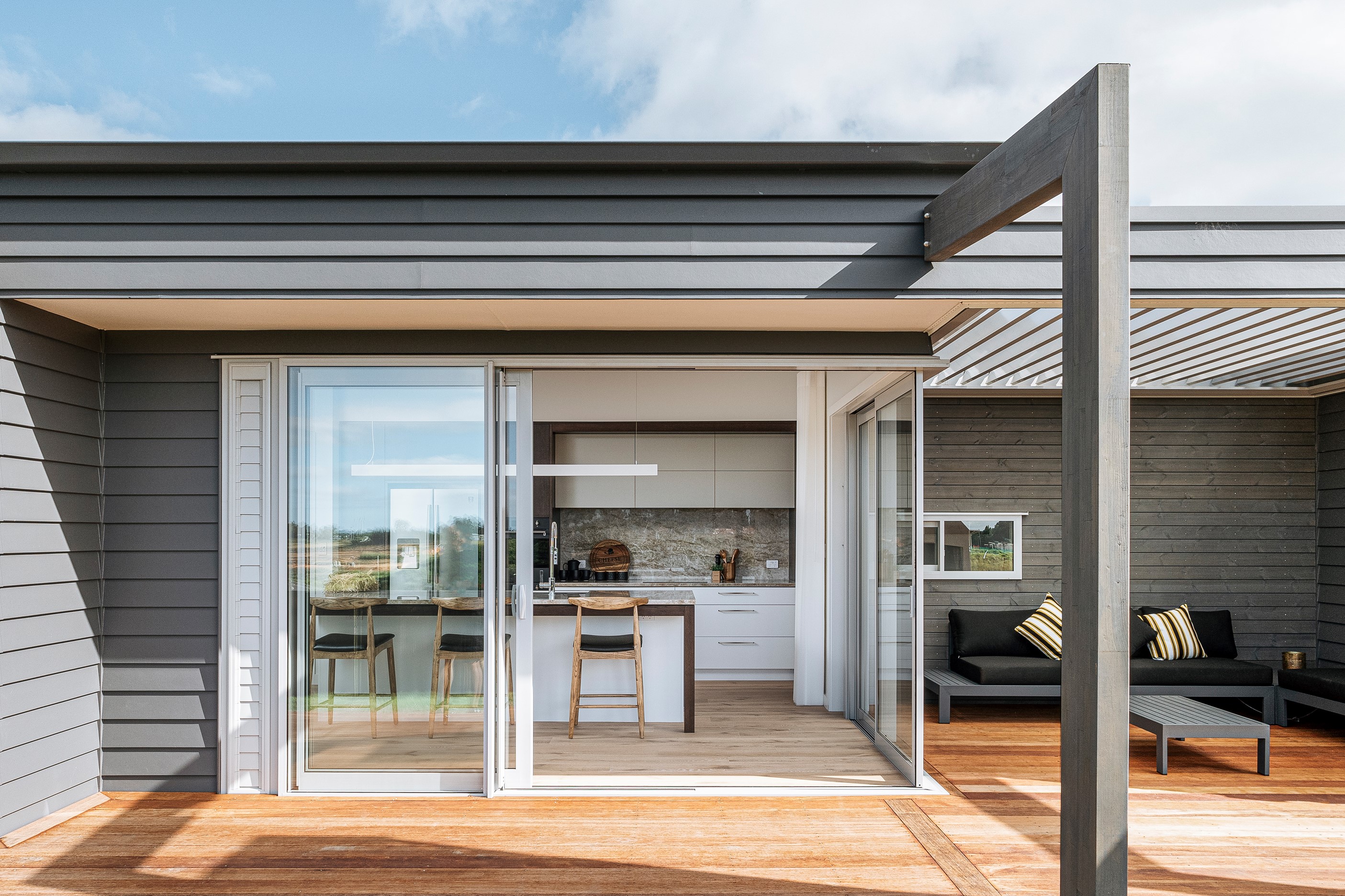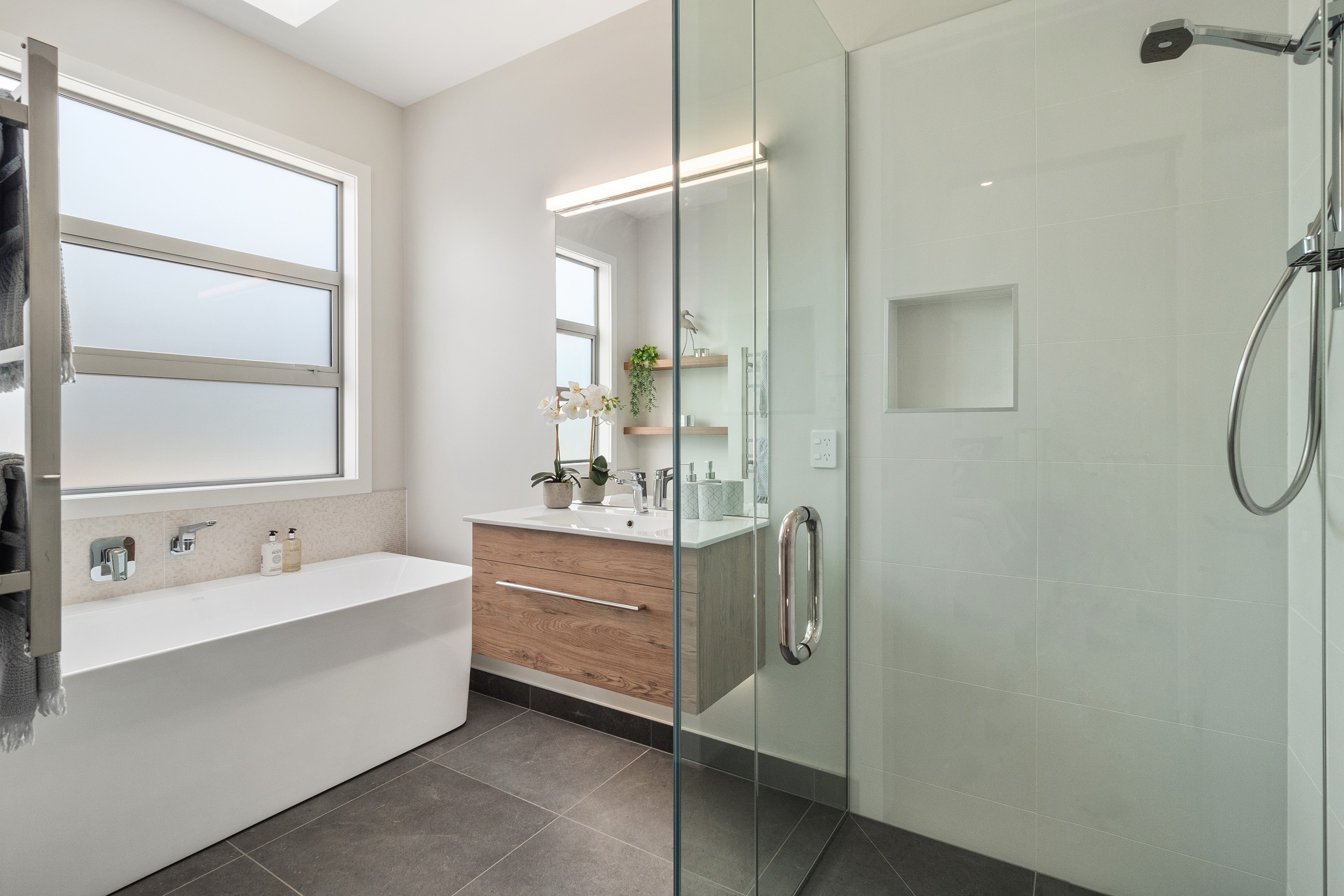 With sun-drenched private outdoor living, oodles of space inside and out, and design flair at every turn, this four-bedroom beauty is a Kiwi dream home. Encompassing a generous 203sqm floorplan, this home spells grandeur, with stunning raked ceilings throughout the living, dining, kitchen and entrance. The bedrooms are large and lovely, while the kitchen shares the same qualities. A design-driven space with a scullery, the kitchen is connected to the dining and living area. The laundry has all the must-haves and is close at hand, yet hidden behind folding doors. Ticking the box for the absolute Kiwi must-have – outdoor entertaining – the kitchen and dining space flows out to a covered deck with a fireplace and automated roof louvres. And with plenty of lawn and attractive landscaping, the big backyard might just tempt the kids to ditch their devices and kick a ball around. The double garage keeps the cars undercover, and there’s an additional garage door for access to the back of the property – so there’s also a secure spot for trailer or boat parking.