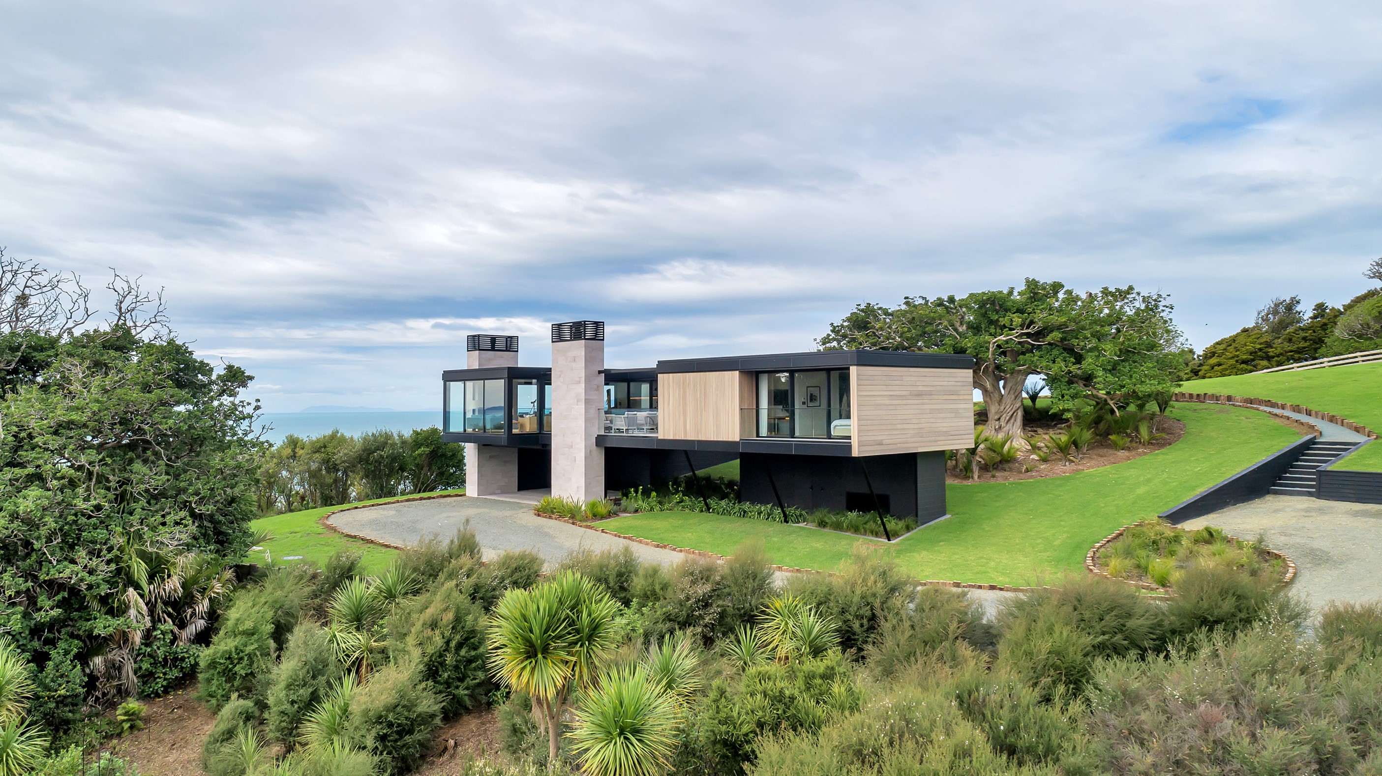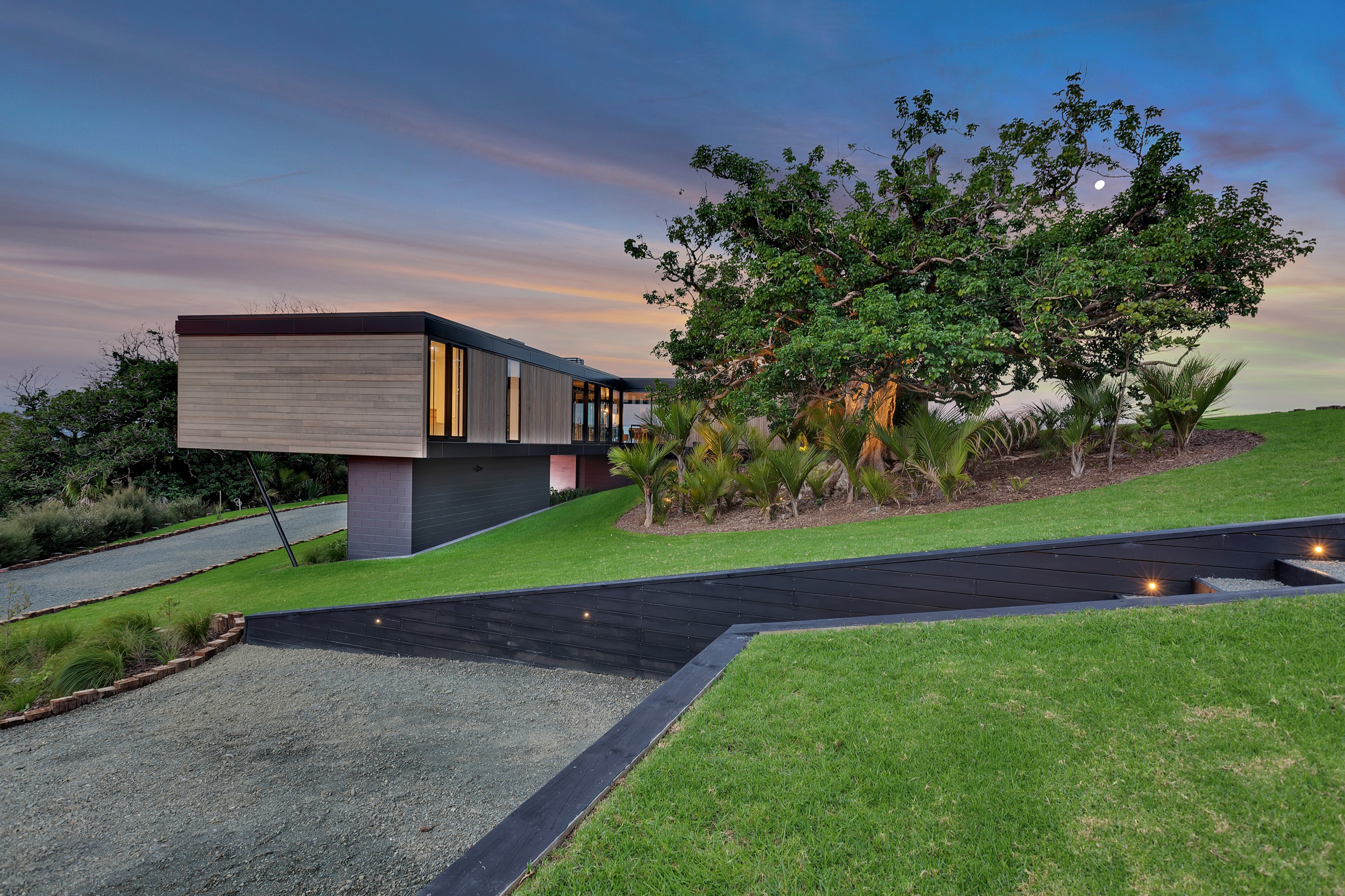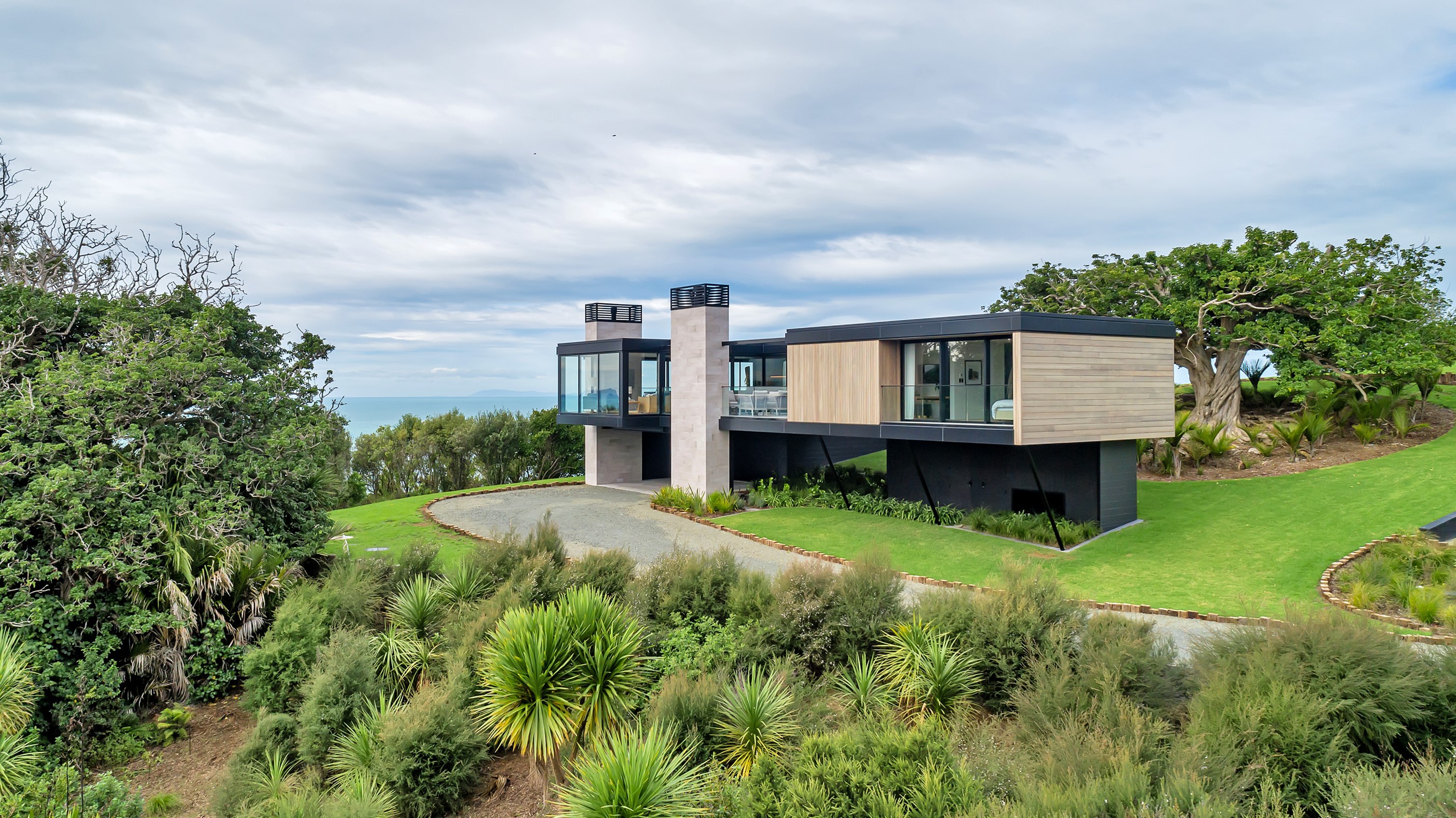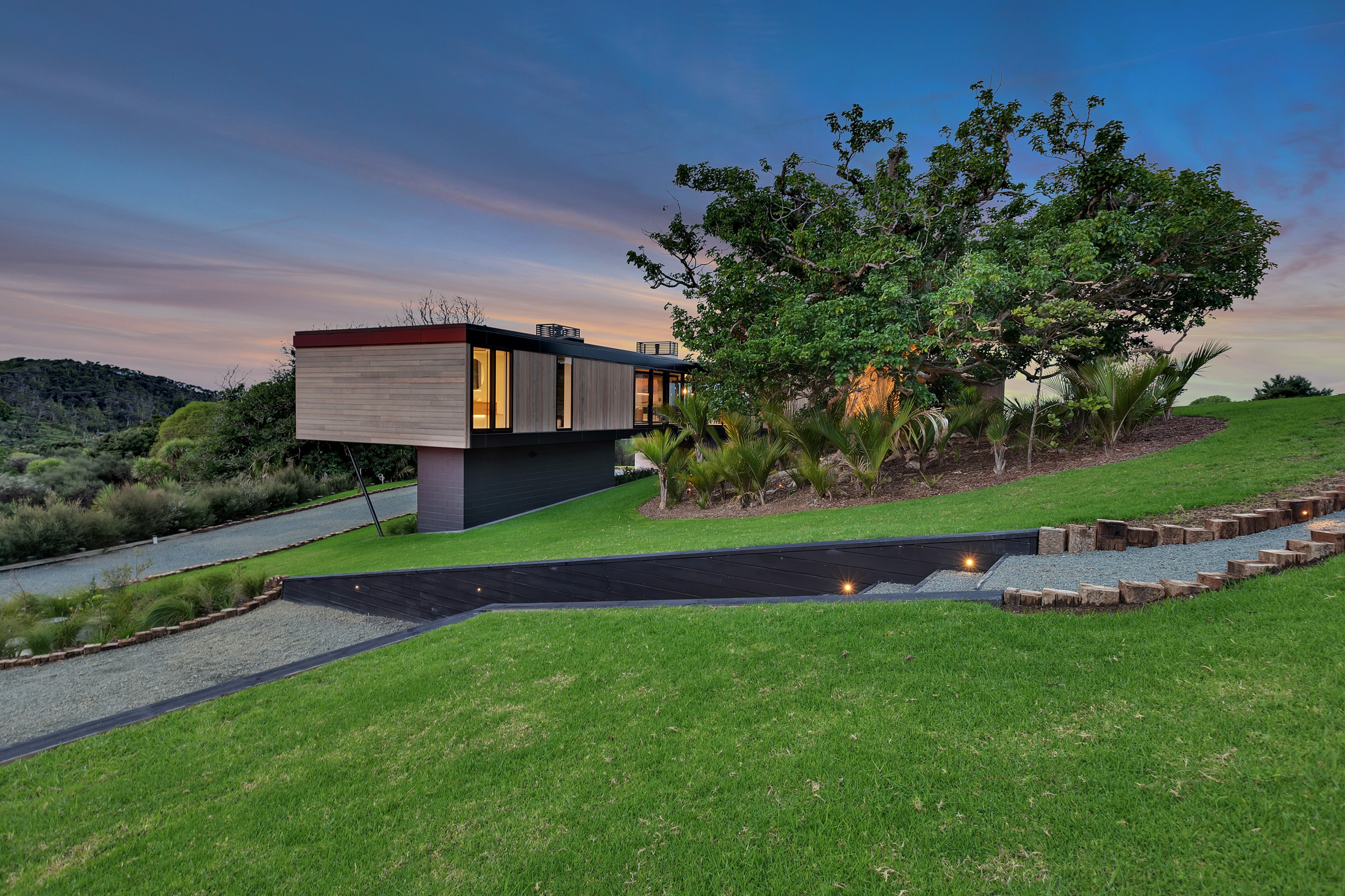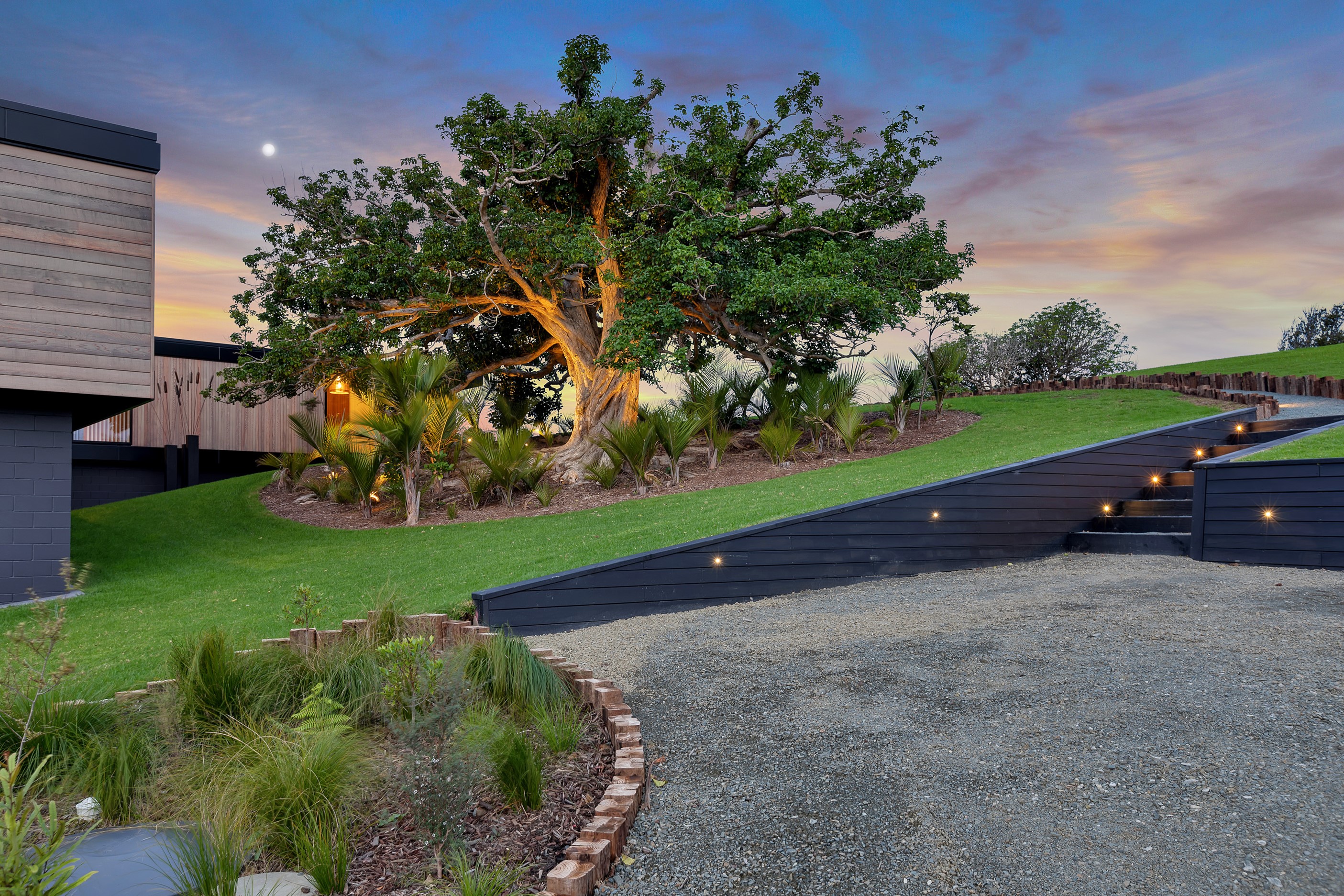 It started with a sprawling puriri and finished with a mid-century-style home honouring the tree with its rangy limbs and prolific red flowers. Yes, the 312sqm coastal home takes in grandstand views of the Pacific, but the owners also wanted it to respect its gnarled companion – a beautiful reminder of what was there first. The owners also wanted a low-profile contemporary home with sharp angles and clean lines, softened by cantilevering and landscaping curves. The two separate wings of the three-bedroom, two-bathroom house evoke a feeling of floating, or of reaching out into surrounding nature. Guests in the east wing are treated to wide ocean vistas, while the main-bedroom wing frames Northland’s rural splendour. A glazed hallway between showcases a spacious outdoor entertaining area with inbuilt fireplace on one side and the puriri and juvenile nīkau palms – magnificent when lit up at night – on the other. Timber ceilings, floors and features ground the interior and connect it with what’s outside. You’ll also find a media room, three bathrooms and a double garage. Special.