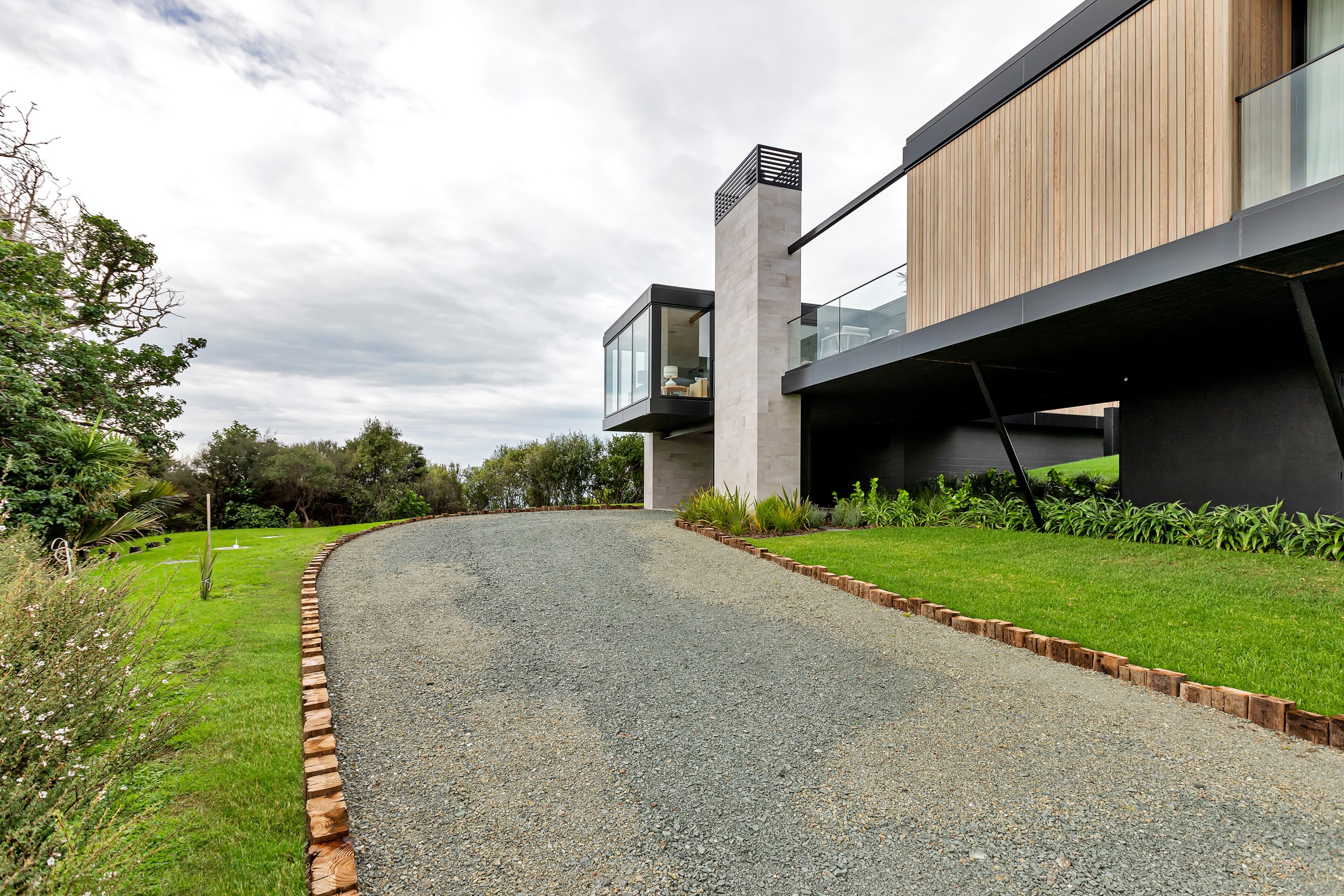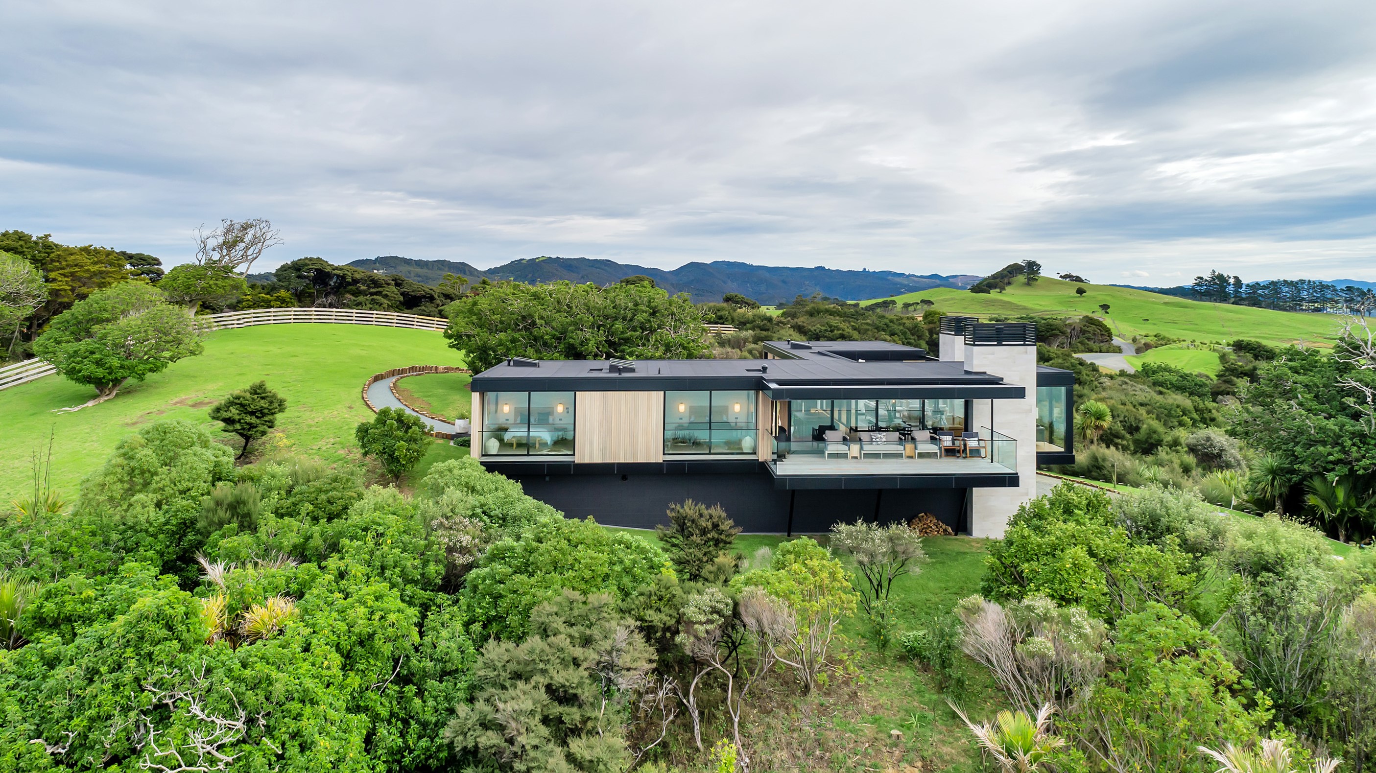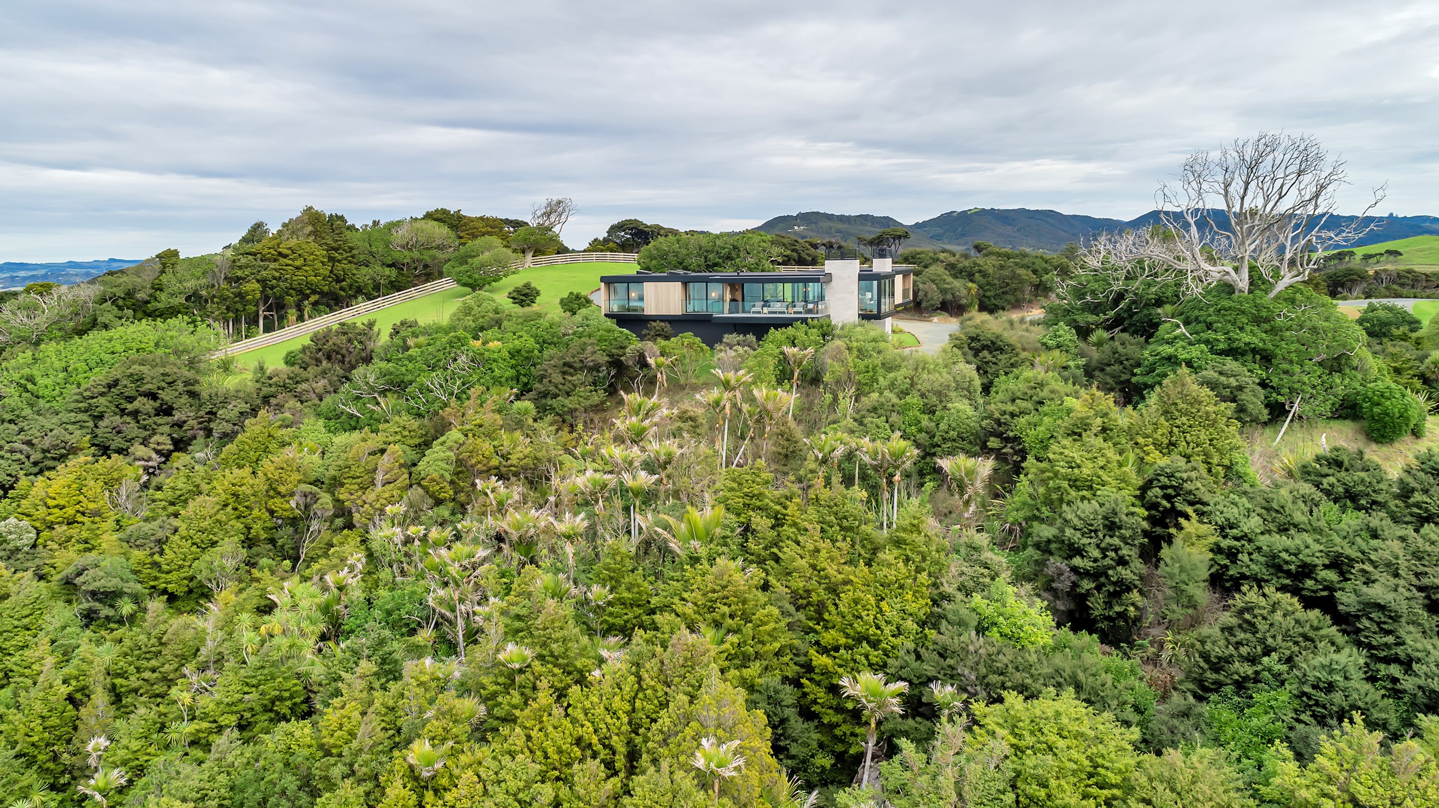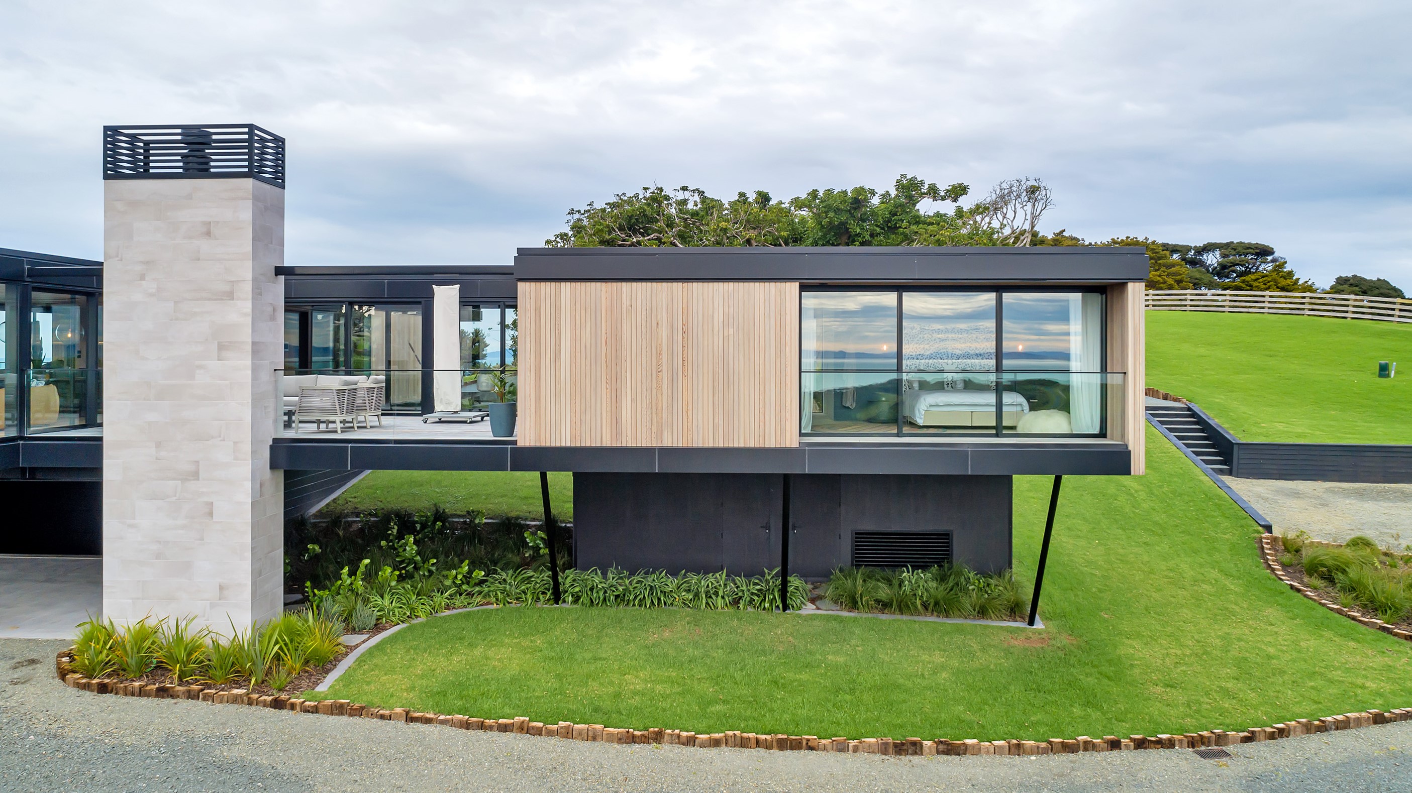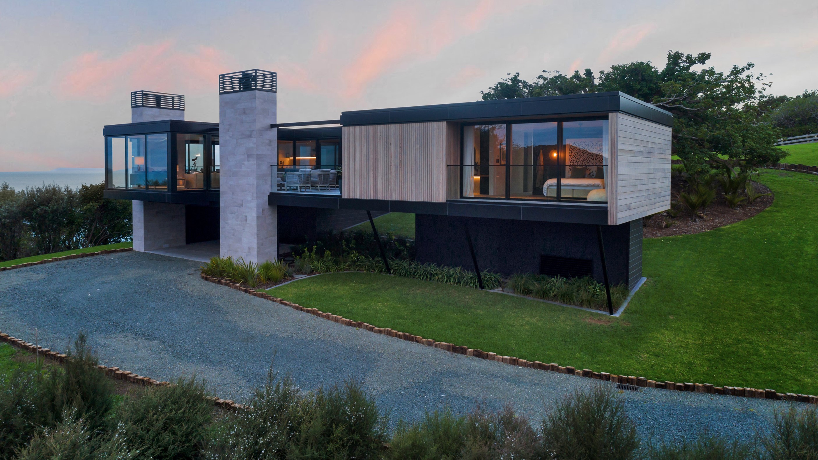It started with a sprawling puriri and finished with a mid-century-style home honouring the tree with its rangy limbs and prolific red flowers. Yes, the 312sqm coastal home takes in grandstand views of the Pacific, but the owners also wanted it to respect its gnarled companion – a beautiful reminder of what was there first. The owners also wanted a low-profile contemporary home with sharp angles and clean lines, softened by cantilevering and landscaping curves. The two separate wings of the three-bedroom, two-bathroom house evoke a feeling of floating, or of reaching out into surrounding nature. Guests in the east wing are treated to wide ocean vistas, while the main-bedroom wing frames Northland’s rural splendour. A glazed hallway between showcases a spacious outdoor entertaining area with inbuilt fireplace on one side and the puriri and juvenile nīkau palms – magnificent when lit up at night – on the other. Timber ceilings, floors and features ground the interior and connect it with what’s outside. You’ll also find a media room, three bathrooms and a double garage. Special.