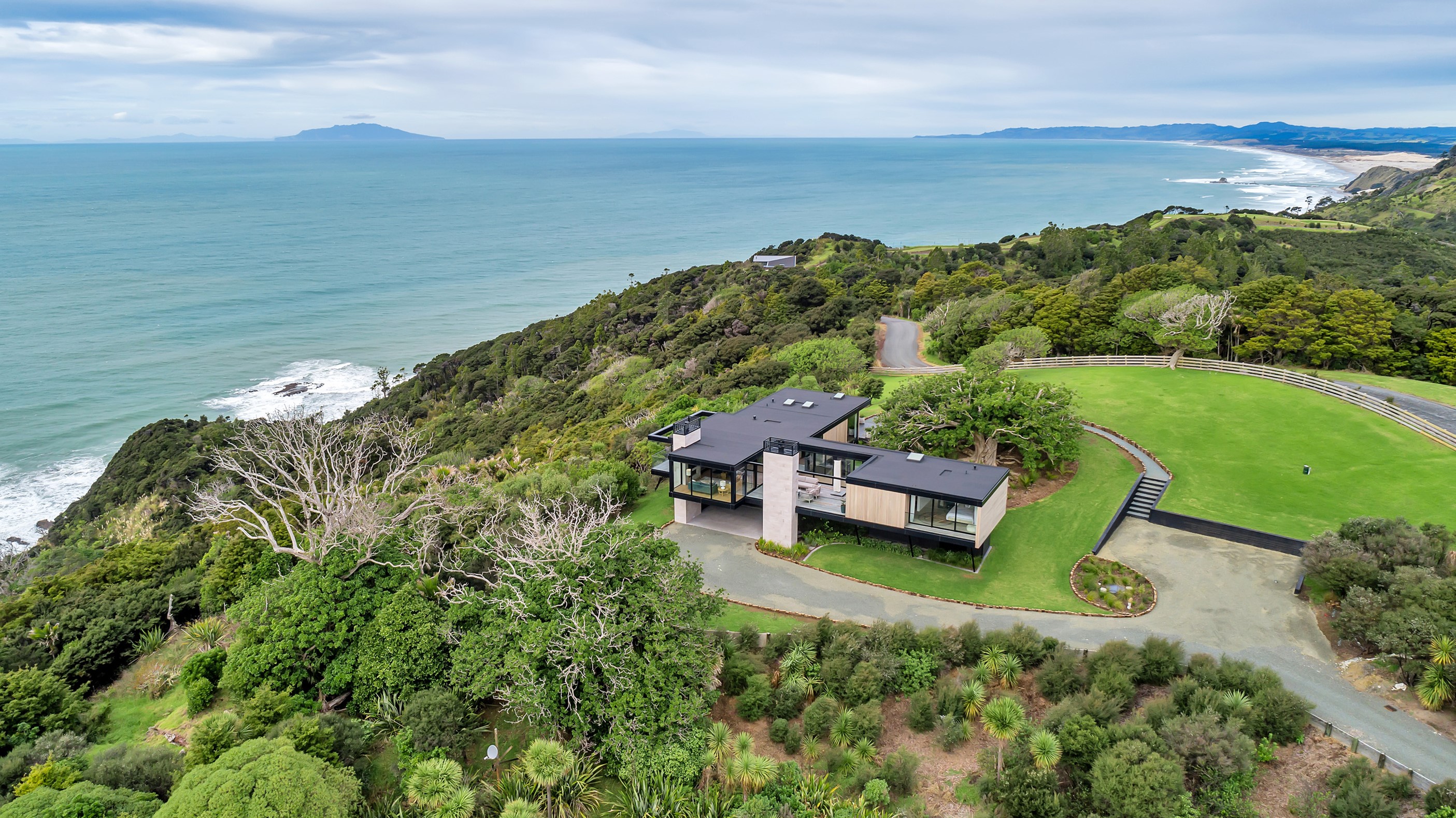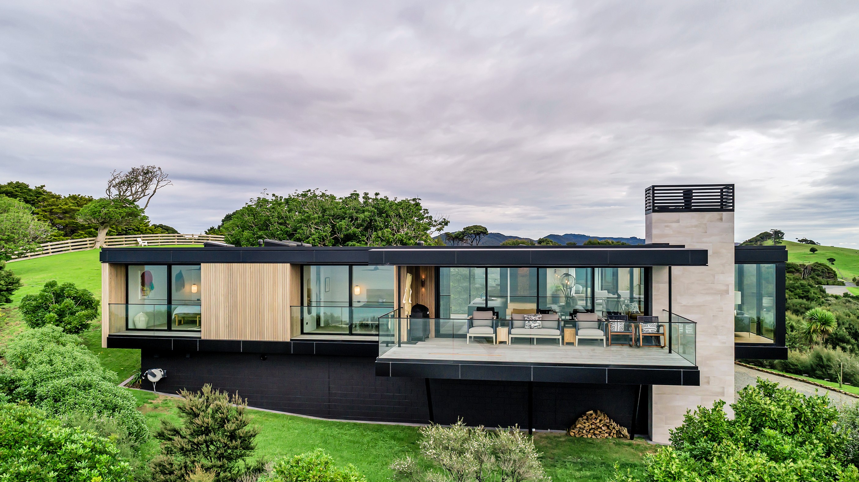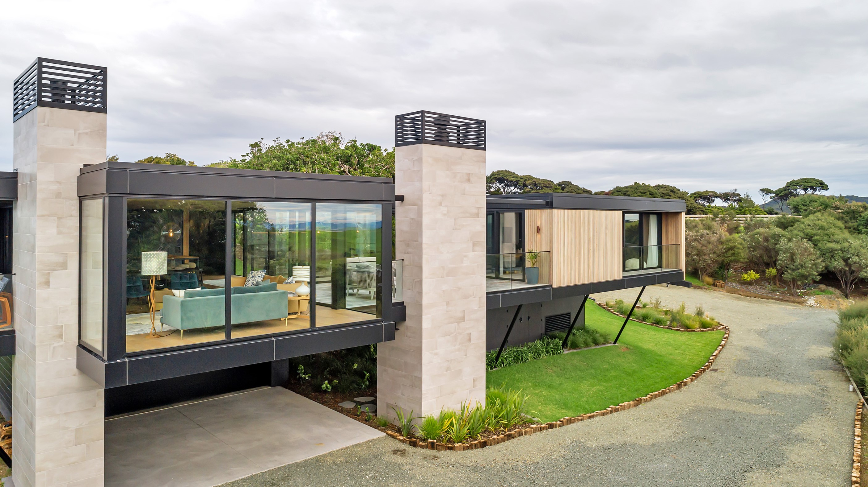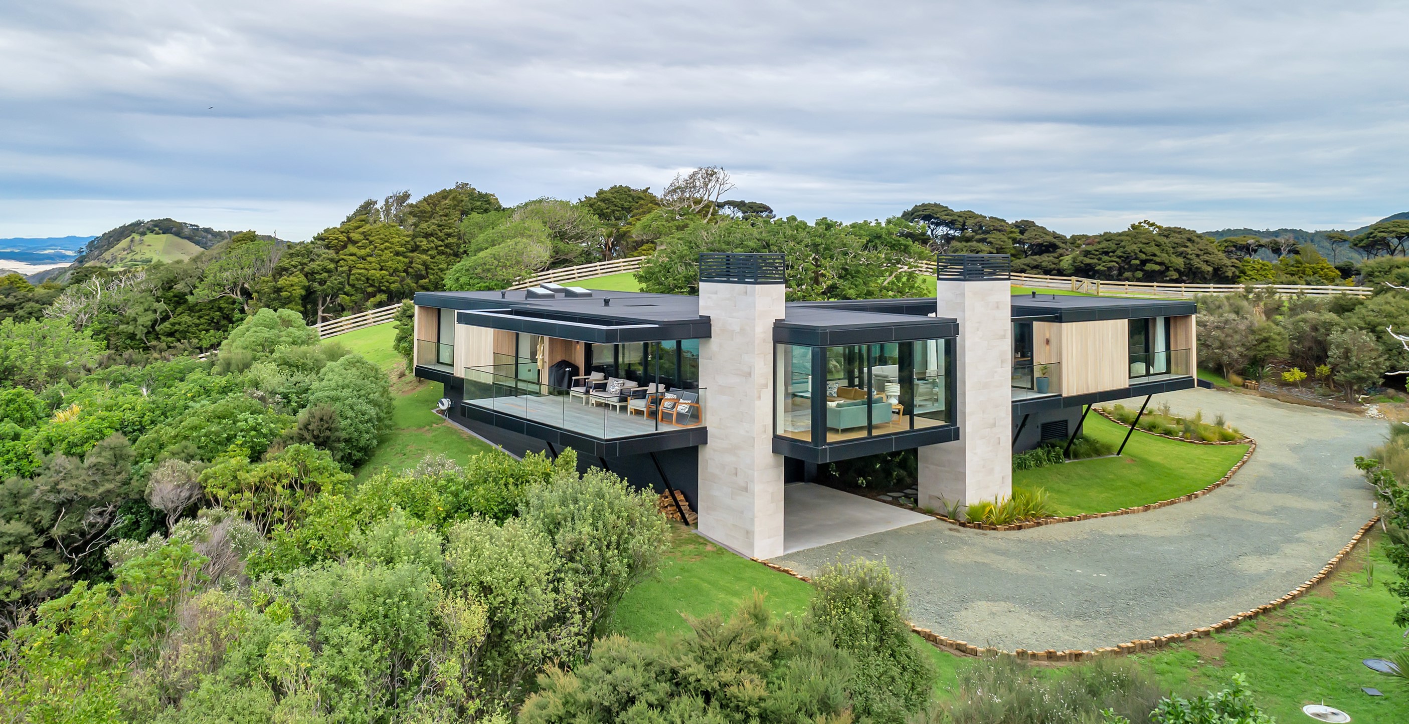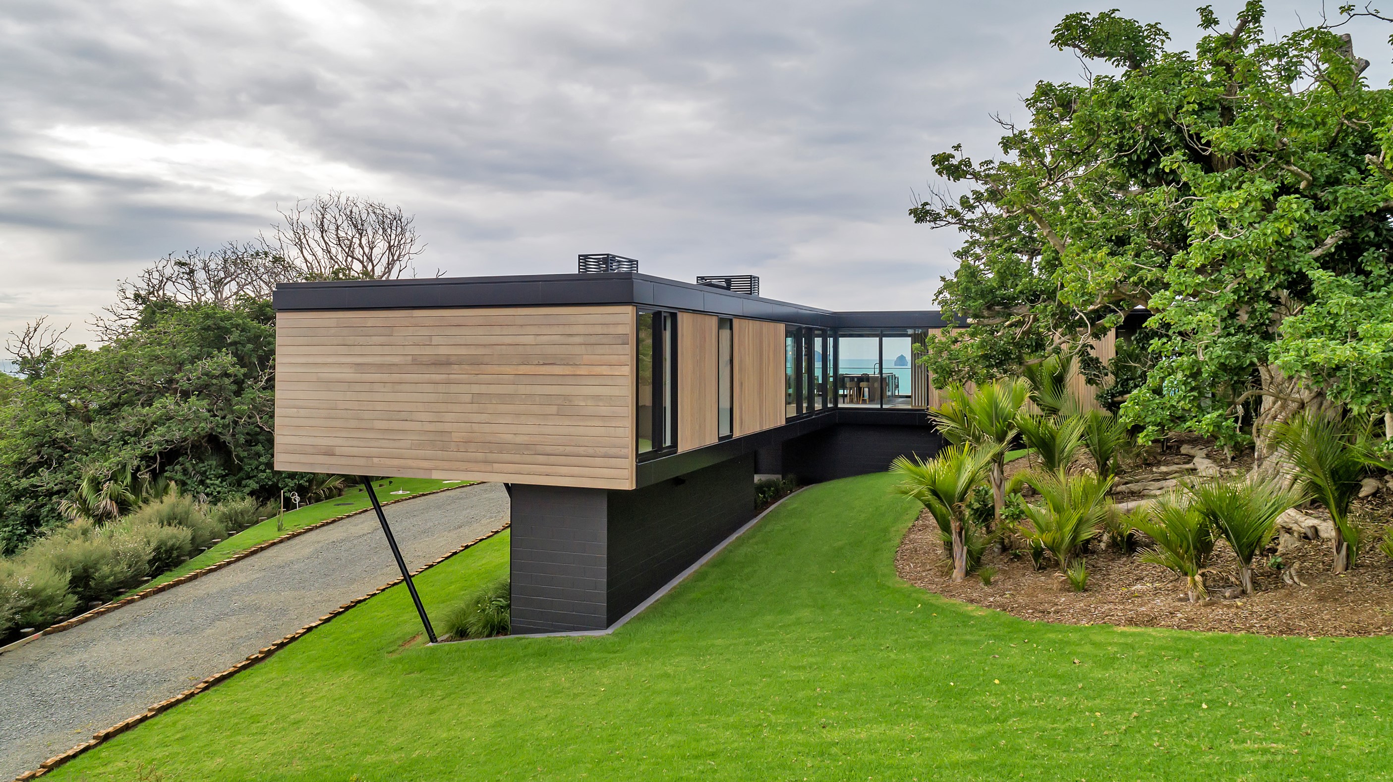 It started with a sprawling puriri and finished with a mid-century-style home honouring the tree with its rangy limbs and prolific red flowers. Yes, the 312sqm coastal home takes in grandstand views of the Pacific, but the owners also wanted it to respect its gnarled companion – a beautiful reminder of what was there first. The owners also wanted a low-profile contemporary home with sharp angles and clean lines, softened by cantilevering and landscaping curves. The two separate wings of the three-bedroom, two-bathroom house evoke a feeling of floating, or of reaching out into surrounding nature. Guests in the east wing are treated to wide ocean vistas, while the main-bedroom wing frames Northland’s rural splendour. A glazed hallway between showcases a spacious outdoor entertaining area with inbuilt fireplace on one side and the puriri and juvenile nīkau palms – magnificent when lit up at night – on the other. Timber ceilings, floors and features ground the interior and connect it with what’s outside. You’ll also find a media room, three bathrooms and a double garage. Special.
