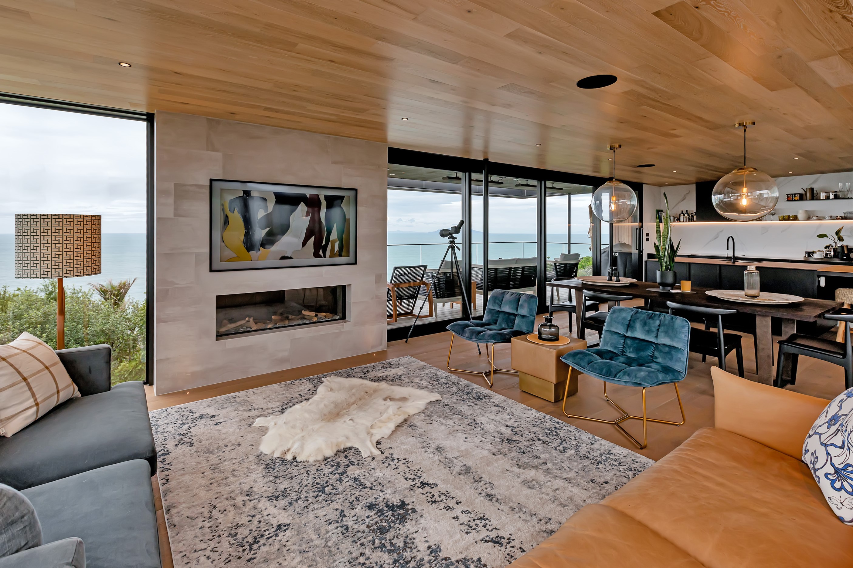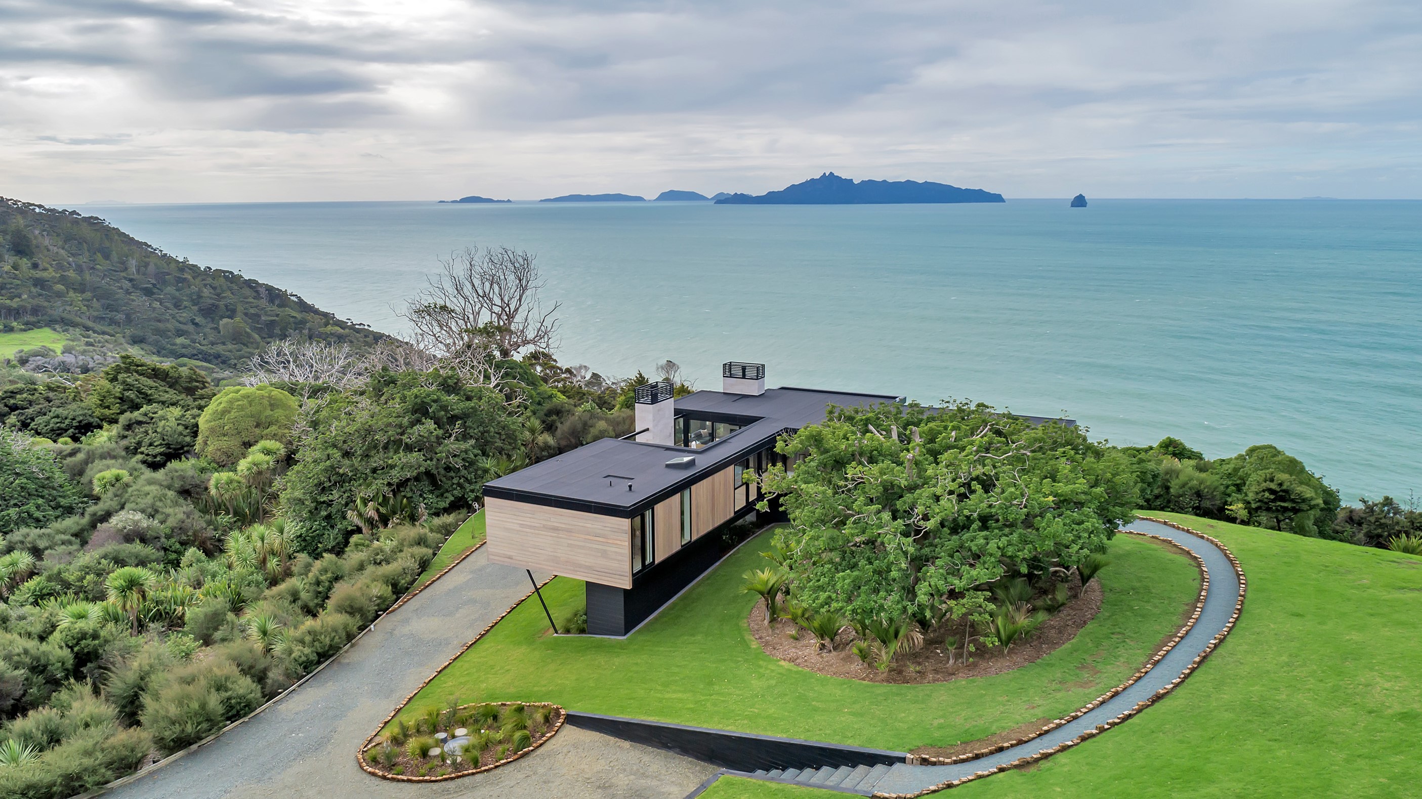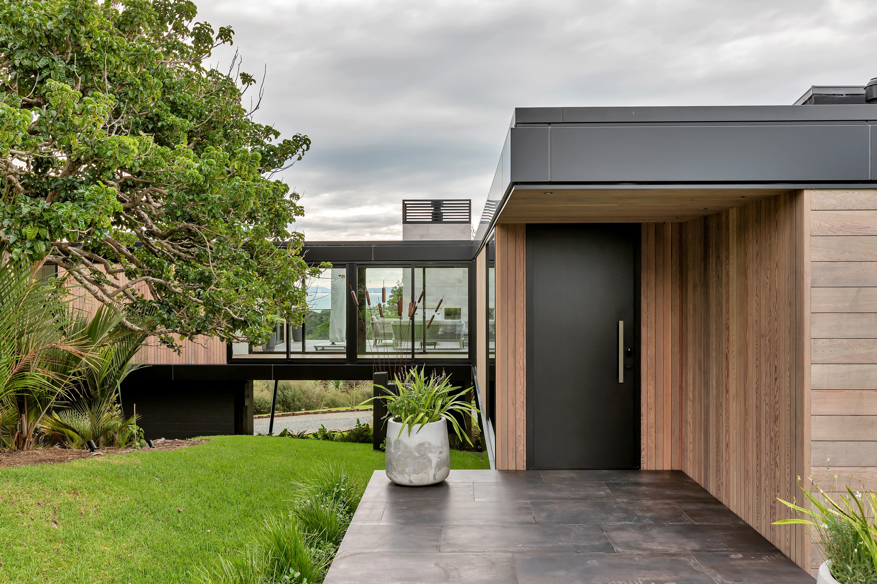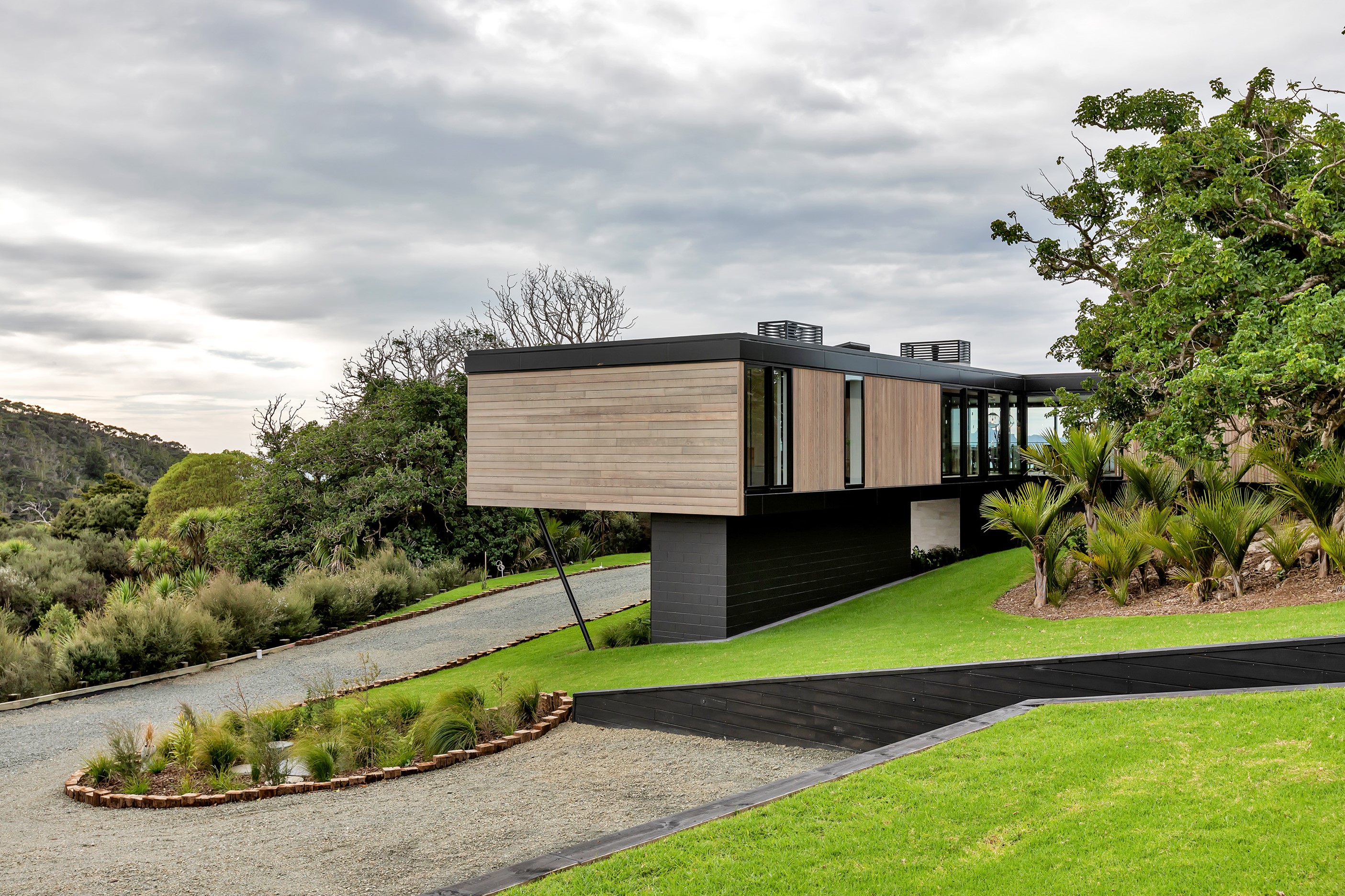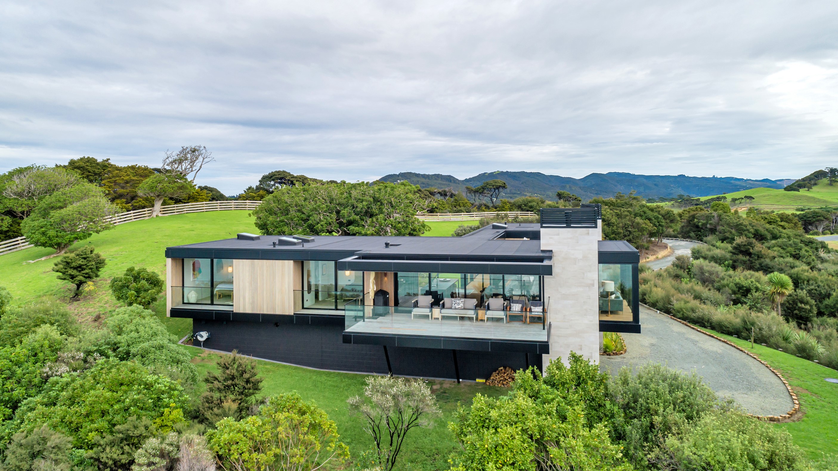 It started with a sprawling puriri and finished with a mid-century-style home honouring the tree with its rangy limbs and prolific red flowers. Yes, the 312sqm coastal home takes in grandstand views of the Pacific, but the owners also wanted it to respect its gnarled companion – a beautiful reminder of what was there first. The owners also wanted a low-profile contemporary home with sharp angles and clean lines, softened by cantilevering and landscaping curves. The two separate wings of the three-bedroom, two-bathroom house evoke a feeling of floating, or of reaching out into surrounding nature. Guests in the east wing are treated to wide ocean vistas, while the main-bedroom wing frames Northland’s rural splendour. A glazed hallway between showcases a spacious outdoor entertaining area with inbuilt fireplace on one side and the puriri and juvenile nīkau palms – magnificent when lit up at night – on the other. Timber ceilings, floors and features ground the interior and connect it with what’s outside. You’ll also find a media room, three bathrooms and a double garage. Special.