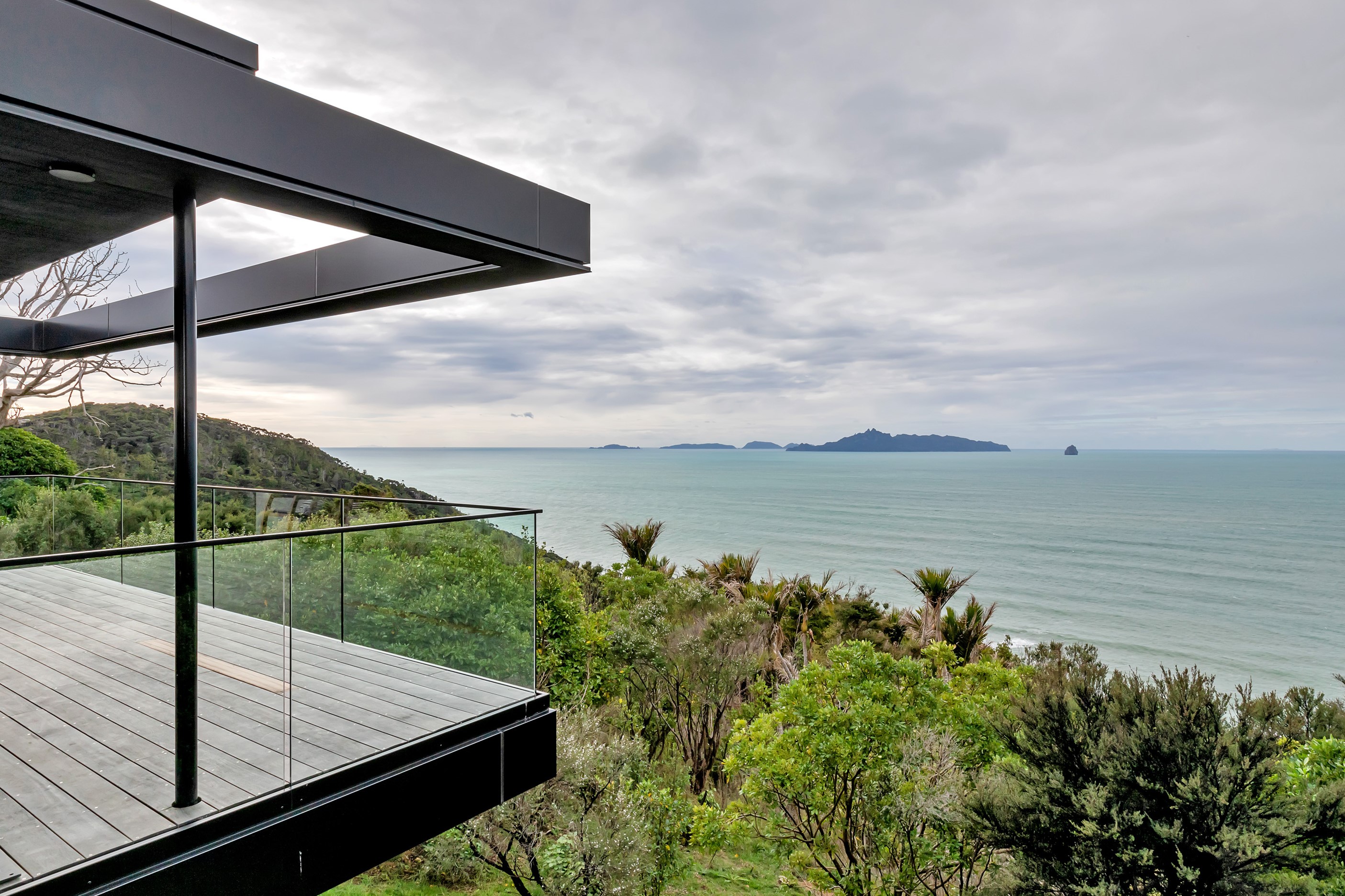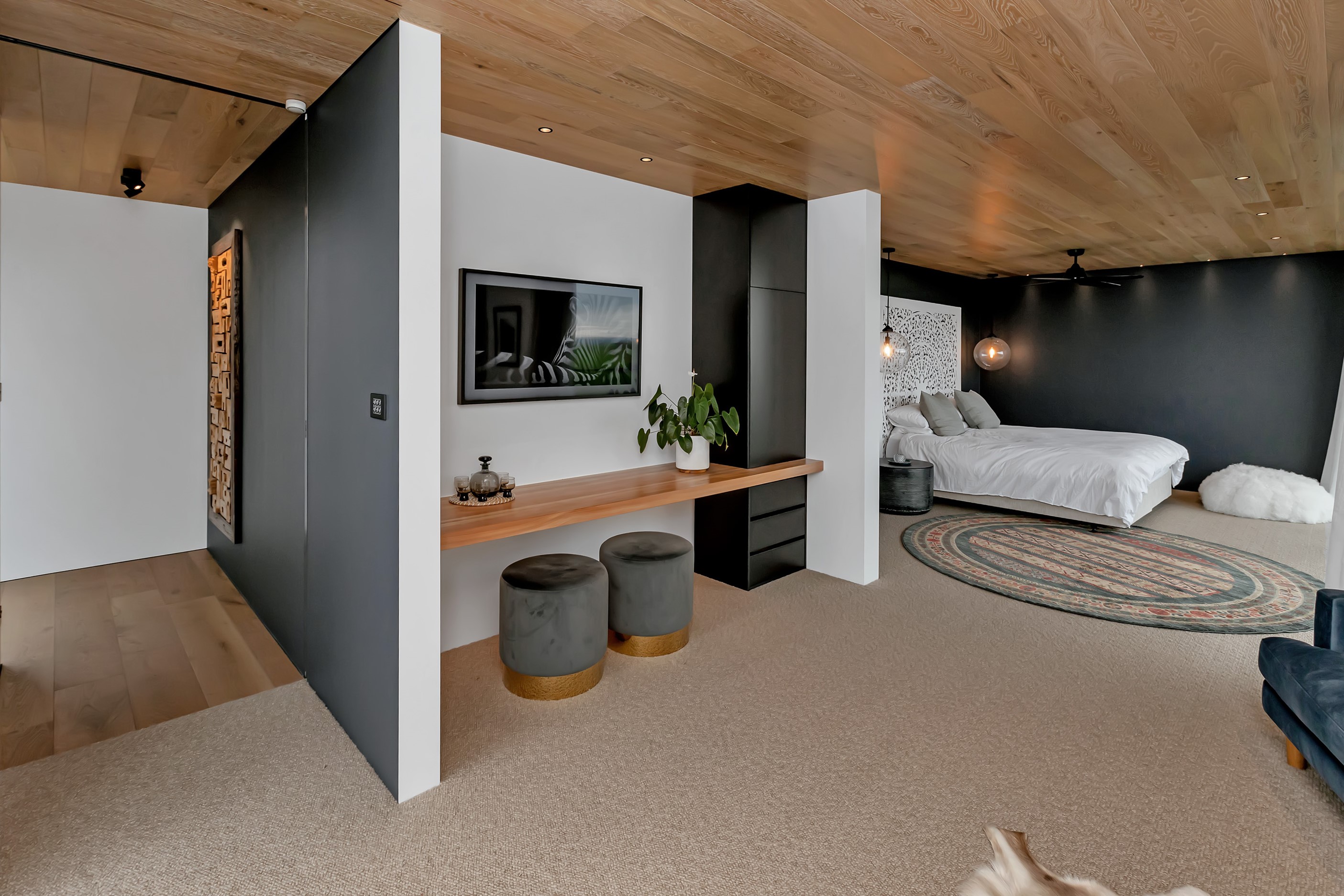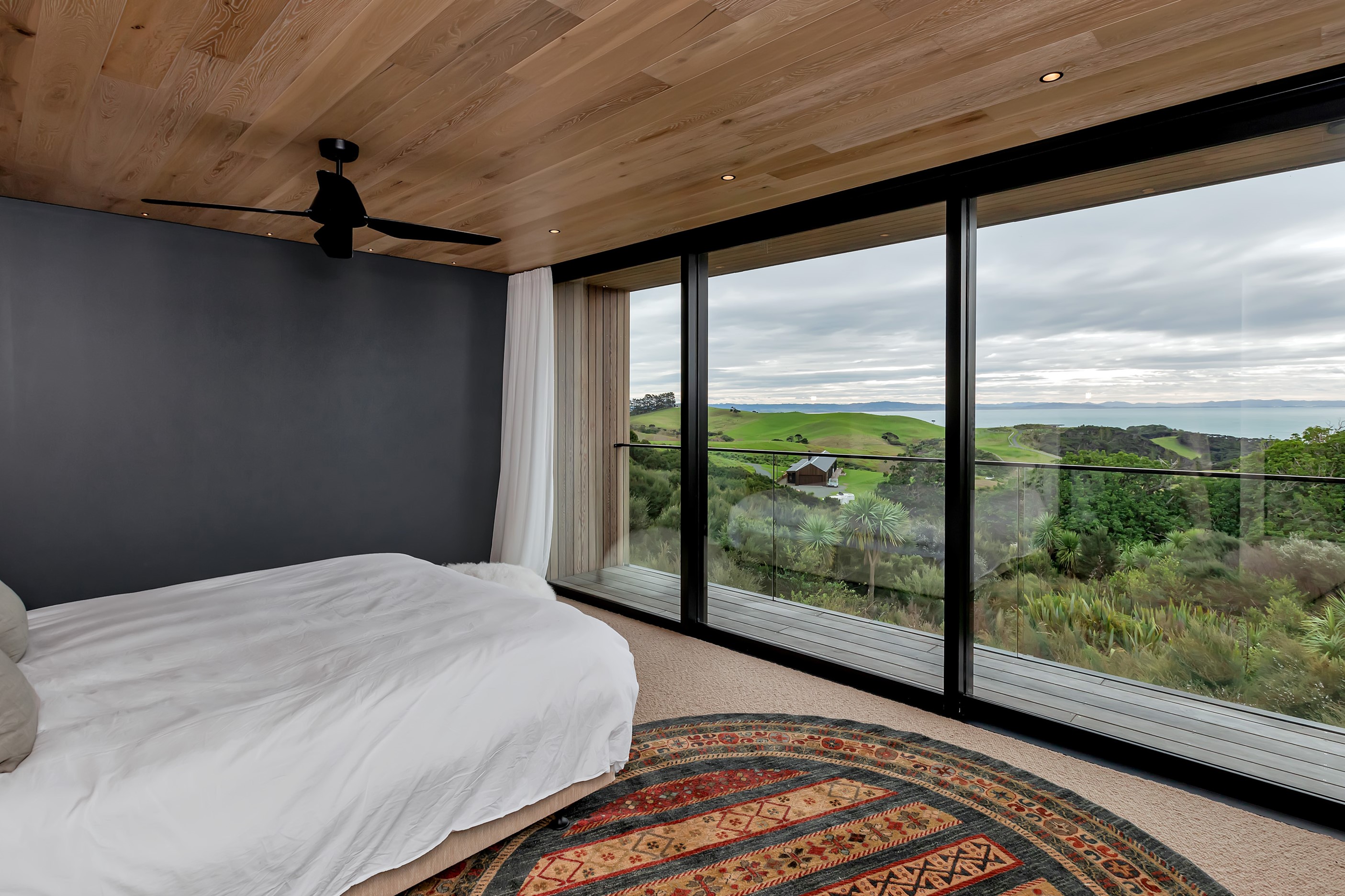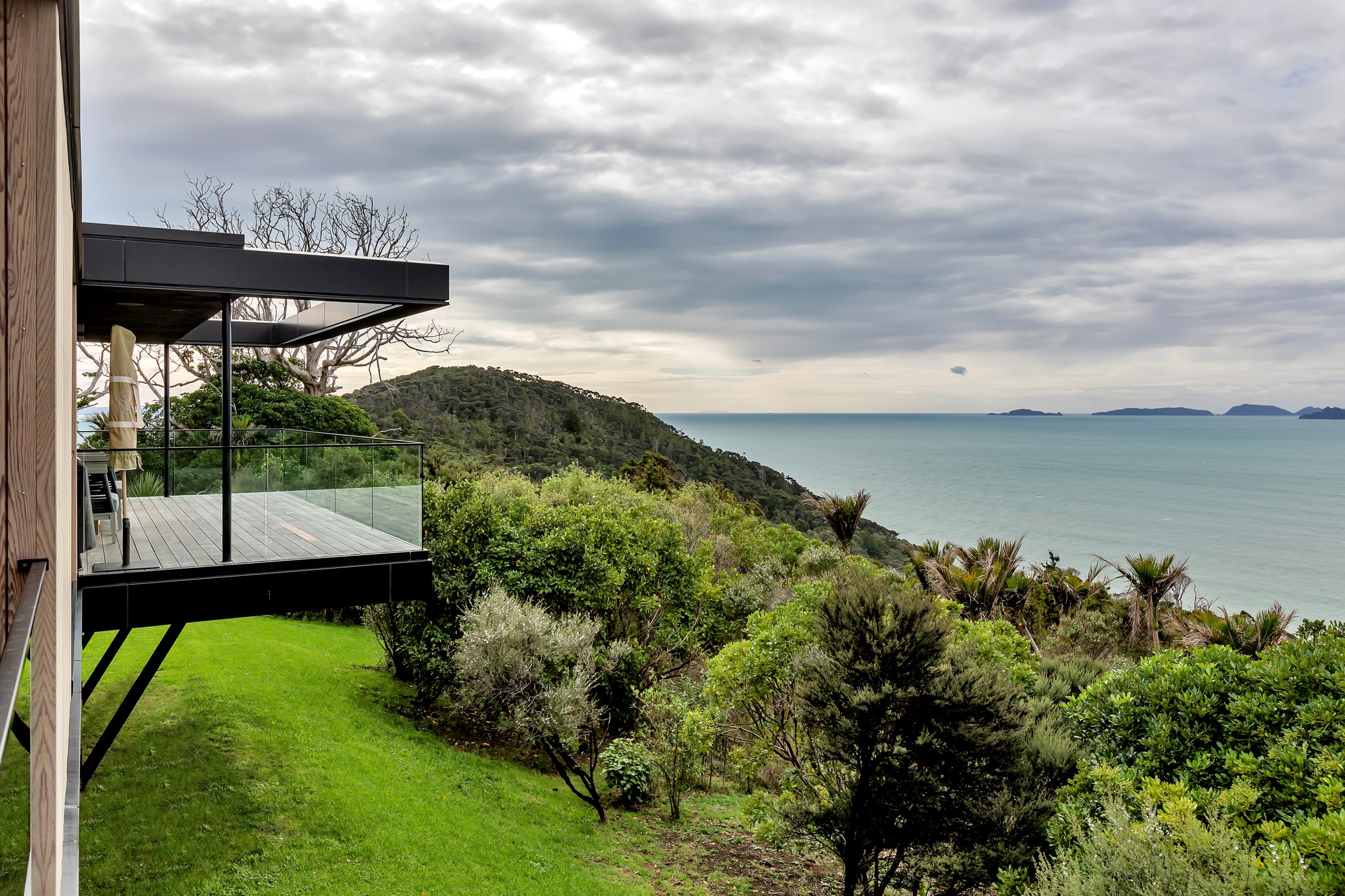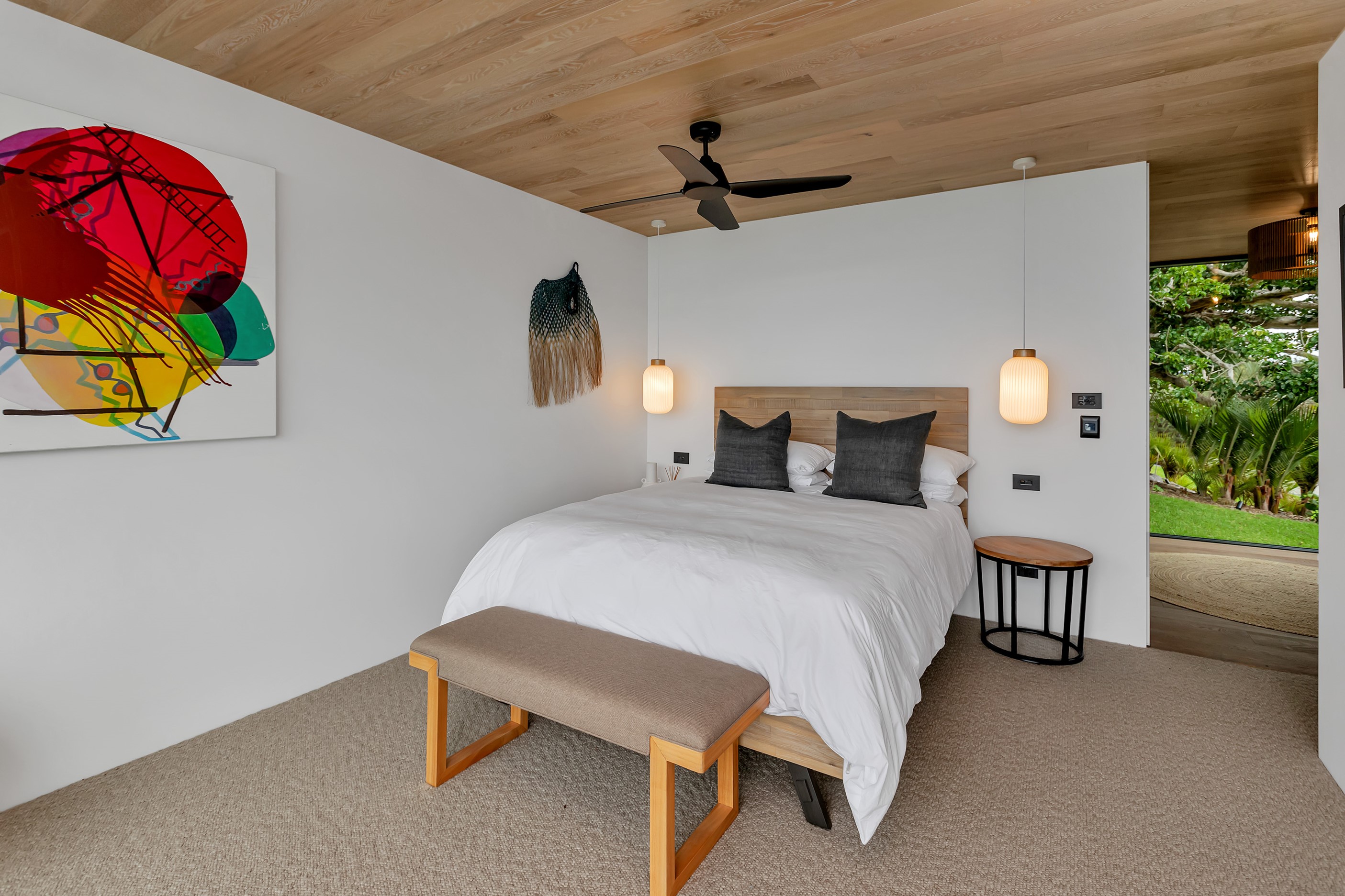 It started with a sprawling puriri and finished with a mid-century-style home honouring the tree with its rangy limbs and prolific red flowers. Yes, the 312sqm coastal home takes in grandstand views of the Pacific, but the owners also wanted it to respect its gnarled companion – a beautiful reminder of what was there first. The owners also wanted a low-profile contemporary home with sharp angles and clean lines, softened by cantilevering and landscaping curves. The two separate wings of the three-bedroom, two-bathroom house evoke a feeling of floating, or of reaching out into surrounding nature. Guests in the east wing are treated to wide ocean vistas, while the main-bedroom wing frames Northland’s rural splendour. A glazed hallway between showcases a spacious outdoor entertaining area with inbuilt fireplace on one side and the puriri and juvenile nīkau palms – magnificent when lit up at night – on the other. Timber ceilings, floors and features ground the interior and connect it with what’s outside. You’ll also find a media room, three bathrooms and a double garage. Special.