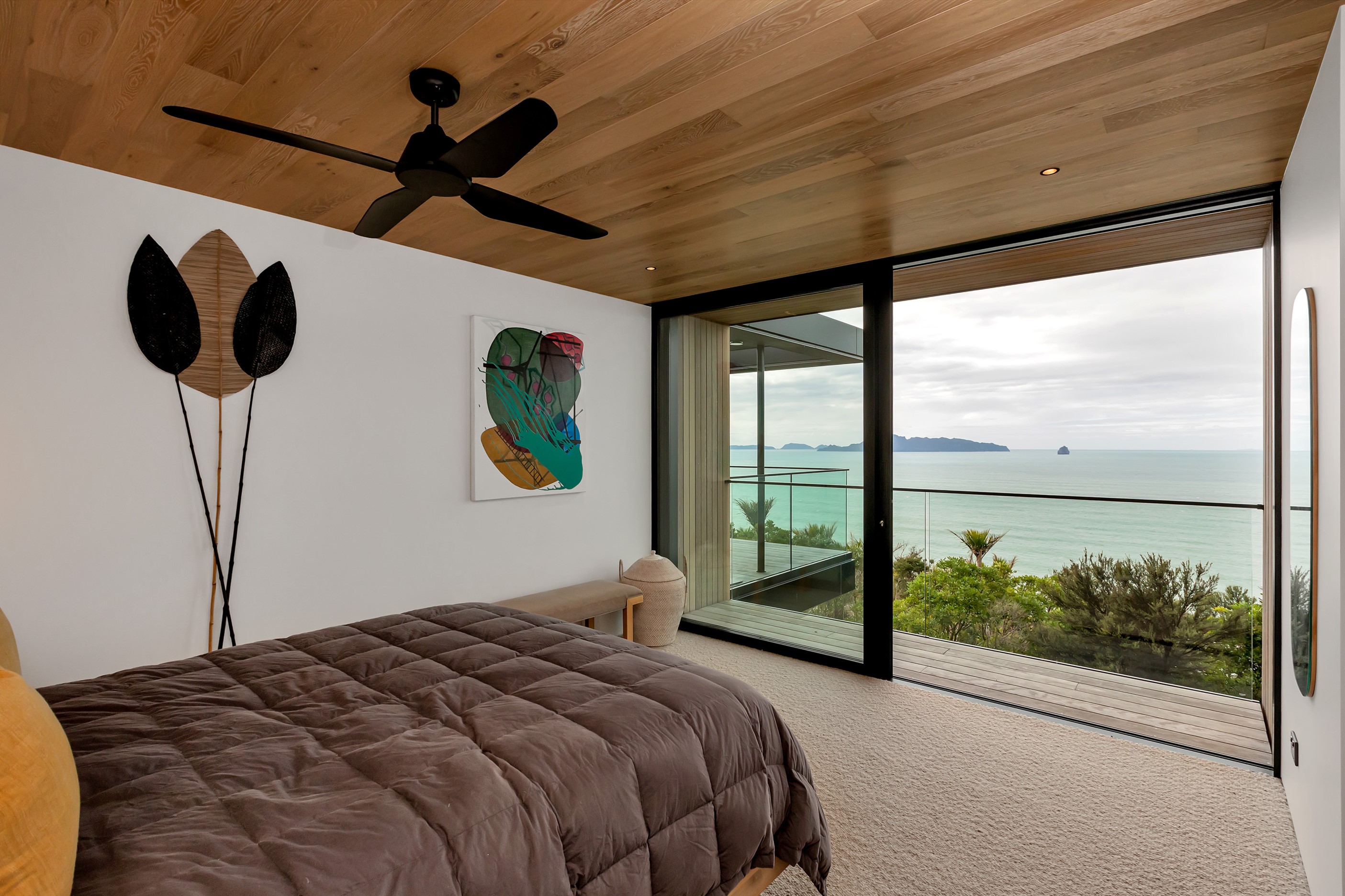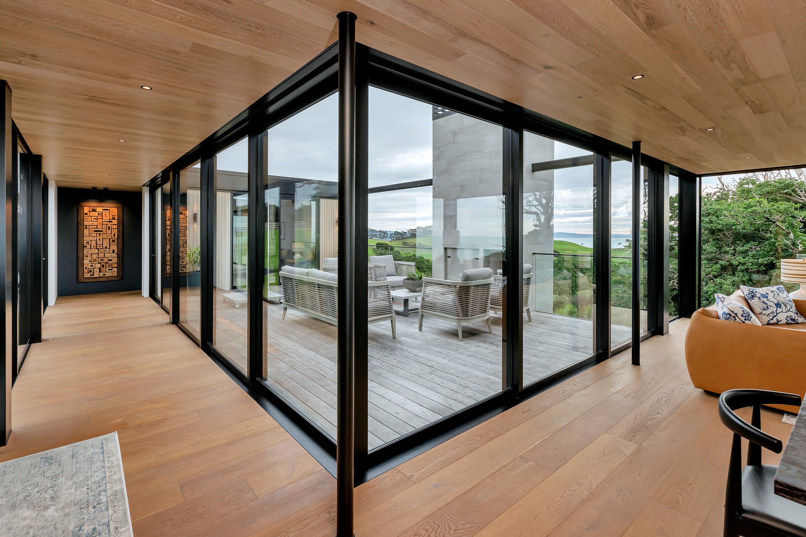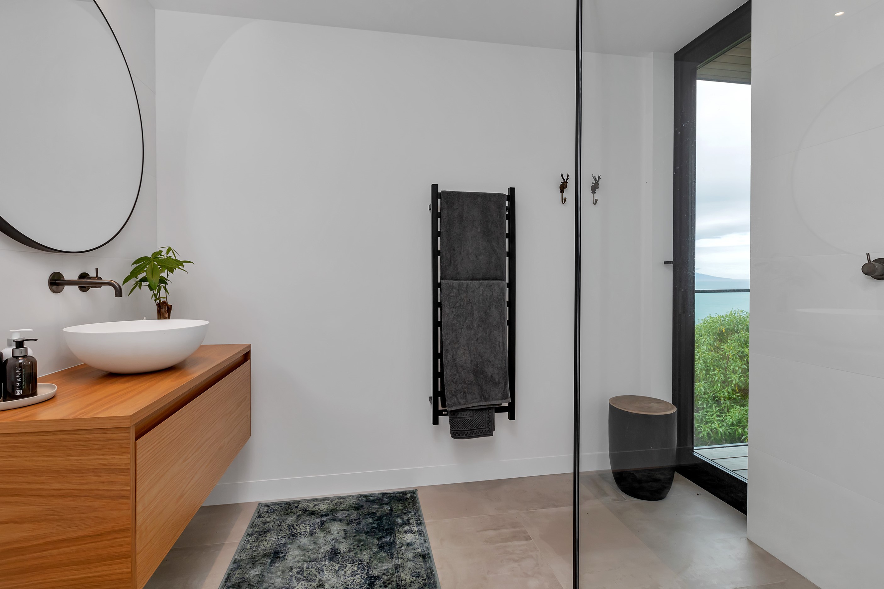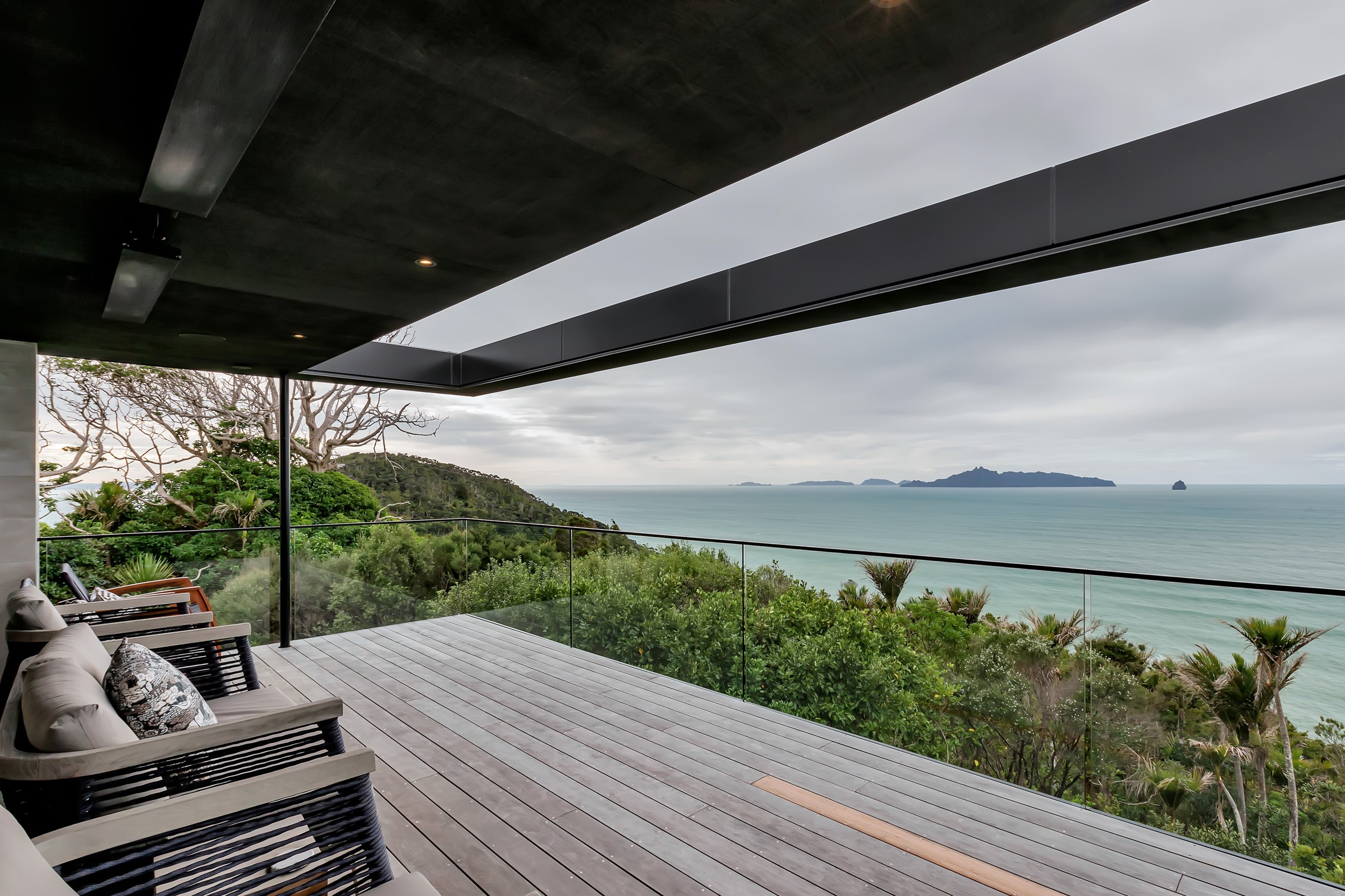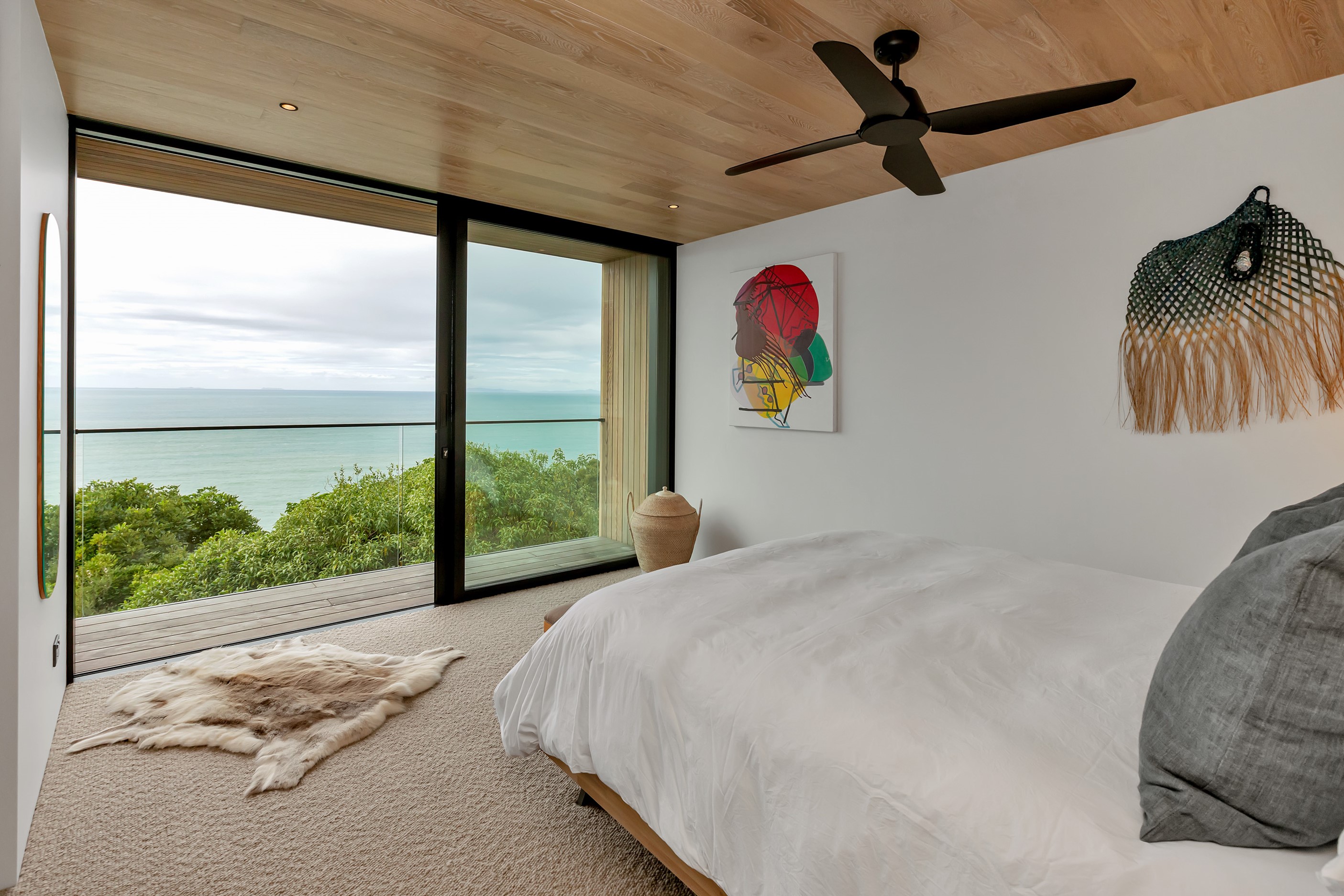 It started with a sprawling puriri and finished with a mid-century-style home honouring the tree with its rangy limbs and prolific red flowers. Yes, the 312sqm coastal home takes in grandstand views of the Pacific, but the owners also wanted it to respect its gnarled companion – a beautiful reminder of what was there first. The owners also wanted a low-profile contemporary home with sharp angles and clean lines, softened by cantilevering and landscaping curves. The two separate wings of the three-bedroom, two-bathroom house evoke a feeling of floating, or of reaching out into surrounding nature. Guests in the east wing are treated to wide ocean vistas, while the main-bedroom wing frames Northland’s rural splendour. A glazed hallway between showcases a spacious outdoor entertaining area with inbuilt fireplace on one side and the puriri and juvenile nīkau palms – magnificent when lit up at night – on the other. Timber ceilings, floors and features ground the interior and connect it with what’s outside. You’ll also find a media room, three bathrooms and a double garage. Special.