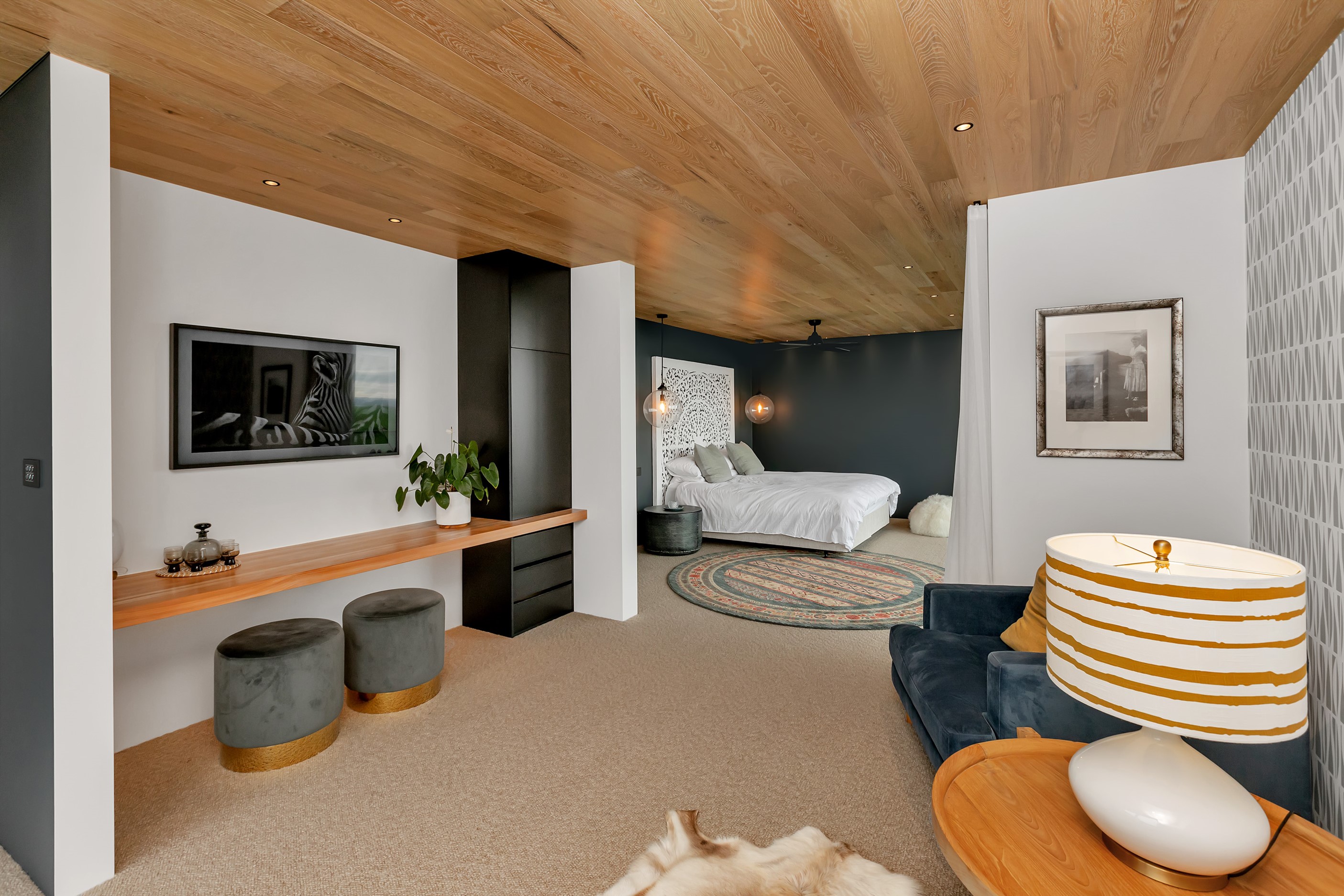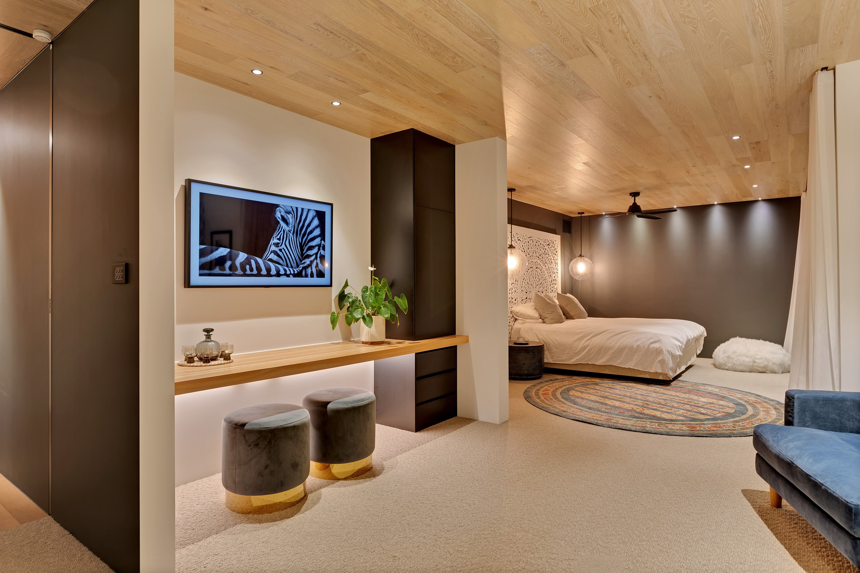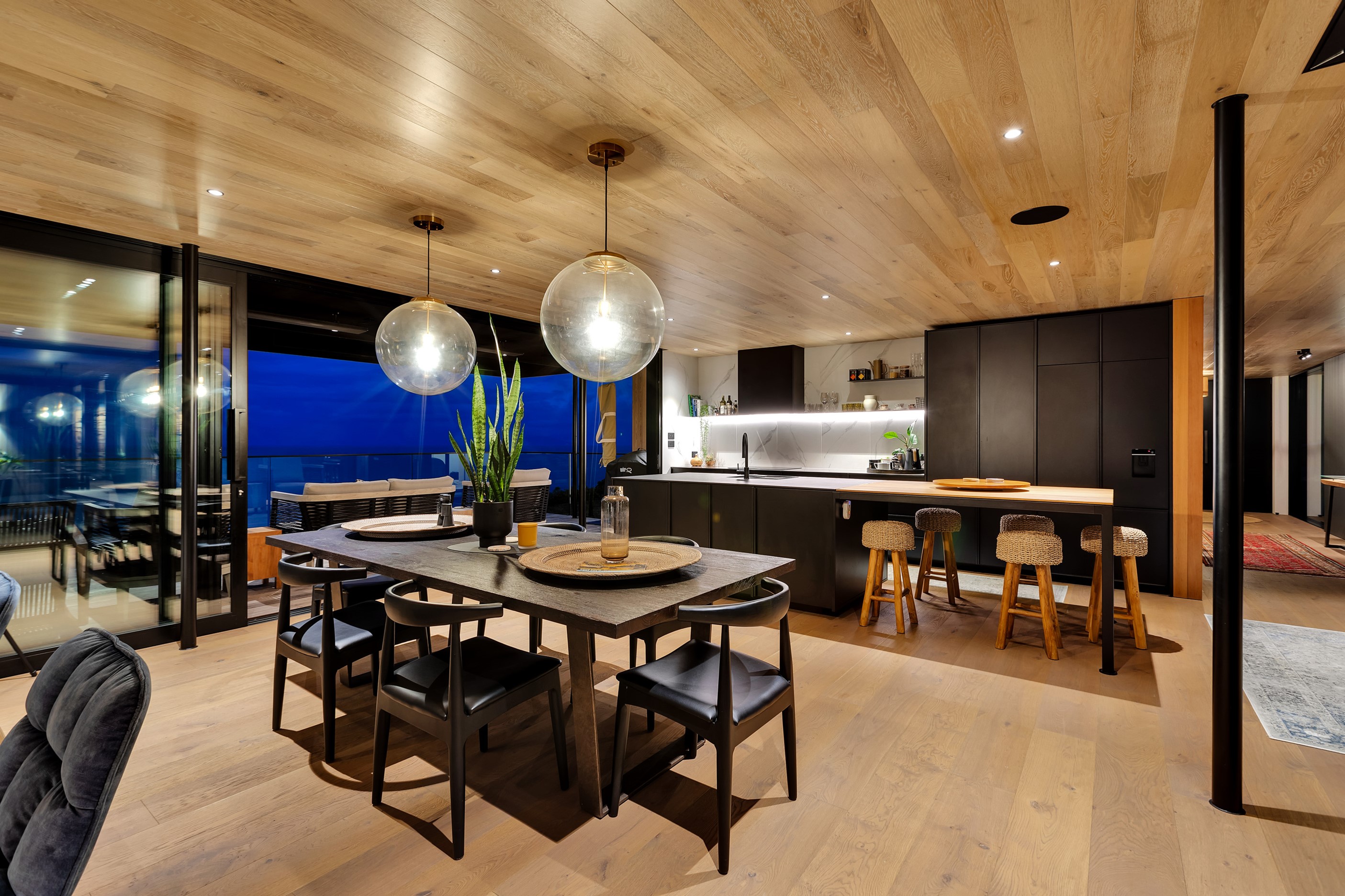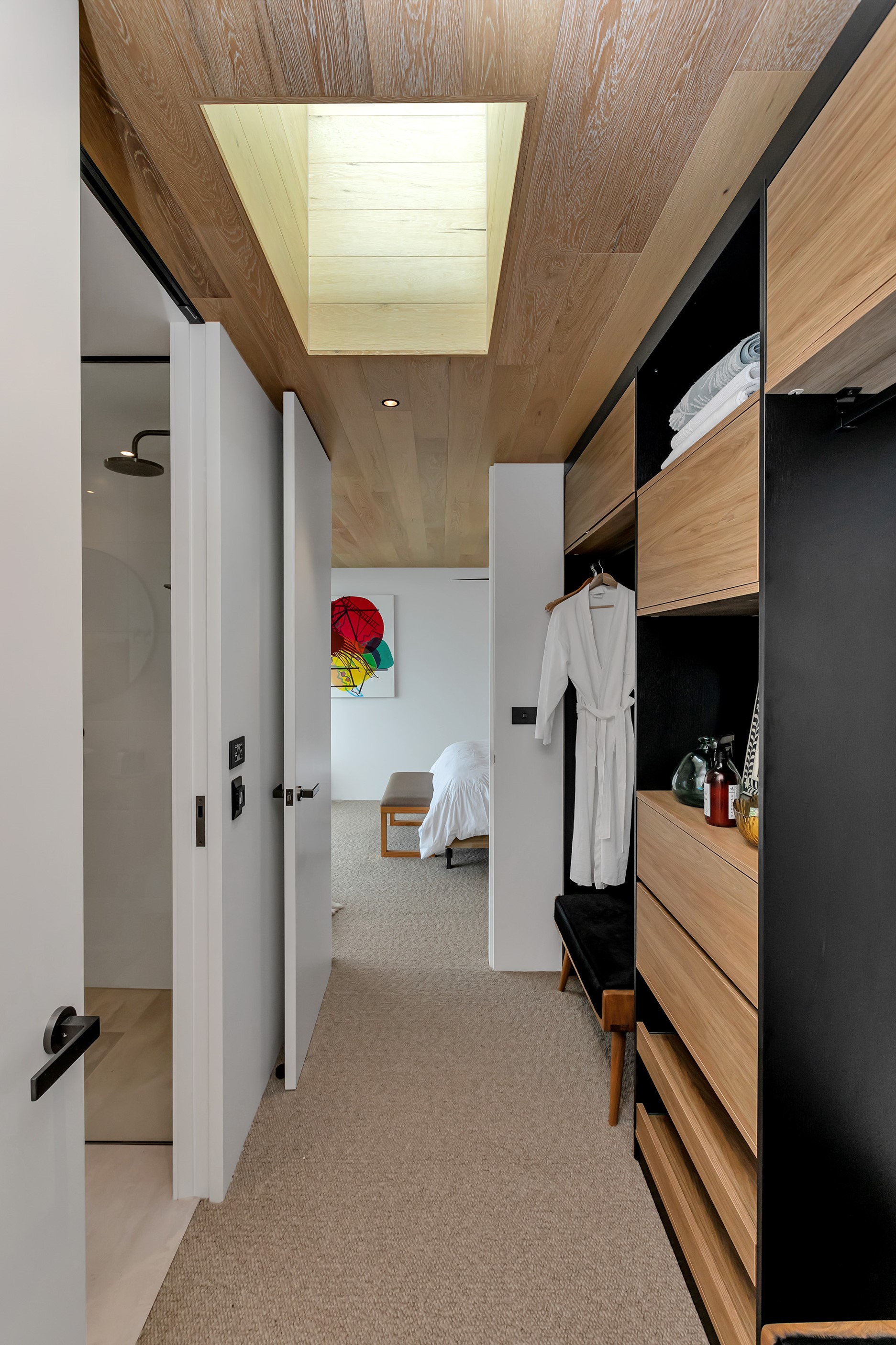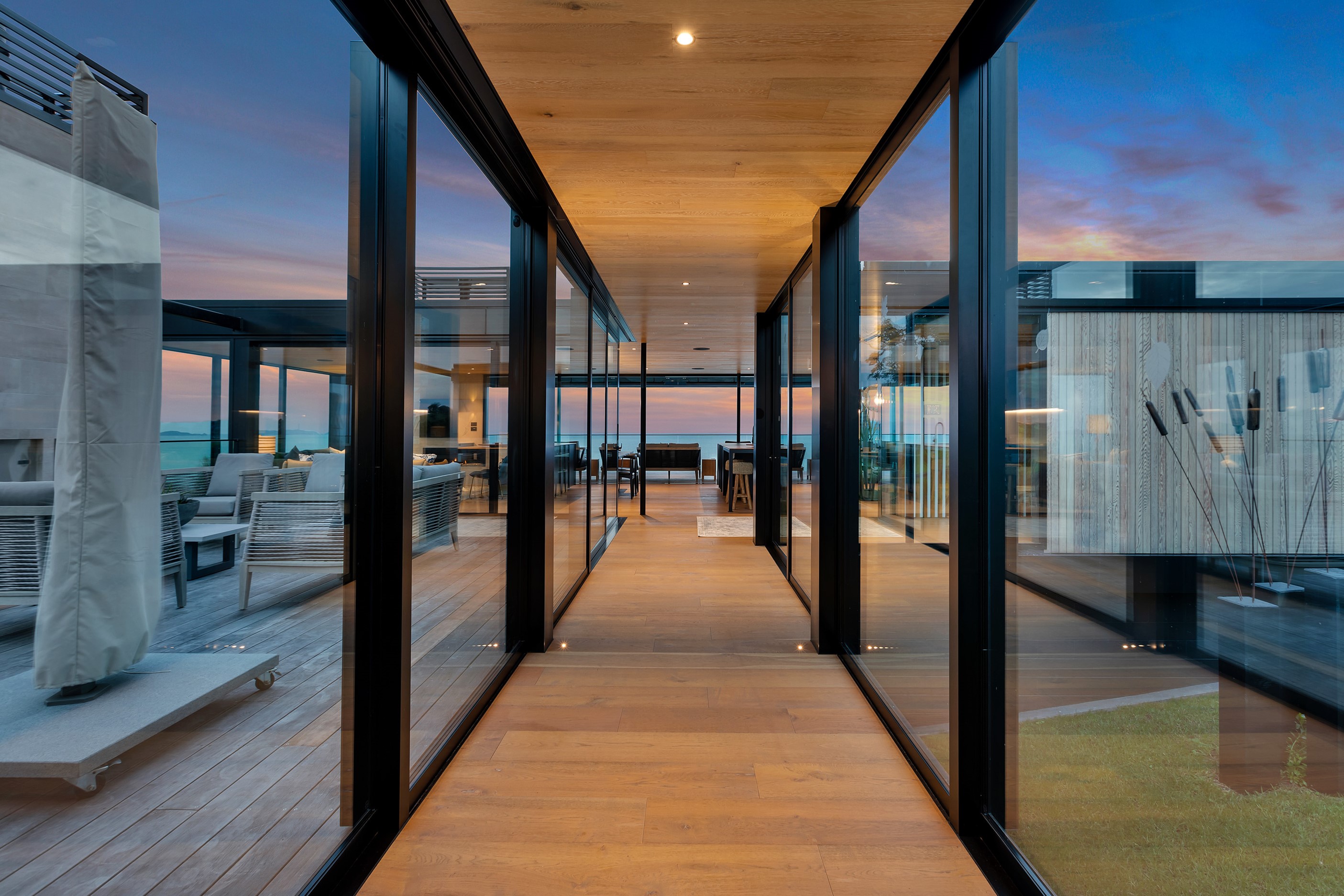 It started with a sprawling puriri and finished with a mid-century-style home honouring the tree with its rangy limbs and prolific red flowers. Yes, the 312sqm coastal home takes in grandstand views of the Pacific, but the owners also wanted it to respect its gnarled companion – a beautiful reminder of what was there first. The owners also wanted a low-profile contemporary home with sharp angles and clean lines, softened by cantilevering and landscaping curves. The two separate wings of the three-bedroom, two-bathroom house evoke a feeling of floating, or of reaching out into surrounding nature. Guests in the east wing are treated to wide ocean vistas, while the main-bedroom wing frames Northland’s rural splendour. A glazed hallway between showcases a spacious outdoor entertaining area with inbuilt fireplace on one side and the puriri and juvenile nīkau palms – magnificent when lit up at night – on the other. Timber ceilings, floors and features ground the interior and connect it with what’s outside. You’ll also find a media room, three bathrooms and a double garage. Special.