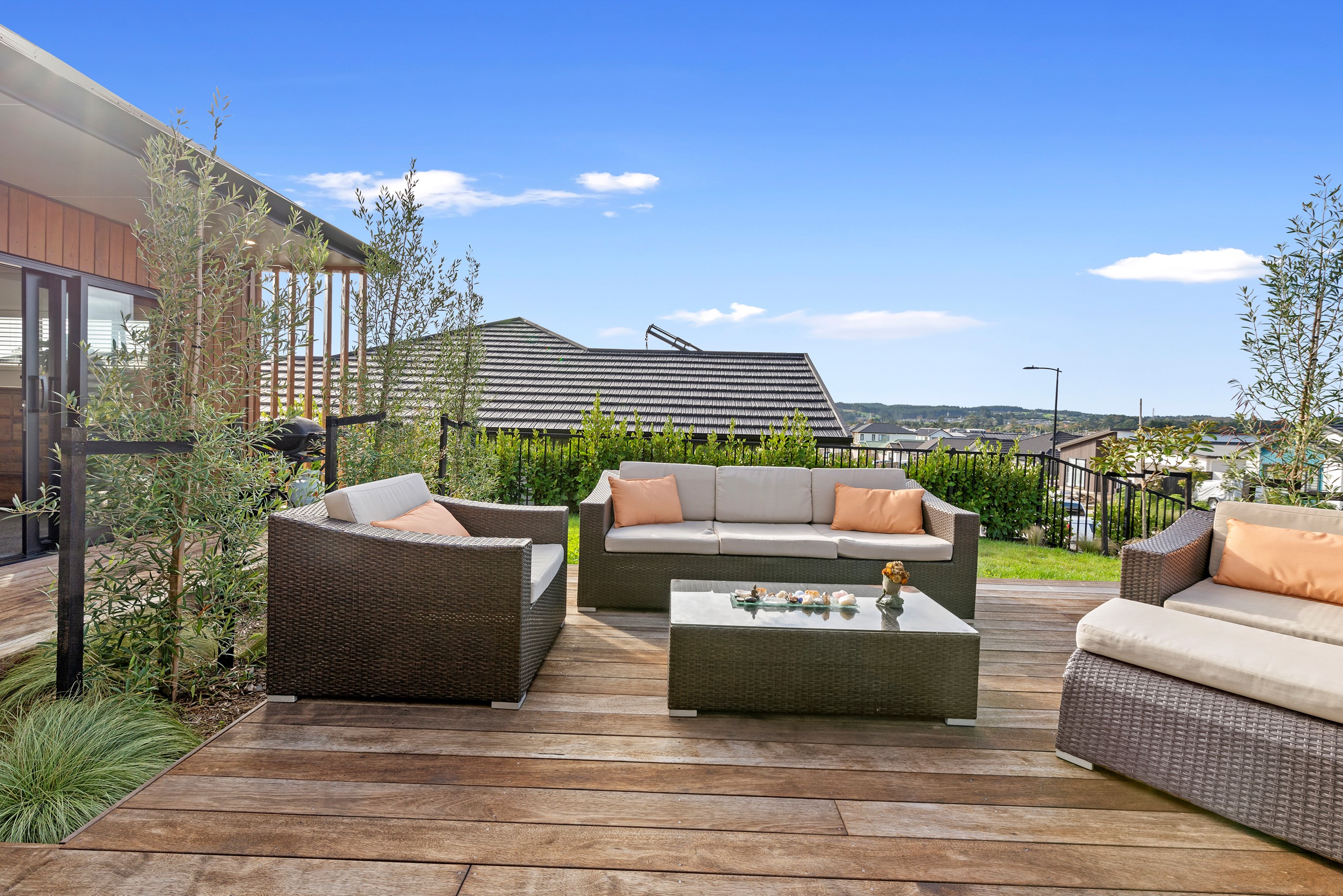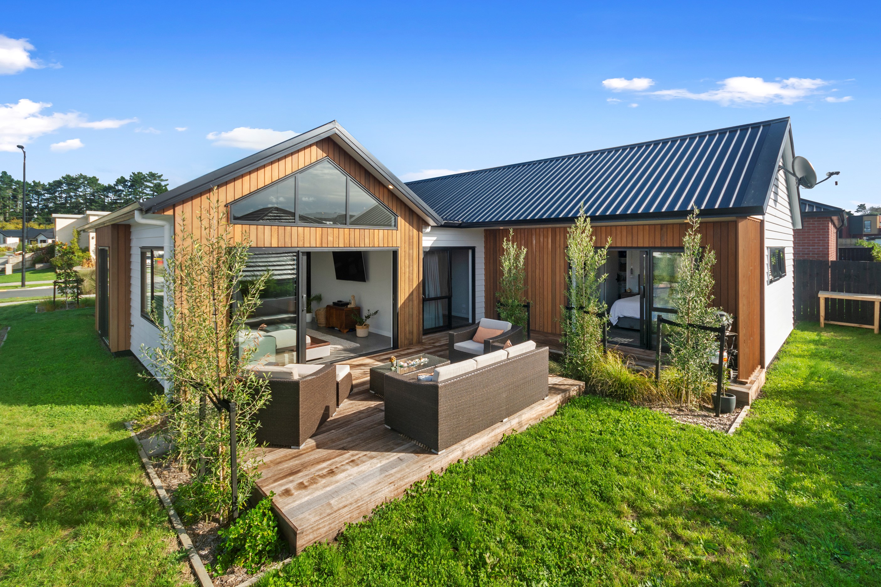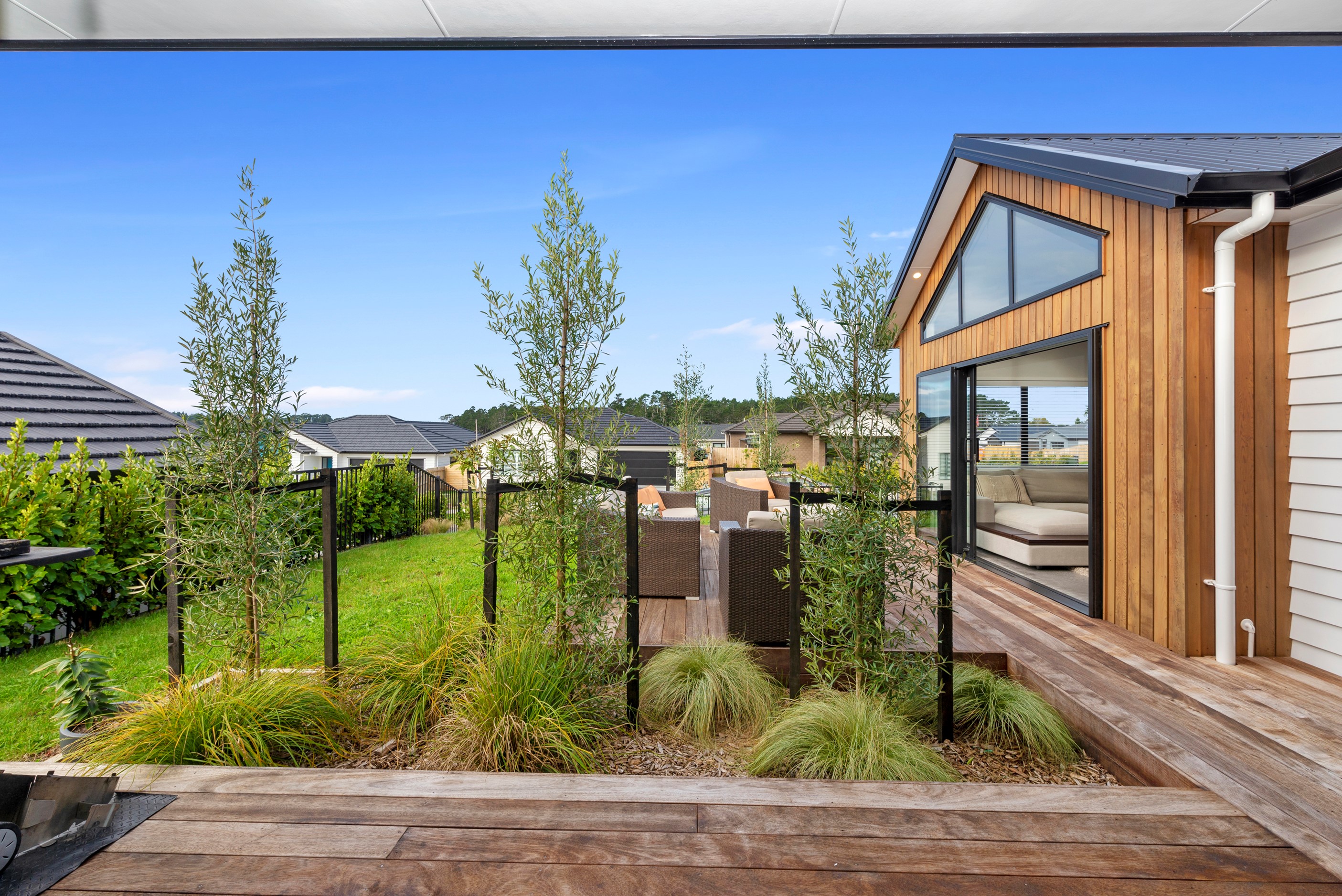 Surprisingly spacious, this stylish home delivers on its promise of being ultrawarm, comfortable and modern. Contrasting timber pavilions, raked ceilings and large windows create elegance and allow oodles of light into the combined kitchen and living area. Clean lines pair with neutral stone benchtops and cabinetry to create timeless sophistication and superb functionality in the space-saving kitchen. The living space opens out to an inviting, generously sized wraparound hardwood deck, which connects with the main and secondary bedrooms. With room for a full suite of outdoor furniture on the sun-soaked deck, this relaxing space provides the perfect setting for family and guests to enjoy socialising. Making the most of its 162sqm footprint, the home offers three double bedrooms, two bathrooms and a powder room, with the main bathroom providing a luxurious retreat to wash away the day. Despite its modest budget, this contemporary home has been finished with premium black detailing and fixtures that put it a class above.