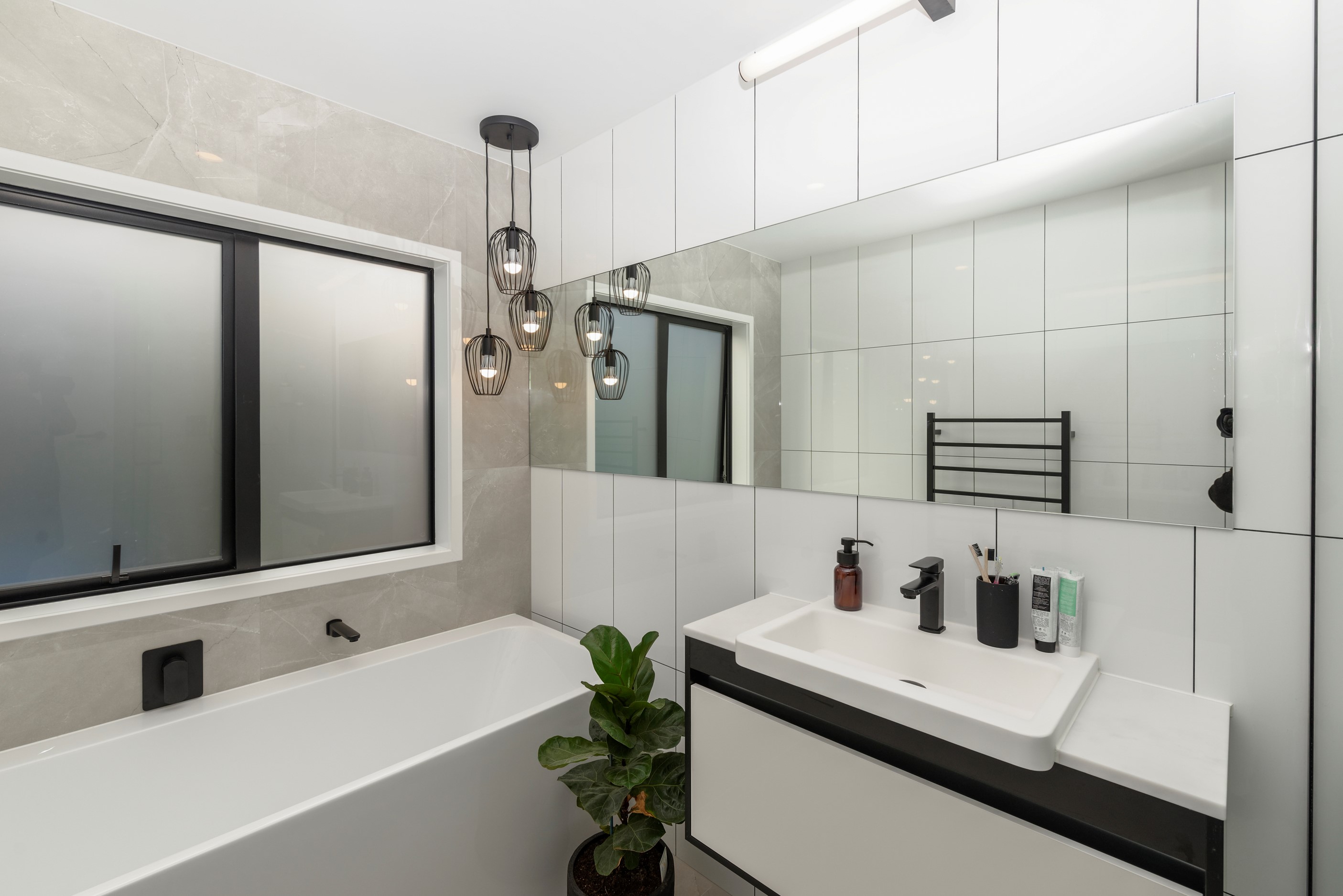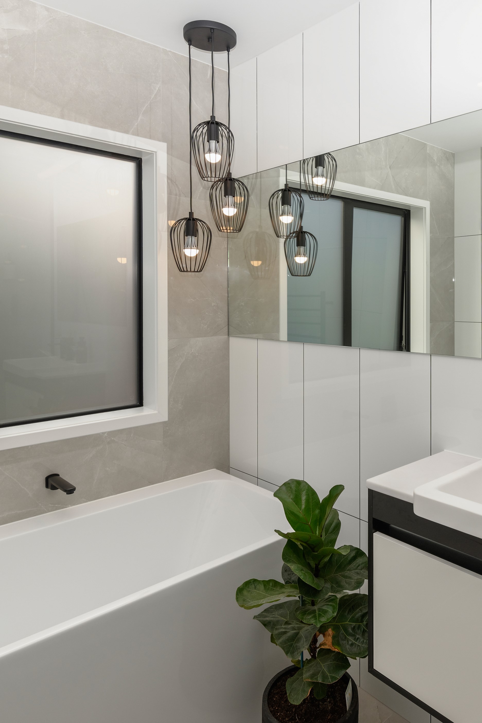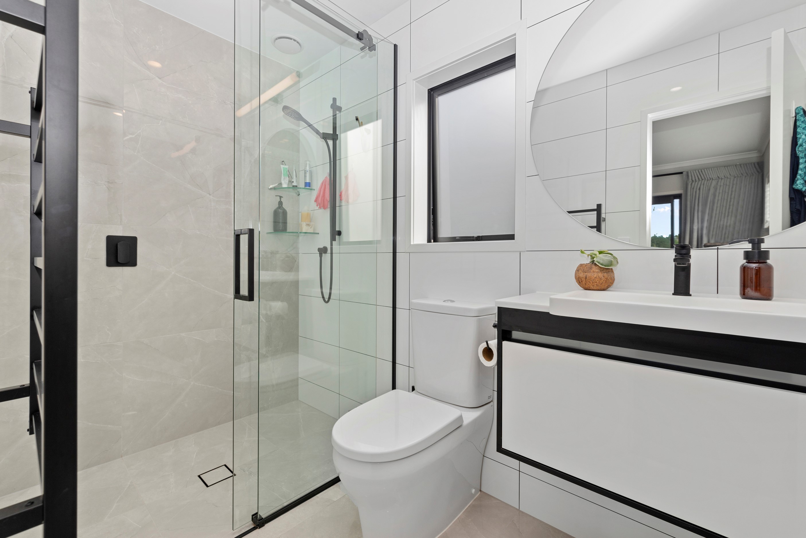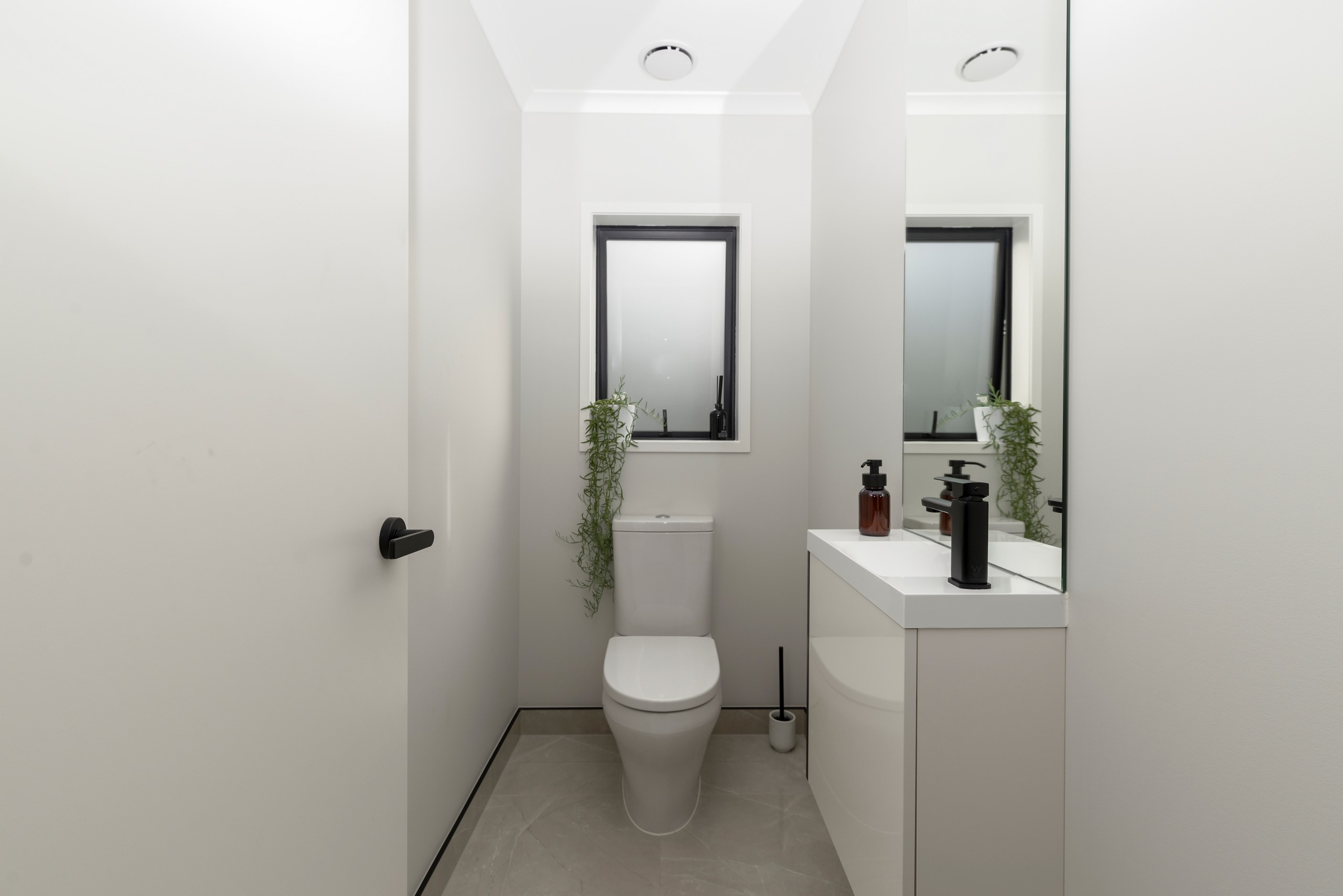 Surprisingly spacious, this stylish home delivers on its promise of being ultrawarm, comfortable and modern. Contrasting timber pavilions, raked ceilings and large windows create elegance and allow oodles of light into the combined kitchen and living area. Clean lines pair with neutral stone benchtops and cabinetry to create timeless sophistication and superb functionality in the space-saving kitchen. The living space opens out to an inviting, generously sized wraparound hardwood deck, which connects with the main and secondary bedrooms. With room for a full suite of outdoor furniture on the sun-soaked deck, this relaxing space provides the perfect setting for family and guests to enjoy socialising. Making the most of its 162sqm footprint, the home offers three double bedrooms, two bathrooms and a powder room, with the main bathroom providing a luxurious retreat to wash away the day. Despite its modest budget, this contemporary home has been finished with premium black detailing and fixtures that put it a class above.