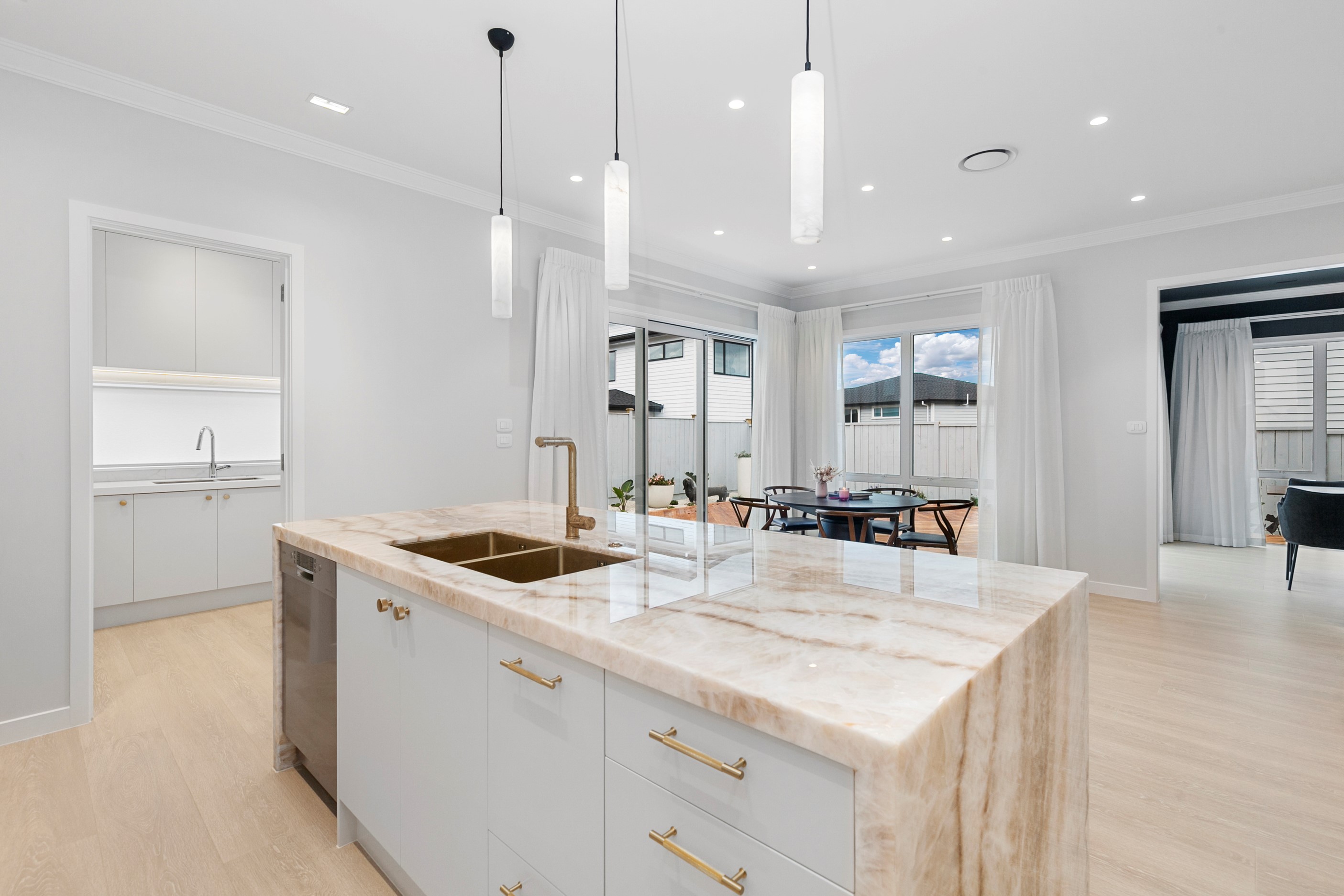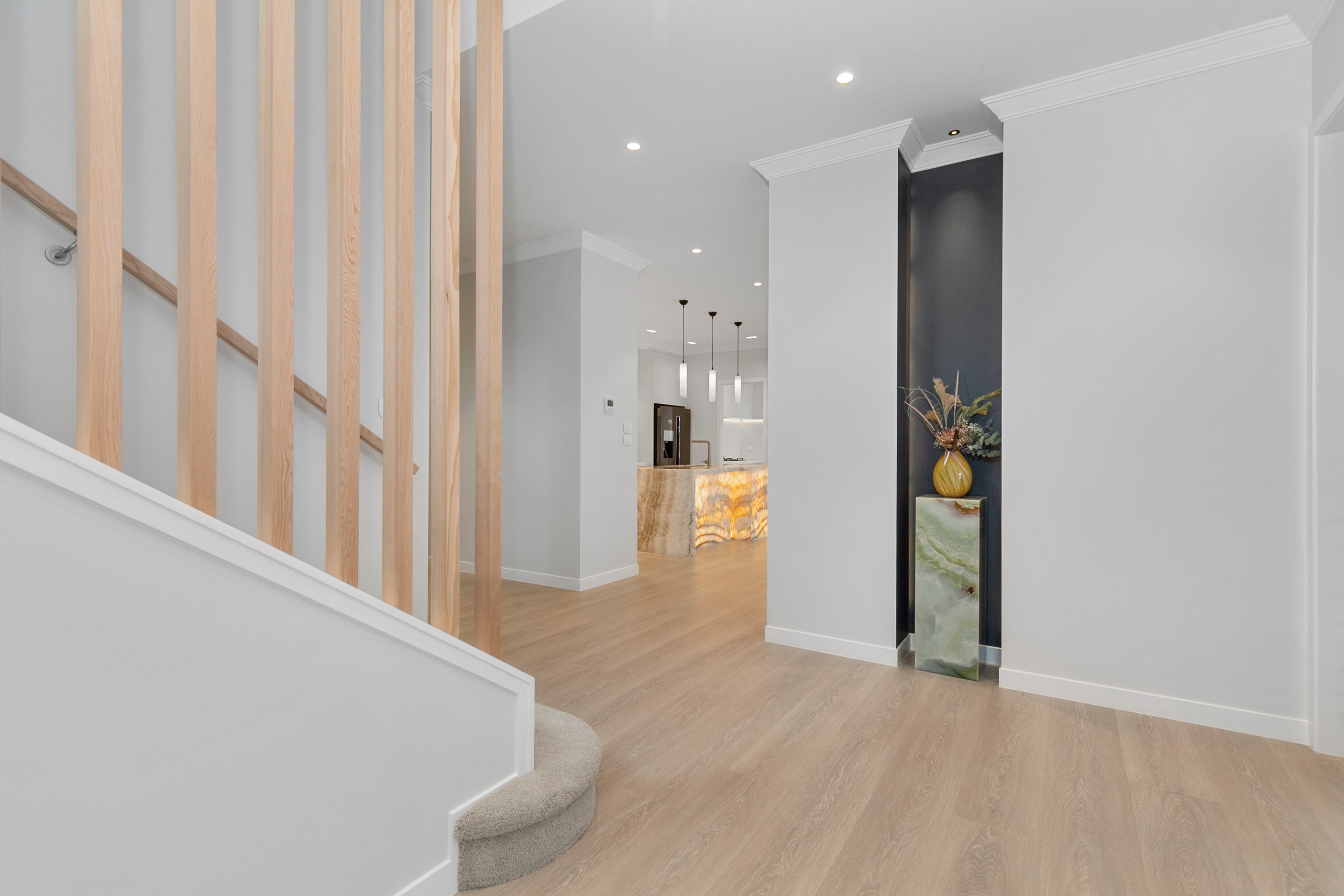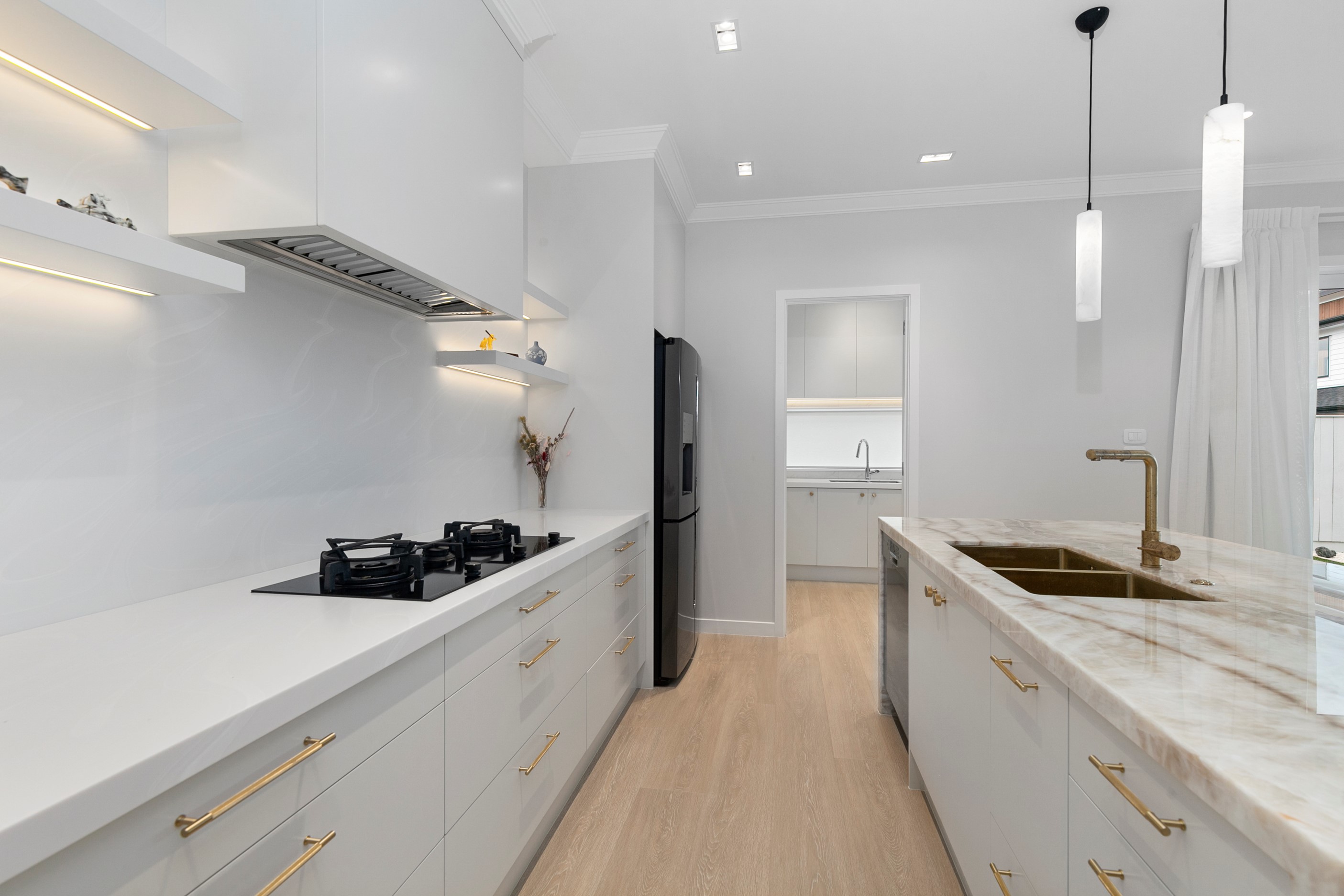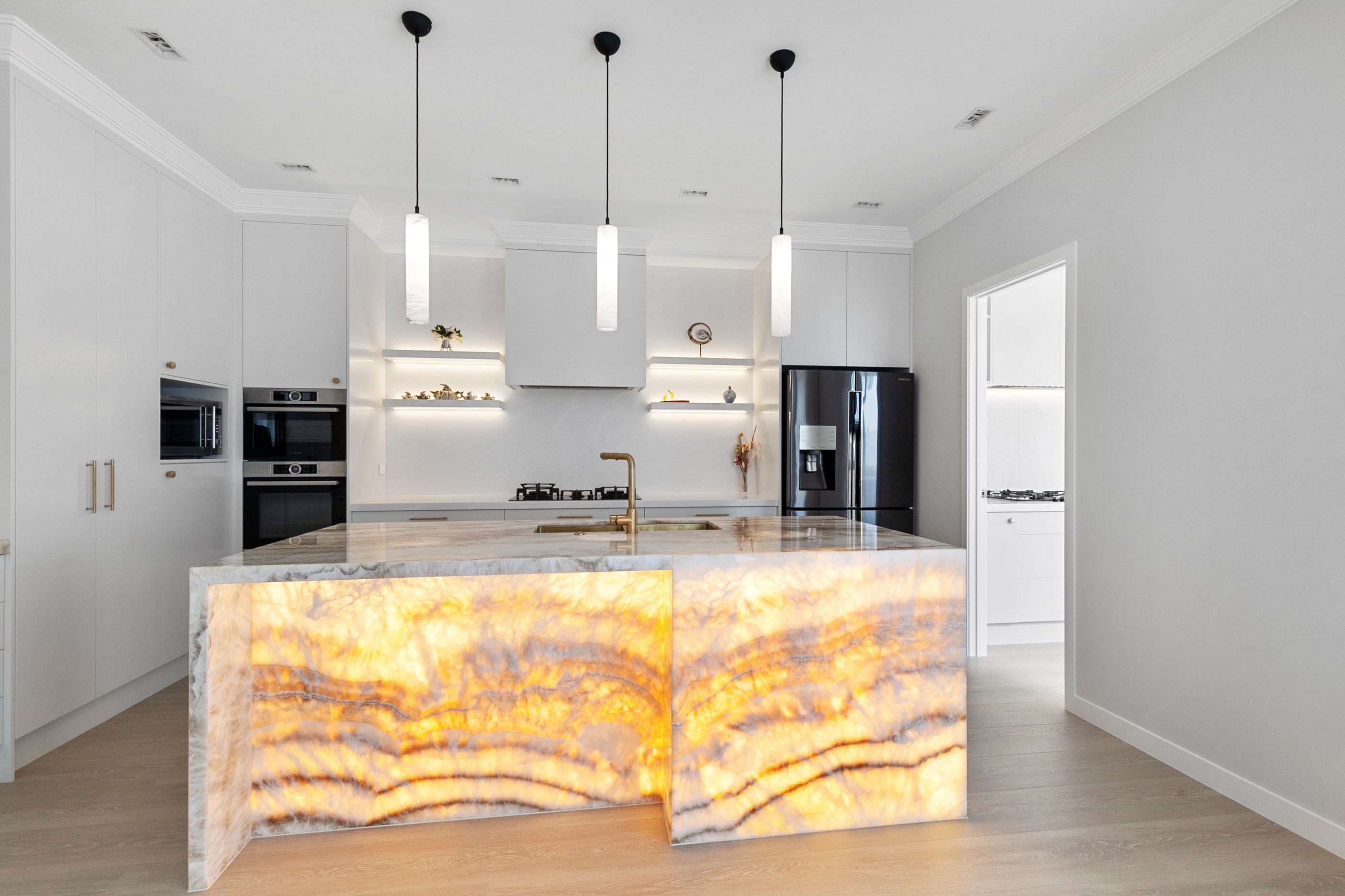 From the outside, this show-stopping property impresses with its effortless Hamptons-style exterior, but step inside and a modern twist awaits. Space, light and a clean, contemporary aesthetic fills each of the two separate living areas, two kitchens, five bedrooms, and three-and-a-half bathrooms. In the heart of the home, the kitchen is bright and beautifully appointed. Without doubt, the main attraction is the back-lit onyx island bench that softly illuminates the room with a warming glow. The tapware and fittings complement the bronze tones within the stone, offsetting the crisp white decor. Equally as impressive, the large bathrooms are impeccably finished with floor-to-ceiling tiling and quality fittings in keeping with the modern yet luxurious aesthetic. Spanning two expansive levels, this 329sqm family home represents meticulous design processes and sophisticated craftsmanship. And just as importantly for its owners, it has an abundance of character and soul – something that transforms this quality build into a comforting home.