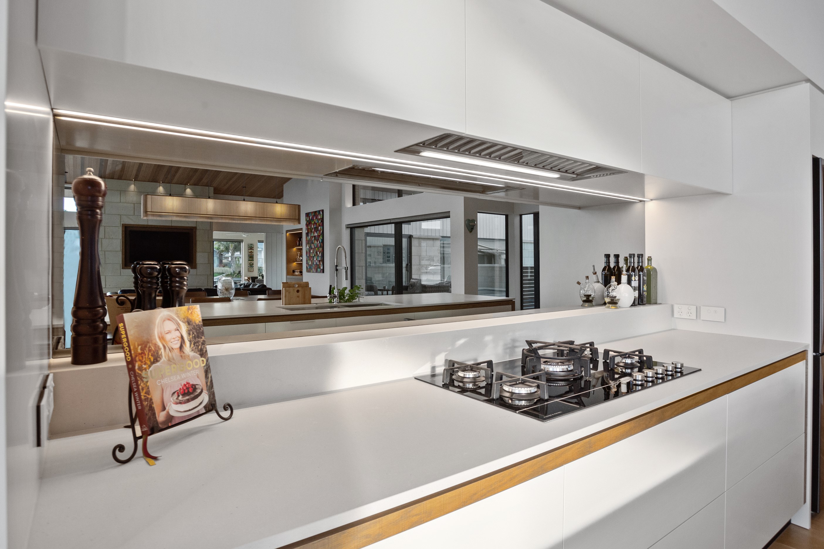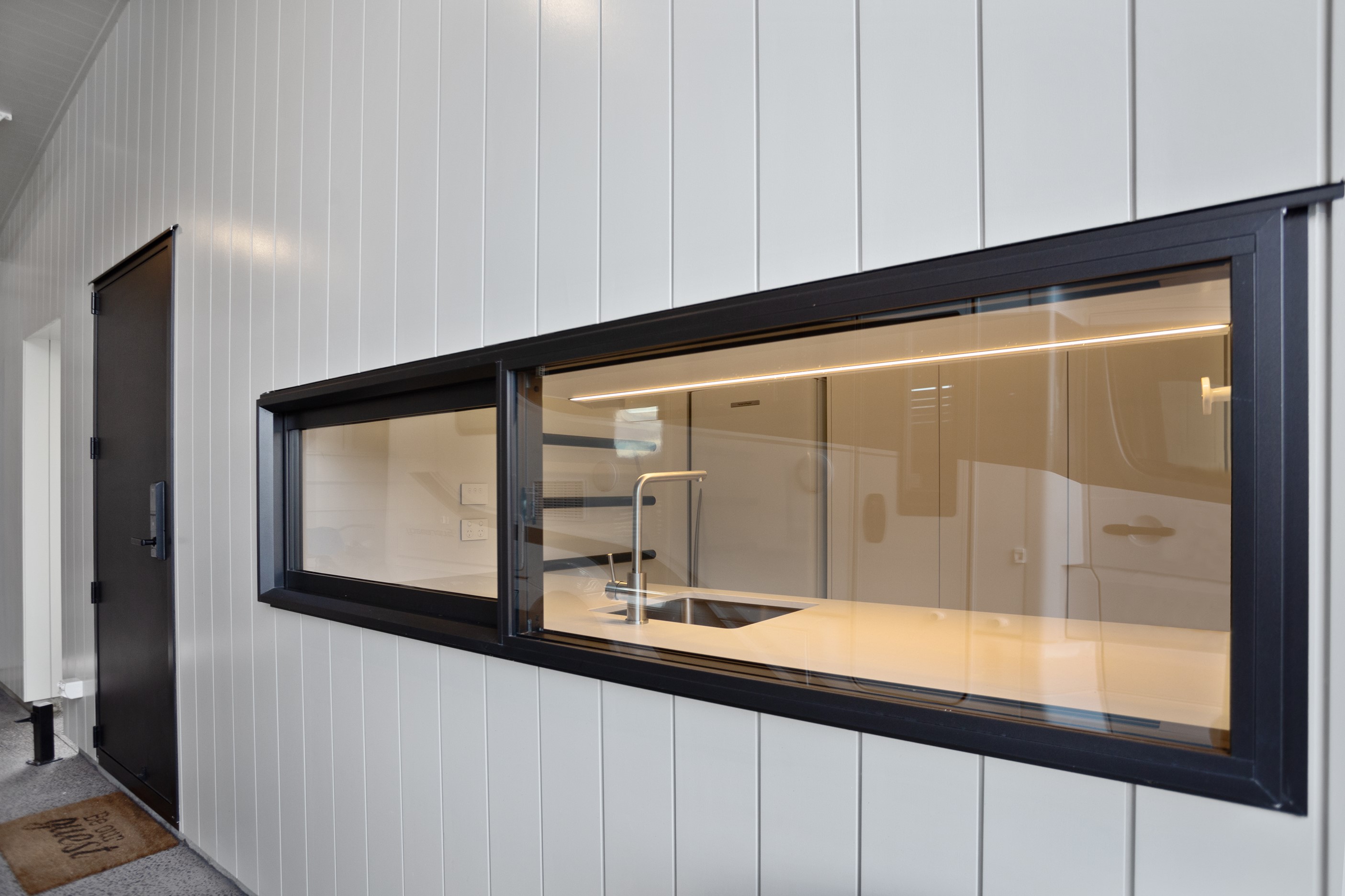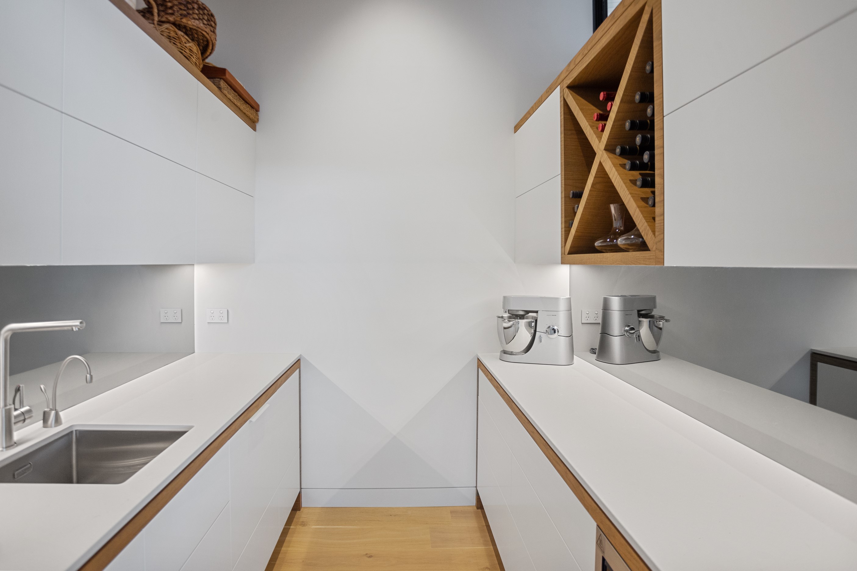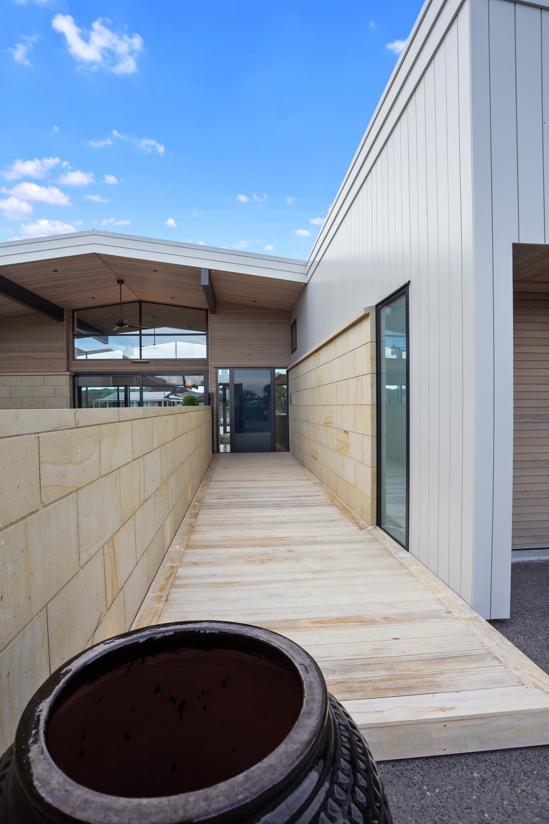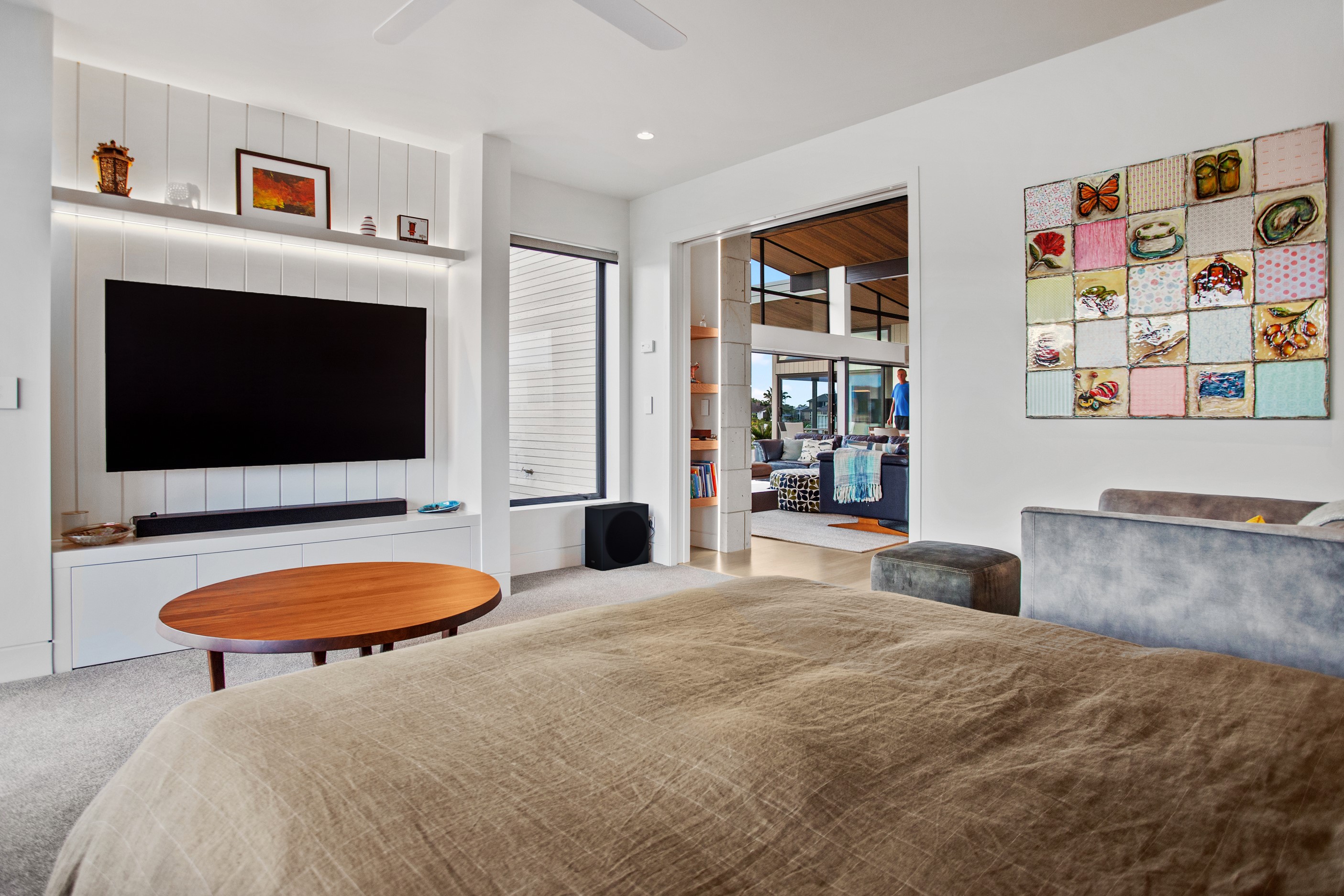 This architecturally designed beauty is on a corner site, but not one as you know it. Instead of perching on the apex of streets, this 477sqm three-bedroom home presides over a double corner section bordered by the canal. You can arrive at the front door by car, or to the entertaining area by boat. The Hinuera stone, weatherboard and cedar-clad house wraps an in-ground pool in a central courtyard. Inside you’ll find more solid timber – floors, kitchen features and built-in oak furniture. The TV lounge has an added bonus: a king-size guest bed that disappears into built-in cabinetry. The three bathrooms have handmade concrete basins and brushed-oak cabinets. As if that’s not enough, the house opens to decking on two canal fronts and has a hot tub on the lower level. Sustainability was high on the owners’ list, so you’ll find solar panels, which heat the home as well as the pool in summer. Batteries store the energy so they can live off the grid. There are electric-car chargers, FSC-certified wood and the double glazing is low-e and argon-filled for cool summers and warm winters. Coastal living at its finest.