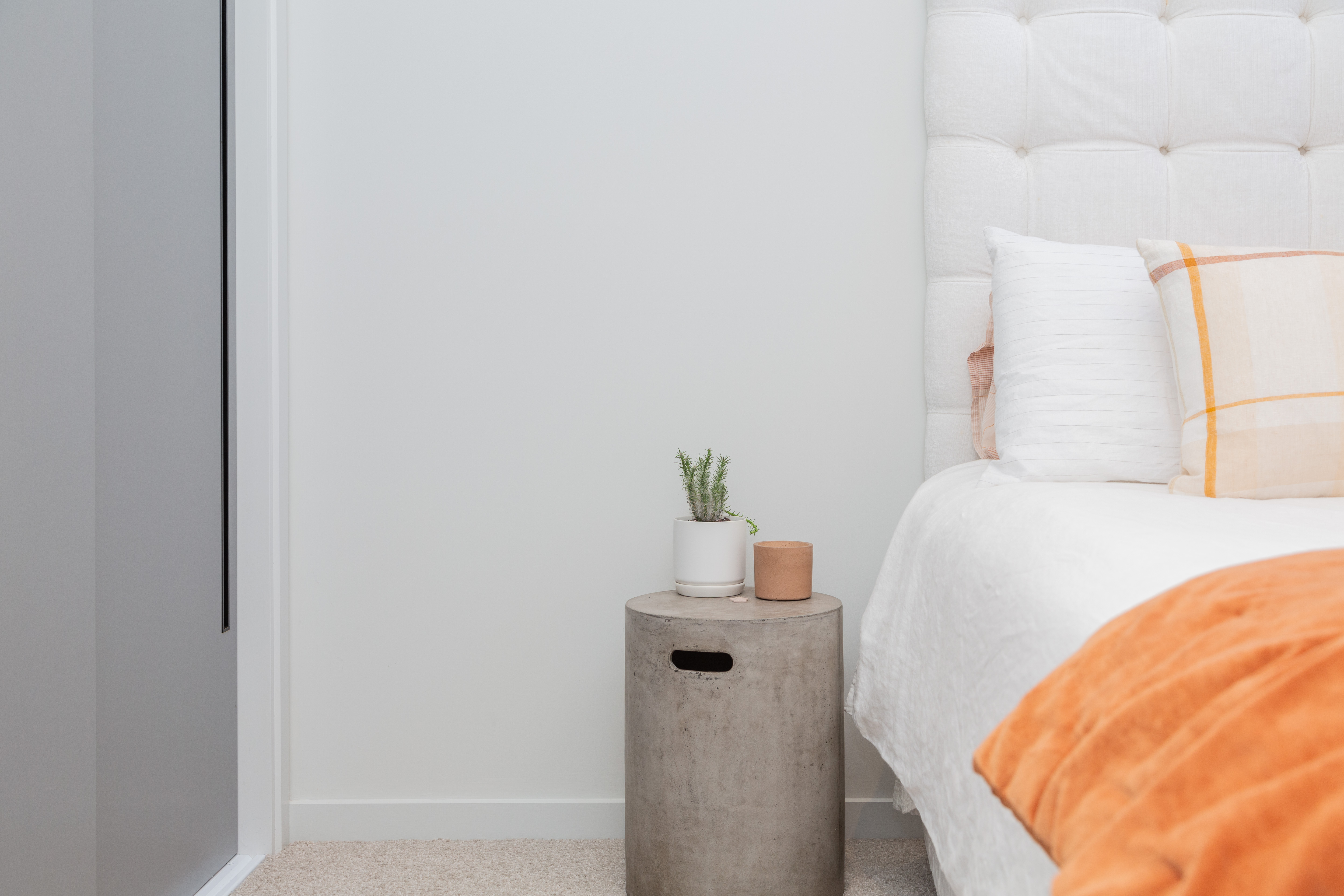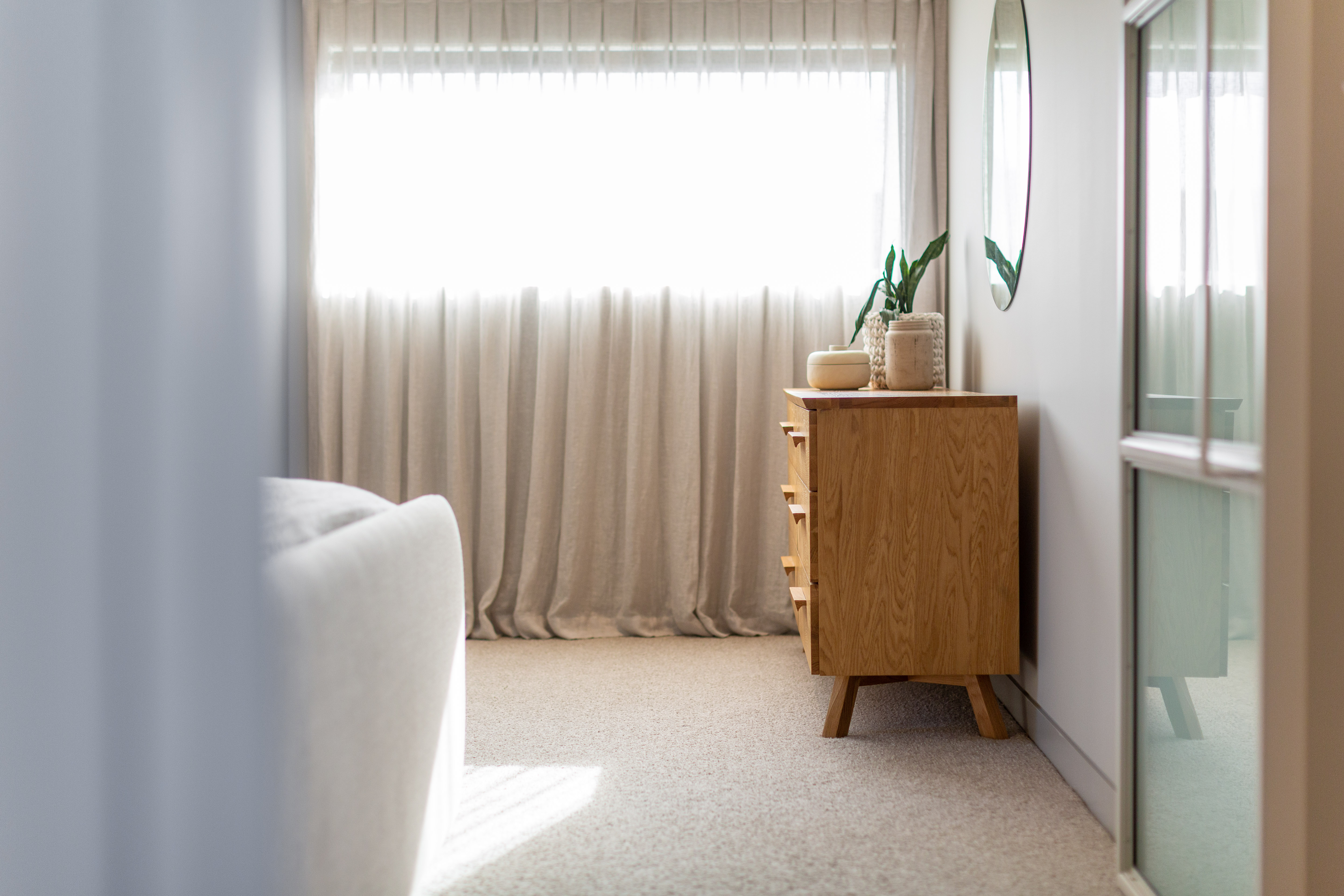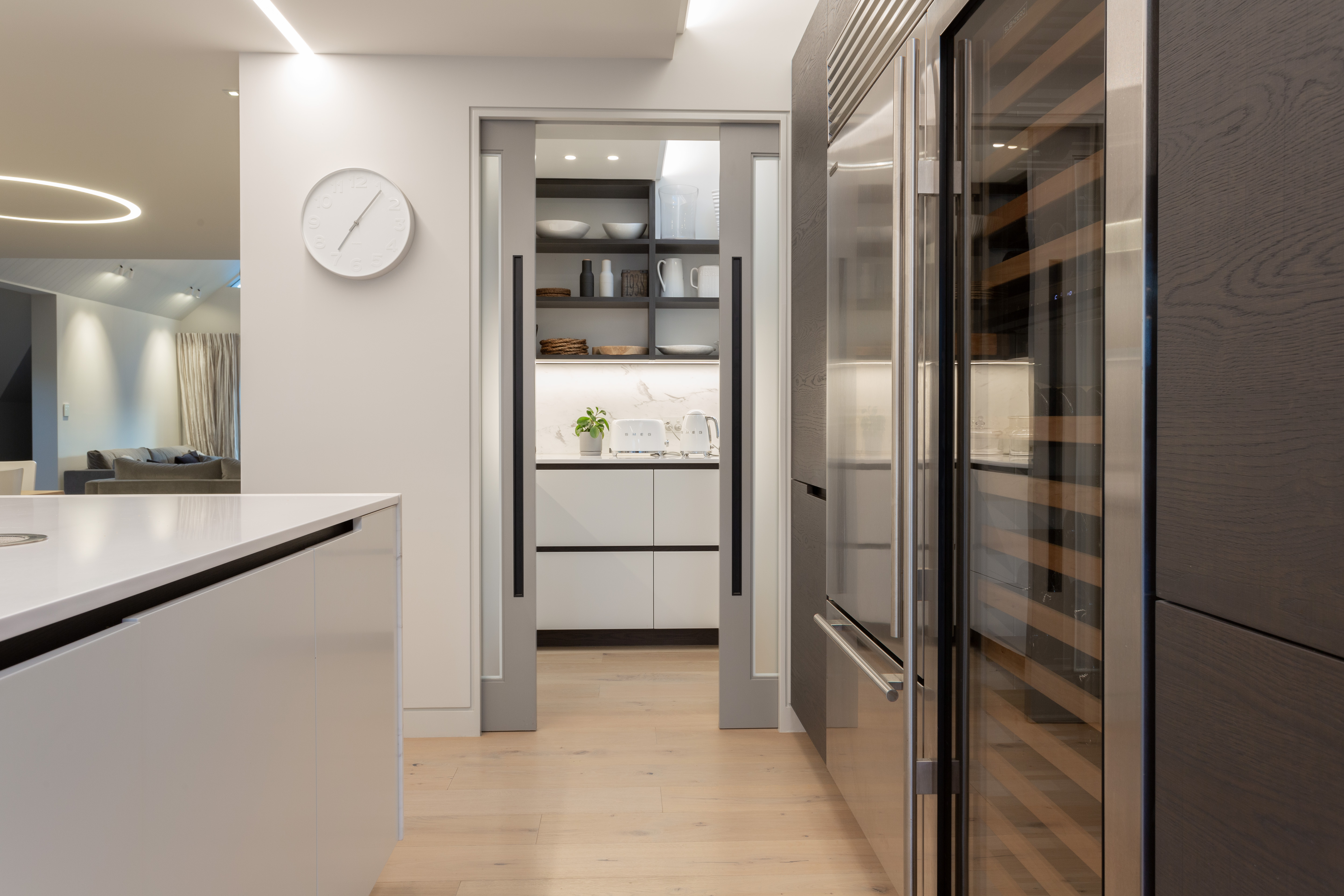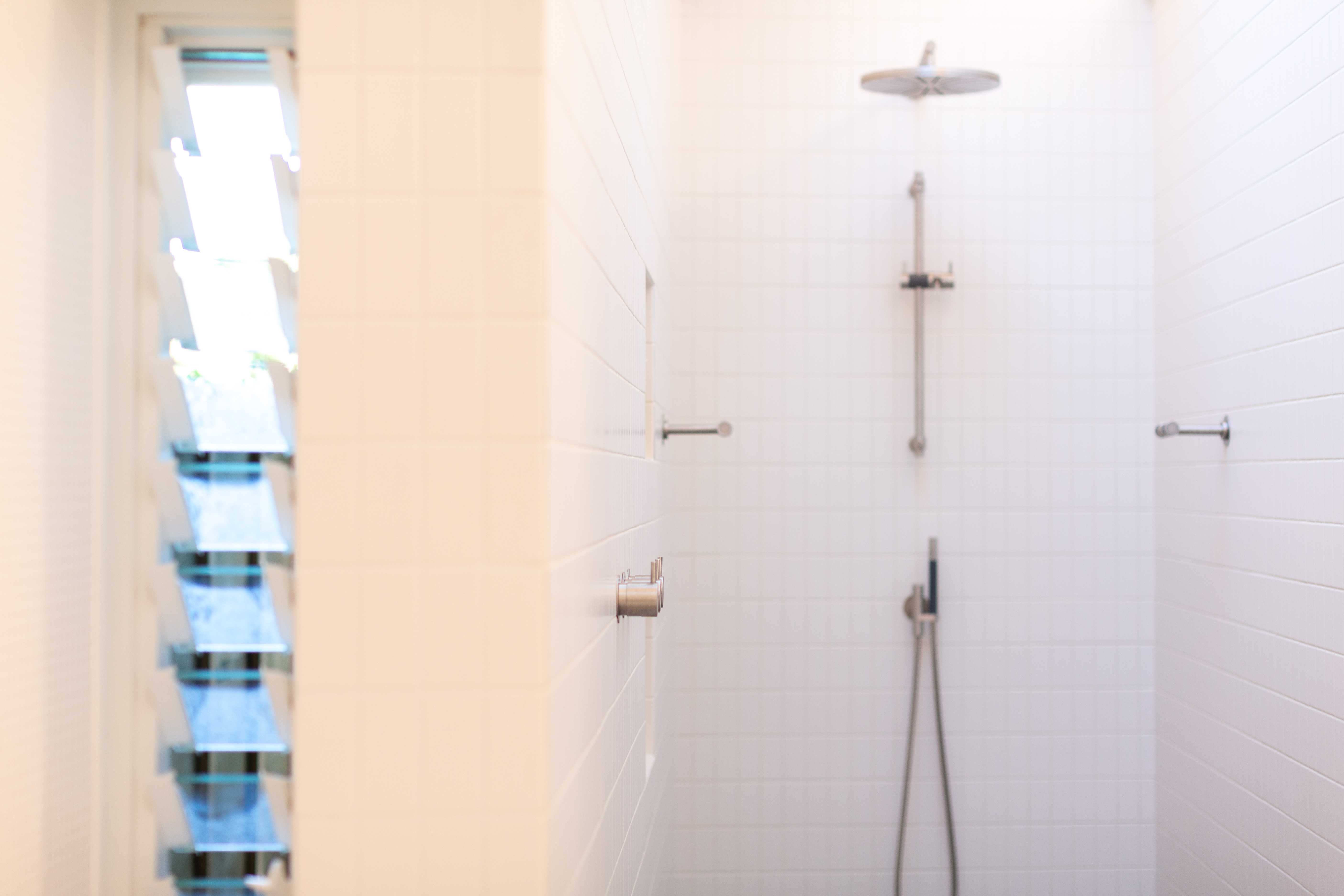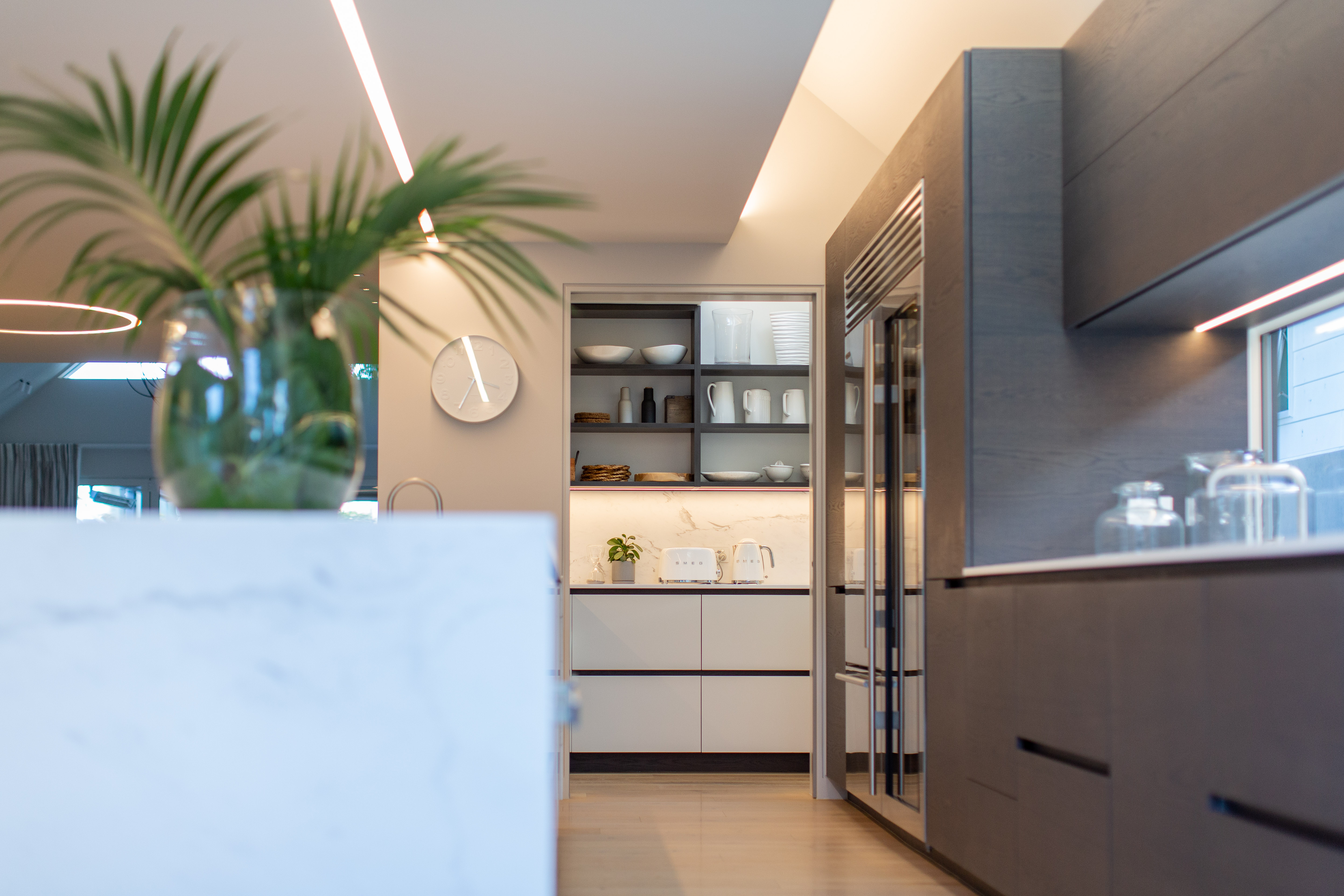 The project to renovate this architect designed four-bedroom house was major, but the results are spectacular. As well as an interior revamp, the outside was clad in striking black Linea weatherboard with white edging and architectural landscaping features were installed. The pool house, separated from the home by a private courtyard and the pool itself, is a major feature of the work. It was constructed with poured concrete and given a ply-grain finish. This magical space has frameless glass bifold doors, decking that flows from inside to out and all the bells and whistles. You’ll also find sophisticated automation, audio, and ducted air conditioning and heating in here and throughout the main house. The kitchen is a statement in style, with a five-metre marble island taking centre stage. Much of the interior lighting is custom designed to provide a minimalist finish, and high-end products are used everywhere: oak flooring, Danish bathroomware, wool carpets, specialty tiles and frameless showers. A glass-roofed carport, tropical landscaping and an automated entrance accentuate the class of the project.