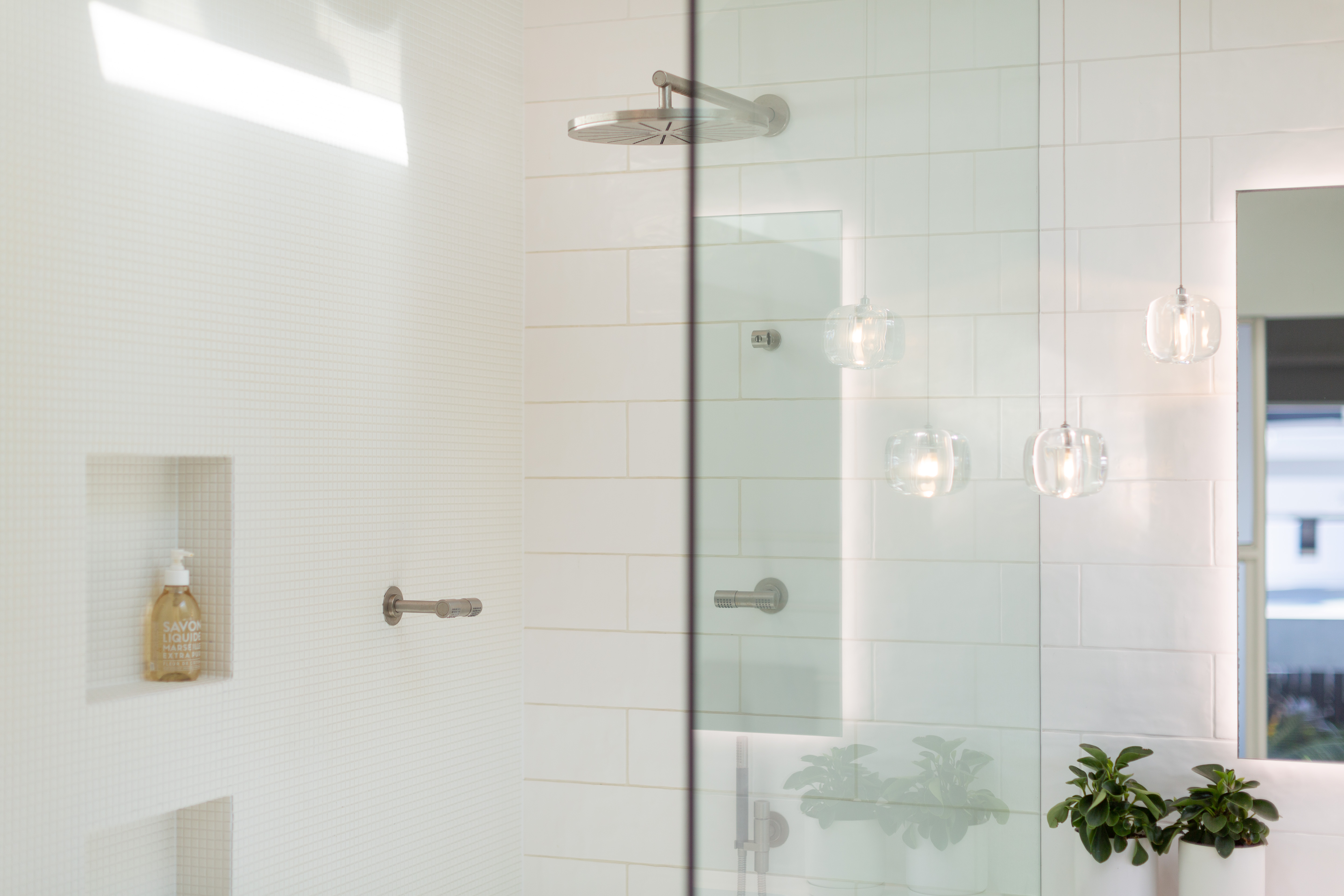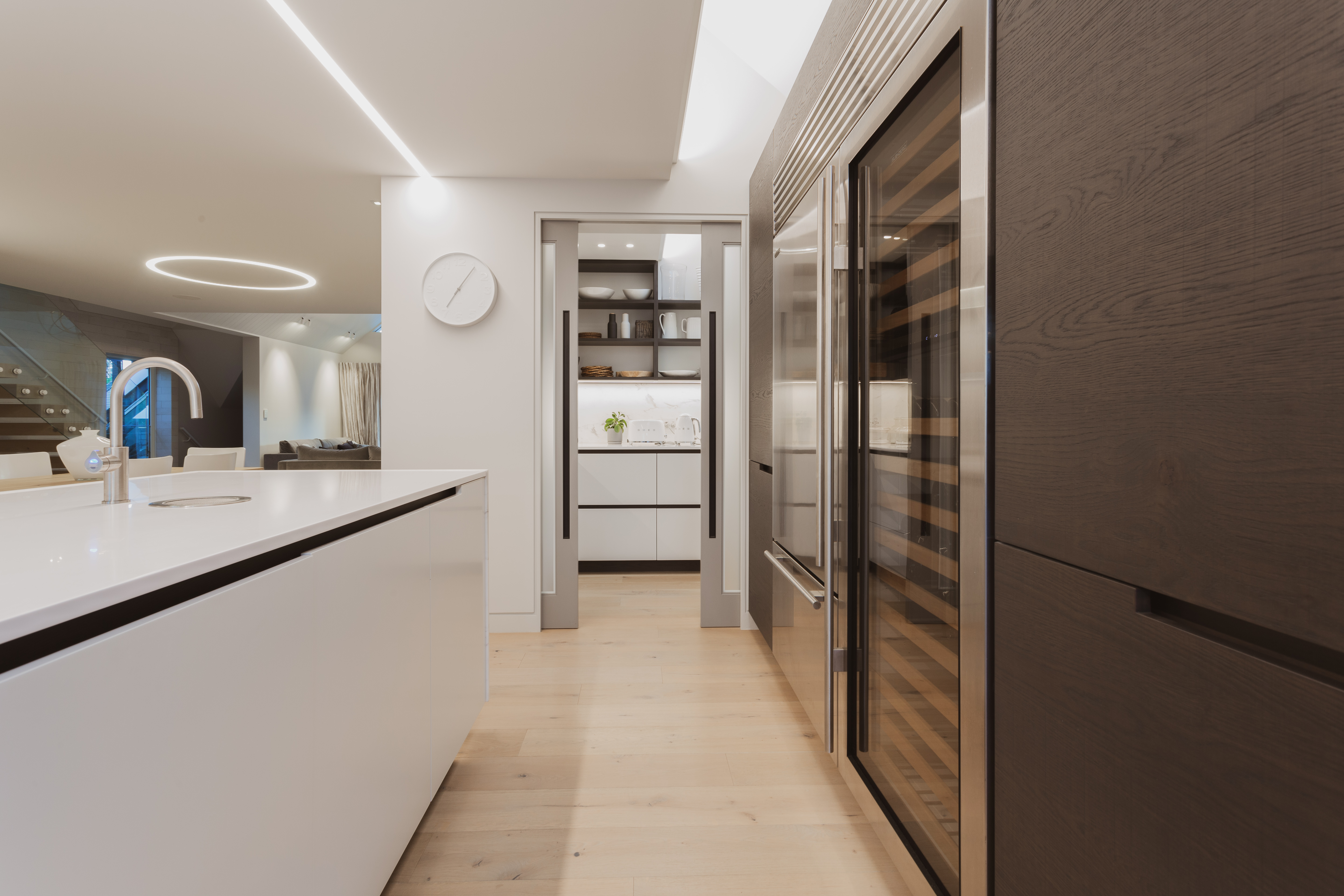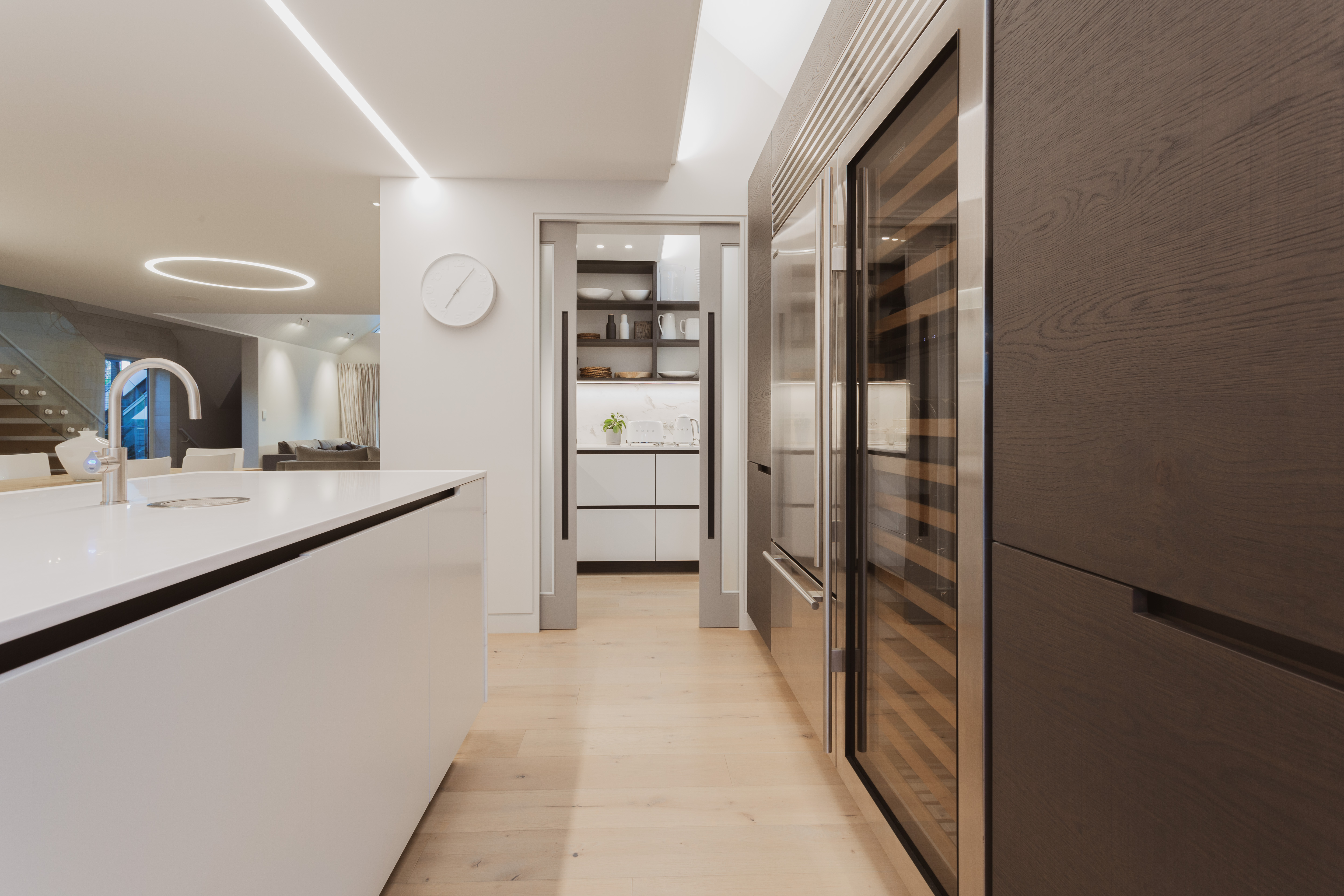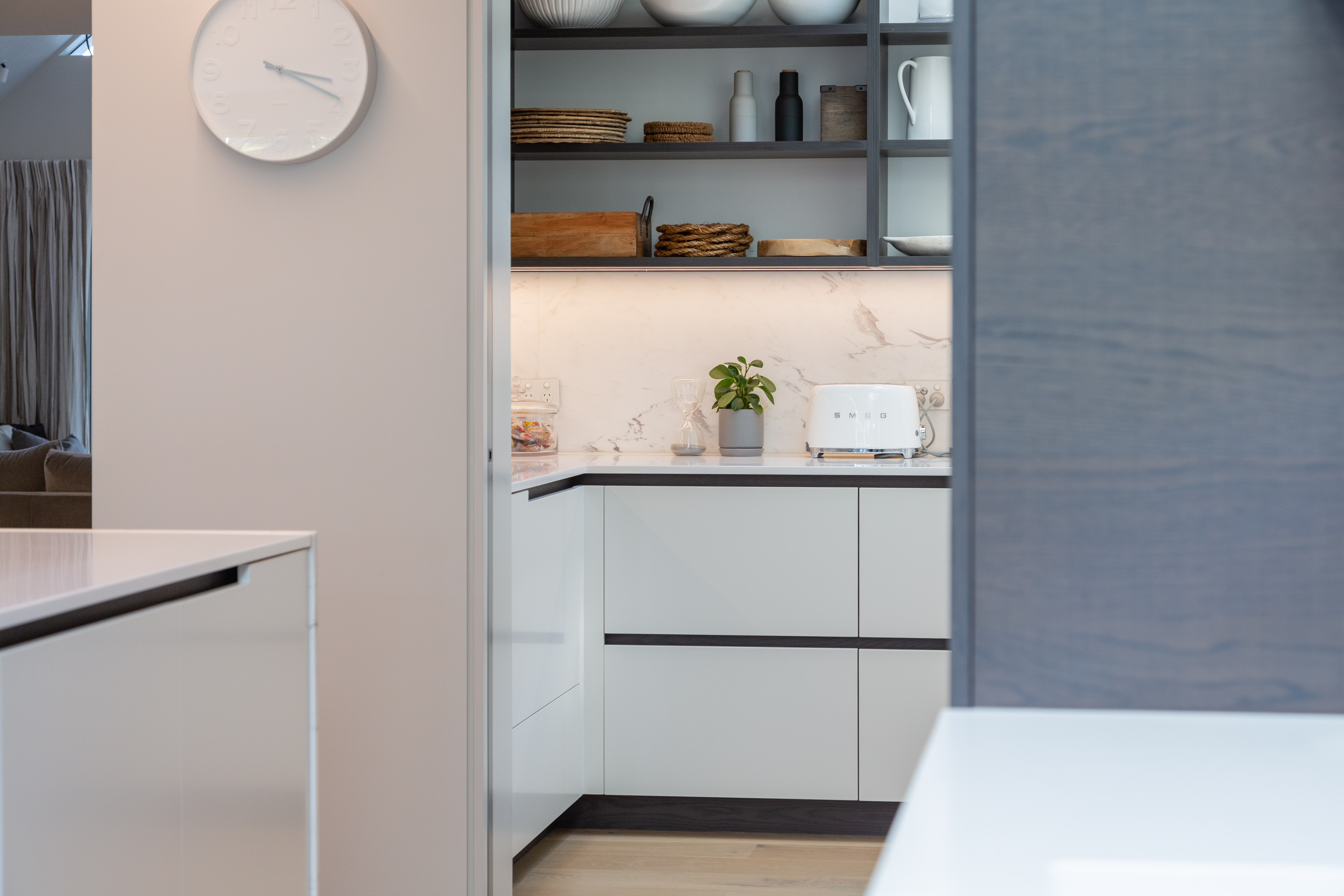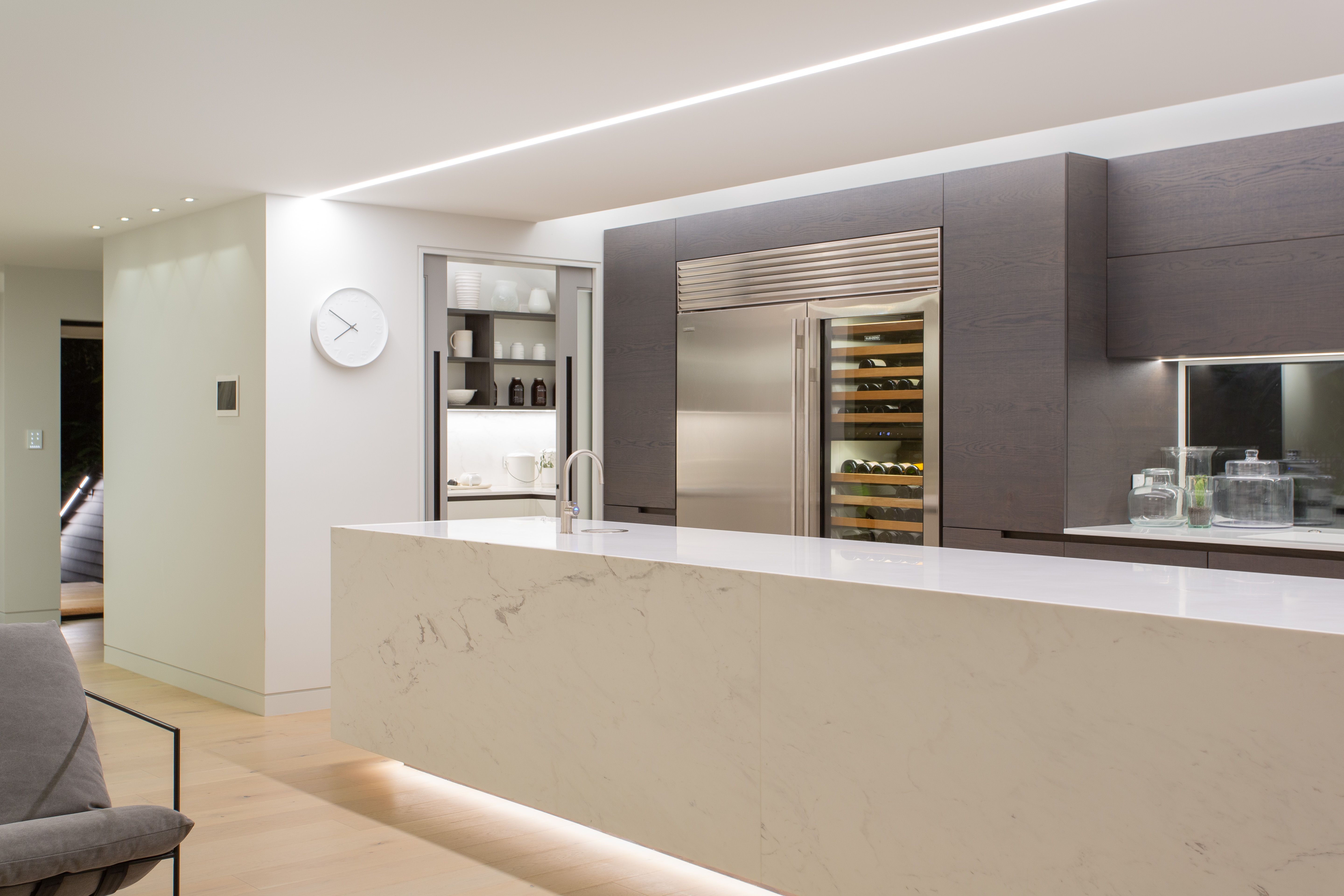 The project to renovate this architect designed four-bedroom house was major, but the results are spectacular. As well as an interior revamp, the outside was clad in striking black Linea weatherboard with white edging and architectural landscaping features were installed. The pool house, separated from the home by a private courtyard and the pool itself, is a major feature of the work. It was constructed with poured concrete and given a ply-grain finish. This magical space has frameless glass bifold doors, decking that flows from inside to out and all the bells and whistles. You’ll also find sophisticated automation, audio, and ducted air conditioning and heating in here and throughout the main house. The kitchen is a statement in style, with a five-metre marble island taking centre stage. Much of the interior lighting is custom designed to provide a minimalist finish, and high-end products are used everywhere: oak flooring, Danish bathroomware, wool carpets, specialty tiles and frameless showers. A glass-roofed carport, tropical landscaping and an automated entrance accentuate the class of the project.
