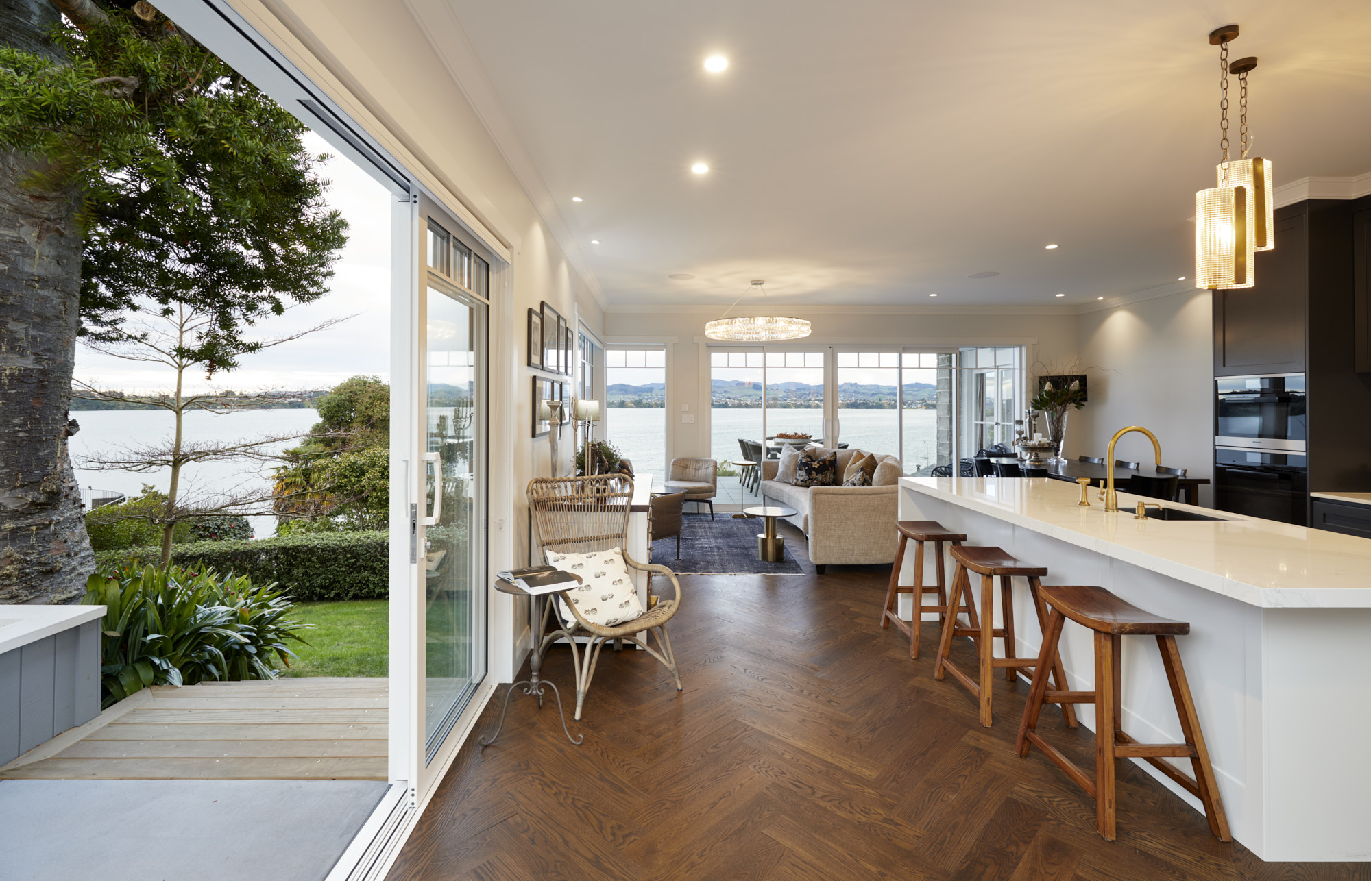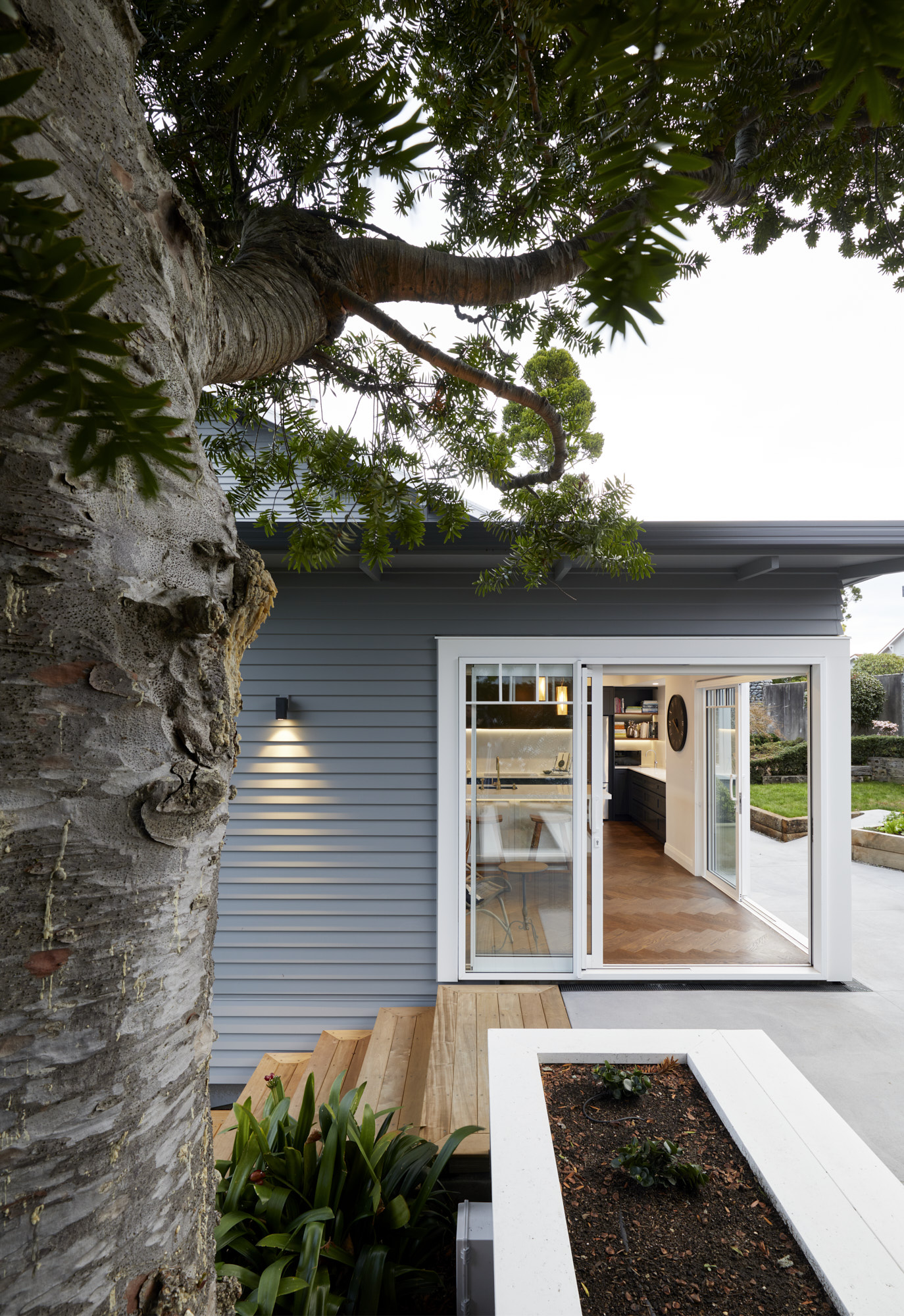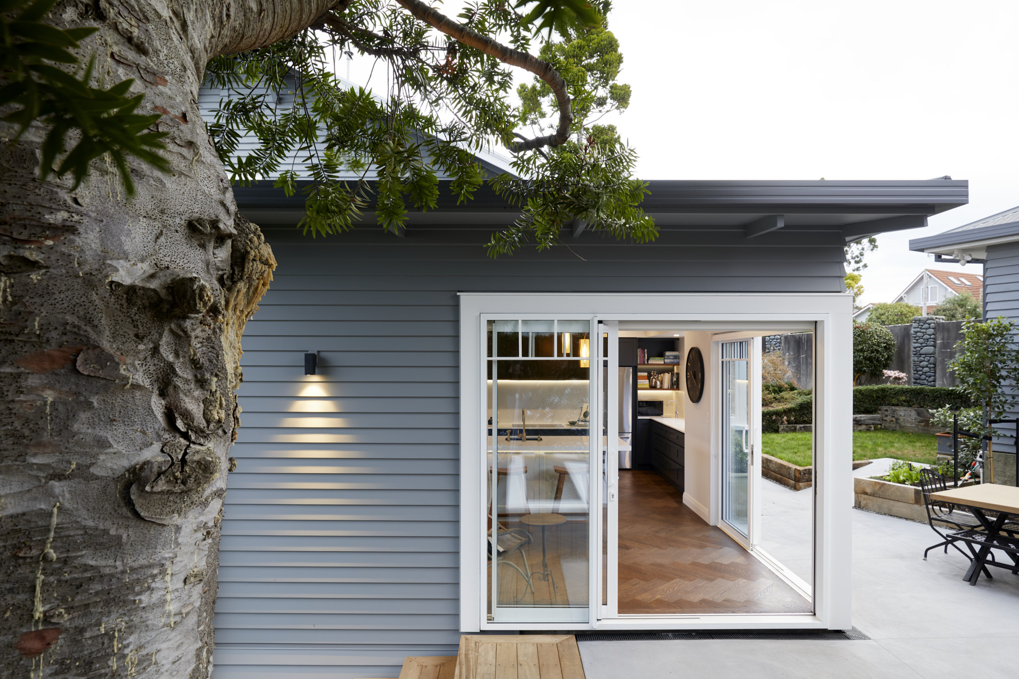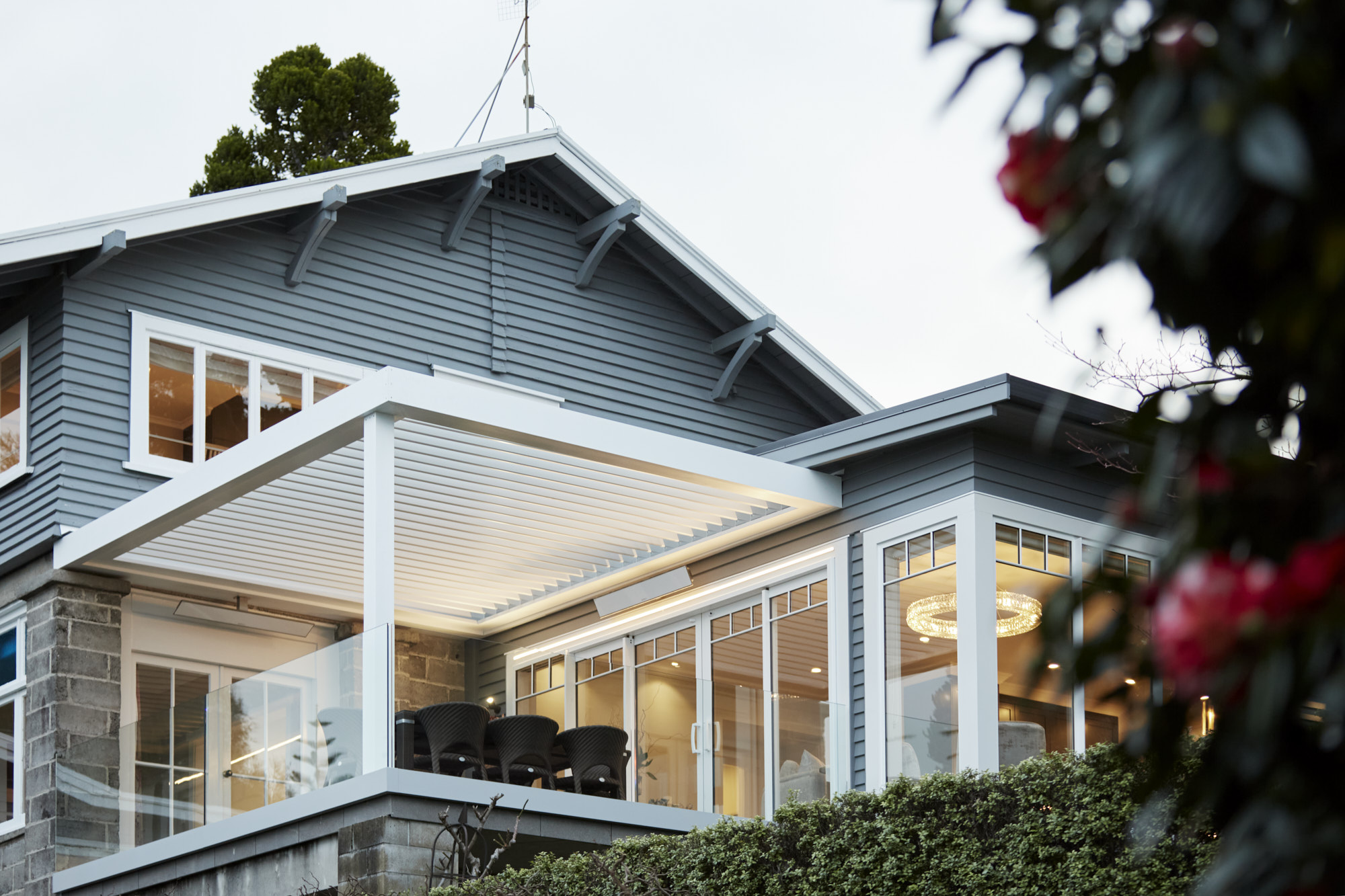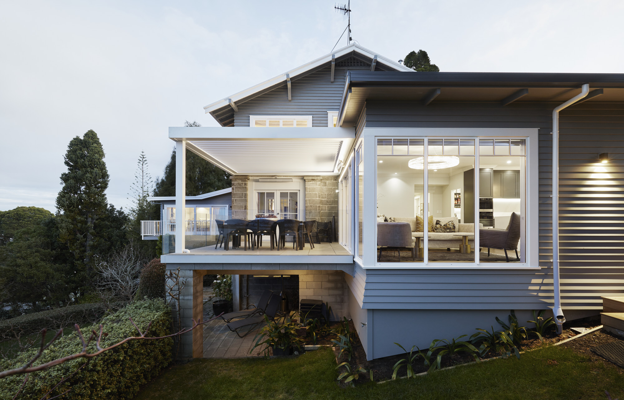 A sympathetic approach was needed to renovate and extend this beautiful character house built more than a century ago. So, the owners, former clients of Calley Homes, called in the building firm to carry out the sensitive project – an addition with living and entertaining spaces, inside and out. The renovation included an open-plan kitchen with scullery, plus dining spaces that seamlessly link to two outdoor areas. The first, a louvre-covered deck leading off the dining room, is an alfresco delight serving up views of Tauranga harbour. The other is a sheltered patio leading off the kitchen and set into the hillside. Inside, parquet timber flooring has been added and a kitchen – heritage in style and colour, but with all the modern advantages – has been installed. This is at the centre of the new space and features lighting that brings a sense of drama and wow-factor. Every detail here has been carefully considered and crafted – even the new architectural windows had to fit with the originals. It’s clear the heritage home has been given the love and respect it deserves, and no stone has been left unturned.